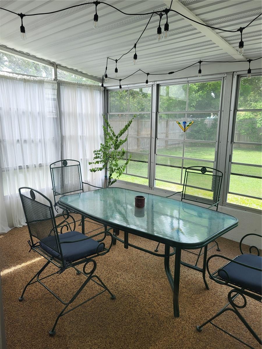 A well maintained home in a quiet neighborhood. Eat in kitchen area and counter with stools perfect for morning meals. Kitchen has double sink and ample counter space for cooking or entertaining. Metal roof was installed in 2021. No HOA fees. Irrigation well and pump have not been tested. Rooms have new ceiling fans. There are two areas for indoor/outdoor living. A Florida room with enclosed windows and a lanai off one bedroom with sliding glass doors. Built solid, this home has much potential for furnishing and decorating. Large private fenced in yard with plenty of room for a pool. Covered carport and storage area outside the house. Owner is extremely motivated. Needs to relocate.