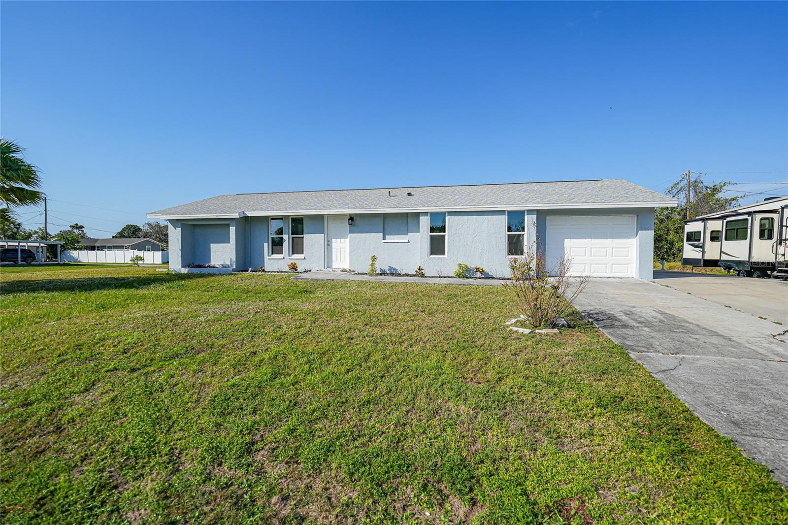SELLER OFFERING $5,000 TOWARDS CLOSING COSTS! Discover Your Dream Home in Sunny Port Charlotte, Florida! This beautifully remodeled home features a desirable split floor plan and is loaded with updates, including a new roof (2023), hurricane windows (2024), and a brand-new AC system. The interior shines with quartz countertops, solid wood cabinets, upgraded bathrooms, and walk-in closets. Situated on an oversized corner lot, the property offers additional driveway parking, an RV electrical hookup, and epoxy-finished garage floors. Enjoy the huge backyard with a concrete slab, perfect for a future lanai or pool. A home ready for modern living and entertaining!