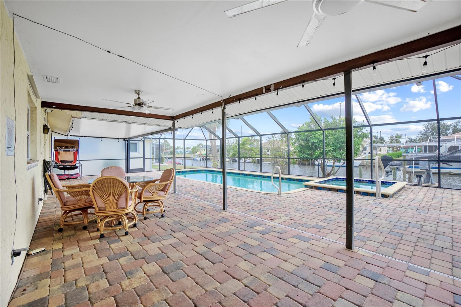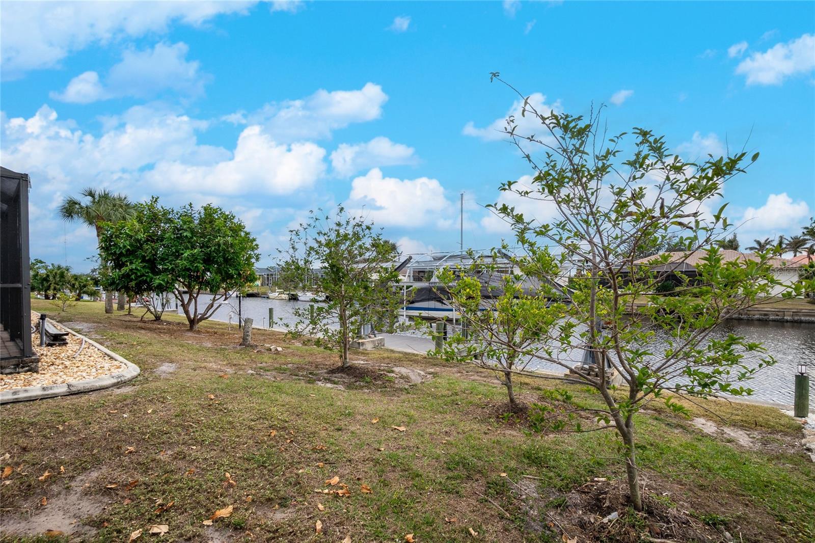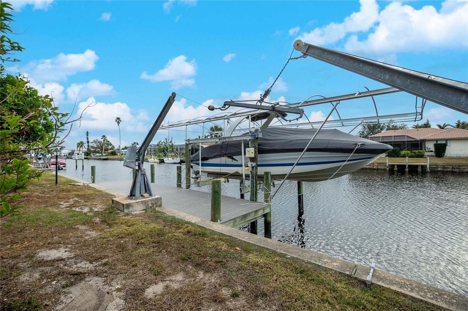 Location, location, location, and your own private oasis, complete with multiple fruit trees. No bridges and just minutes from your private dock to Charlotte Harbor, or relax in your heated, saltwater pool while you enjoy a spectacular sunset. This is the perfect permanent residence, or winter get away. The pool and dock were installed in 2014, and the pool equipment was replaced recently. The spacious dock and 10,000lb boat lift were replaced after Ian in 2022. The new canopy has been ordered and paid for and will be installed as soon as it comes in. The roof was replaced in 2023 and the HVAC system in 2022. There is nothing to do here other than move in and enjoy your home. Conveniently located to shopping, grocery stores, restaurants, public parks and boat ramps. The Port Charlotte Beach Club Park is just an easy bike ride away. Don't miss the opportunity to make this home yours!
