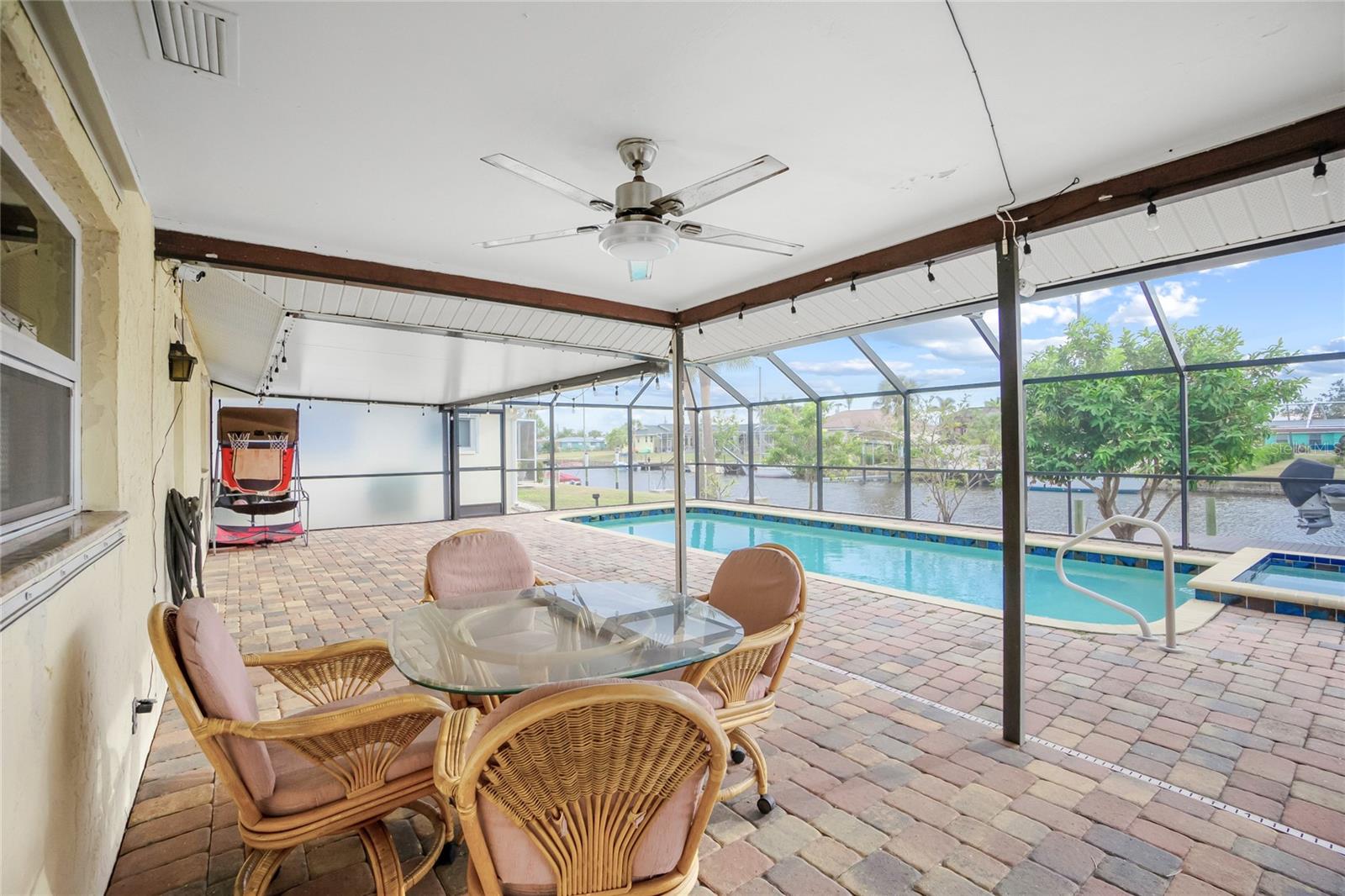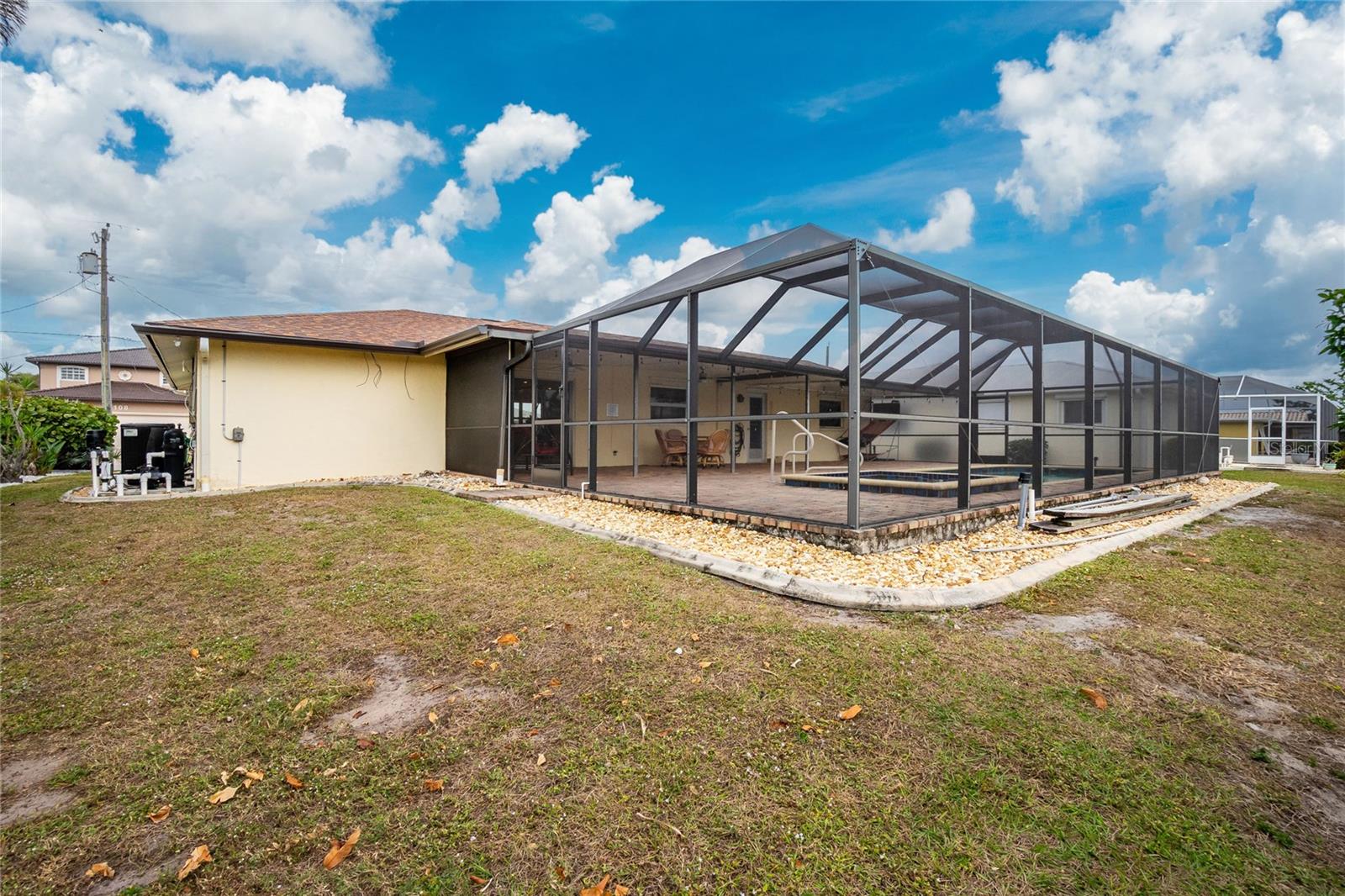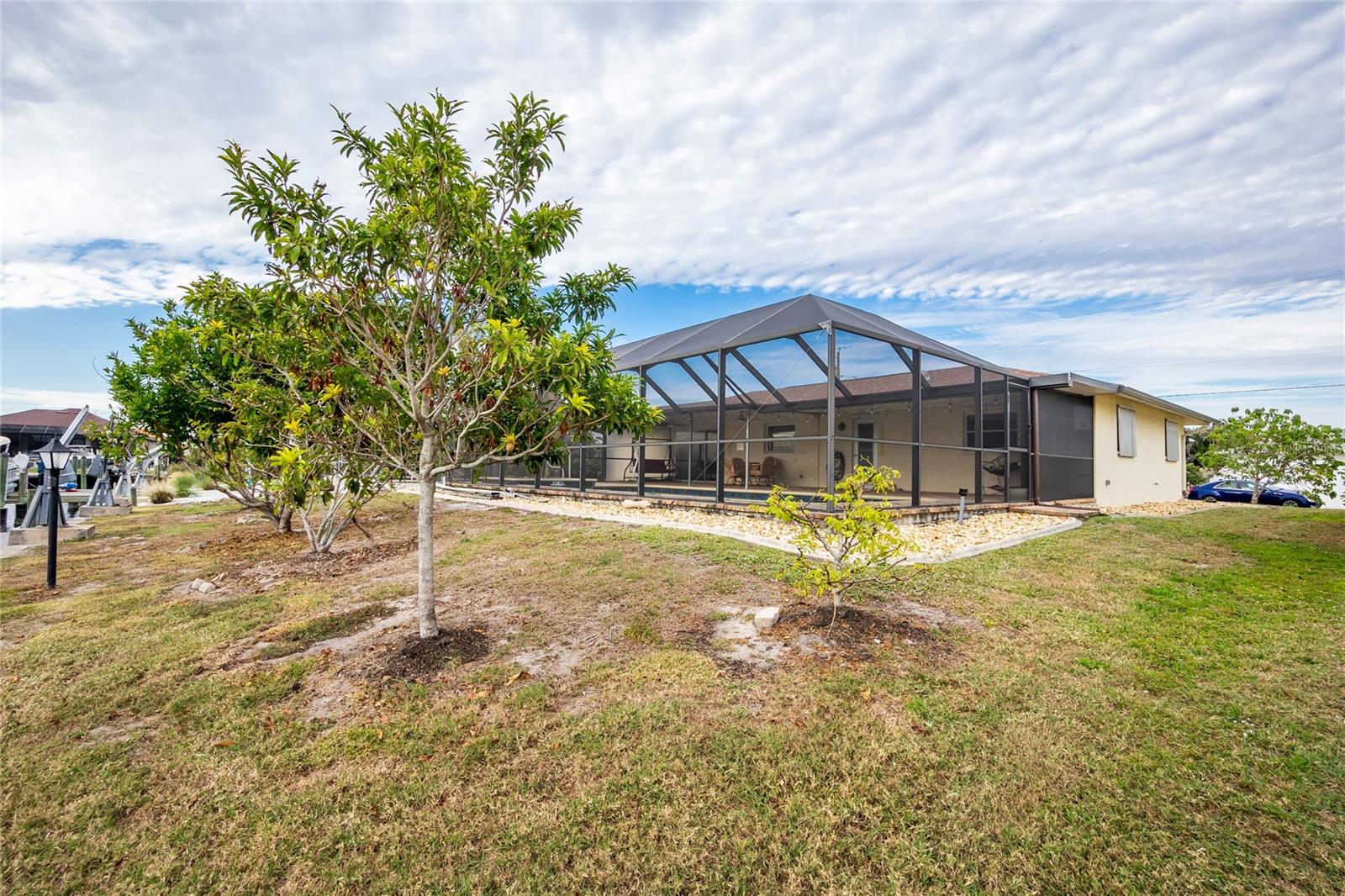 Location, location, location, and your own private oasis, complete with multiple fruit trees. No bridges and just minutes from your private dock to Charlotte Harbor, or relax in your heated, saltwater pool while you enjoy a spectacular sunset. This is the perfect permanent residence, or winter get away. The pool and dock were installed in 2014, and the pool equipment was replaced recently. The spacious dock and 10,000lb boat lift were replaced after Ian in 2022. The new canopy has been ordered and paid for and will be installed as soon as it comes in. The roof was replaced in 2023 and the HVAC system in 2022. There is nothing to do here other than move in and enjoy your home. Conveniently located to shopping, grocery stores, restaurants, public parks and boat ramps. The Port Charlotte Beach Club Park is just an easy bike ride away. Don't miss the opportunity to make this home yours!