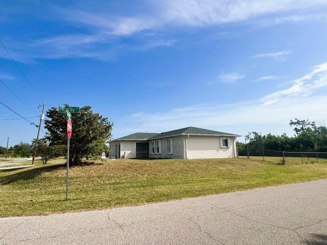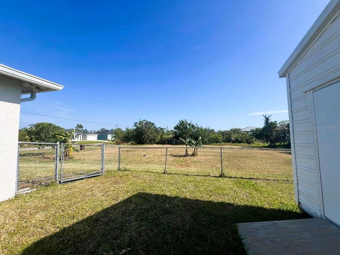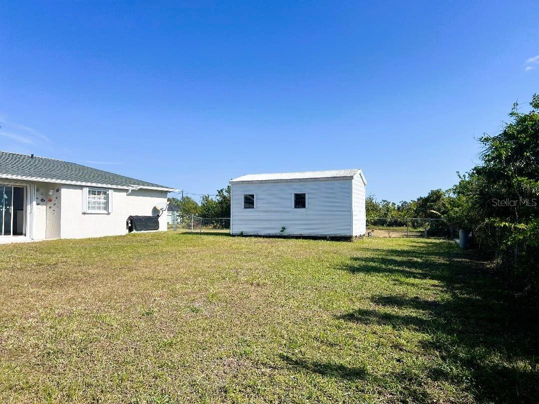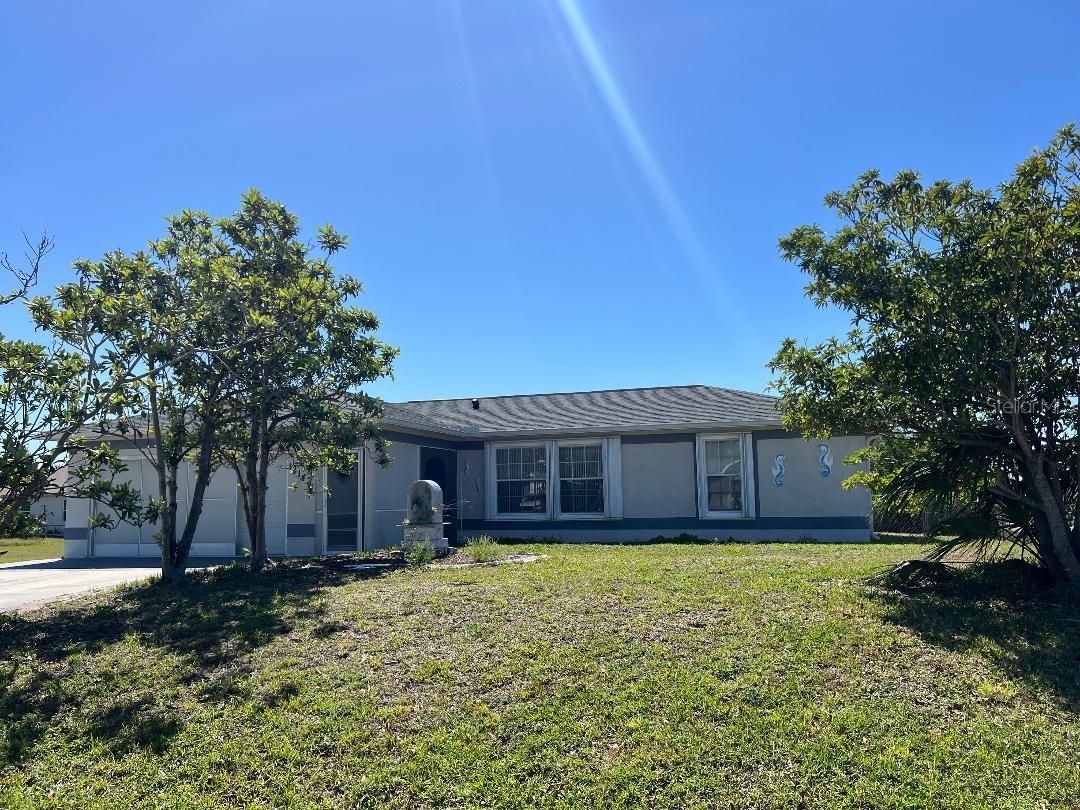 ALERT!! NEW PRICE!! Built on a CORNER LOT WITH AN EXTRA CLEARED LOT PROVIDING JUST ABOUT HALF AN ACRE OF LAND this home can be your piece of paradise!! Located in Beautiful Gulf Cove's Riverfront Community this home boast Over 1660 of Total Square Footage with 3 Bedrooms, 2 Baths & 2 Car Garage! This Home Provides a Split Floor Plan for Privacy & Living/Dining Room Combo Great For Family Gatherings and Entertainment! BACKYARD IS FENCED! Home is ON PUBLIC WATER! NOT ON FLOOD ZONE! ***NEW SEPTIC TANK MAY 2025*** Has Tile Floors throughout, Screened "Garage Door & Front Porch Entrance" Hurricane Shutters, New Roof (2023) Appreciate the Spacious 12x20 Shed (2017) which has Electricity Connected, 4 Windows & 2 Access Doors! What a Wonderful Option For Storage, She Shed, Man Cave...you name it! The Adjacent Lot is absolutely phenomenal for your Outdoor Sport Toys, Family Sport Games or Celebrations as it is completely cleared with only a few fruit trees & conveniently has a WELL already in place that just needs a pump connected. Great Location surrounded by New Constructions Homes! This Community of Gulf Cove is situated along the Astonishing Myakka River which connects to the Gulf of Mexico with many options for boating and other water activities as jetskiing, fishing, water parks, boat ramps & marinas, sandbar & islands. Gorgeous Englewood & Boca Grande Beaches are approximately 20-30 minutes away where you can enjoy the relaxing sound of the ocean, life entertainment and great cocktails! Charlotte Sport Baseball Stadium is "Home Field for Tampa Bay Rays Spring Trainning" and is a short drive away from this home! All amenities are near by including shopping, restaurants, pharmacies and much more! Buyer is to verify all information pertaining to this property**DO NOT LET THIS DEAL PASS YOU BY**