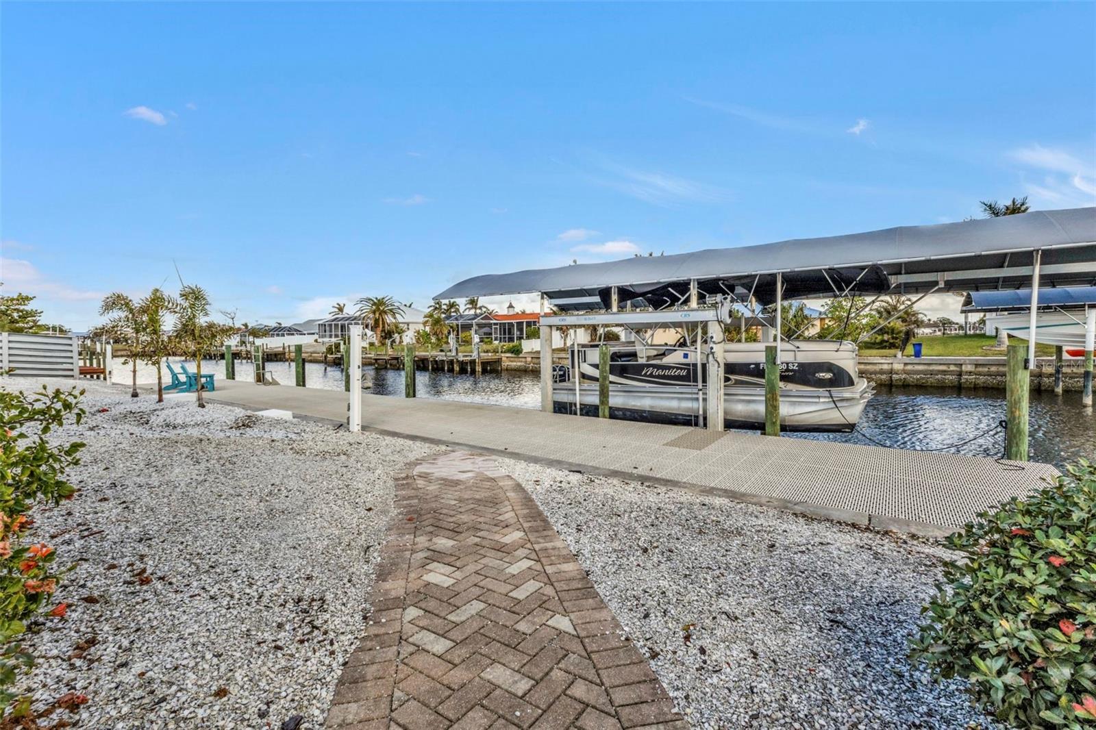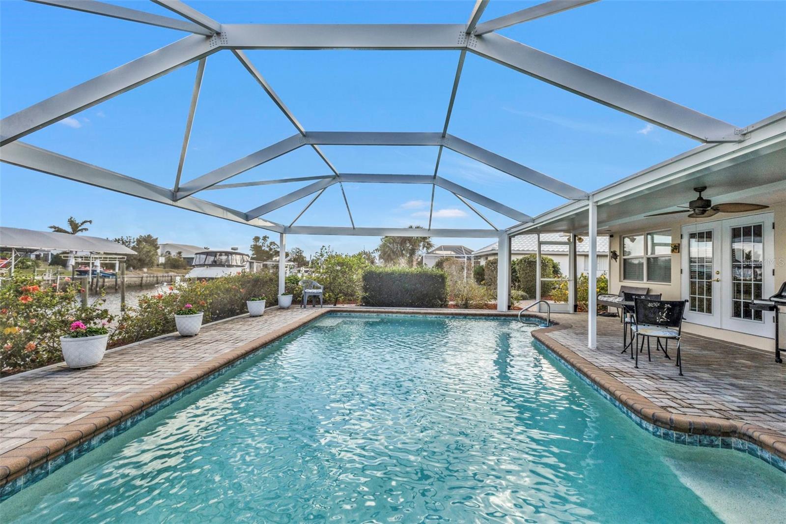 After 14 wonderful years of retirement in Southwest Fl the owners are downsizing to be closer to family ! Welcome to this exceptional waterfront home Listed below appraised value, offering the perfect blend of luxury and convenience just 7 minutes by sailboat to open water! This stunning 3-bedroom including the large master suite, 2-bathroom residence spans over 2,700 square feet of living space, with every detail designed for comfort and ease. As you step inside, you'll notice the spacious layout, with each bedroom featuring its own walk-in closet for ample storage. Hurricane impact windows and doors provide peace of mind, while modern updates throughout the home, including new plumbing and electrical systems, ensure it meets all current codes. The outdoor living area is truly a paradise, with a newly resurfaced 16x32 foot pool (2021) complete with a pool heater and a brand new pool cage (2023), including a full view screen that offers stunning views of the water. Enjoy the outdoors even more with a new outdoor kitchen, perfect for entertaining. The maintenance-free 80’ x 10’ flow-through dock features a 13,000 lb boat lift, capable of accommodating up to a 60-foot boat, and offers deep sailboat access with no bridges—ideal for boating enthusiasts. The home’s exterior is just as impressive, with an easy-to-maintain yard covered in shell and stone, and an additional drive on the side for parking boats or an RV. A new roof installed in 2021 ensures the home is ready for many more years of enjoyment. Don’t miss this rare opportunity to own a piece of paradise in one of the most sought-after waterfront locations!