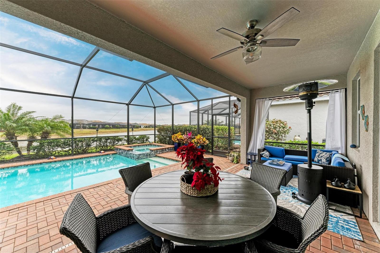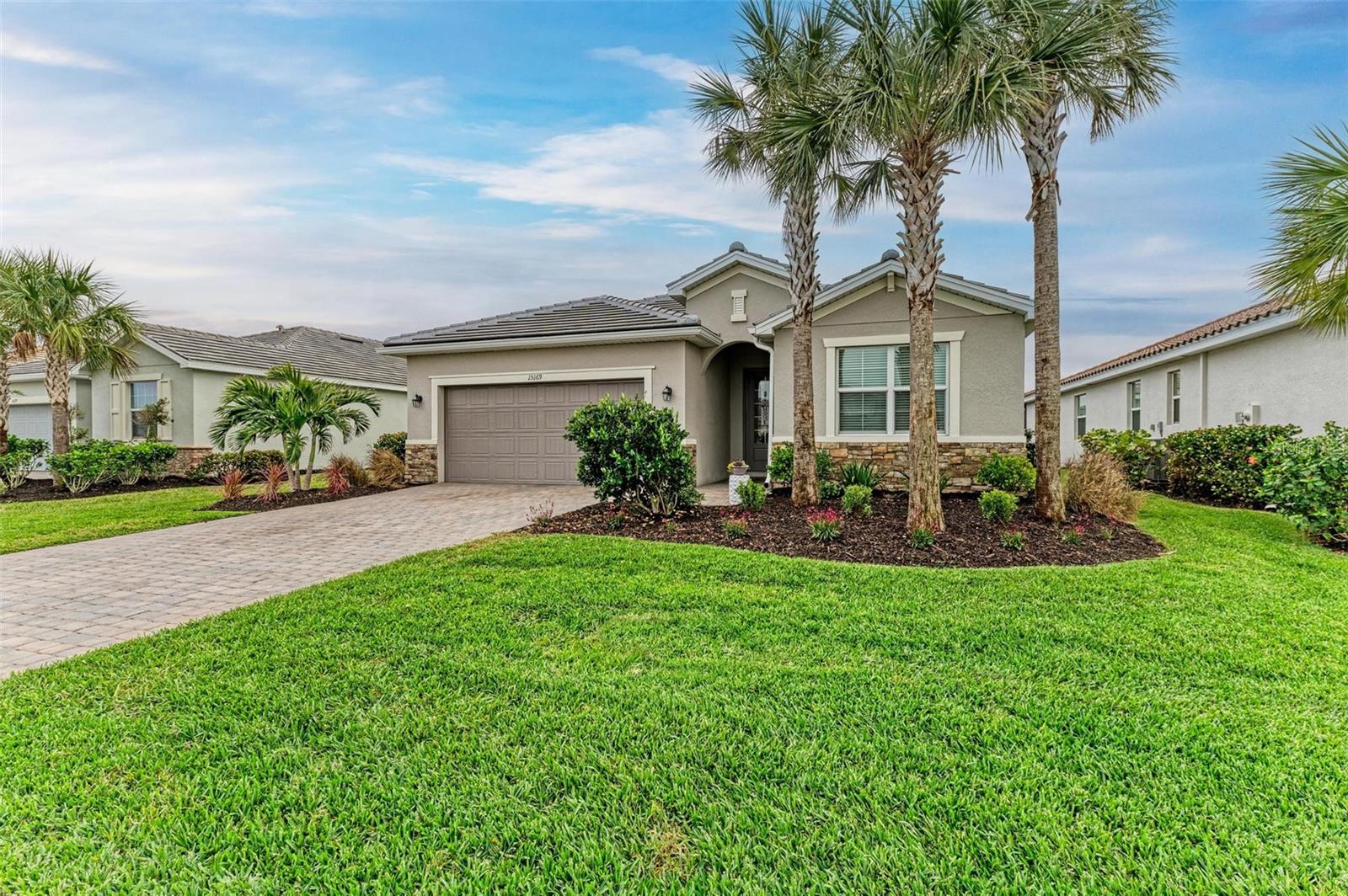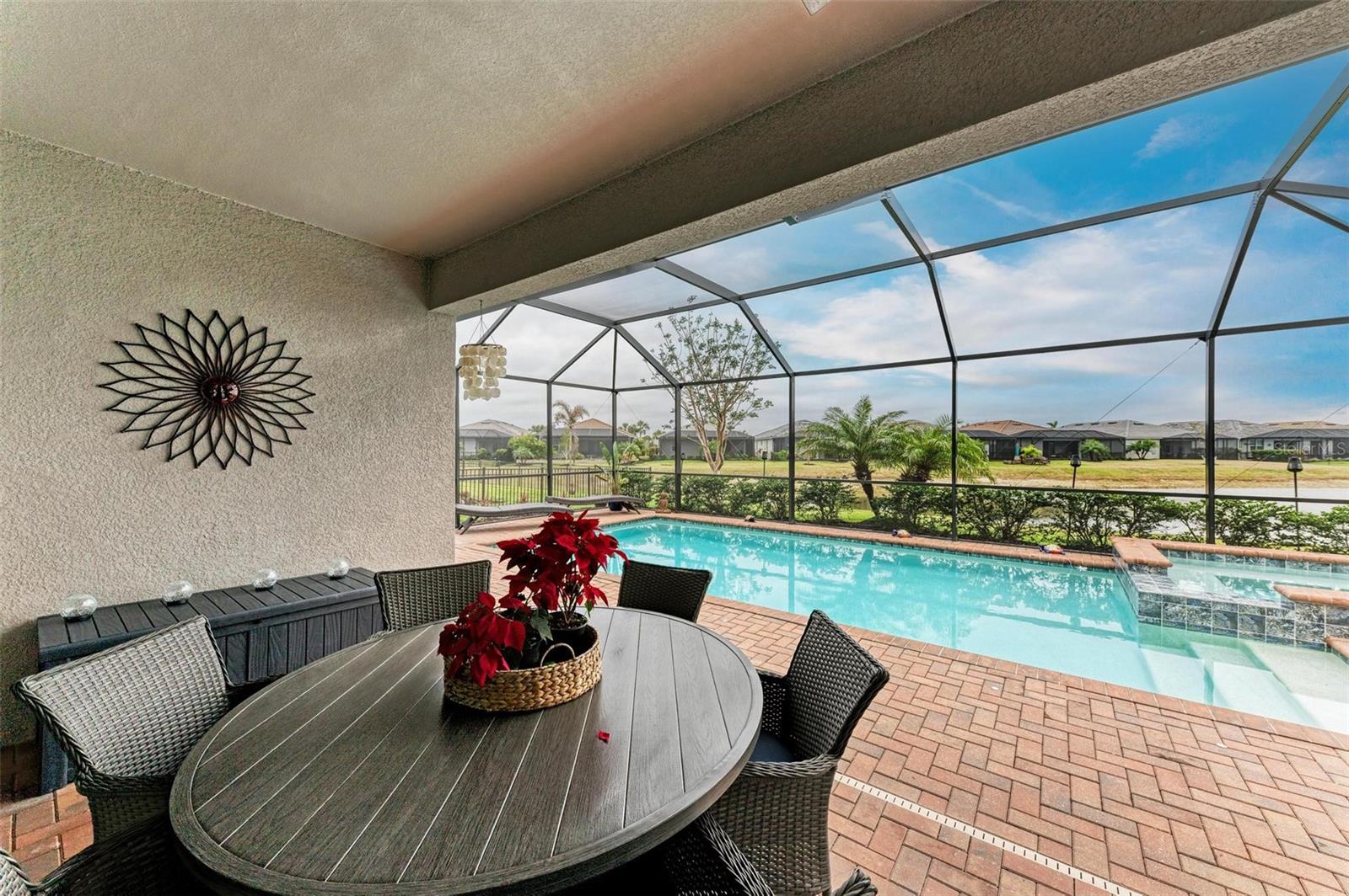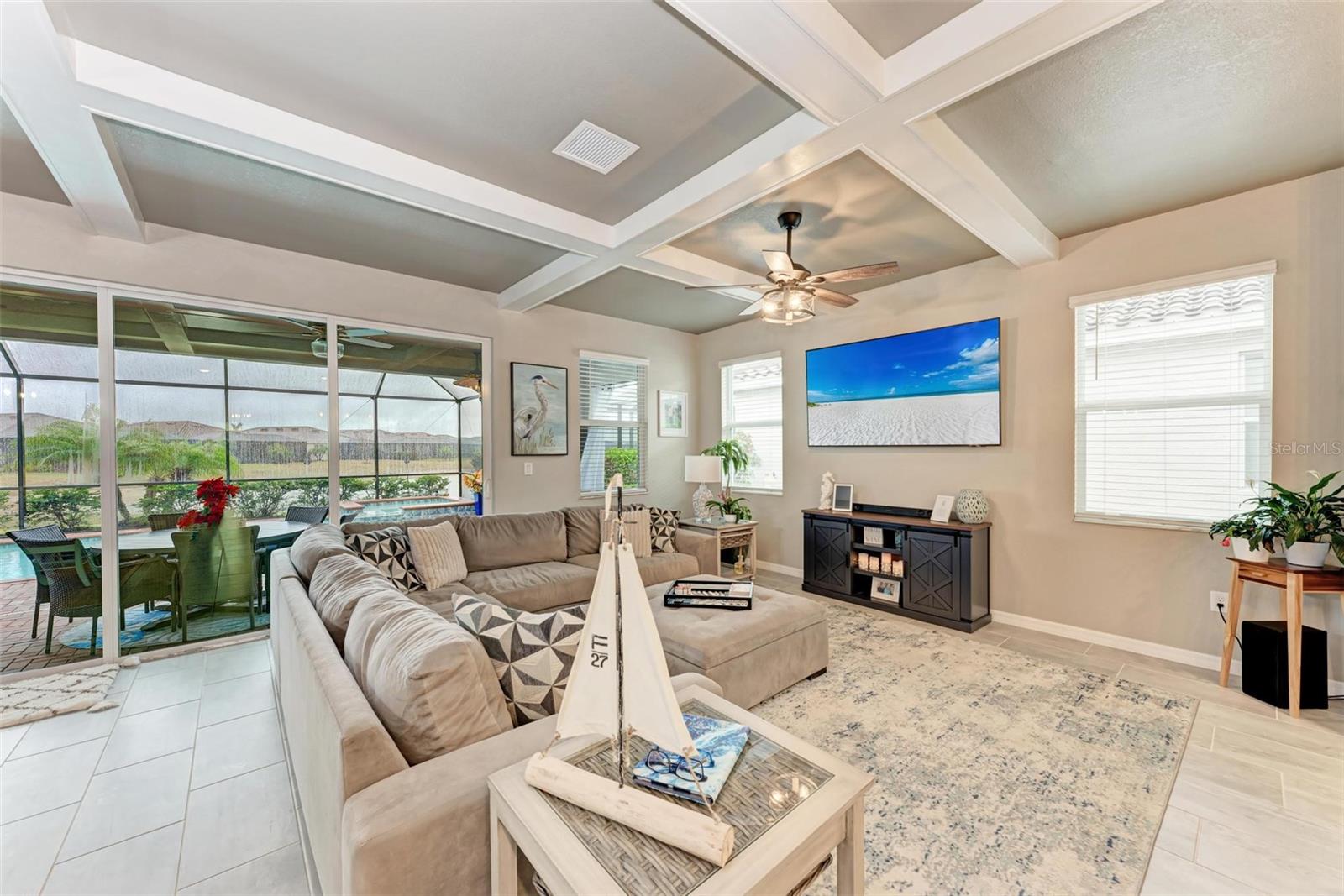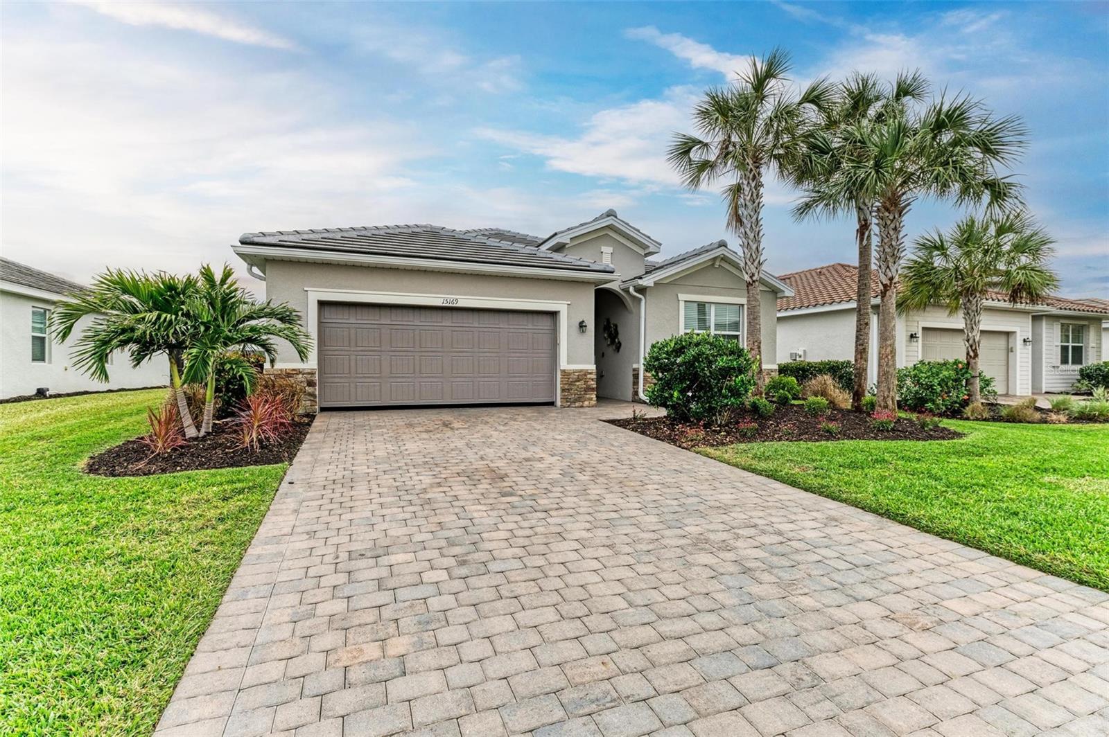 Welcome to your dream home in the exclusive Harbor West community! This beautifully appointed single-family home offers over 2,200 square feet of thoughtfully designed living space, combining comfort, luxury, and functionality in every detail. Step inside to find coffered ceilings, elegant finishes, and a spacious open layout that checks all the boxes. The home features 3 bedrooms and 3 full bathrooms, including a private guest suite with its own ensuite bath, ideal for visitors or multigenerational living. The expansive den offers flexible space for a home office, media room, or extra lounge area. Bedrooms offer generous walk-in closets, providing ample storage throughout the home. At the heart of the home, the stunning kitchen impresses with granite countertops, abundant cabinetry, and a layout perfect for everyday living and entertaining. The seamless indoor-outdoor flow leads to a large paver patio and pool deck, where you’ll find a heated saltwater pool and hot tub, ideal for relaxing or hosting gatherings. Enjoy breathtaking lake views and sunsets from your backyard oasis, creating the perfect setting for outdoor entertaining or peaceful evenings at home. Built in 2021, this home blends modern construction with timeless style to include a new tile roof and hurricane windows. Located in a gated community, you'll enjoy peace of mind along with the beauty and serenity of lakeside living. This home truly has it all—schedule your private showing today and discover why Harbor West is one of the area's most desirable communities!