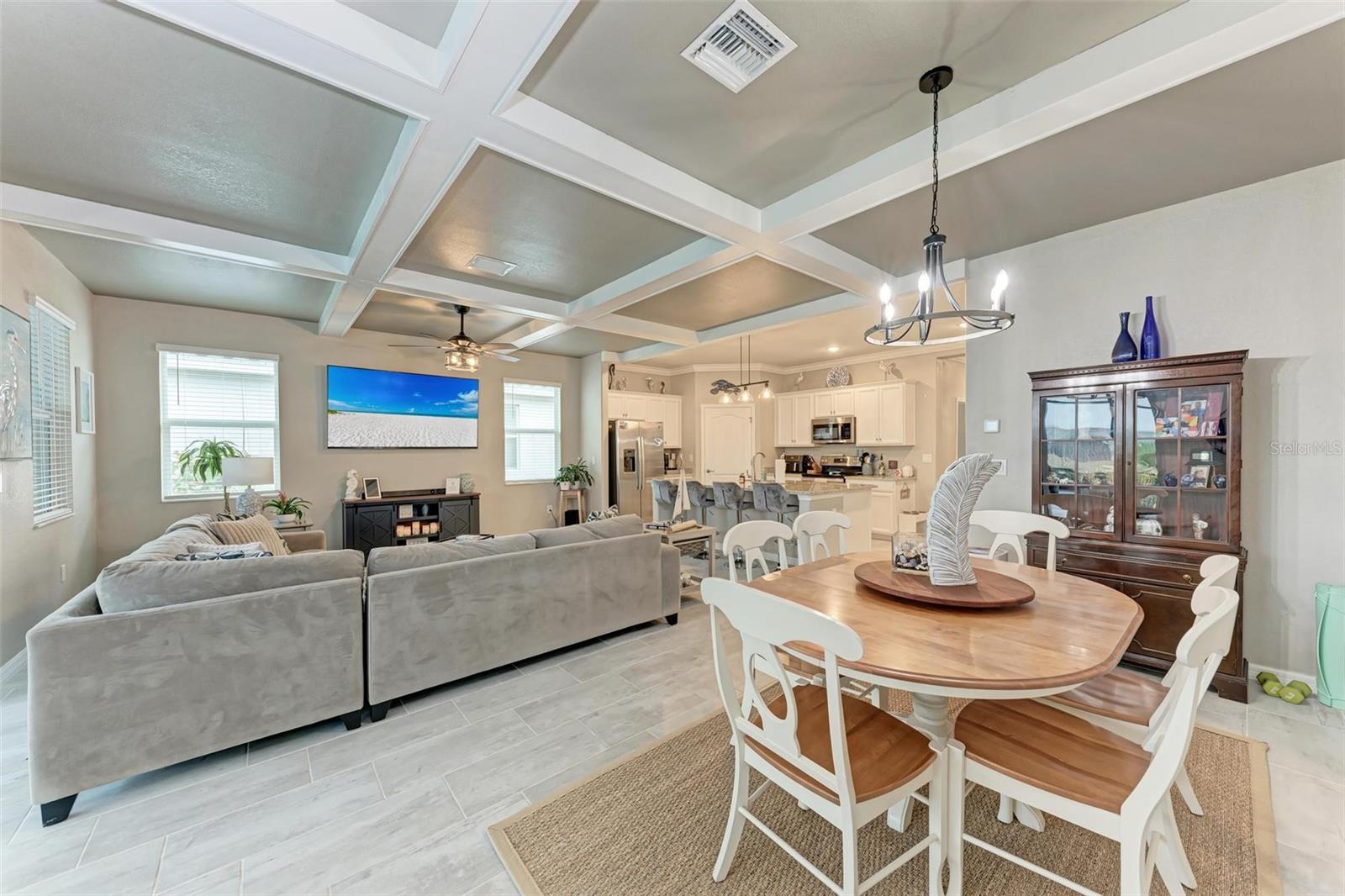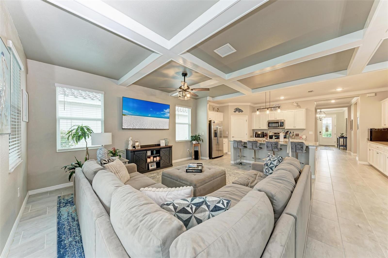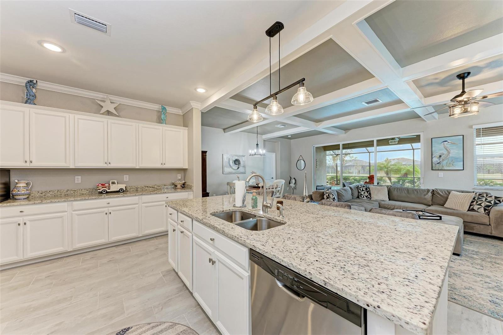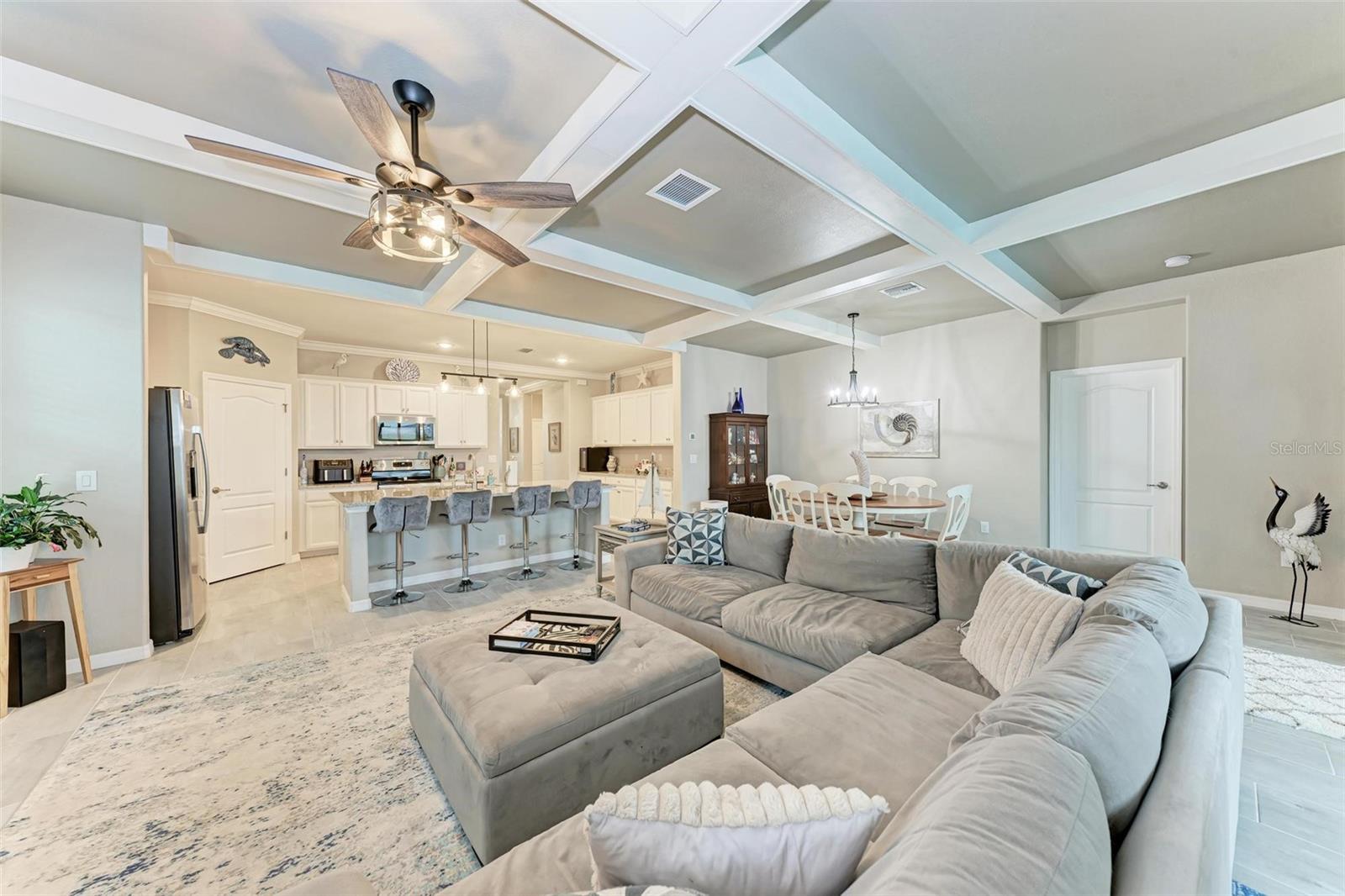 Welcome to your dream home in the exclusive Harbor West community! This beautifully appointed single-family home offers over 2,200 square feet of thoughtfully designed living space, combining comfort, luxury, and functionality in every detail. Step inside to find coffered ceilings, elegant finishes, and a spacious open layout that checks all the boxes. The home features 3 bedrooms and 3 full bathrooms, including a private guest suite with its own ensuite bath, ideal for visitors or multigenerational living. The expansive den offers flexible space for a home office, media room, or extra lounge area. Bedrooms offer generous walk-in closets, providing ample storage throughout the home. At the heart of the home, the stunning kitchen impresses with granite countertops, abundant cabinetry, and a layout perfect for everyday living and entertaining. The seamless indoor-outdoor flow leads to a large paver patio and pool deck, where you’ll find a heated saltwater pool and hot tub, ideal for relaxing or hosting gatherings. Enjoy breathtaking lake views and sunsets from your backyard oasis, creating the perfect setting for outdoor entertaining or peaceful evenings at home. Built in 2021, this home blends modern construction with timeless style to include a new tile roof and hurricane windows. Located in a gated community, you'll enjoy peace of mind along with the beauty and serenity of lakeside living. This home truly has it all—schedule your private showing today and discover why Harbor West is one of the area's most desirable communities!