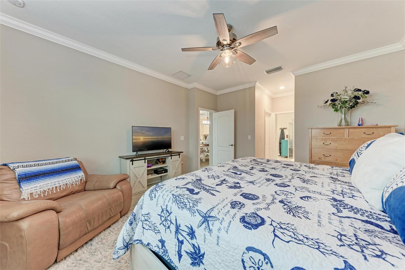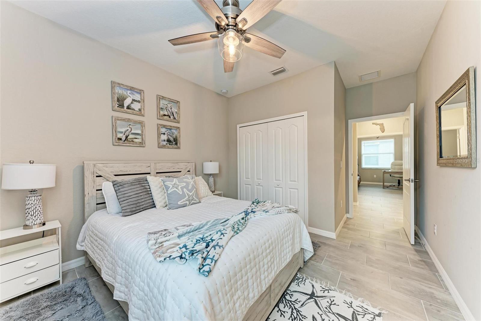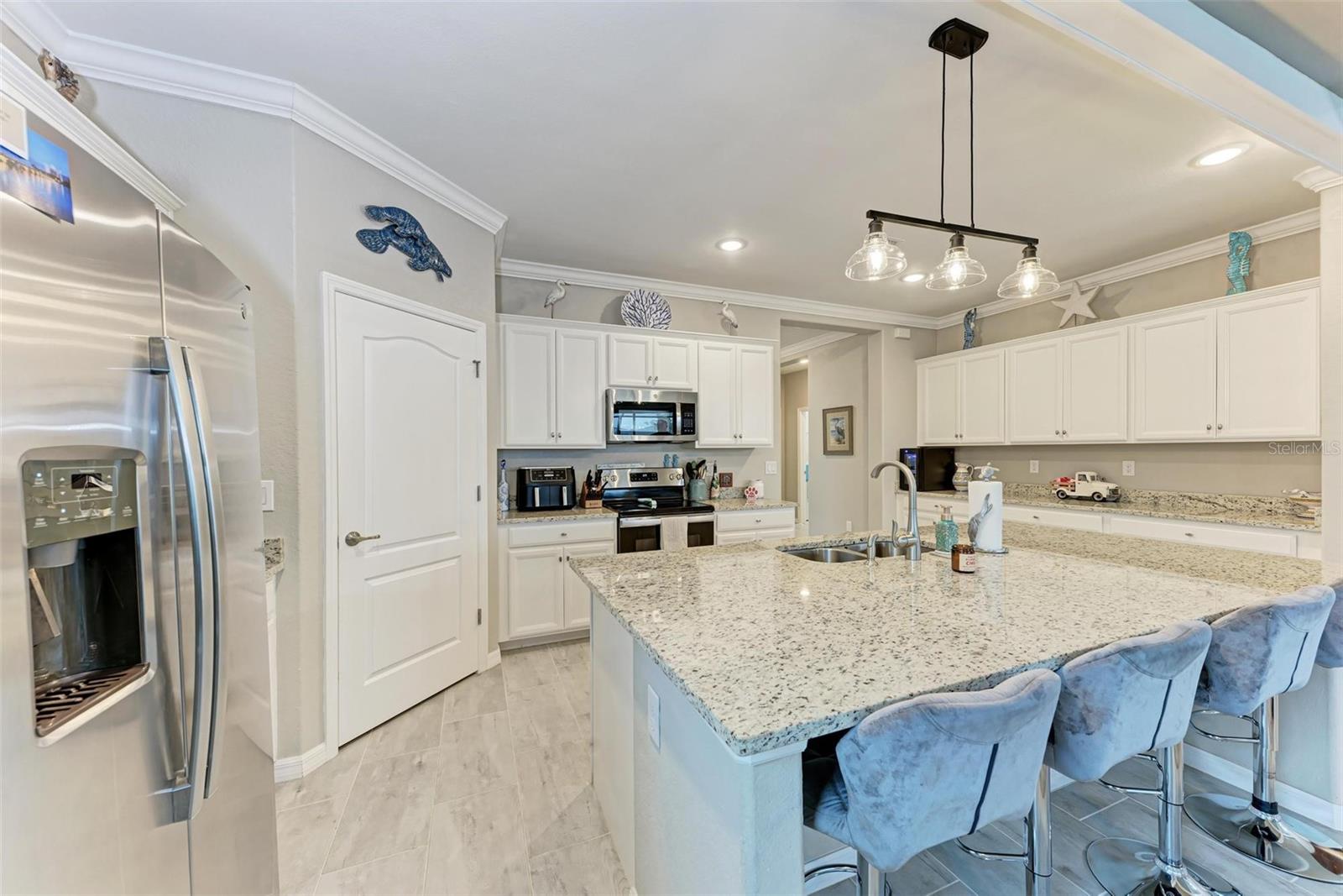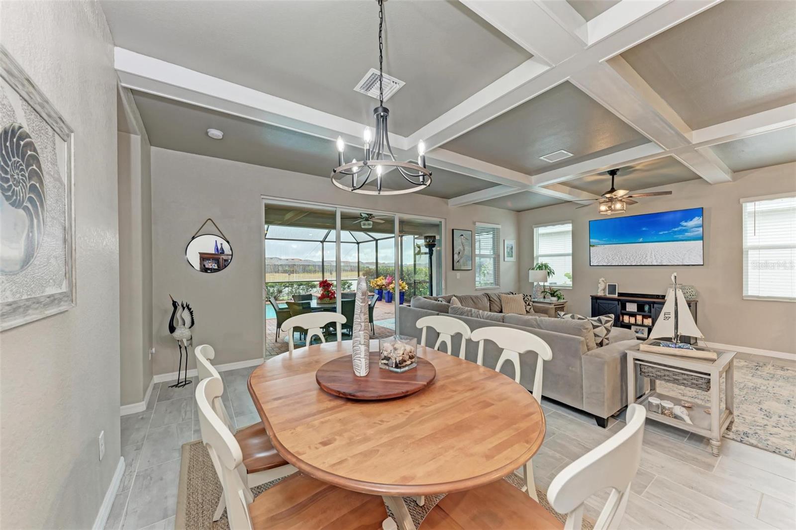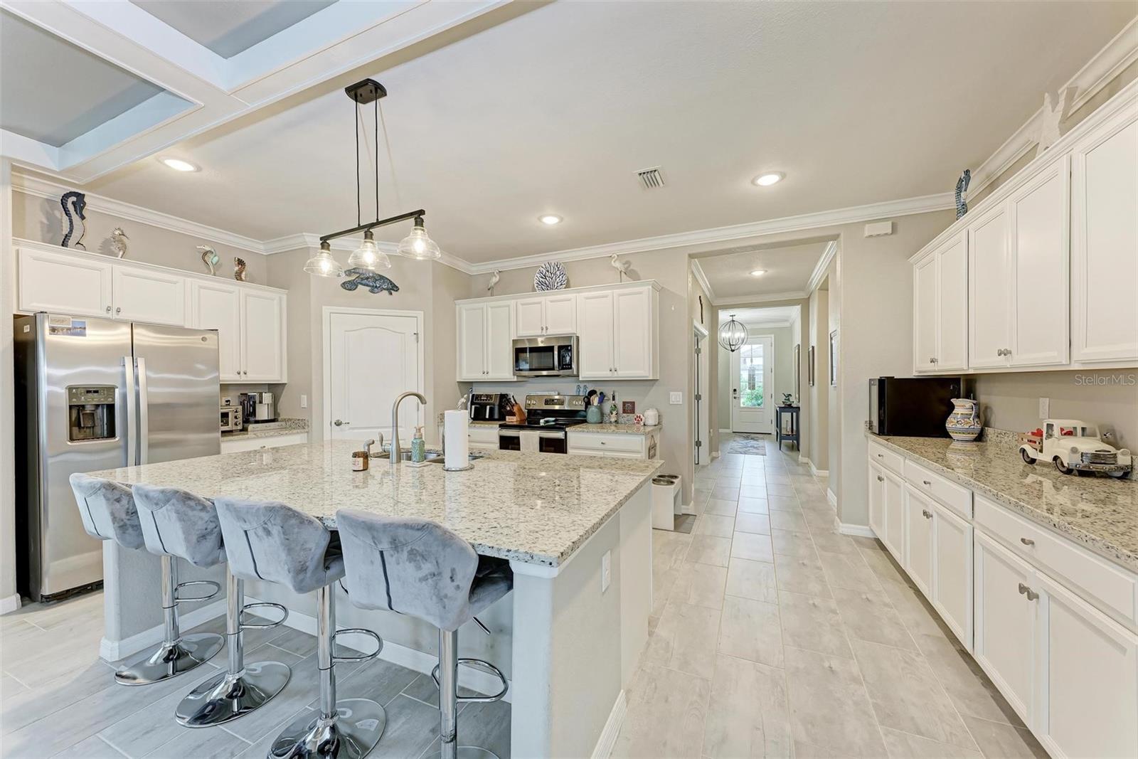 Welcome to your dream home in the exclusive Harbor West community! This beautifully appointed single-family home offers over 2,200 square feet of thoughtfully designed living space, combining comfort, luxury, and functionality in every detail. Step inside to find coffered ceilings, elegant finishes, and a spacious open layout that checks all the boxes. The home features 3 bedrooms and 3 full bathrooms, including a private guest suite with its own ensuite bath, ideal for visitors or multigenerational living. The expansive den offers flexible space for a home office, media room, or extra lounge area. Bedrooms offer generous walk-in closets, providing ample storage throughout the home. At the heart of the home, the stunning kitchen impresses with granite countertops, abundant cabinetry, and a layout perfect for everyday living and entertaining. The seamless indoor-outdoor flow leads to a large paver patio and pool deck, where you’ll find a heated saltwater pool and hot tub, ideal for relaxing or hosting gatherings. Enjoy breathtaking lake views and sunsets from your backyard oasis, creating the perfect setting for outdoor entertaining or peaceful evenings at home. Built in 2021, this home blends modern construction with timeless style to include a new tile roof and hurricane windows. Located in a gated community, you'll enjoy peace of mind along with the beauty and serenity of lakeside living. This home truly has it all—schedule your private showing today and discover why Harbor West is one of the area's most desirable communities!