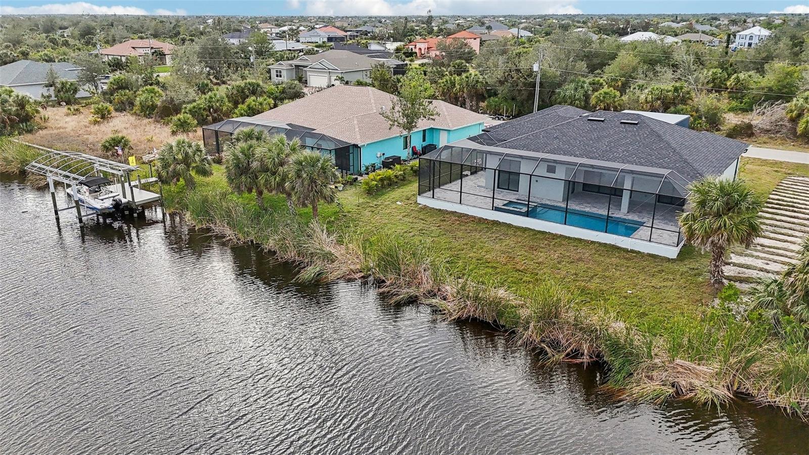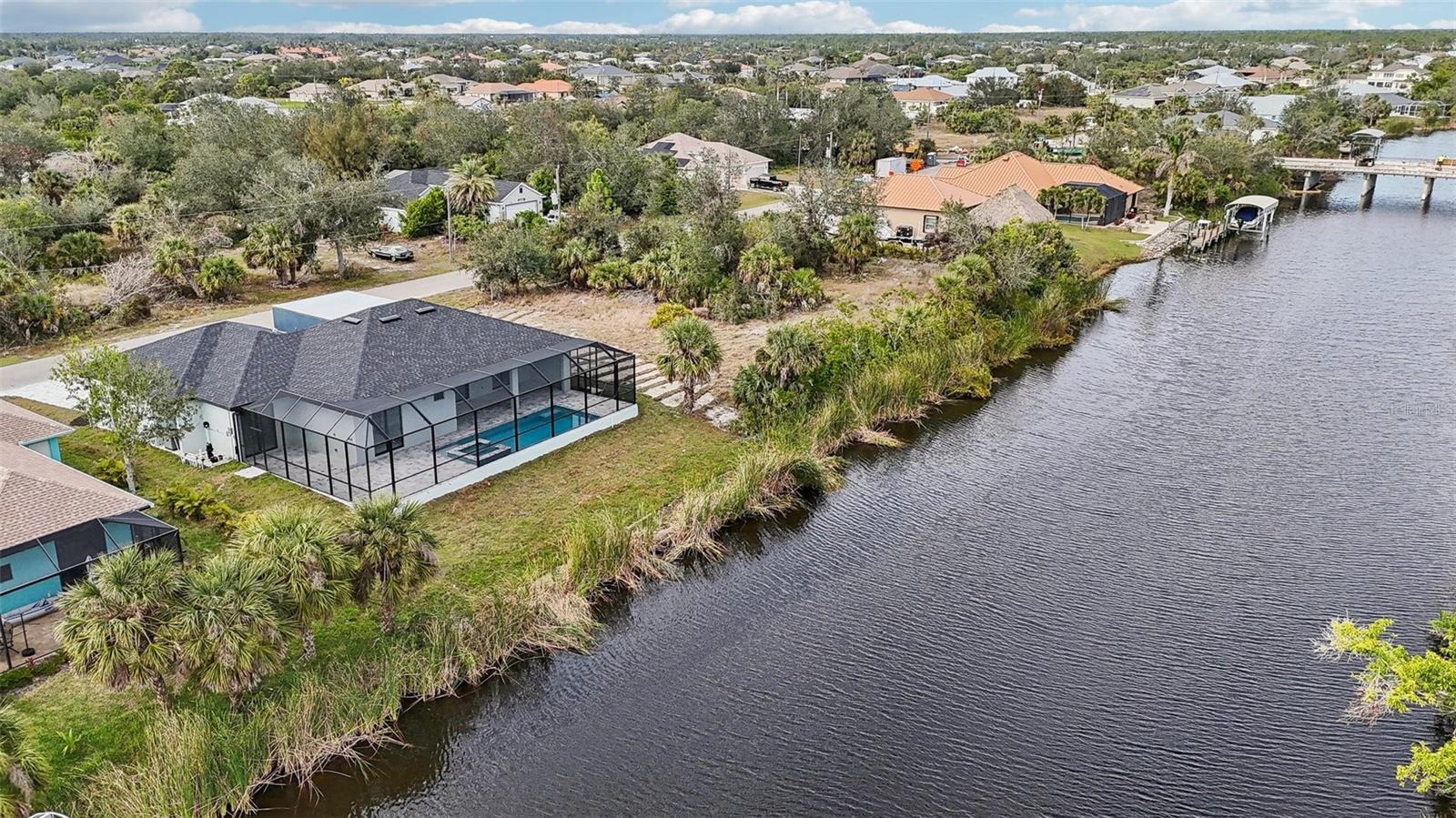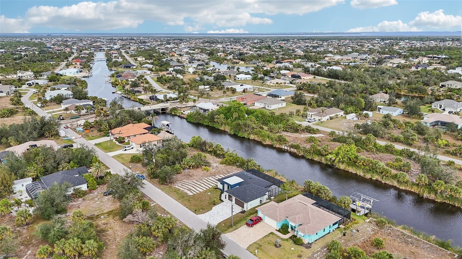 Discover your dream home in the prestigious South Gulf Cove community! This stunning 3-bedroom, 3-bathroom single- family residence offers the perfect blend of modern luxury and coastal charm. Nestled on a pristine canal with Gulf of Mexico access, this property is a boater's paradise, allowing you to enjoy waterfront living at its finest. Step inside to find an open floor plan adorned with ceramic tile flooring throughout, high ceilings, and an abundance of natural light. The spacious kitchen features elegant countertops, ample cabinetry, and a breakfast bar that seamlessly flows into the inviting living and dining areas, making it perfect for entertaining. The outdoor space is a true oasis, featuring a private screened-in pool and spa where you can relax or entertain guests while soaking in the Florida sunshine. The tranquil canal setting adds to the serene ambiance, making every day feel like a vacation. Retreat to the primary suite, complete with a walk-in closet and a luxurious en-suite bathroom featuring dual vanities and a walk-in shower. Additional bedrooms provide comfort and versatility for guests or a home office. Don't miss your chance to own a piece of paradise in South Gulf Cove with direct Gulf of Mexico access and a spectacular pool and spa. Schedule your private showing today and experience all that this exceptional property has to offer!