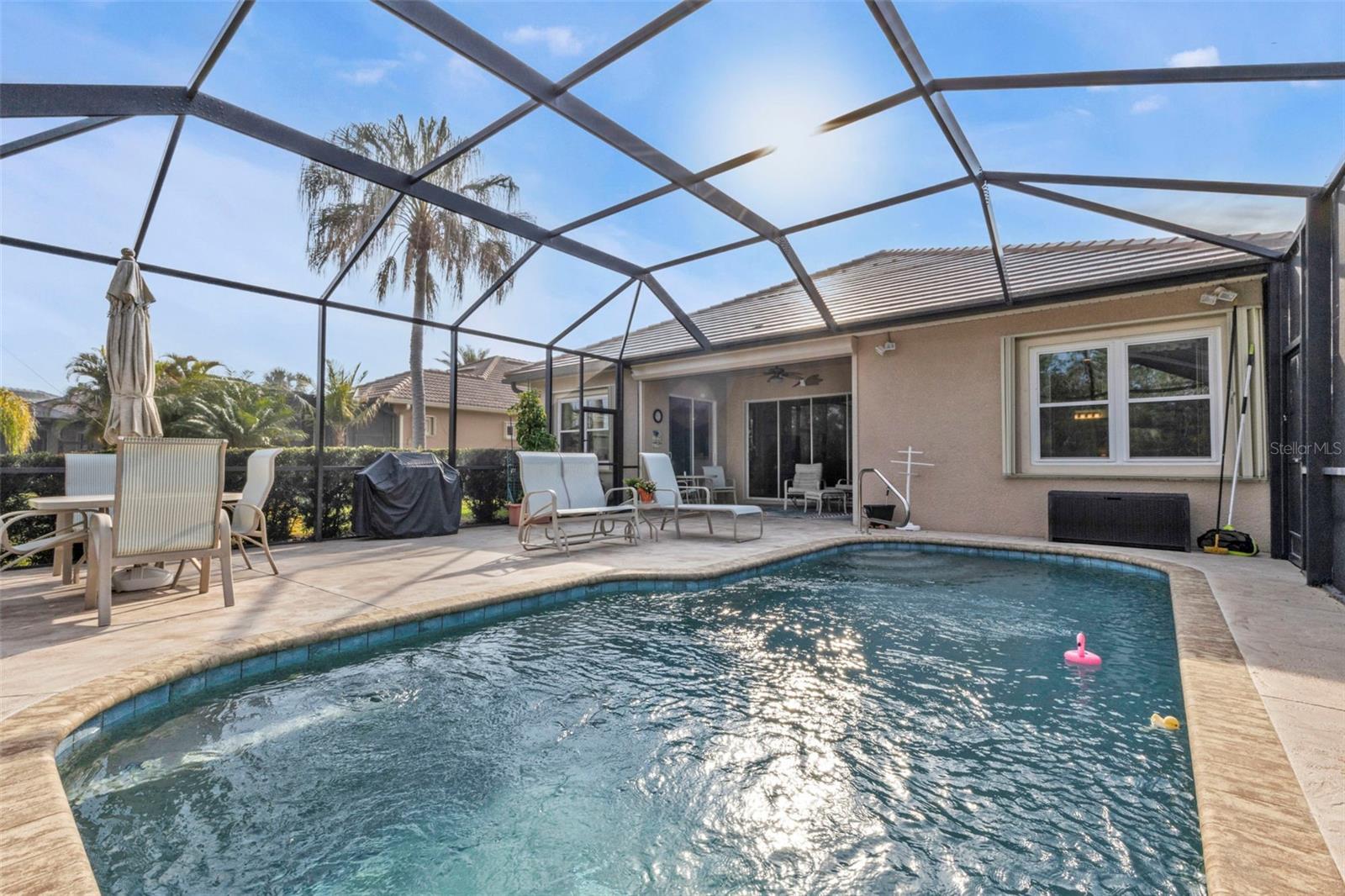 WOW Big reduction on this lovely 2 bed 2 bath W/LARGE DEN w/doors to use as 3rd Bedroom home WITH BRAND NEW ROOF located in Riverwood an Amenity Rich Gated Golf Course Community. Home Features BRAND NEW POLYGLASS TU PLUS ROOF OCT 2024, Custom Hurricane Shutters for easy closing providing you with ease and peace of mind. The outdoor area of your living features an Oversized Enclosed Lanai with plenty of room for patio/dining furniture overlooking peaceful and private setting and a pond view. The living room is perfect for entertaining and flows out the sliding glass doors into the covered patio area overlooking your pool and private back yard. Your Primary Bedroom features not one but two Walk-In Closets! The Primary bath has large walk-in shower, two separate sink areas, and a soaker tub as well. This highly sought after split floor plan is perfect for your family or guests to have a private room/bathroom area! Your Den/Study office area is large enough to accommodate your office and other furniture for TV viewing or arts and crafts and easy to be used as 3rd bedroom. The Dining area is briming with sunlight with plenty of windows and boasts views of your pool/patio area and private peaceful back yard! The home features Plantation custom window treatments and so many more extras like crown molding. You will not want to miss out on this well-appointed home located in Riverwood, a premier Gated Golf Course Community in Southwest Florida offers Amenities and Activities, including a large resort-style pool w/lap lanes, a walk-in shallow end, and a separate hot tub, six new Pickleball Courts, fantastic and well maintained Har Tru tennis courts w/tennis pro, a new fantastic large State-of-the-Art Fitness center, two Dog Parks, Lawn Croquet, Bocce Courts, Arts and Crafts, and many social activities organized by a full time Community Activities Director. Riverwood Embrace the Natural Beauty while taking long walks or runs on the mature tree lined sidewalks and tranquil ponds and lakes. The community is surrounded by a 4.5 Star rated Golf Club (no mandatory membership), adding to the active lifestyle of Riverwood. The Riverwood Private Beach Club is conveniently located on Englewood Beach with full time staff, private parking, grills, covered areas, restrooms and showers (current wait list). When you want to experience and enjoy the surrounding area, this outstanding community is close to Beautiful Beaches, Sporting Venues, World-class fishing, boating, dining, upscale resorts, and shopping are just minutes away. This Gated Golf Course Community is conveniently located near the new Sunseeker Resort, which has a variety of restaurants open to the public, the Tampa Rays and Atlanta Braves Spring Training facilities, Boating, World-Class Fishing, and the many beautiful beaches of Southwest Florida, Riverwood’s location provides access to shopping, recreation, entertainment, restaurants, and fantastic beaches! CDD fee is included in property taxes. (more photos coming!)