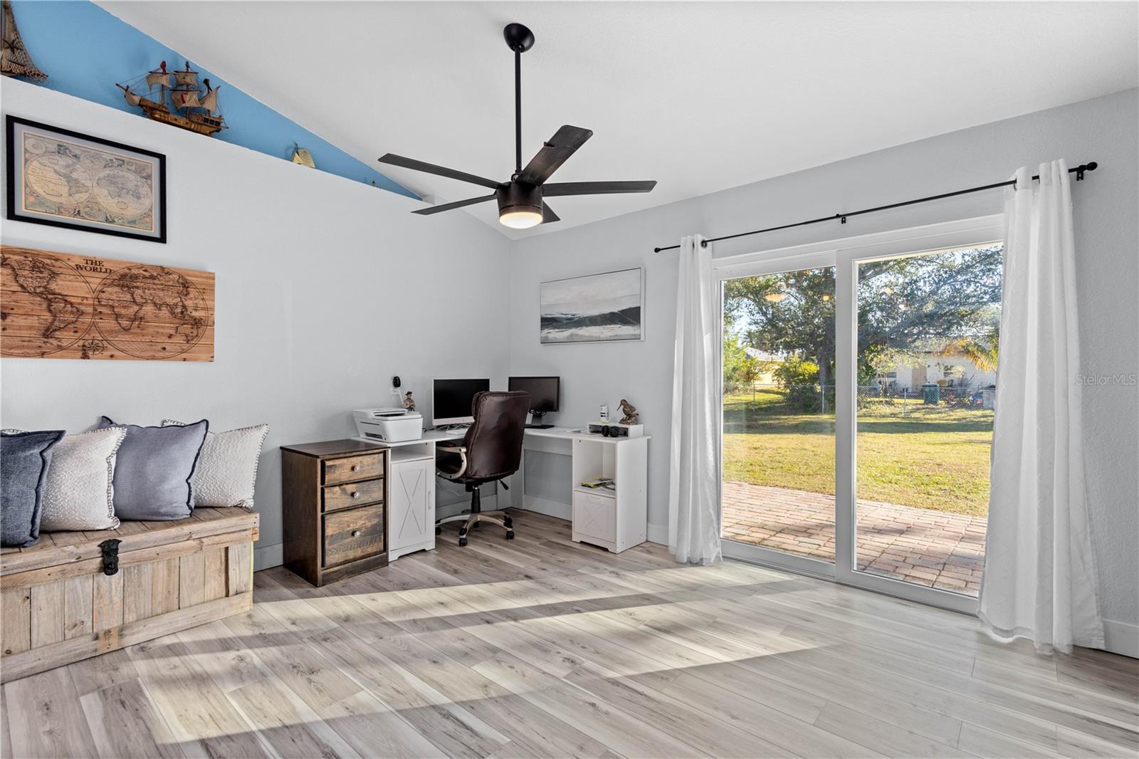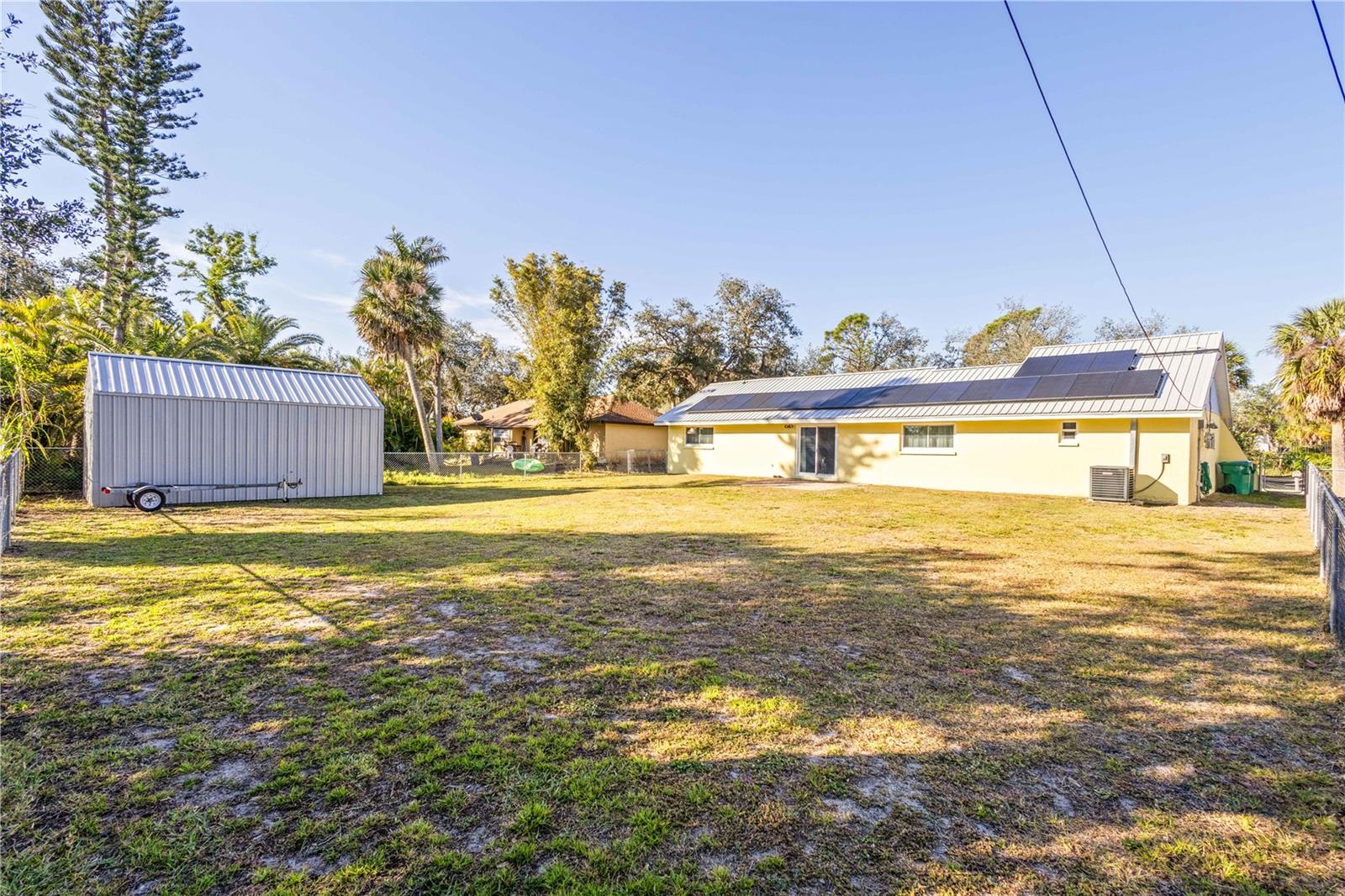 FULLY PAID SOLAR PANELS, AVG. MONTHLY ELECTRIC BILL $25.00!!! FLOOD INSURANCE TRANSFERALBLE!!! SELLER IS OFFERING A 2-1 INTEREST RATE BUY DOWN!!! NO FLOODING IN THE 7 YEARS HE HAS OWNED THE HOME!!! MASTER CLOSET EASILY CONVERTABLE TO 2ND BATHROOM, THE PLUMBING IS STILL IN THE WALL. Make sure to see this 2-Bedroom Home with Modern Updates and Energy-Efficient Features. Nestled in a community of Port Charlotte which offers quick access to fishing, boat ramps, beaches, parks, golfing, shopping and dining. This 2-bedroom, 1-bathroom home offers a blend of comfort, style, and sustainability. With its updated features, energy-efficient upgrades, and large fenced backyard, this property presents an ideal opportunity for those seeking a low-maintenance and eco-friendly lifestyle. The open-concept floor plan creates a welcoming atmosphere, perfect for entertaining guests or relaxing with family. The home features luxury vinyl flooring, an updated kitchen with granite countertops, stainless-steel appliances, and ample cabinet space. An extension of the kitchen provides additional storage space for pantry staples and household items, ensuring a clutter-free living environment. The home is equipped with a newer metal roof (2020), newer AC and heating units (2022), and a tankless water heater (2020), resulting in lower energy bills and environmental friendliness. A portable generator connection to the house panel offers peace of mind during power outages. A large screened-in lanai at the front of the house provides a relaxing space to enjoy the natural beauty of Florida, with views of the surrounding flora. This large lot offers plenty of room for outdoor activities, gardening, or even adding a pool. A 12x22 storage/work shed with metal roof provides ample space for tools, equipment, or hobbies. A perfect place to enjoy the Florida Lifestyle, don't miss out on this one!