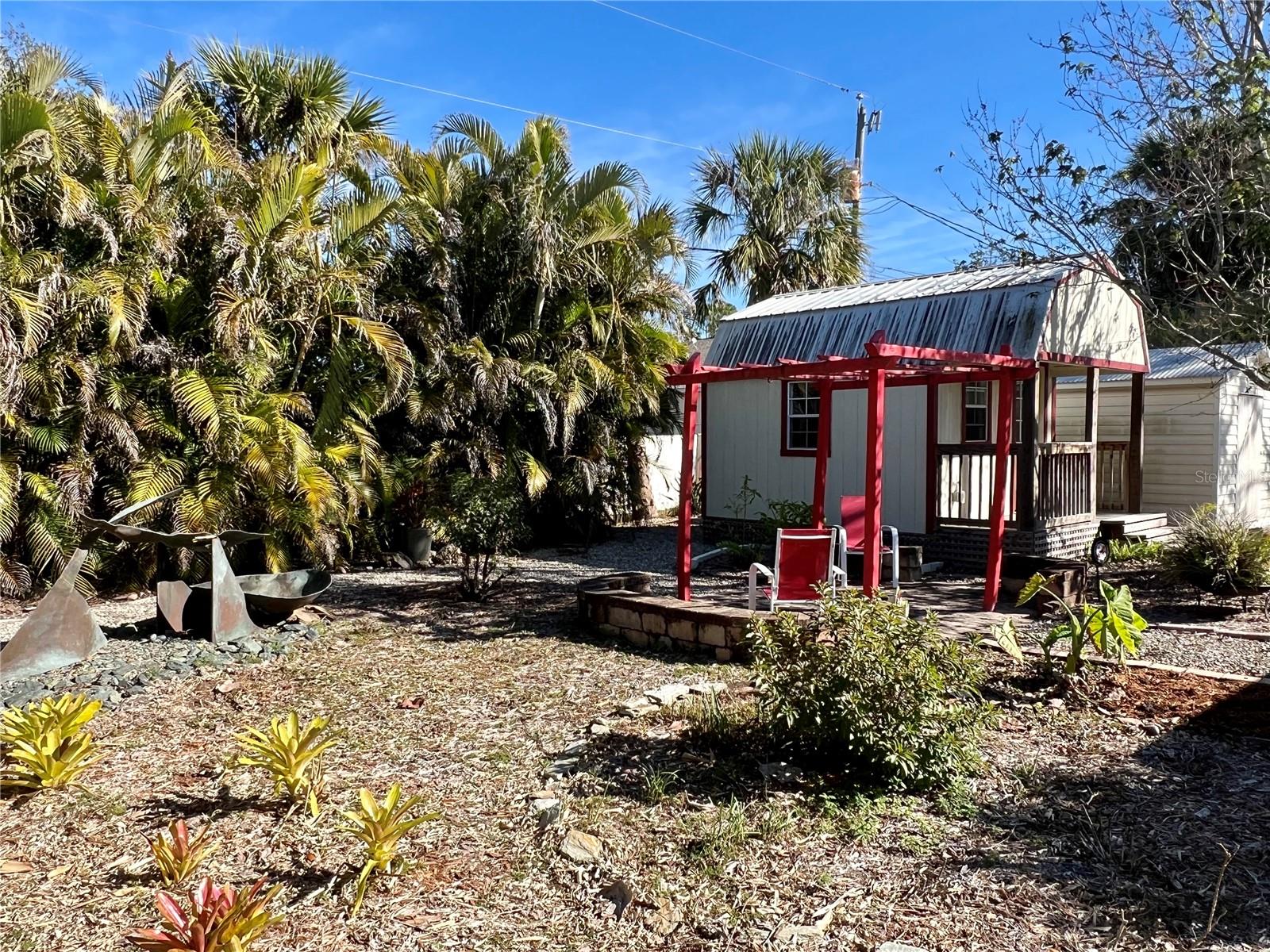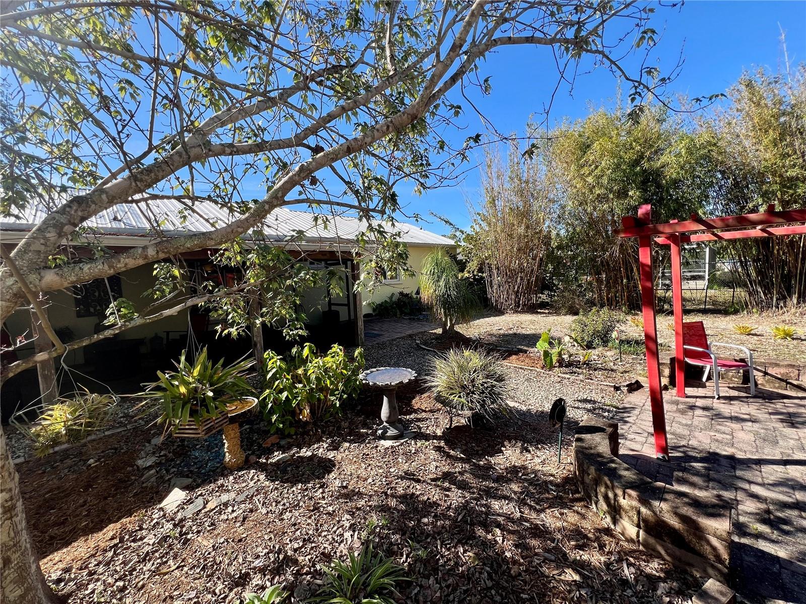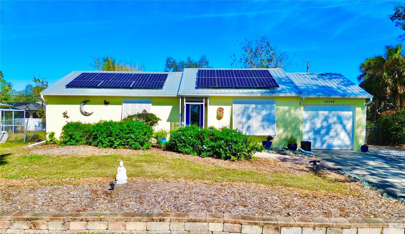 Welcome to "THE ARTIST RETREAT" – Your Private Tropical Zen Garden Oasis! Nestled in a peaceful and highly desirable neighborhood in Port Charlotte, this one-of-a-kind 2-bedroom, 2-bathroom retreat offers a tranquil backyard paradise filled with amazing features that set it apart from the rest. A fabulous 192 square foot shed was added in 2021, complete with vinyl flooring, insulation, A/C and electric... perfect for a dreamy craft room, she-shed or even a man cave! Plus, there is another 180 sq ft shed to store all your toys! Located in flood zone X!! Key Features of this amazing home are as follows: *** METAL ROOF (new in 2022) & WHOLE HOME SOLAR – Energy Efficient & Worry-Free! ** Beautifully Updated Kitchen – Granite Countertops, Backsplash & Breakfast Bar! ** Vaulted Ceilings & Open Layout – Bright & Airy Feel! ** Spacious Primary Suite – Massive Walk-in Closet & Luxurious En-Suite Bath ** Tankless Water Heater & Home Re-piped ** Double-Pane Slider (2015) Leading to an abundantly sized rear lanai overlooking the green space! ***OUTDOOR PARADISE: ** Tropical Zen Garden – Private & Lush Backyard Retreat ** Detached barn style She Shed/Workshop (193 sq. ft.) – Insulated, A/C & Electric! ** Additional Large 180 sq ft Storage Shed – Plenty of Space for Tools & Toys *** Extra Parking, Including Side Space for Convenience This home is truly a rare gem in Port Charlotte, offering peace, privacy, and functionality. Conveniently located near shopping, golf courses, dining, parks, and more, The Artist Retreat is ready for its next owner to fall in love. Garage is currently being used as an art studio, however upon request, the seller will convert it back to a garage!!