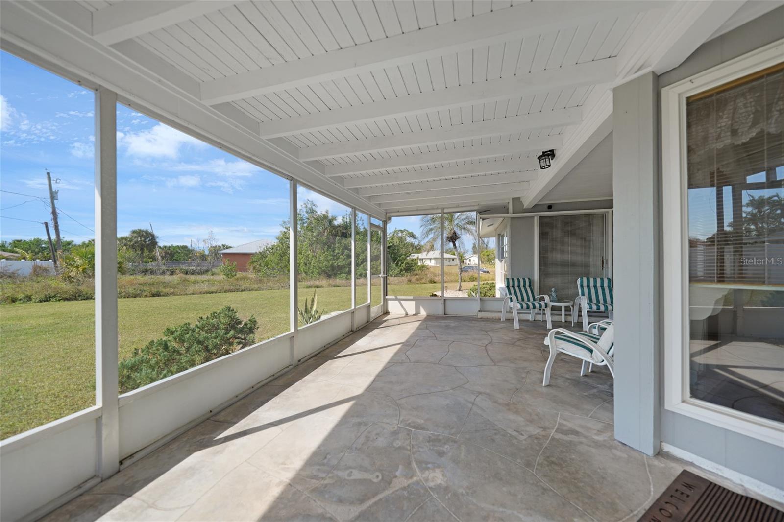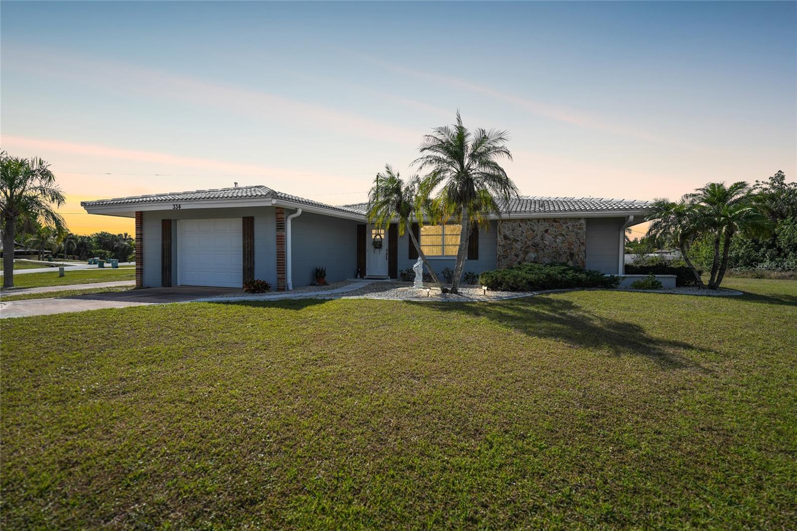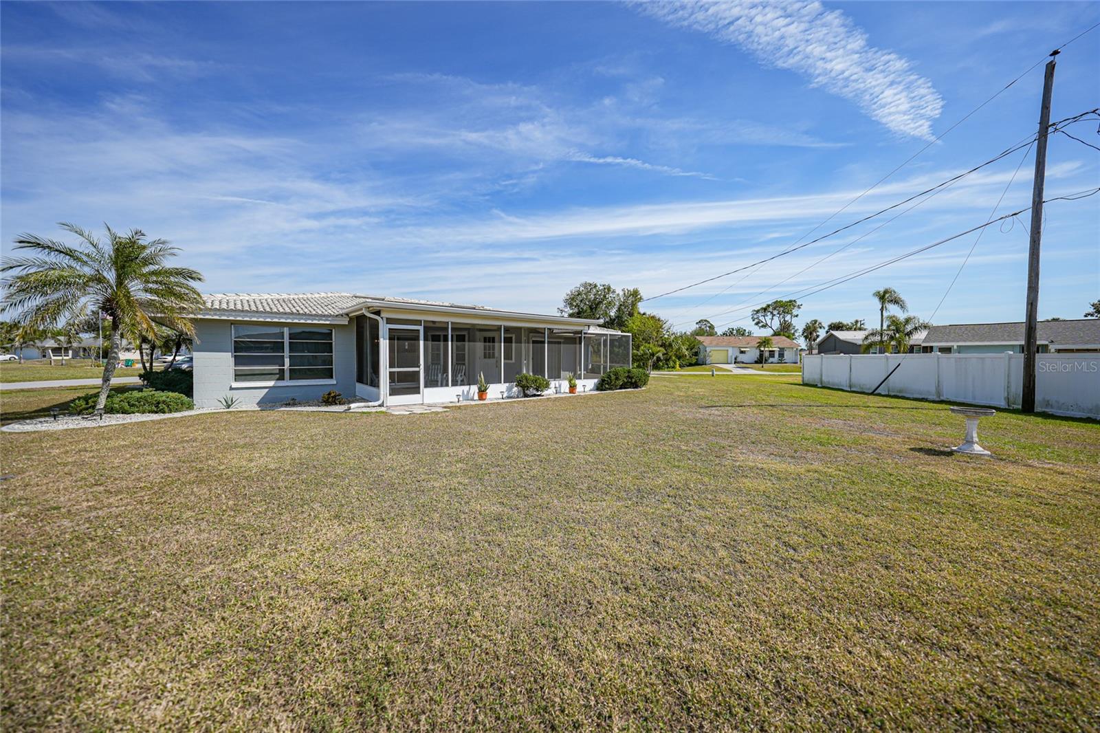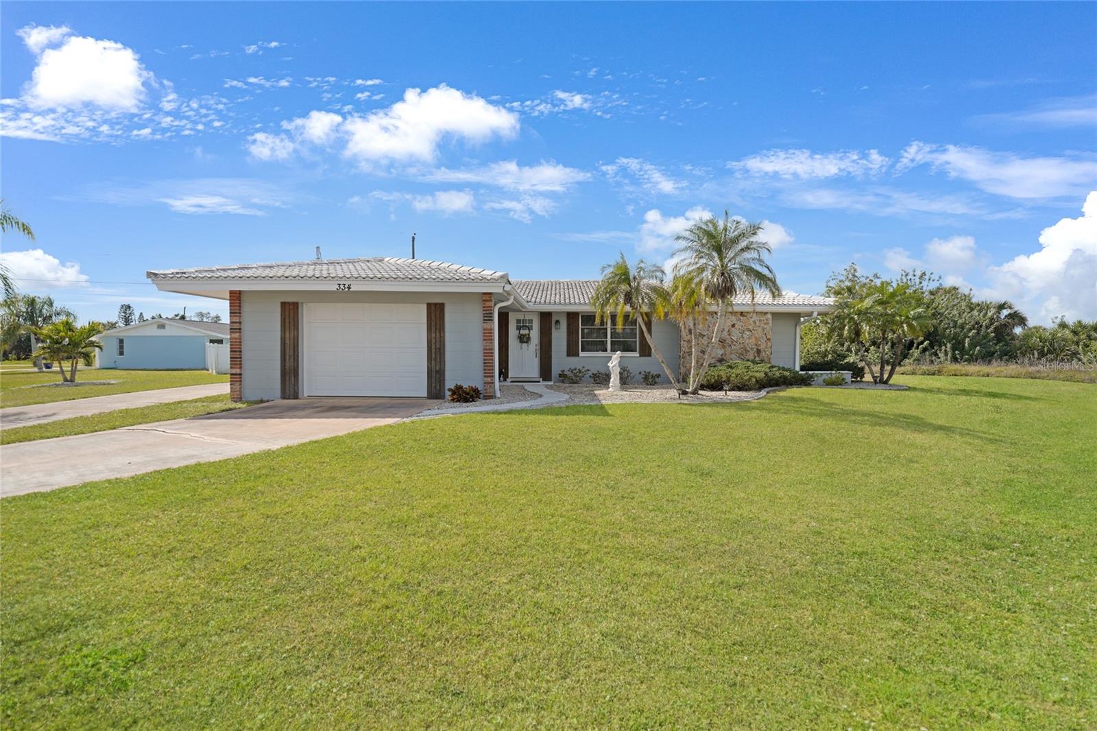 Turnkey Ready Home! This well-maintained 1,364 sq ft, 2-bedroom, 2-bathroom home with a single-car garage is situated on a generous oversized corner lot. Enjoy the convenience of public water and sewer with no HOA or CDD fees. Notable updates include a New Water Heater and 3-ton 14 SEER A/C in 2021, a Whole House Repipe in 2021, new 150 AMP Electric Panel Box & Riser in 2022, and Updated Electrical Outlets and GFI’s in 2022. As you arrive, you'll find plenty of parking space for family and guests with an oversized parking pad in addition to the main driveway and mature landscaping with concrete curbing and rock beds. Step inside to a spacious living room that flows seamlessly into the dining area, which opens to the lanai via sliding glass doors. The new luxury vinyl flooring and fresh interior paint create a modern and inviting feel throughout. The spacious kitchen features hardwood cabinetry, a new backsplash, a cozy dinette area, and a new garbage disposal. The primary bedroom offers lanai access, a walk-in closet, and an attached bathroom with new toilet and faucets. Guests will enjoy the second bedroom, located on the opposite side of the home, along with a private full bathroom. Step outside to the screened lanai, complete with a decorative patio stone area, and relax while enjoying the peaceful backyard, with plenty of space to add a pool. The attached garage features a laundry area with a new washer and dryer. Additional highlights include impact front door, kitchen door and garage door, new garage door opener, smoke free home, custom wood shutters, exterior painting (including facia, soffits, and doors in 2022), new window blinds, and large windows that allow for plenty of natural light. This home is located in a highly desirable neighborhood known for its walkability, where residents enjoy walking, jogging, and biking. Within minutes, you can reach local stores, restaurants, and parks on foot or by bike. There are also two nearby boat launch sites, just a 5-7 minute drive away. One of the parks features a community pool, kids' playground, basketball and tennis courts, and public restrooms. US 41 is less than 3 minutes away. Punta Gorda Airport is approximately 15 minutes away, and Manasota Key Beach and Boca Grande Island are about 45 minutes away. Don't miss the opportunity to make this beautiful home yours!