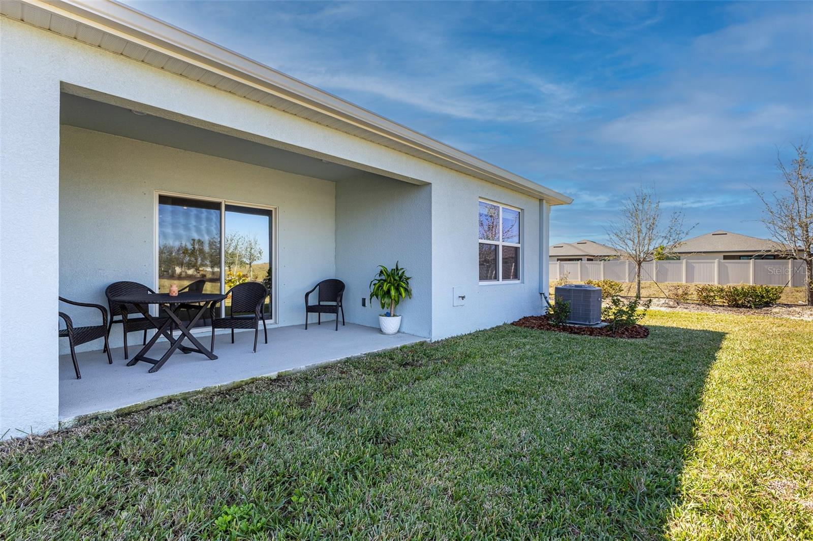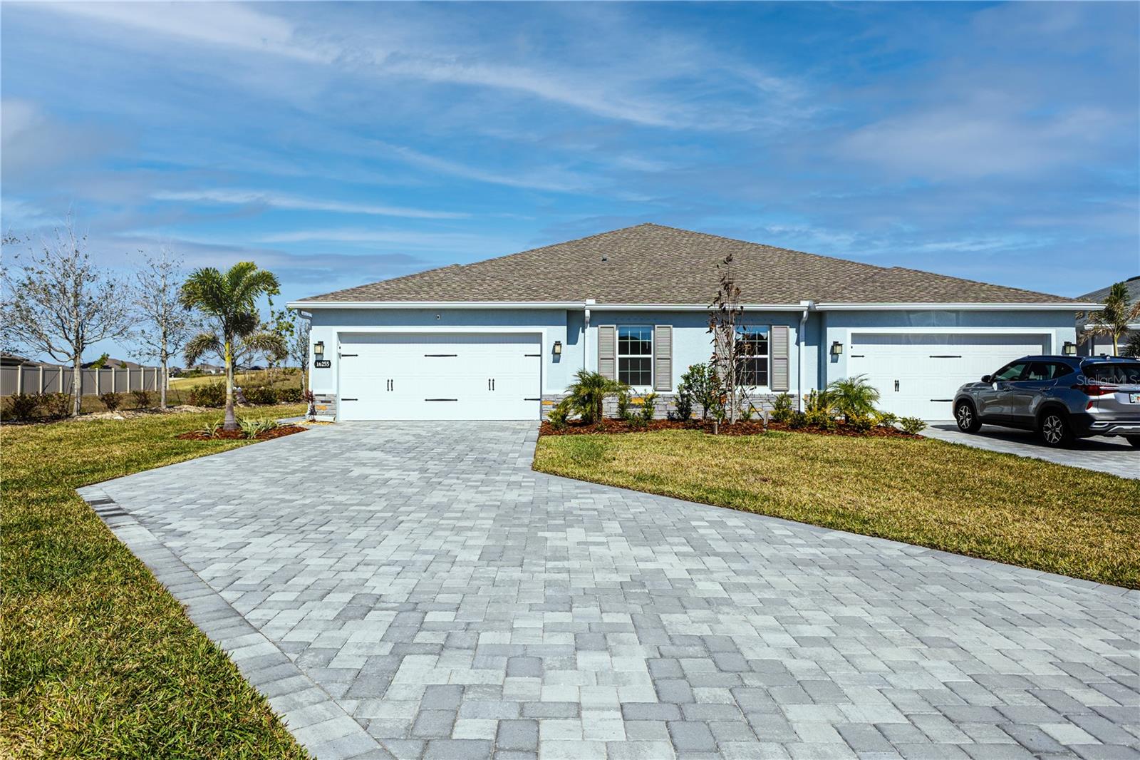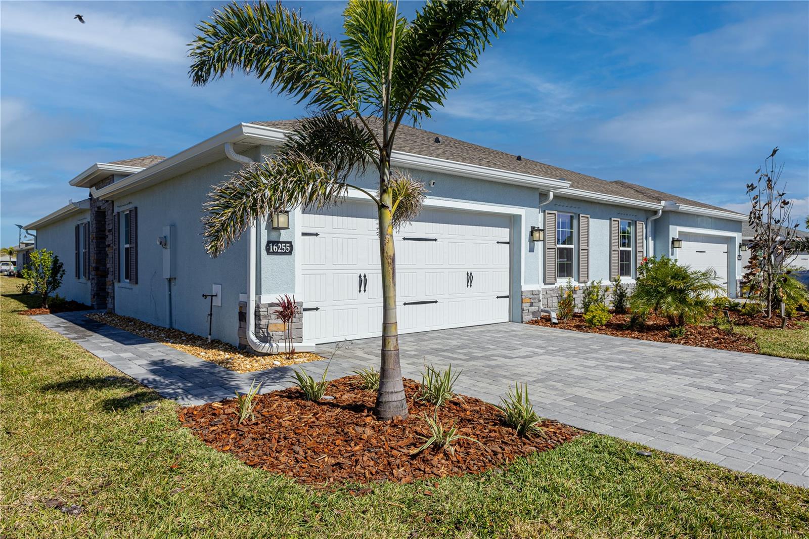 Step into this stunning, move-in ready 2024 BUILT VILLA located in the sought-after community of “The Palms at Westport”! Tucked away at the end of a peaceful, quiet corner lot on a cul-de-sac, this spacious 1,506 sq. ft. home offers 3 bedrooms, 2 bathrooms, and a 2-car garage — all designed for modern living and comfort. As you step inside, you’re greeted by an open-concept great room that flows seamlessly throughout the home. The kitchen is the heart of the space, featuring a large QUARTZ center island, crisp white wood cabinetry with elegant crown molding, pull-out drawers for easy access, and gleaming stainless steel appliances. The tiled backsplash adds a touch of style, while the deep pantry provides plenty of storage. Whether you're cooking a gourmet meal or enjoying a casual breakfast, this kitchen will inspire you. The high ceilings, laminate and tile flooring, and recessed lighting give the entire home a bright and airy feel. The spacious living room offers sliding doors that lead out to the covered patio area, perfect for relaxing or entertaining guests. The adjacent dining room, conveniently located just off the kitchen, makes meal time a breeze. The master suite is a true retreat, featuring an ensuite bathroom with dual quartz sinks, a walk-in shower, and a large walk-in closet to keep everything organized. The two additional bedrooms are generously sized with oversized closets, offering plenty of room for storage or personal space. The guest bathroom includes a tub/shower combination with beautiful tiled details. Built with durability in mind, this villa also comes with hurricane shutters for added peace of mind during storm season. The oversized corner lot provides extra outdoor space, and the extended paver driveway and walkway add to the home's curb appeal. In addition to the fantastic home itself, this community offers a variety of amenities that make every day feel like a vacation. The Centennial Park Recreational Center features basketball, pickleball, volleyball, a fitness center, and even a disc golf course. There's also a full range of outdoor sports fields, including baseball and soccer, to keep active lifestyles in mind. With a low HOA fee of just $167.84 per month, you'll enjoy affordable maintenance without sacrificing quality of life. The home’s central location is close to shopping, schools, the Town Center Mall, the Charlotte Baseball Stadium, and just a short drive to Englewood Beach and the Sunseekers Waterfront Resort. Don’t miss out on the chance to own this gem! Call today to schedule your private viewing and start the next chapter in your life at the Palms at Westport!