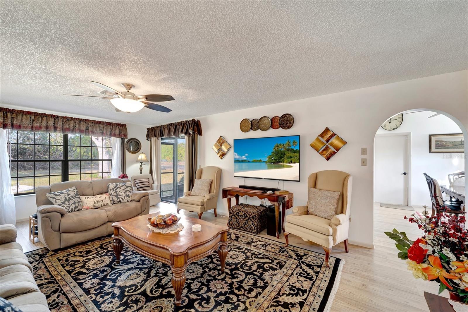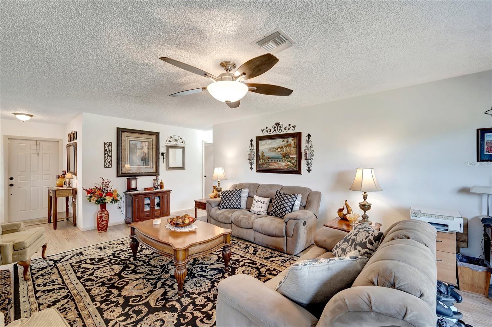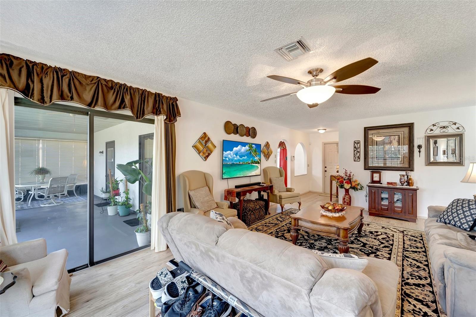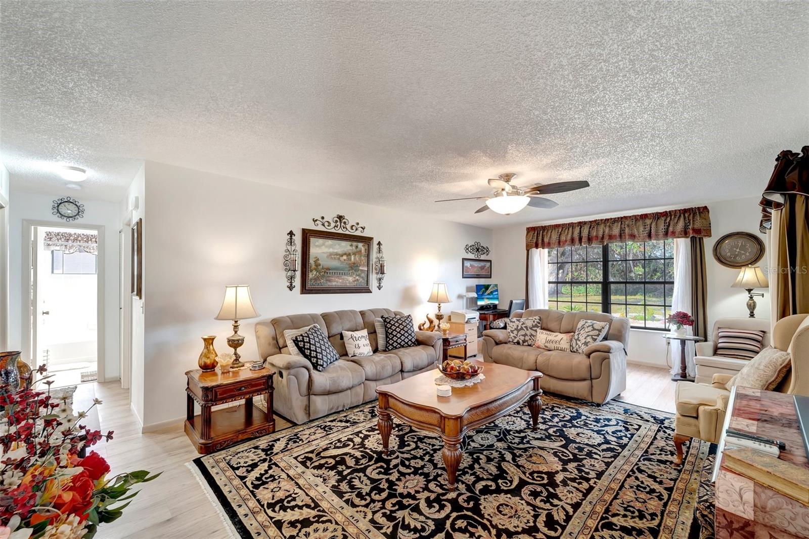 Welcome to this home located in the vibrant, family-friendly community of Oak Hollow with amenities. Step inside through a foyer entry to a bright and airy kitchen featuring soaring high ceilings, creating a spacious and open feel. The kitchen flows seamlessly into the dining room, perfect for entertaining or family gatherings. Sliding glass doors from either kitchen or living room open up to a peaceful lanai, ideal for enjoying your morning coffee or evening sunsets. The generously sized master suite creates a relaxing retreat, with plenty of room to unwind. Several updates include: new roof, new a/c, plumbing, LVP flooring, painted inside and out. Situated on a large lot with mature trees providing privacy and tranquility in the backyard--oasis for outdoor living. A rare find in a well-established neighborhood with amenities. This home truly offers the best of both comfort and convenience. Close to shopping and restaurants.