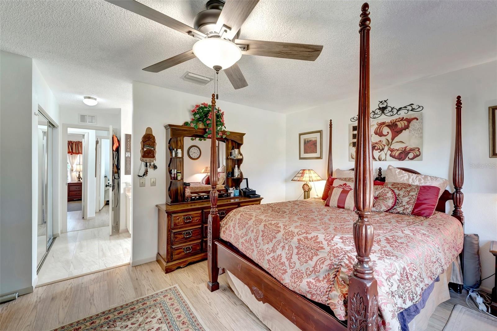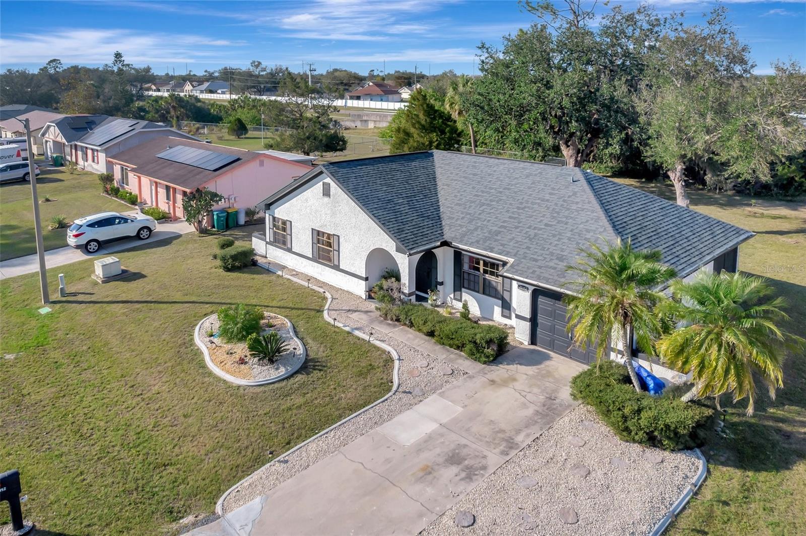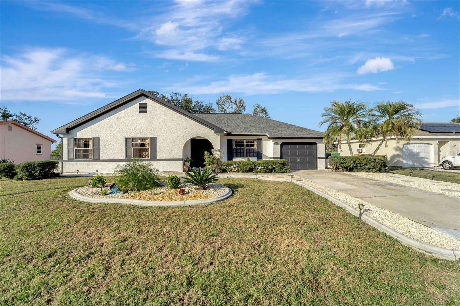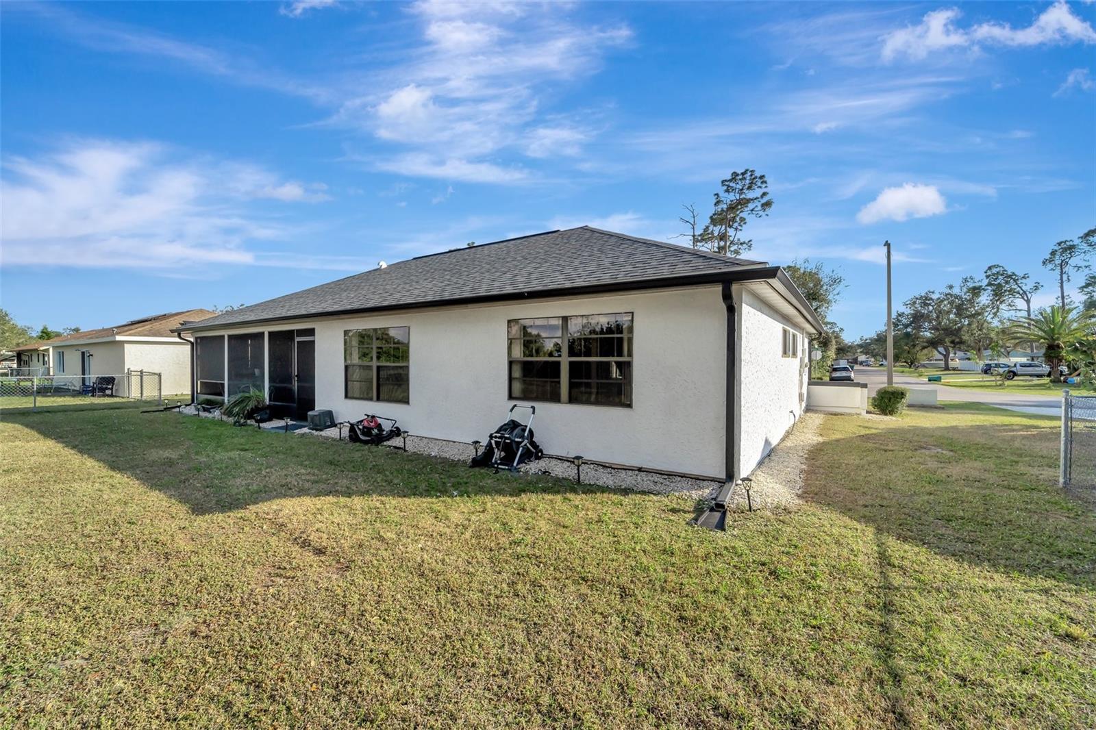 Welcome to this home located in the vibrant, family-friendly community of Oak Hollow with amenities. Step inside through a foyer entry to a bright and airy kitchen featuring soaring high ceilings, creating a spacious and open feel. The kitchen flows seamlessly into the dining room, perfect for entertaining or family gatherings. Sliding glass doors from either kitchen or living room open up to a peaceful lanai, ideal for enjoying your morning coffee or evening sunsets. The generously sized master suite creates a relaxing retreat, with plenty of room to unwind. Several updates include: new roof, new a/c, plumbing, LVP flooring, painted inside and out. Situated on a large lot with mature trees providing privacy and tranquility in the backyard--oasis for outdoor living. A rare find in a well-established neighborhood with amenities. This home truly offers the best of both comfort and convenience. Close to shopping and restaurants.