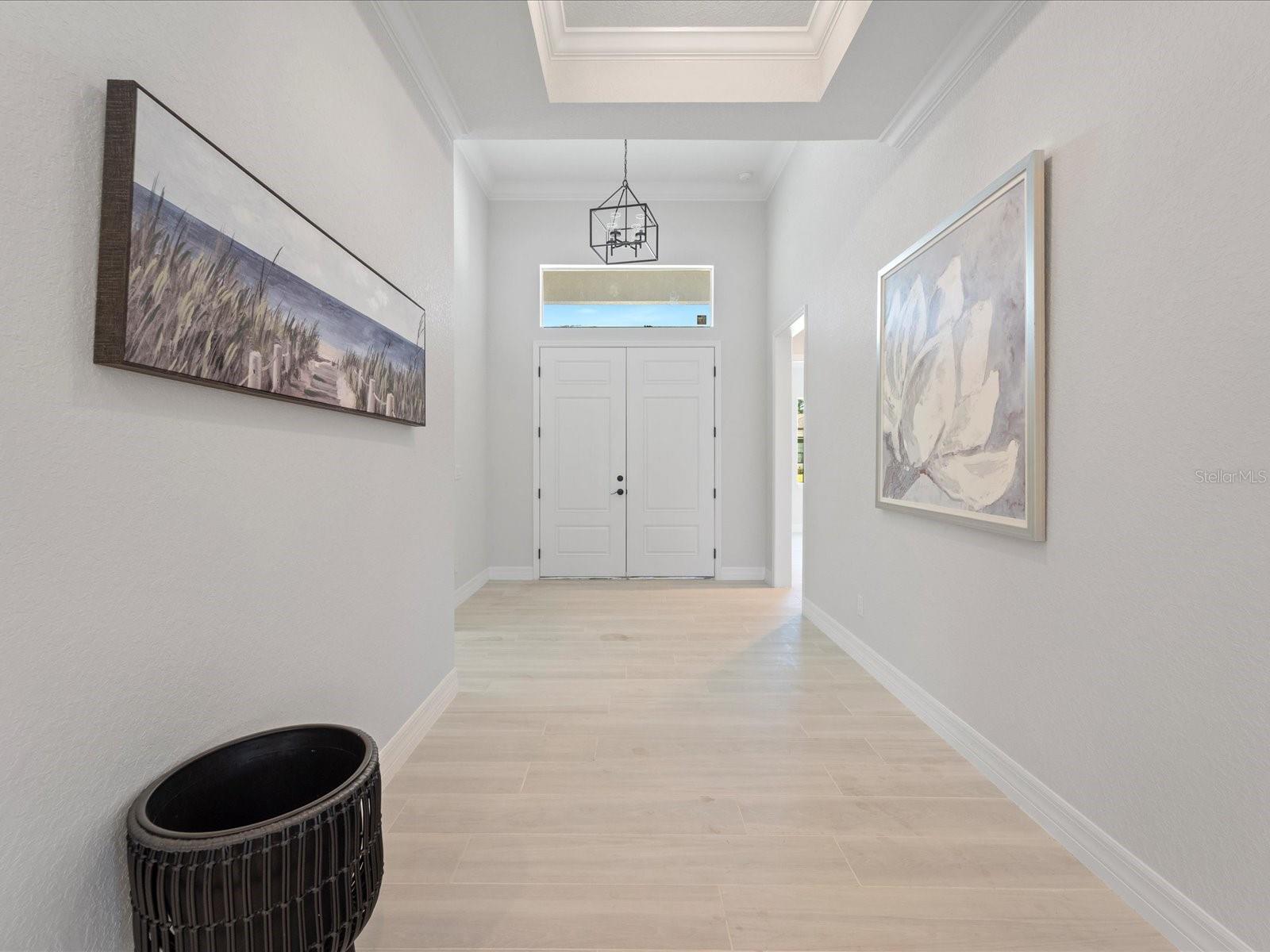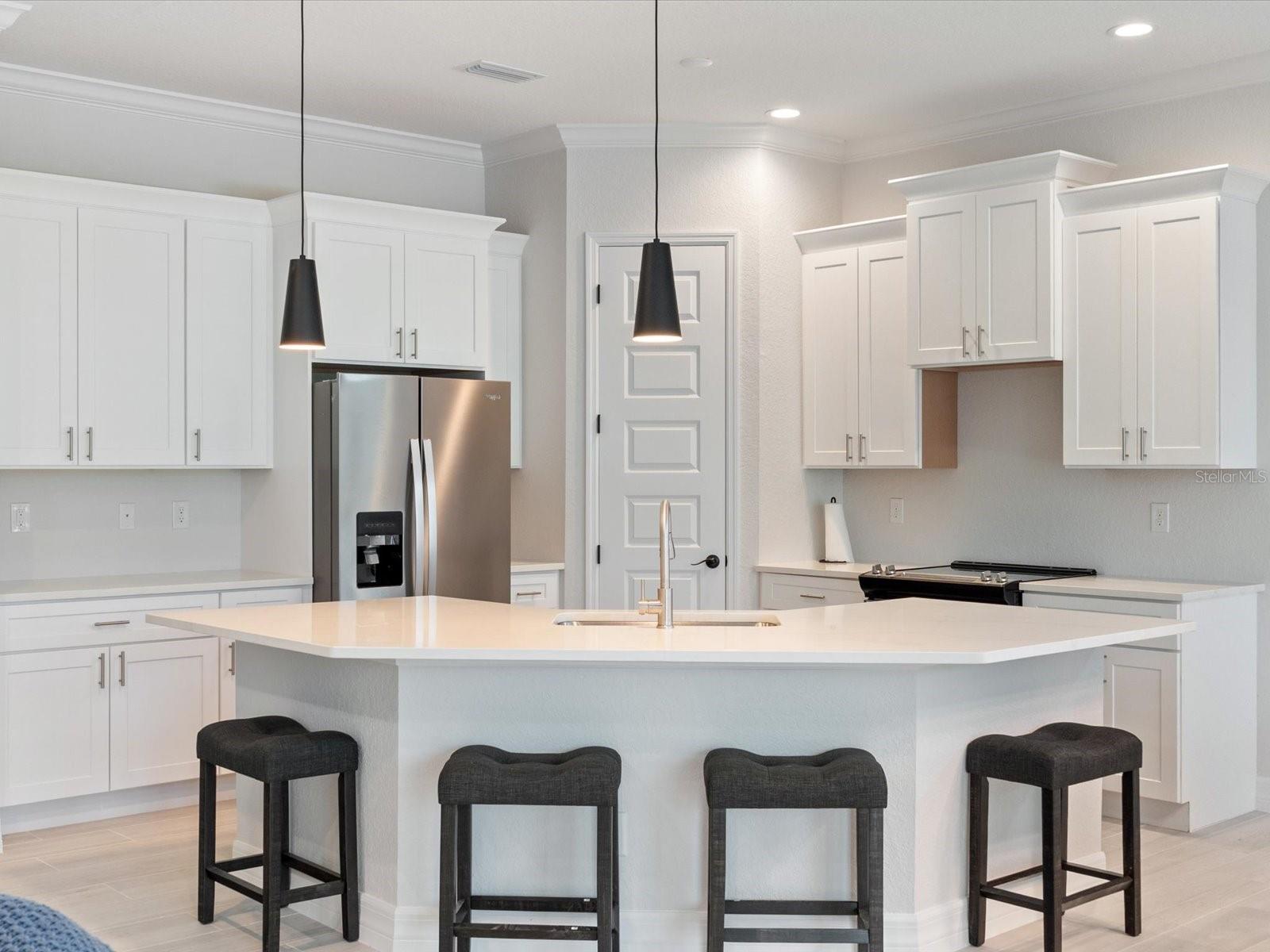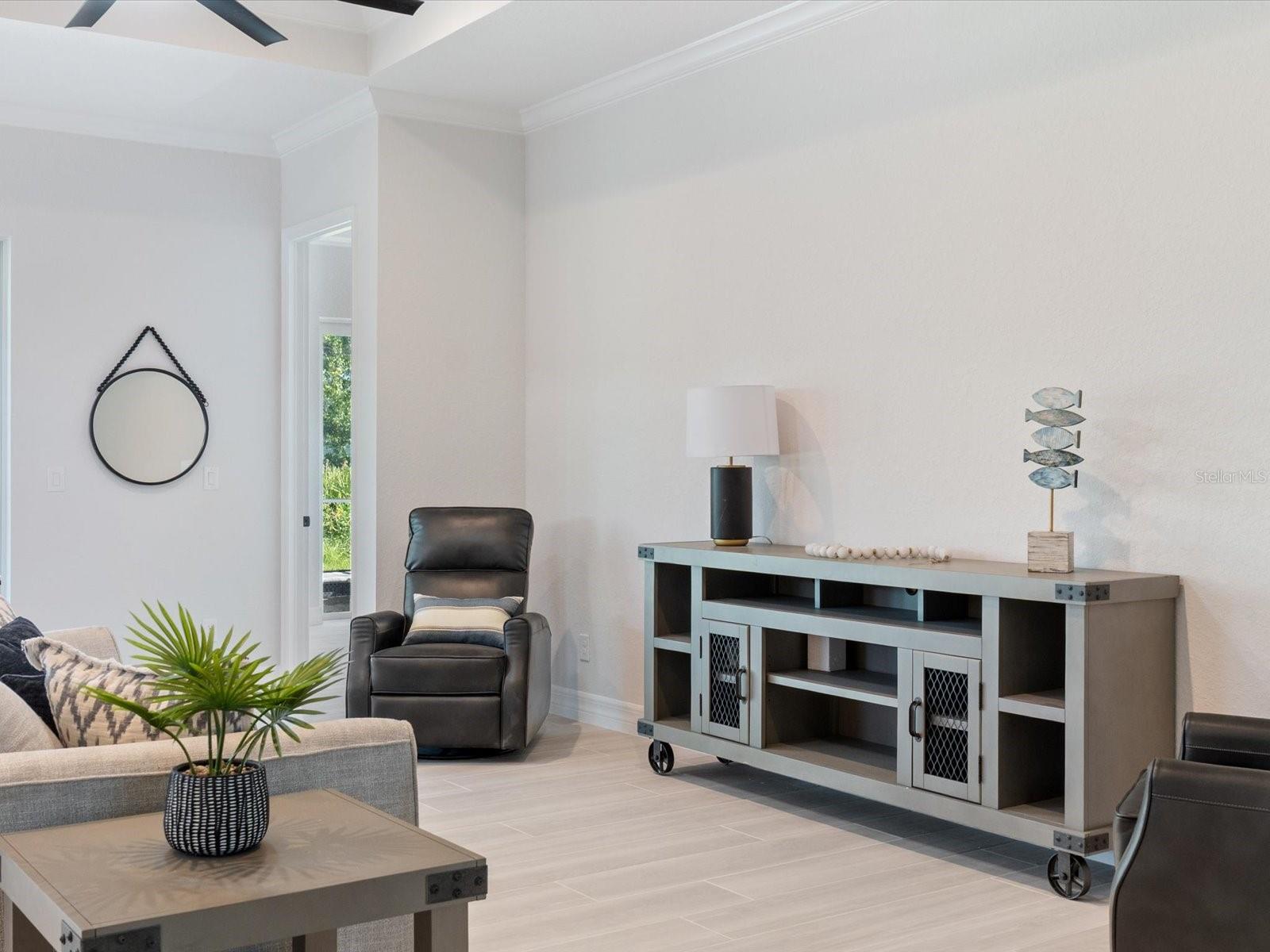 This BRAND-NEW home exudes quality craftsmanship—unmistakable from the moment you arrive! The coach-lit driveway, shiplap-accented exterior, welcoming front porch, and elegant double-door entryway set the stage for the beauty found within. Located in the highly desirable beach community of Englewood, this 4-BEDROOM, 2-BATHROOM, 3-CAR GARAGE home was built with no detail overlooked and no feature understated! Inside, you’ll find soaring volume ceilings and 8-foot doors throughout. The Living Room features an impressive tray ceiling with recessed lighting, crown molding, a 6-foot ceiling fan, and a 3-panel sliding glass door that opens to the covered lanai—creating a bright, sunlit sanctuary. The separate Dining Area, enhanced by a set of sliding glass doors, offers ample space for entertaining and your favorite sideboard. At the heart of this open, convenience-driven floorplan is the chef-inspired Kitchen—complete with an incredible, working ISLAND, WALK-IN PANTRY, high-end stainless steel appliances, TILE BACKSPLASH, and solid wood, SOFT-CLOSE cabinetry topped with luxurious veined QUARTZ countertops. Brushed nickel hardware and thoughtful finishes make this the hub of the home and the centerpiece for gatherings. The split floorplan provides owner privacy, with the Primary Suite offering direct lanai access, a tray ceiling, transom window for natural light and privacy, two walk-in closets, and a luxurious en suite bathroom featuring an enormous walk-in tiled shower, DUAL SINKS, vanity with QUARTZ countertops, and a private water closet. Throughout the home, you’ll find a premium lighting package including ceiling fans with lights, pendant fixtures over the island, and elegant chandeliers in the foyer and dining room. Easy-care, allergen-free porcelain plank flooring runs throughout. Showcasing one of Interior Designers’ top picks for 2025, the home includes stylish shiplap accents on the kitchen island, Living Room wall, and foyer feature wall. For peace of mind, this home is equipped with HURRICANE IMPACT WINDOWS AND SLIDING GLASS DOORS—offering security and confidence even when you’re away. Step outside to enjoy an impressive 23 feet long LANAI, perfect for entertaining. The oversized 30’x23’, 682 sq. ft. 3-car garage features two hurricane-rated overhead doors, providing extra parking and maneuvering space. With NO HOA, this property offers exceptional flexibility—live here year-round, rent it seasonally, or Airbnb it. Built by a local Floridian builder who understands what’s needed for longevity and durability in Southwest Florida, this home features a HIP ROOF design for long-term insurance discounts, OFF-RIDGE roof venting, and STEM WALL construction, which far exceeds monolithic slabs for storm resilience. Ideally located near golfing communities, marinas, boat launches, and Englewood’s beautiful beaches, this nearly 2,100 sq. ft. home feels even larger thanks to its open layout and soaring ceilings. This gem is priced to sell and waiting for you—call today for your private tour!
