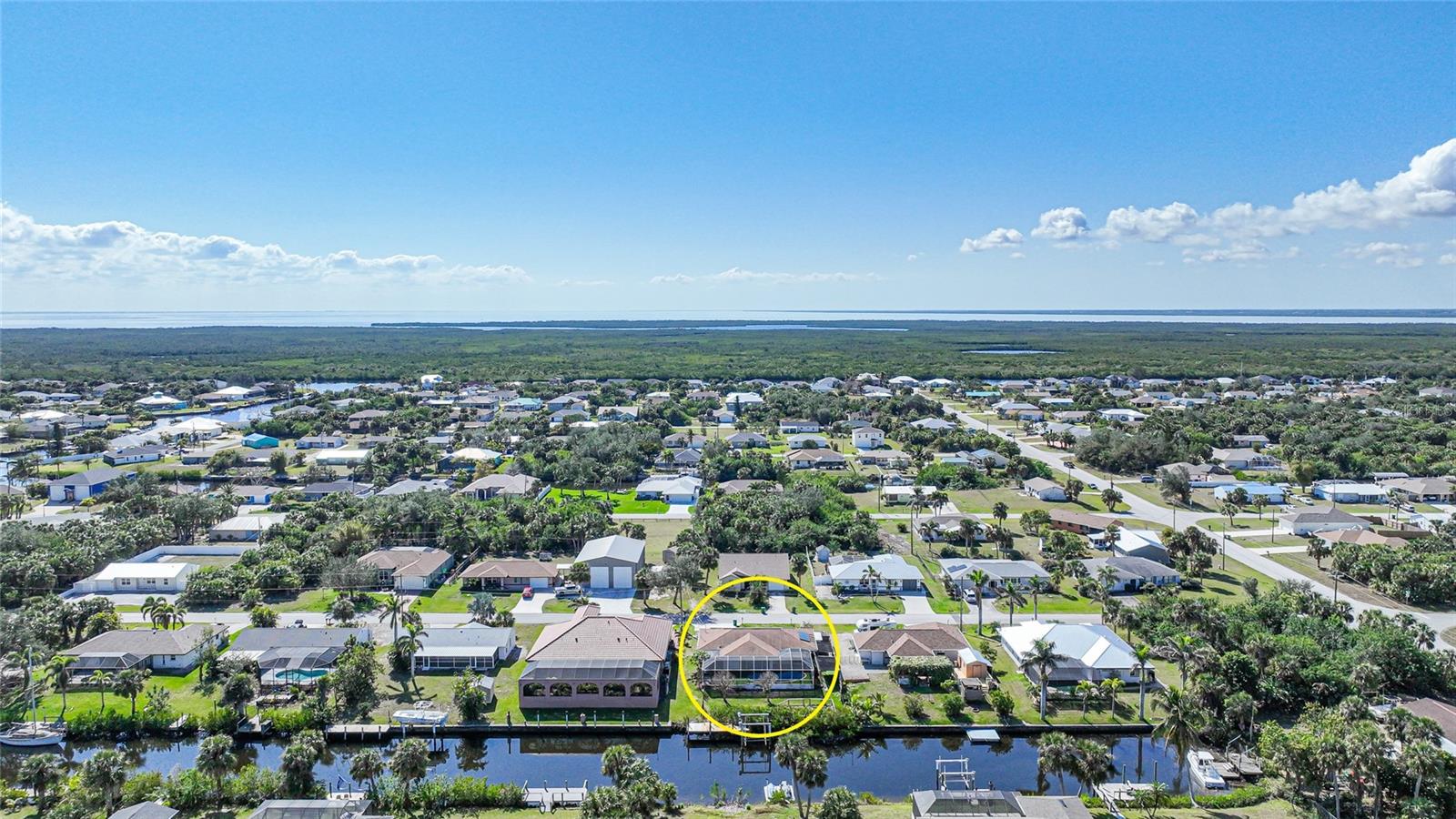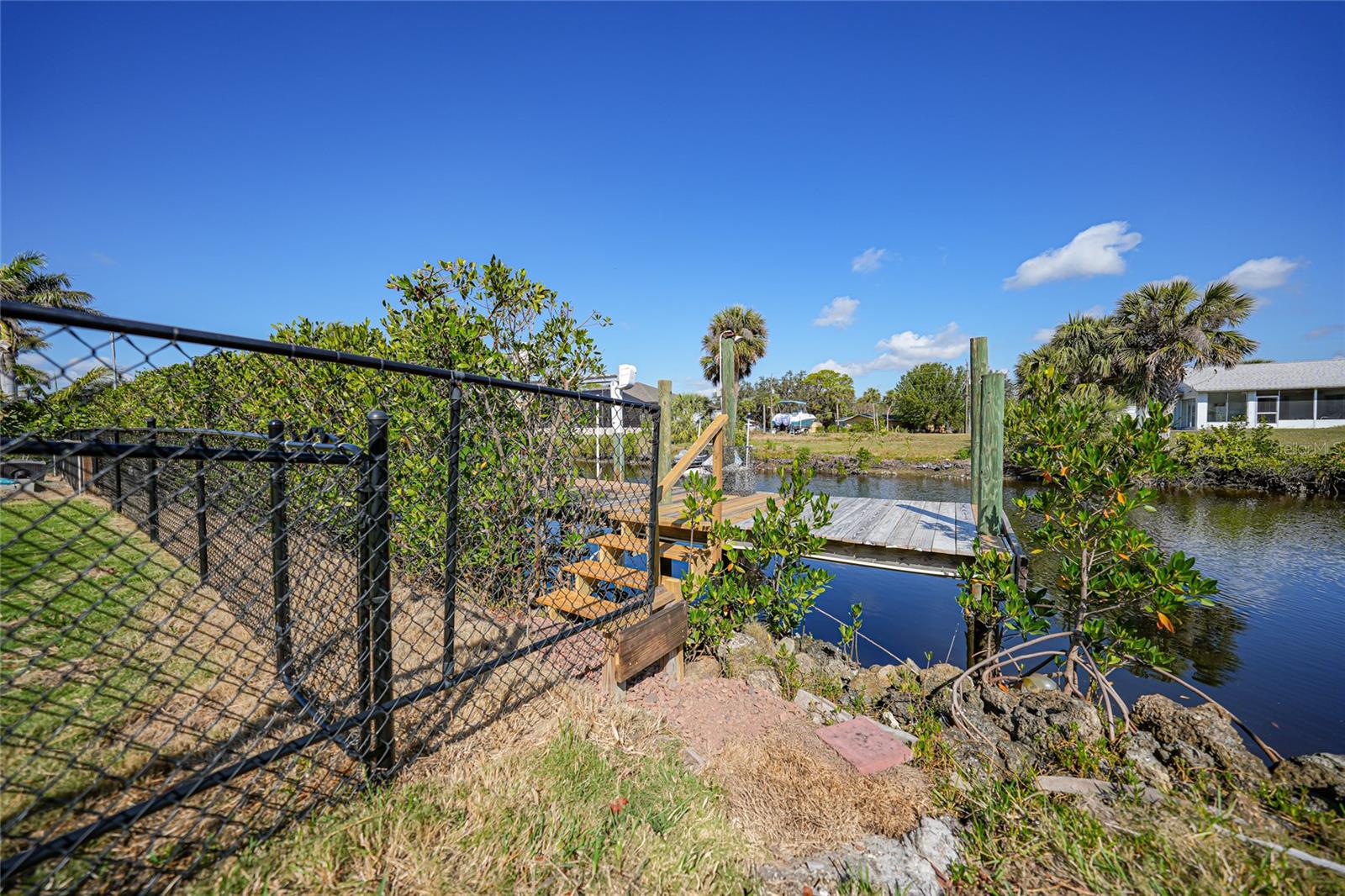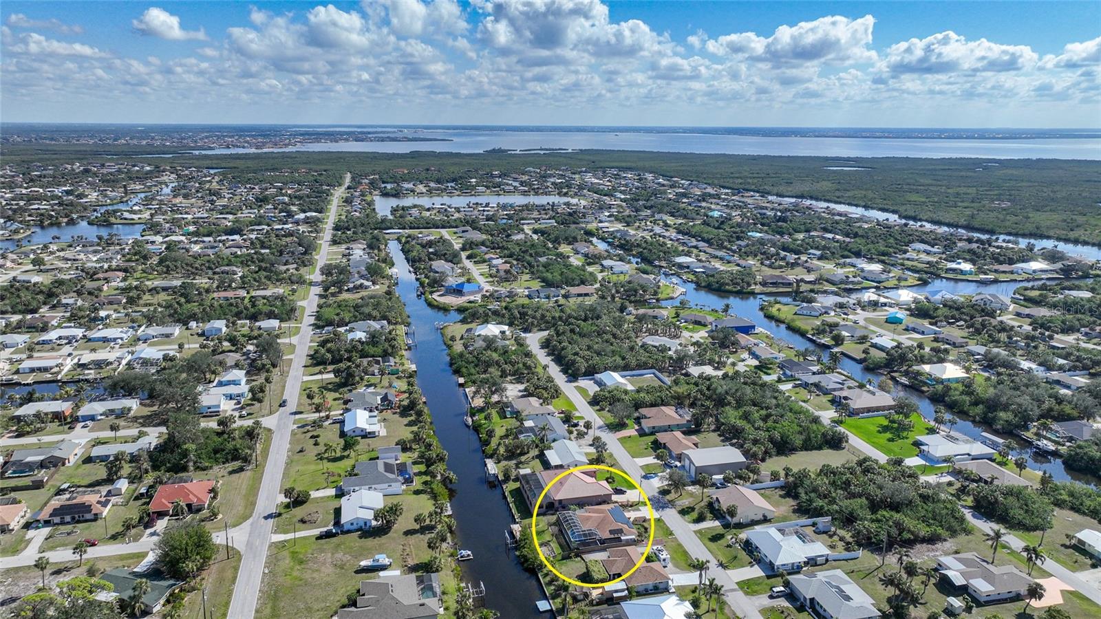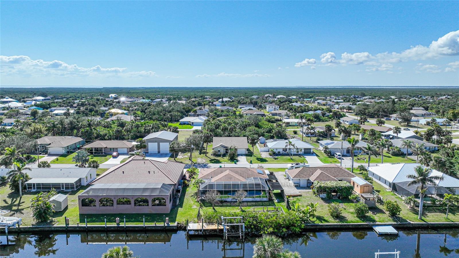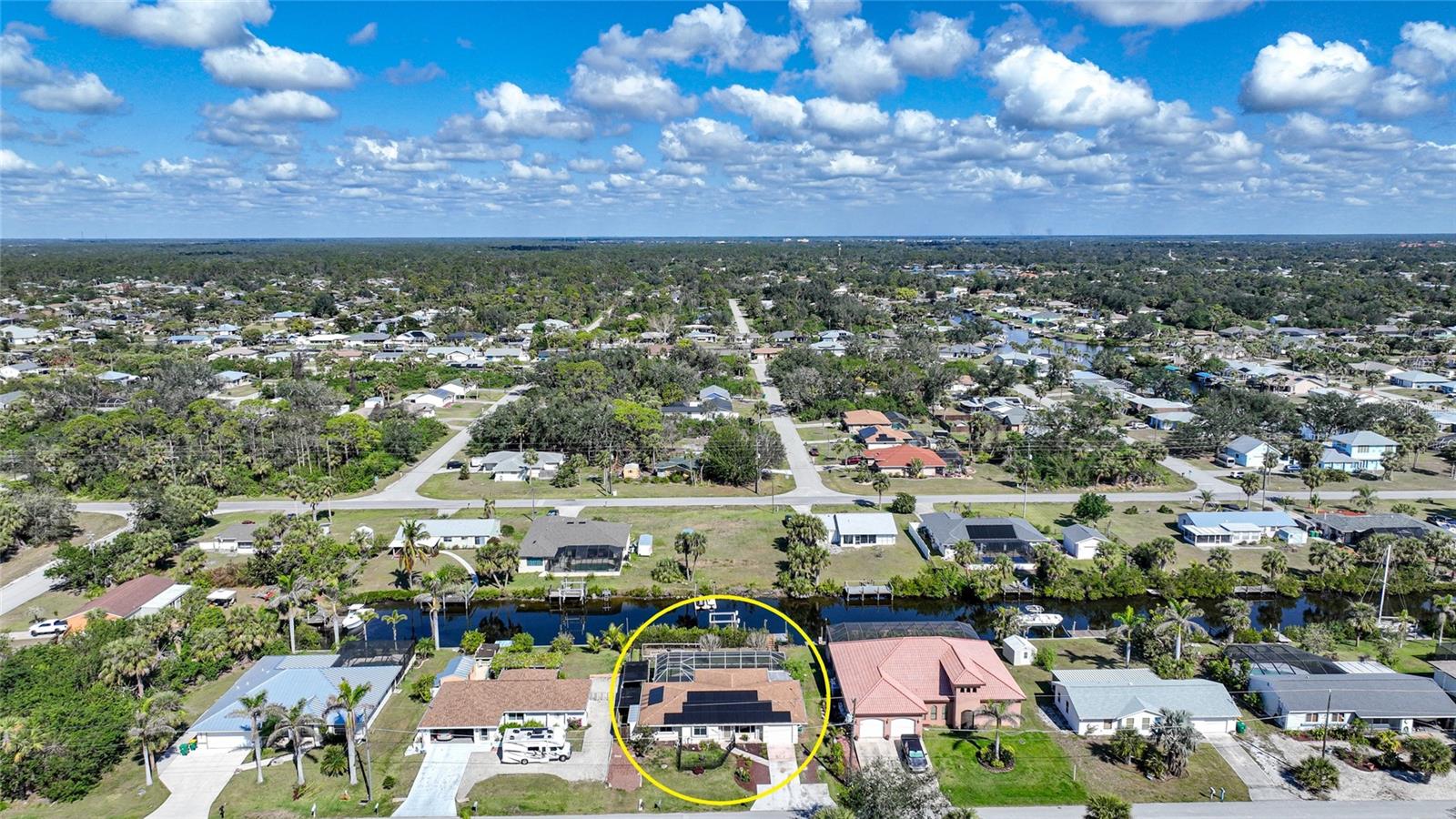 This nicely maintained Gulf-access 3-bedroom, 2-bathroom pool home in Port Charlotte offers the perfect setting for the ultimate Florida lifestyle. With 1,383 square feet of waterfront living space, this charming residence features sailboat access to Charlotte Harbor and the Gulf of Mexico. Enjoy 80 feet of waterfront with a 9,000 lb boat lift, a wooden dock with electricity, and quick access to open waters for all your boating adventures. Inside, you'll find a bright and open floor plan that invites natural light throughout the home. Large windows and French doors lead to the 264 square foot sunroom, creating an airy and expansive feel. The chef’s kitchen is a standout with stainless steel appliances, granite countertops, ample storage, and a pantry with sliding barn doors. The kitchen overlooks the sunroom, making it ideal for both entertaining and everyday living. The enclosed sunroom features a wall of pocket sliders that seamlessly connect to the pool area. The master suite is a private retreat with plush carpeting, pool access, a walk-in closet with a wall safe, and an ensuite bath with a walk-in shower. Two spacious guest bedrooms come with built-in closets and carpet flooring, one featuring a Murphy bed. The updated guest bathroom boasts a tiled walk-in shower. Off the kitchen, the convenient 144 square foot utility room has a washer/dryer and space for a home office, with sliding doors leading to the pool area. Outside, the screened-in pool area features a beautiful Diamond Brite pool with solar heating and a tranquil Koi pond stocked with colorful Koi fish. The backyard is fully fenced with large gates leading to the dock area. Additional highlights include wood laminate flooring, owned Solar electric (average electric bill was $36 per month), crown molding, an attached garage, hurricane shutters, and a new roof installed in 2019. This home’s prime location provides easy access to Florida’s best beaches, dining, shopping, world-class fishing, and tarpon tournaments. Spend the day at Punta Gorda’s Fisherman’s Village with live music and entertainment or catch a spring training game at Charlotte Sports Park, home to the Tampa Bay Rays and Charlotte Stone Crabs. Live the dream in this beautiful waterfront home—your perfect Florida escape!