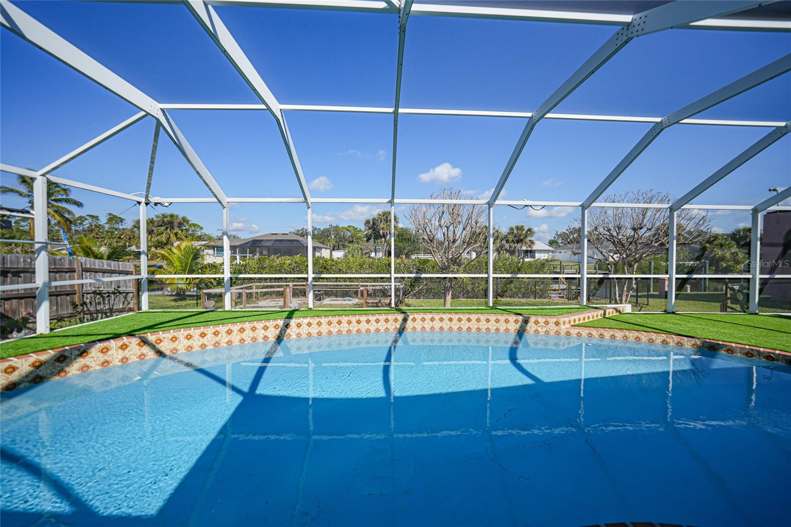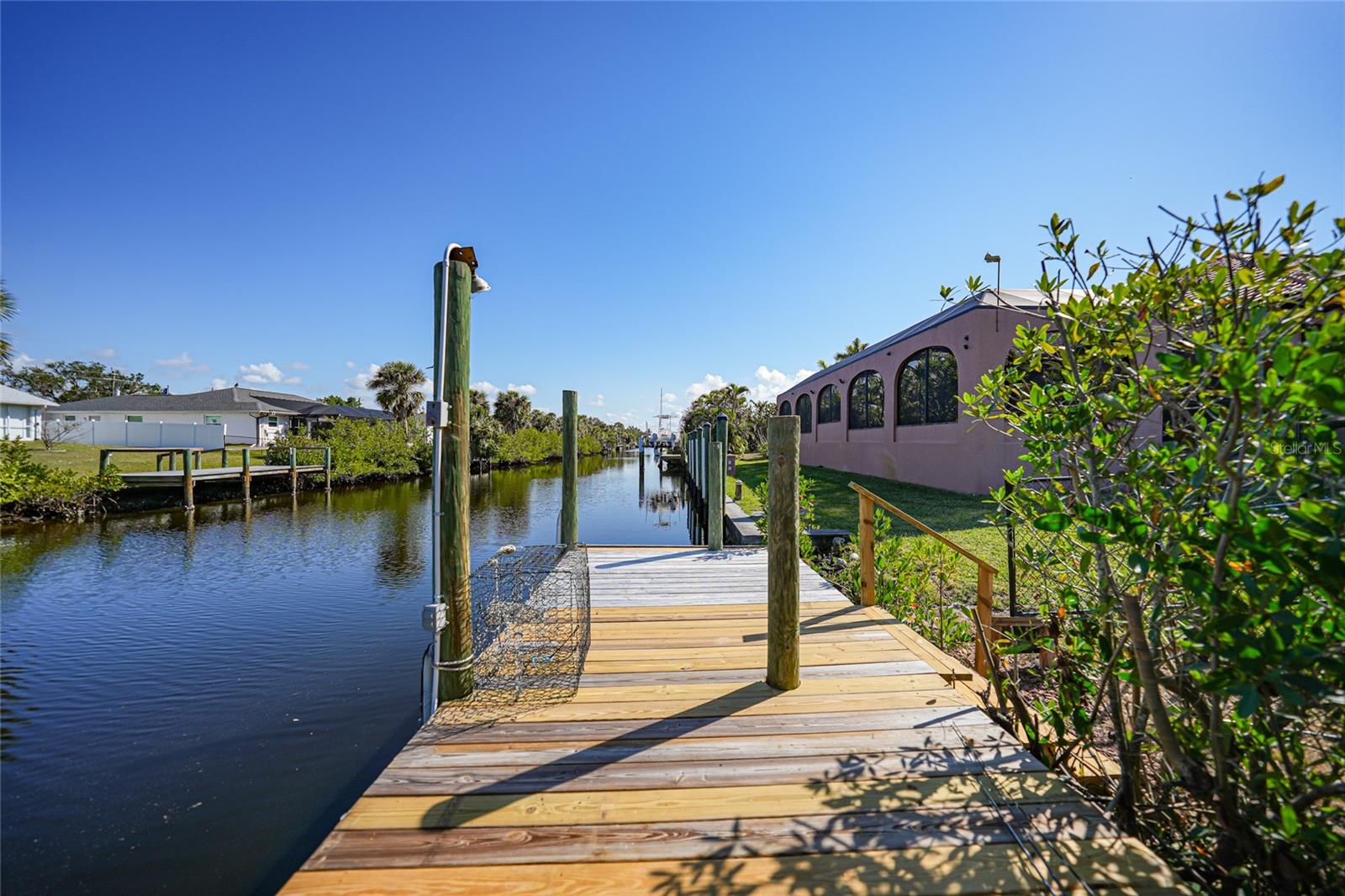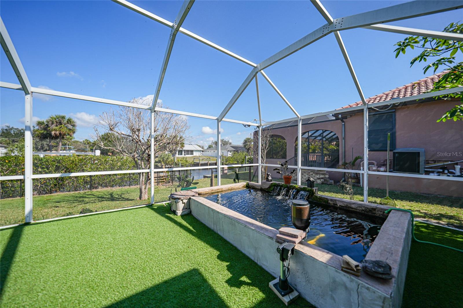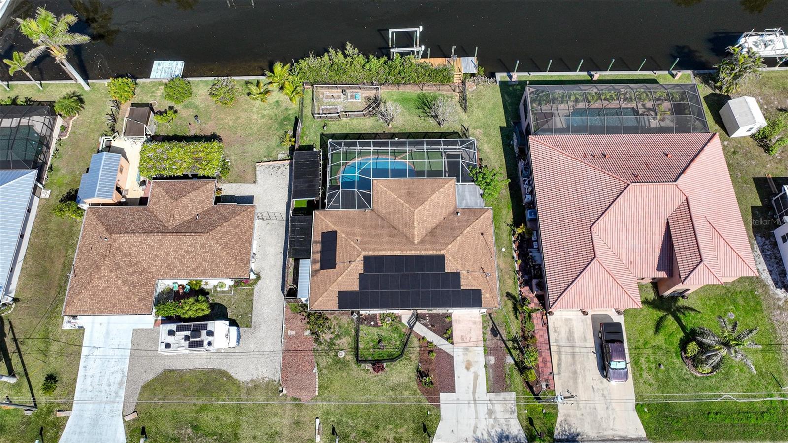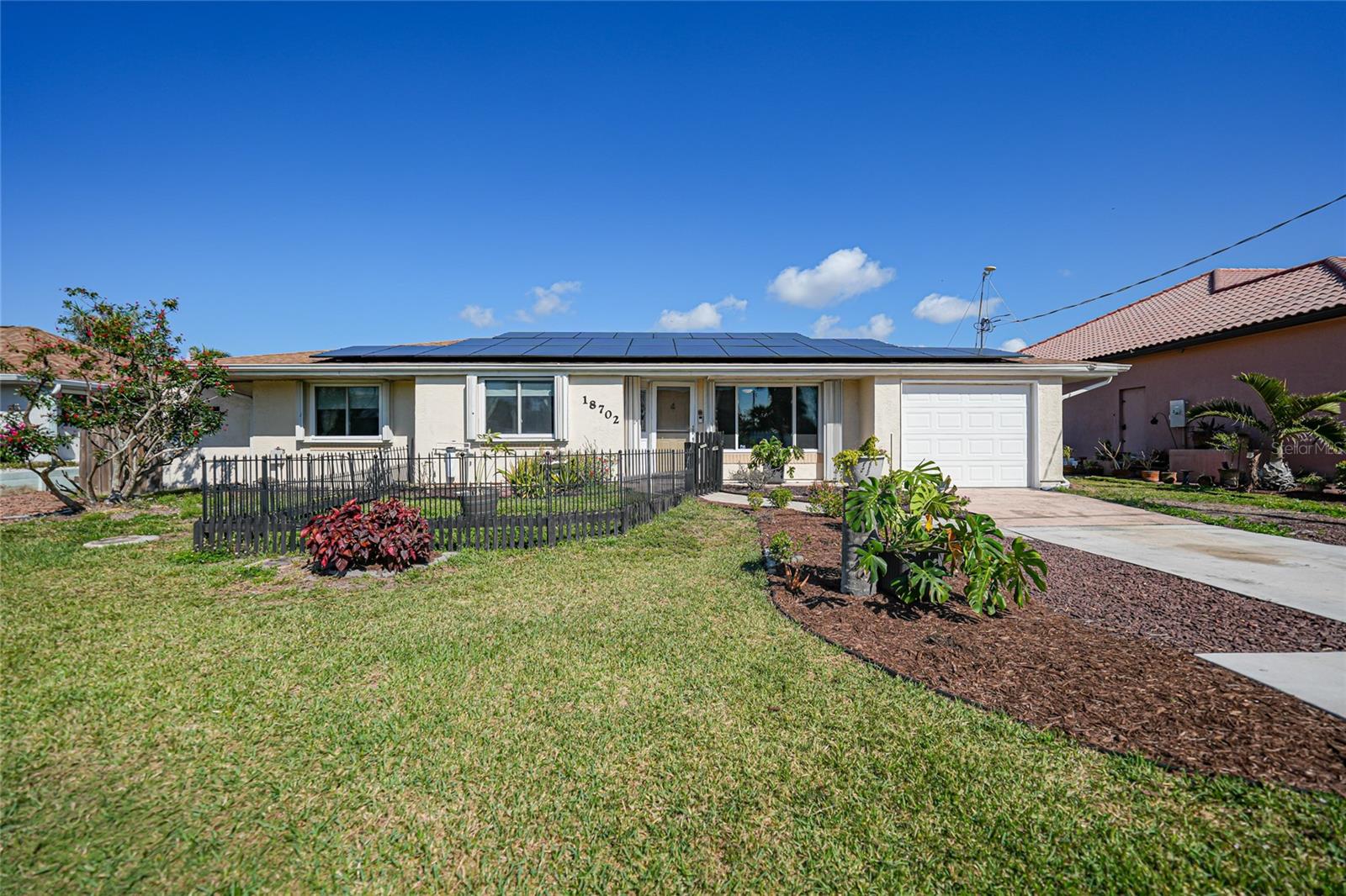 This nicely maintained Gulf-access 3-bedroom, 2-bathroom pool home in Port Charlotte offers the perfect setting for the ultimate Florida lifestyle. With 1,383 square feet of waterfront living space, this charming residence features sailboat access to Charlotte Harbor and the Gulf of Mexico. Enjoy 80 feet of waterfront with a 9,000 lb boat lift, a wooden dock with electricity, and quick access to open waters for all your boating adventures. Inside, you'll find a bright and open floor plan that invites natural light throughout the home. Large windows and French doors lead to the 264 square foot sunroom, creating an airy and expansive feel. The chef’s kitchen is a standout with stainless steel appliances, granite countertops, ample storage, and a pantry with sliding barn doors. The kitchen overlooks the sunroom, making it ideal for both entertaining and everyday living. The enclosed sunroom features a wall of pocket sliders that seamlessly connect to the pool area. The master suite is a private retreat with plush carpeting, pool access, a walk-in closet with a wall safe, and an ensuite bath with a walk-in shower. Two spacious guest bedrooms come with built-in closets and carpet flooring, one featuring a Murphy bed. The updated guest bathroom boasts a tiled walk-in shower. Off the kitchen, the convenient 144 square foot utility room has a washer/dryer and space for a home office, with sliding doors leading to the pool area. Outside, the screened-in pool area features a beautiful Diamond Brite pool with solar heating and a tranquil Koi pond stocked with colorful Koi fish. The backyard is fully fenced with large gates leading to the dock area. Additional highlights include wood laminate flooring, owned Solar electric (average electric bill was $36 per month), crown molding, an attached garage, hurricane shutters, and a new roof installed in 2019. This home’s prime location provides easy access to Florida’s best beaches, dining, shopping, world-class fishing, and tarpon tournaments. Spend the day at Punta Gorda’s Fisherman’s Village with live music and entertainment or catch a spring training game at Charlotte Sports Park, home to the Tampa Bay Rays and Charlotte Stone Crabs. Live the dream in this beautiful waterfront home—your perfect Florida escape!