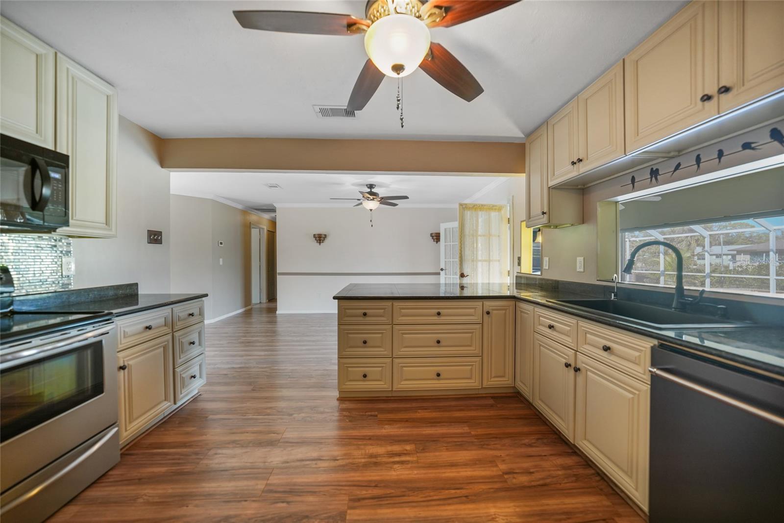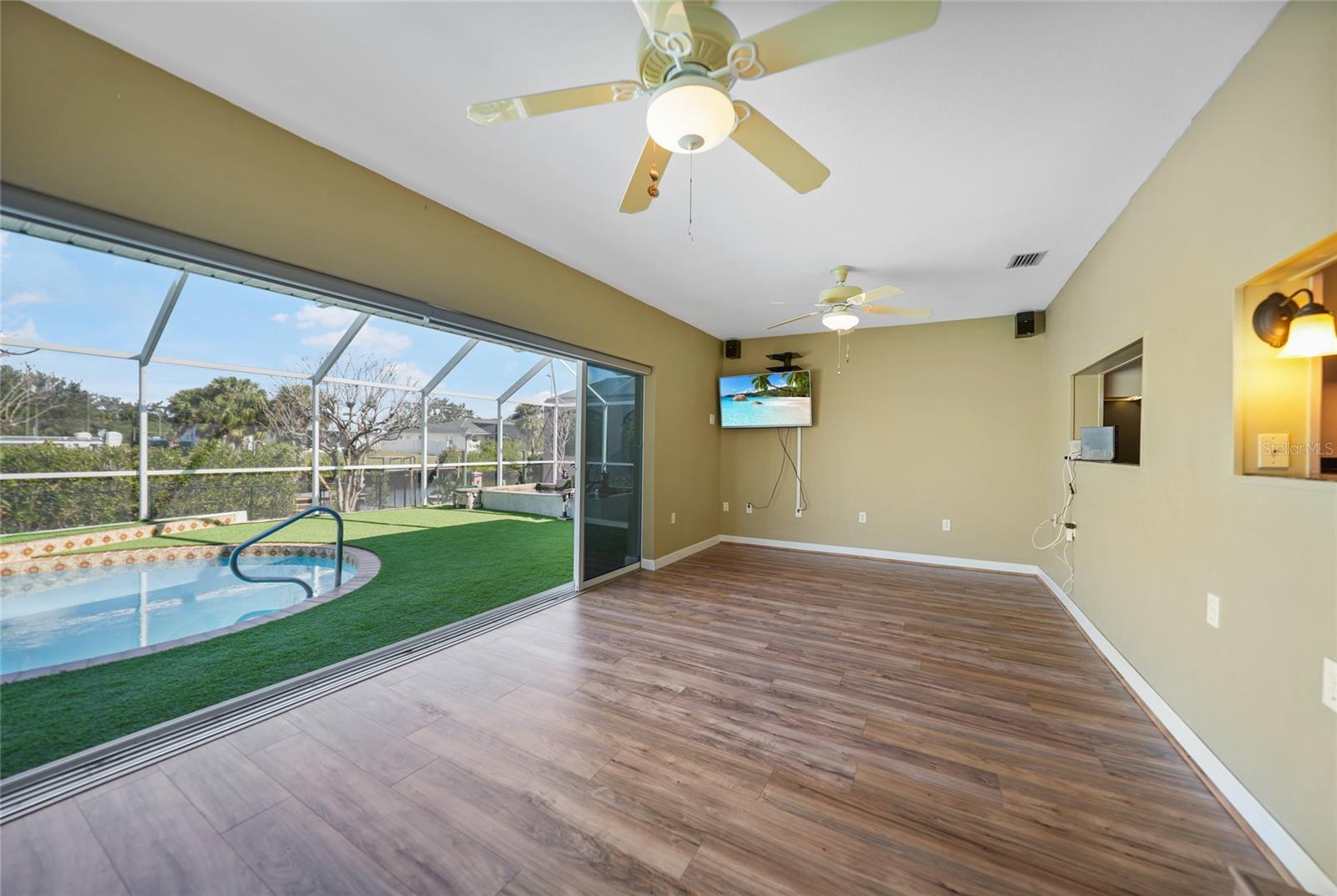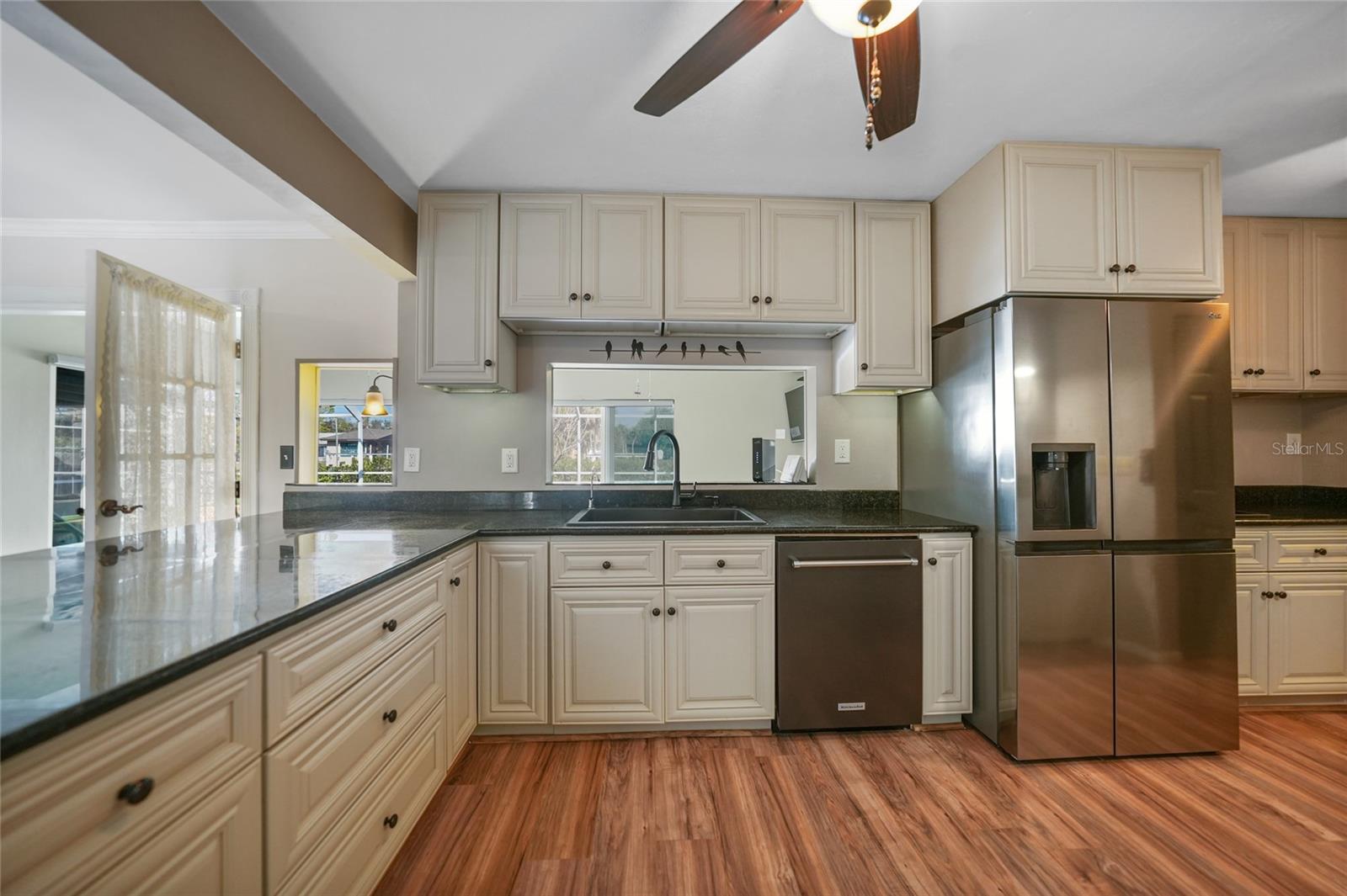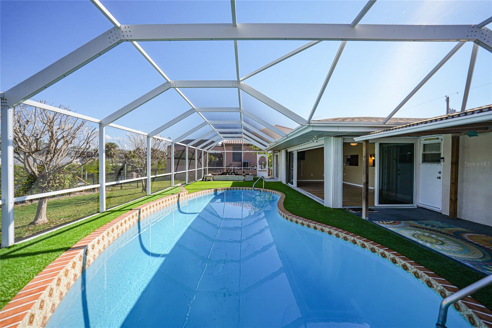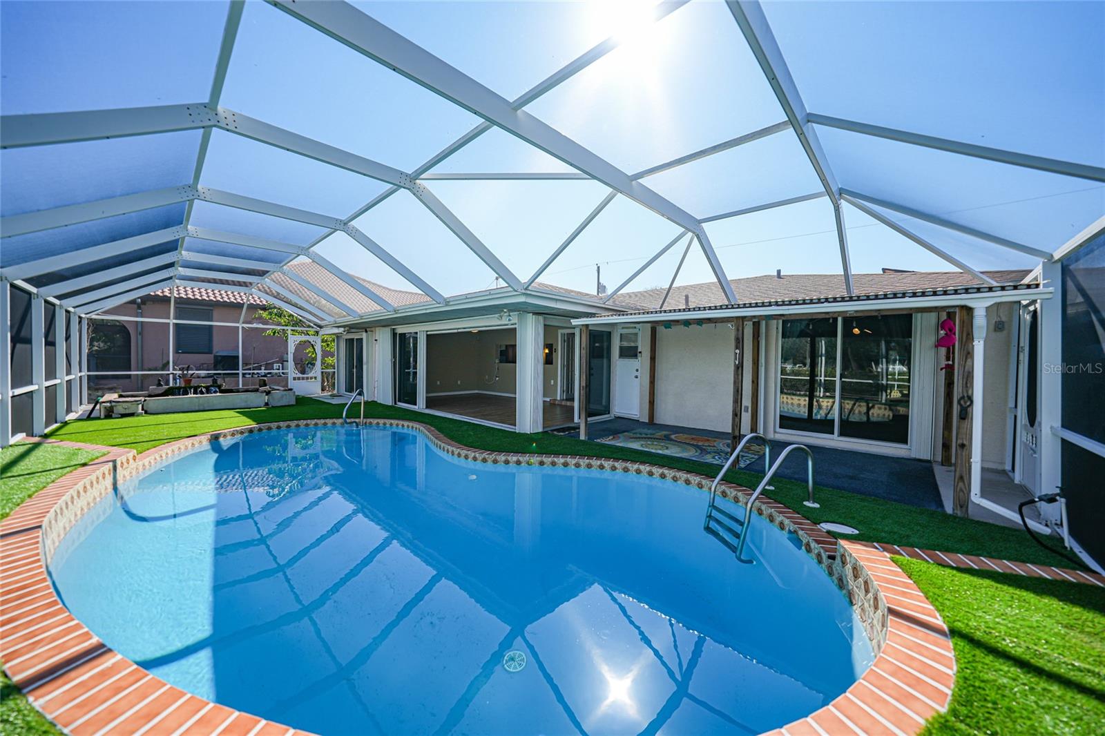 This nicely maintained Gulf-access 3-bedroom, 2-bathroom pool home in Port Charlotte offers the perfect setting for the ultimate Florida lifestyle. With 1,383 square feet of waterfront living space, this charming residence features sailboat access to Charlotte Harbor and the Gulf of Mexico. Enjoy 80 feet of waterfront with a 9,000 lb boat lift, a wooden dock with electricity, and quick access to open waters for all your boating adventures. Inside, you'll find a bright and open floor plan that invites natural light throughout the home. Large windows and French doors lead to the 264 square foot sunroom, creating an airy and expansive feel. The chef’s kitchen is a standout with stainless steel appliances, granite countertops, ample storage, and a pantry with sliding barn doors. The kitchen overlooks the sunroom, making it ideal for both entertaining and everyday living. The enclosed sunroom features a wall of pocket sliders that seamlessly connect to the pool area. The master suite is a private retreat with plush carpeting, pool access, a walk-in closet with a wall safe, and an ensuite bath with a walk-in shower. Two spacious guest bedrooms come with built-in closets and carpet flooring, one featuring a Murphy bed. The updated guest bathroom boasts a tiled walk-in shower. Off the kitchen, the convenient 144 square foot utility room has a washer/dryer and space for a home office, with sliding doors leading to the pool area. Outside, the screened-in pool area features a beautiful Diamond Brite pool with solar heating and a tranquil Koi pond stocked with colorful Koi fish. The backyard is fully fenced with large gates leading to the dock area. Additional highlights include wood laminate flooring, owned Solar electric (average electric bill was $36 per month), crown molding, an attached garage, hurricane shutters, and a new roof installed in 2019. This home’s prime location provides easy access to Florida’s best beaches, dining, shopping, world-class fishing, and tarpon tournaments. Spend the day at Punta Gorda’s Fisherman’s Village with live music and entertainment or catch a spring training game at Charlotte Sports Park, home to the Tampa Bay Rays and Charlotte Stone Crabs. Live the dream in this beautiful waterfront home—your perfect Florida escape!