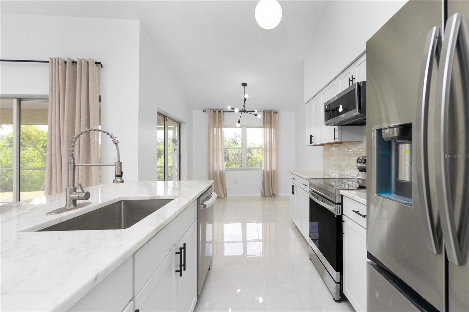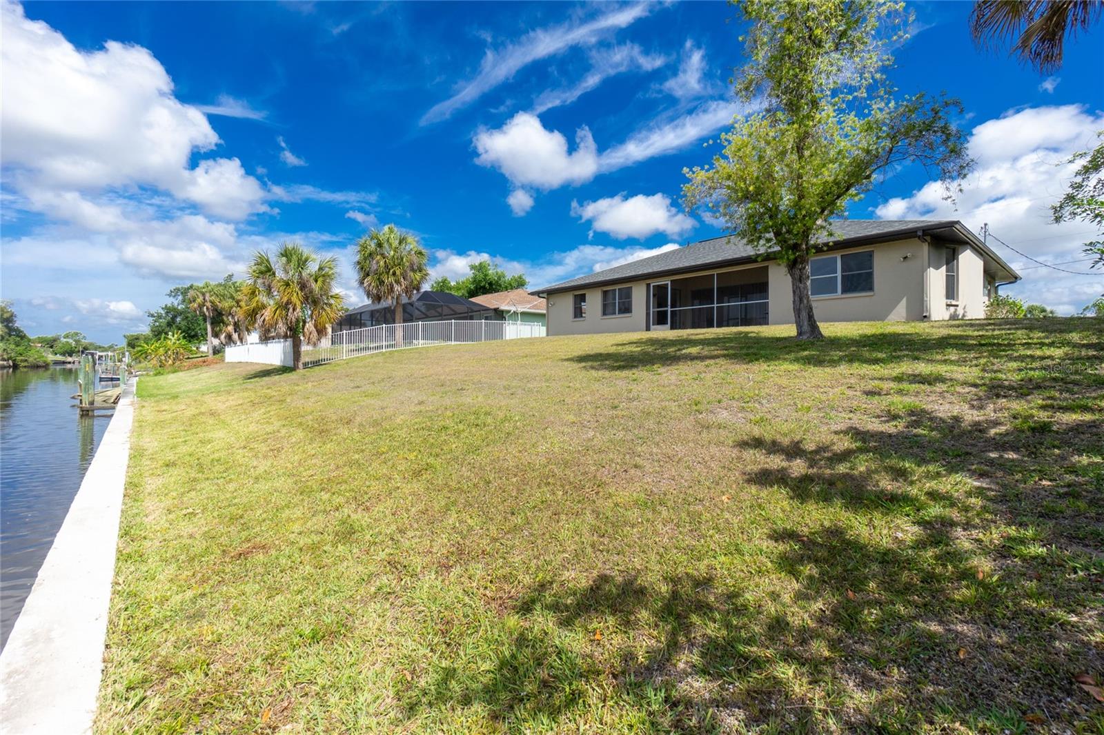 GULF ACCESS ...NO FLOOD INSURANCE REQUIRED Enjoy the warmth of SOUTHERN EXPOSURE in this inviting home featuring a concrete seawall, ideal for potential pool installation and convenient powerboat access. Home has NEW ROOF 2024 and new HVAC 2024. Open kitchen with white shaker cabinets, granite counters, breakfast bar and newer appliances. Polished porcelain tile is throughout the entire house. The well-thought-out split floor plan offers a spacious owner's suite with 2 large closets, spacious bathroom with wheelchair accessible shower with grab bars and beautiful double sink vanity. There's direct access to the lanai for a seamless indoor-outdoor transition. Discover a cozy guest wing to the right of the house, boasting two bedrooms with a shared bathroom and a convenient indoor laundry room with built in pantry. The heart of the home lies in its open kitchen, seamlessly flowing into the living room, with a dinette area and a dining space that can easily double as an office. Nestled out of the flood zone, this residence is perfectly situated between North Port and Port Charlotte, ensuring easy access to I-75, as well as nearby restaurants, hospitals, and shopping destinations. Embrace the simplicity of a well-designed home in a prime location.PRIVATE FINANCING AVAILABLE.
