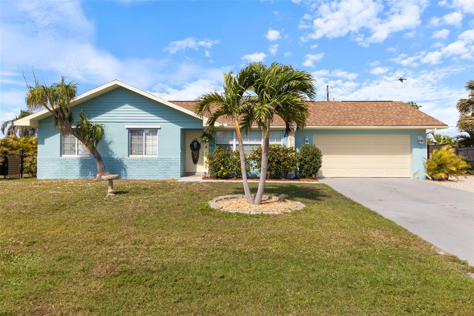 Charming Home on a Spacious Corner Lot- A delightful 4-bedroom, 2-bathroom home situated on a FENCED corner lot in the heart of Port Charlotte. From the moment you arrive, this home exudes warmth and charm, offering a cozy and inviting atmosphere perfect for families and entertainers alike.Inside, you'll find a bright and open layout with tile flooring throughout, providing both style and easy maintenance. The spacious living room is perfect for relaxing or gathering with loved ones. The kitchen boasts white cabinetry, granite countertops, and stainless steel appliances, along with a window overlooking the backyard, allowing natural light to flood the space.The primary suite features sliding doors leading to the backyard, creating a seamless indoor-outdoor flow. The ensuite bathroom includes dual sinks, white cabinetry, and granite countertops for a touch of elegance. All guest bedrooms are generously sized, offering comfort and versatility.Step outside to your private backyard retreat, where you'll find a large outdoor hangout space, perfect for family gatherings. The chicken coop and charming shed complement the home’s character, while the landscaping and partial fencing provide added privacy—your own peaceful oasis. Additional features include an extra driveway area for convenience and ample parking. This home is truly a must-see, offering the perfect blend of comfort, functionality, and charm.