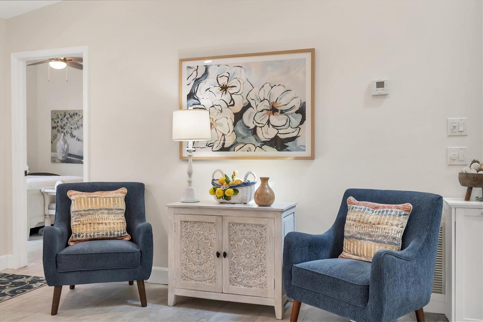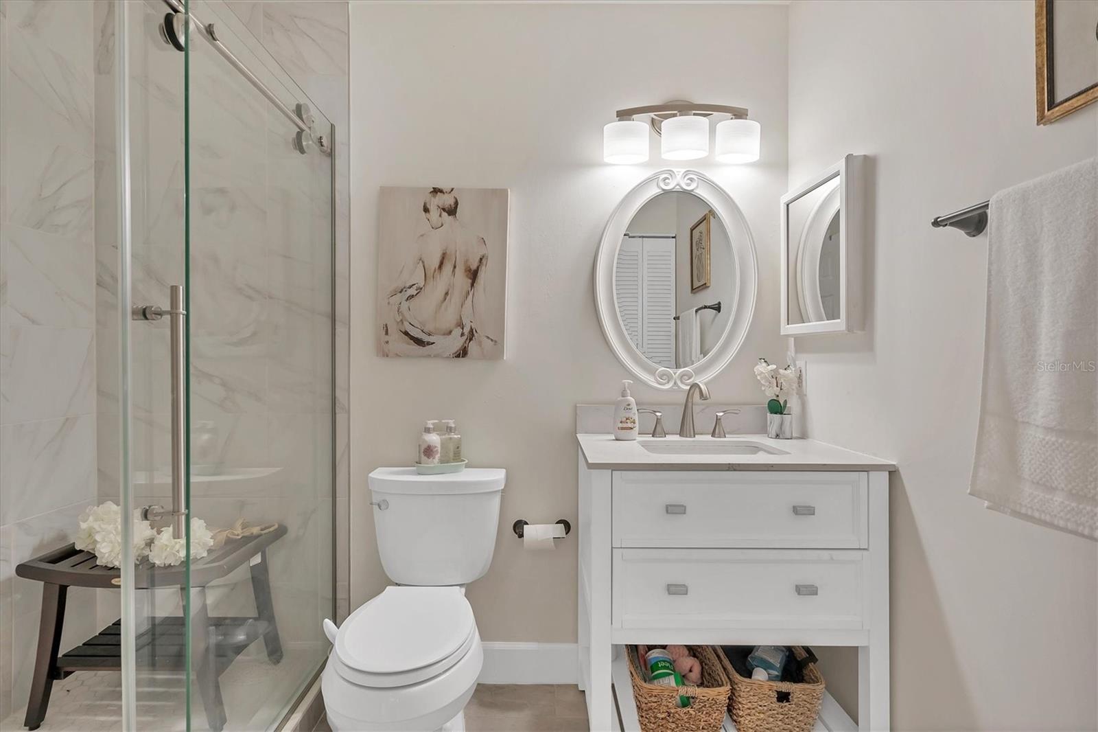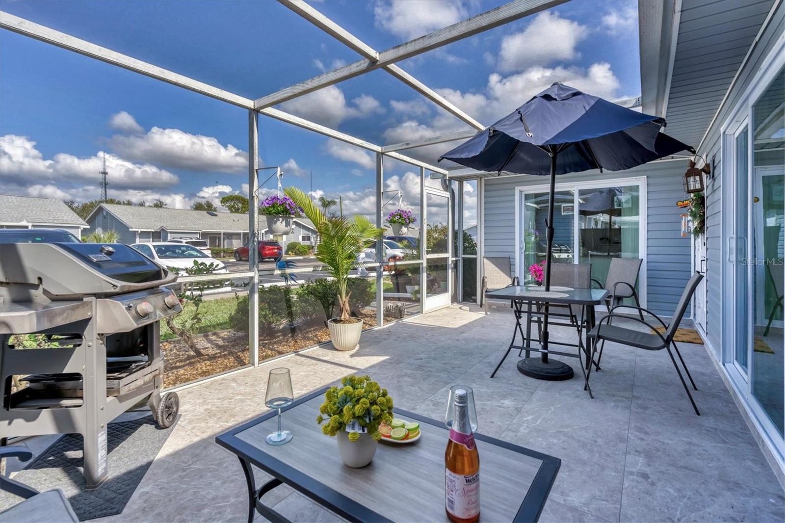 Luxury Villa with Upscale Contemporary Remodel! Experience elegance and modern comfort in this beautifully fully remodeled villa, featuring high-end finishes and impeccable design. From the gourmet kitchen to the spa-like bathrooms, every detail has been thoughtfully upgraded to create a stylish and functional living space. A classic renovation with premium materials and designer touches throughout. The kitchen has brand-new wood cabinets for a sleek and timeless look. Stunning quartzite countertops with a subway tile backsplash for a contemporary feel. Newer stainless steel appliances for a high-end cooking experience. Upon entering you will notice the consistent porcelain tile flooring throughout all living areas, including bedrooms for a seamless and elegant flow. The Primary Bathroom has an entry barn door for a modern and space-saving touch, custom glass shower door enhancing the luxurious feel, marble shower floors and subway tile shower walls and vanity surround. The guest bathroom also has a custom shower door, marble shower flooring and marble shower walls for an elegant look. The entry and bedroom doors feature bronze ergonomic lever handles for both style and functionality. All sliding glass doors are hurricane impact-rated, providing safety and peace of mind. Consistent designer ceiling fans throughout the home for a cohesive aesthetic. The 5.25-inch baseboards add a refined finishing touch to every room. This decked-out villa combines high-end materials, luxurious finishes, and hurricane-impact upgrades, new roof, new insulated vinyl siding, 2021 AC, updated electrical panel and a new skylight making it the perfect place to call home. This villa could provide a great income opportunity as a seasonal rental. Come see this stunning move-in ready and packed with value villa and make it yours!