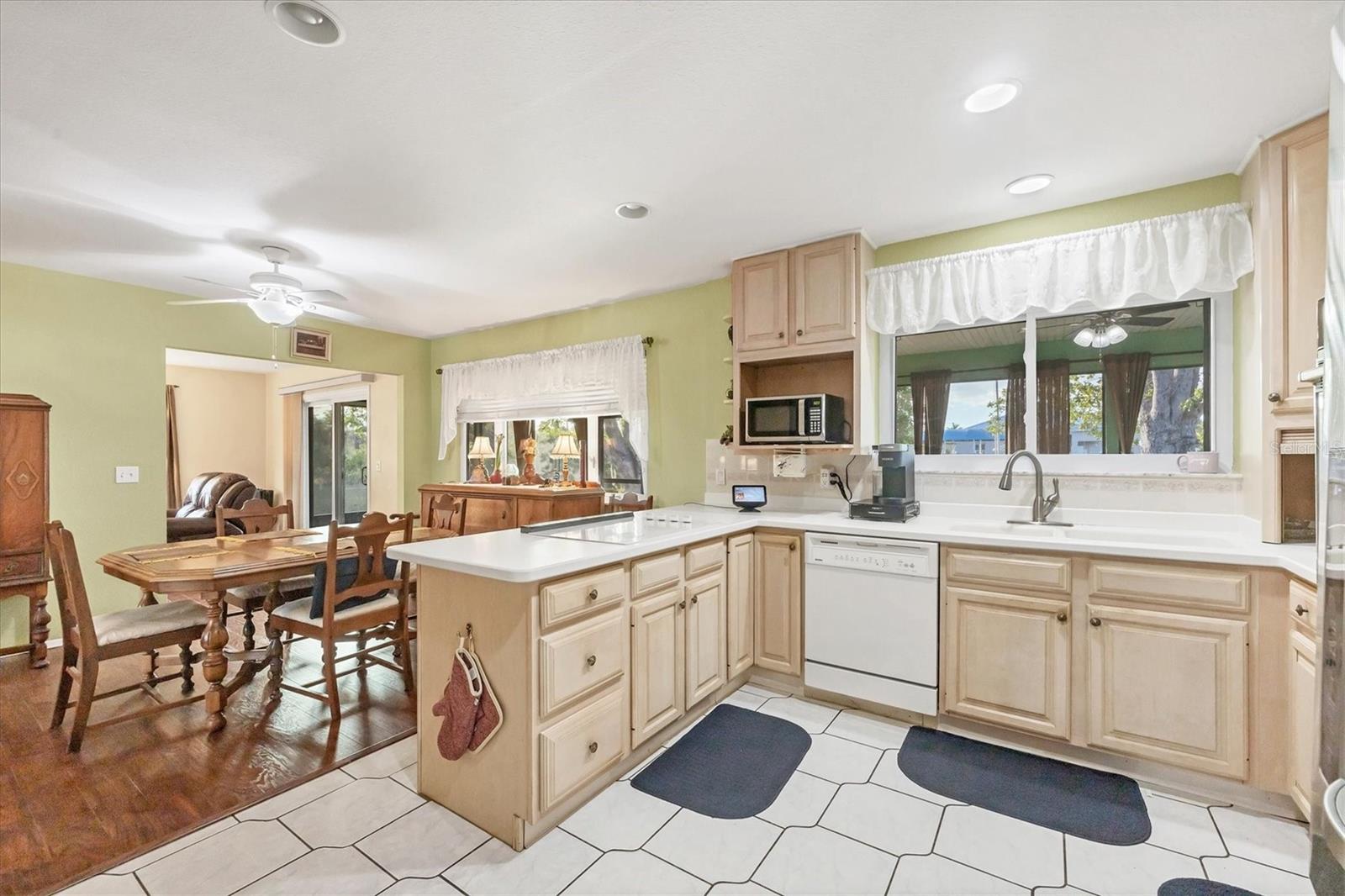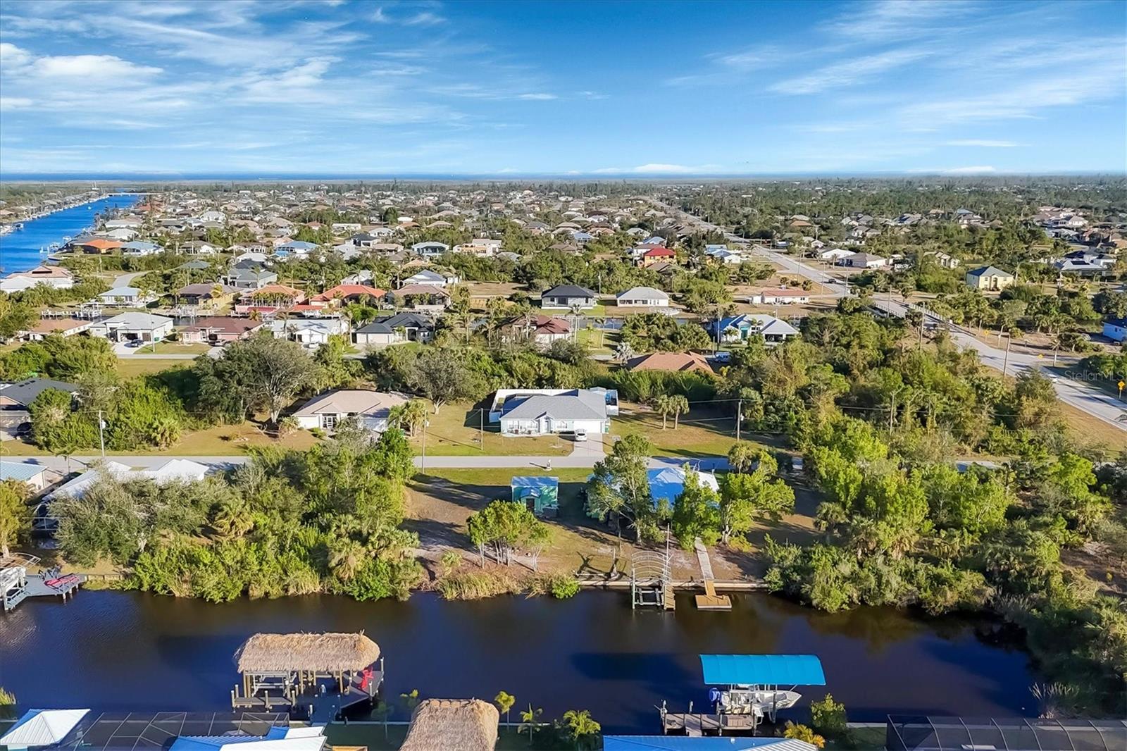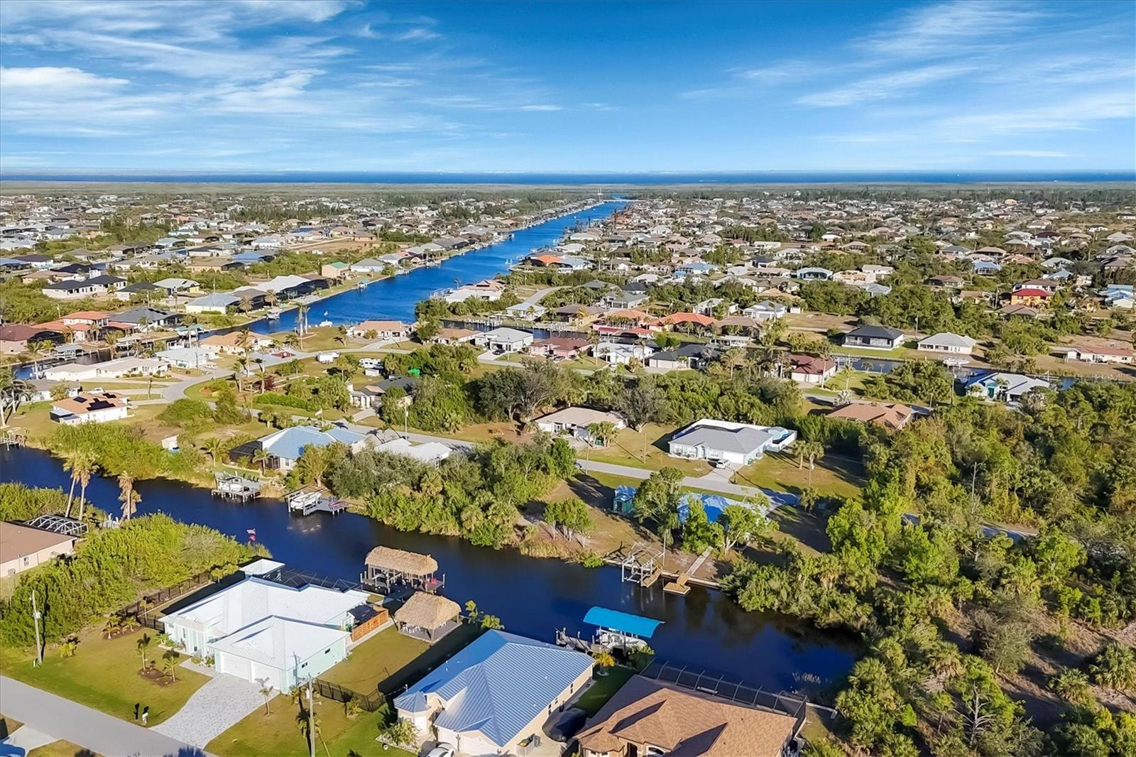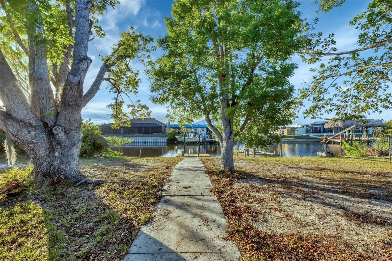 Waterfront home is calling you to Paradise! This well maintained home has 2023 metal roof, A/C 2020, windows replaced 2011, fresh paint exterior 2023 and storm shutters to give you peace of mind. Lot that home sits on has seawall, boat lift and dock. The adjacent lot is NOT included in this listing. Yard has partial fencing for dog run which can easily be removed if not needed. The spacious layout in this home boasts living room as well as family room that has access to garage and sliders at back to lanai. Dining area conveniently adjacent to kitchen for ease of entertaining as well. Primary bedroom has direct access to lanai and walk in closet with en-suite. You'll be hosting friends and family all the time on the 12x45 screened lanai that's under the roof of the home. Beyond lanai is an open patio great for BBQ parties or dining in. In warmer days you'll appreciate the Mahogany trees that grace the backyard providing welcomed shade. Prior to deciding to move seller was going to renovate kitchen and can furnish plan/drawings. South Gulf Cove is a sought after waterfront community with abundance of new homes around, has a public boat ramp, park and playground. There is only one bridge out to the Lagoon on the Zephyr waterway from this home, then on to River, Intracoastal and Gulf to enjoy the Florida lifestyle dream. Appx. 15 minute ride to Gulf beaches and multiple golf courses too. And seller says you love the incredible neighbors on this street! Don't miss out, call today for your very own viewing!