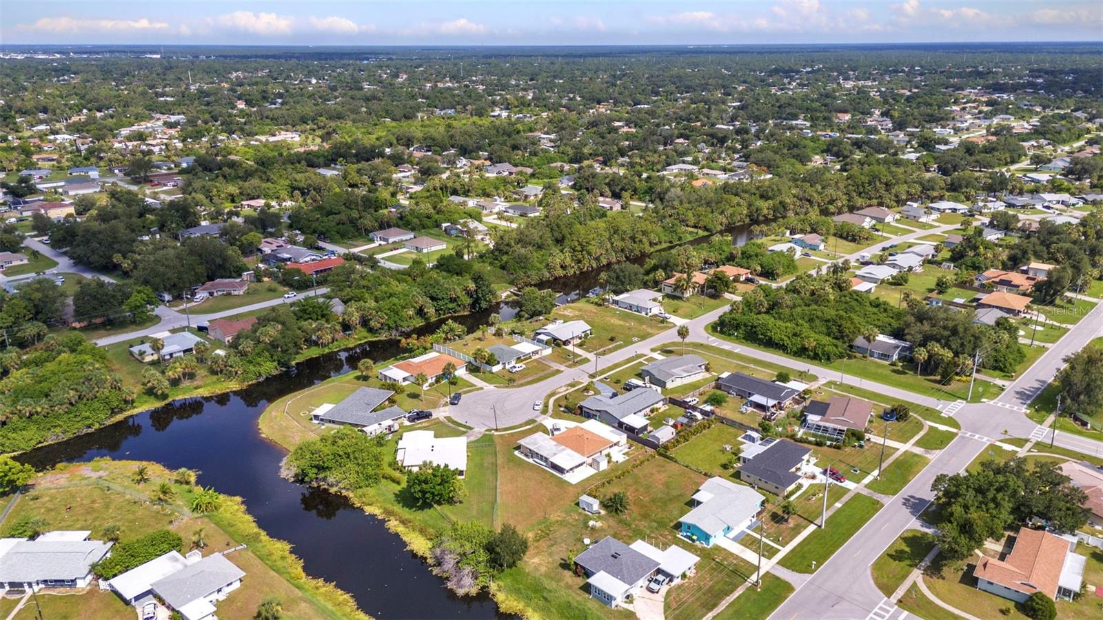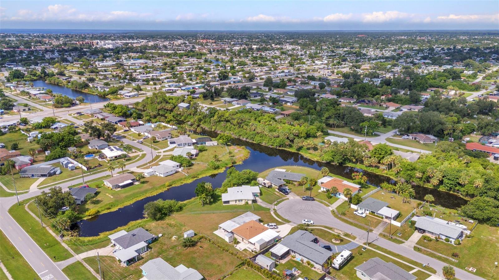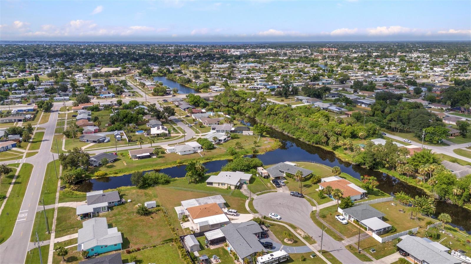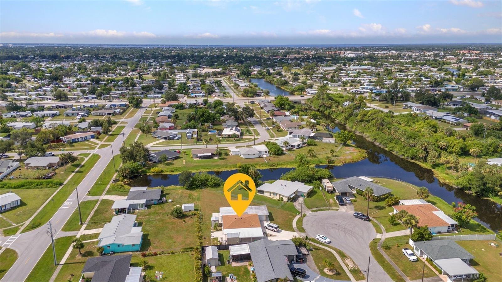 CHARMING MID-CENTURY HOME IN A QUIET CUL-DE-SAC WITH WATER VIEWS & NO FLOOD INSURANCE REQUIRED - CLOSE TO HOSPITALS, GOLFING, SHOPPING, DINING, AND MULTIPLE BOAT RAMPS!!! Welcome to a solid concrete block ranch in the heart of Port Charlotte, offering a fantastic blend of privacy and accessibility. Situated at the end of a cul-de-sac, this 2-bedroom home sits on an oversized lot and features tranquil views of the wide canal just beyond the backyard—adding a peaceful backdrop without requiring flood insurance. The floor plan includes over 1,300 sq ft of living space with a large screened lanai and a dedicated laundry area in the garage. Interior finishes include a mix of tile and laminate flooring, updated windows, and plenty of natural light. Whether you’re a year-round resident or a seasonal visitor, this property offers low-maintenance living in a highly desirable area. You're just minutes from HCA Florida Fawcett Hospital and less than 5 miles to several public boat ramps including Port Charlotte Beach Park and Edgewater Boat Ramp, offering easy access to Charlotte Harbor and the Gulf beyond. Tee off at nearby golf courses like Port Charlotte Golf Club or Maple Leaf Golf & Country Club. Enjoy a variety of local dining options, retail stores, and entertainment venues within a short drive—including the Port Charlotte Town Center and waterfront dining in Punta Gorda.