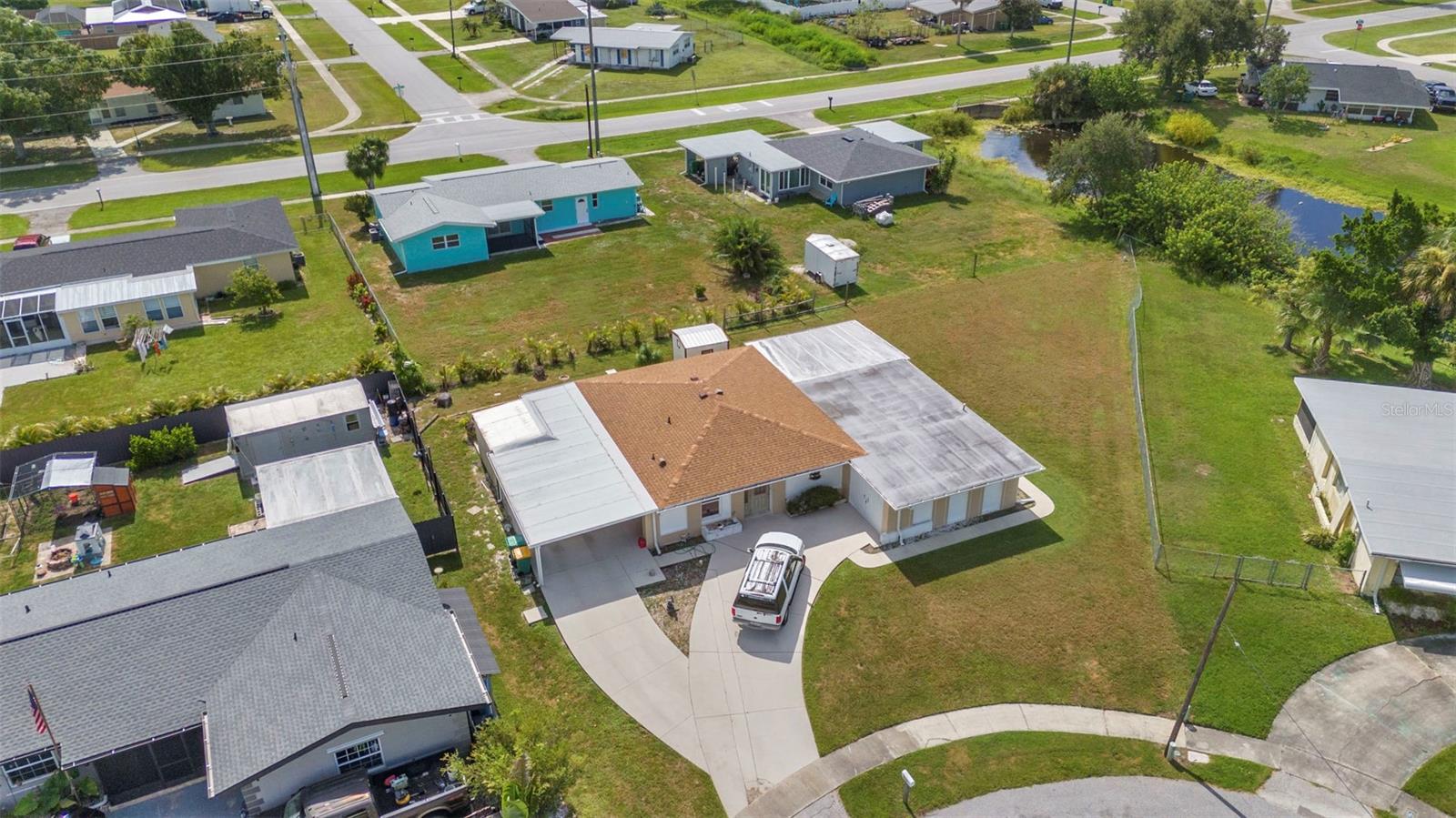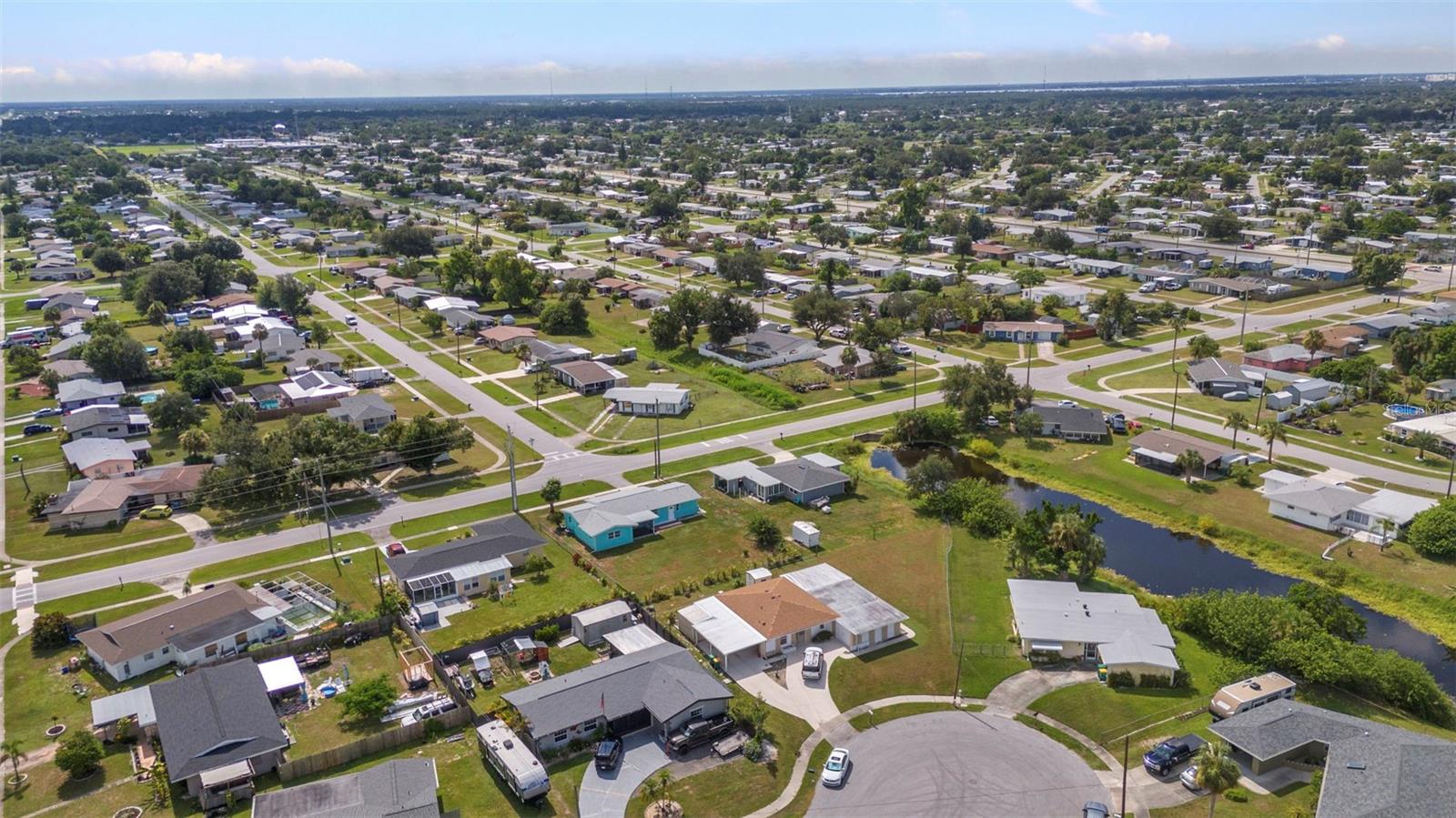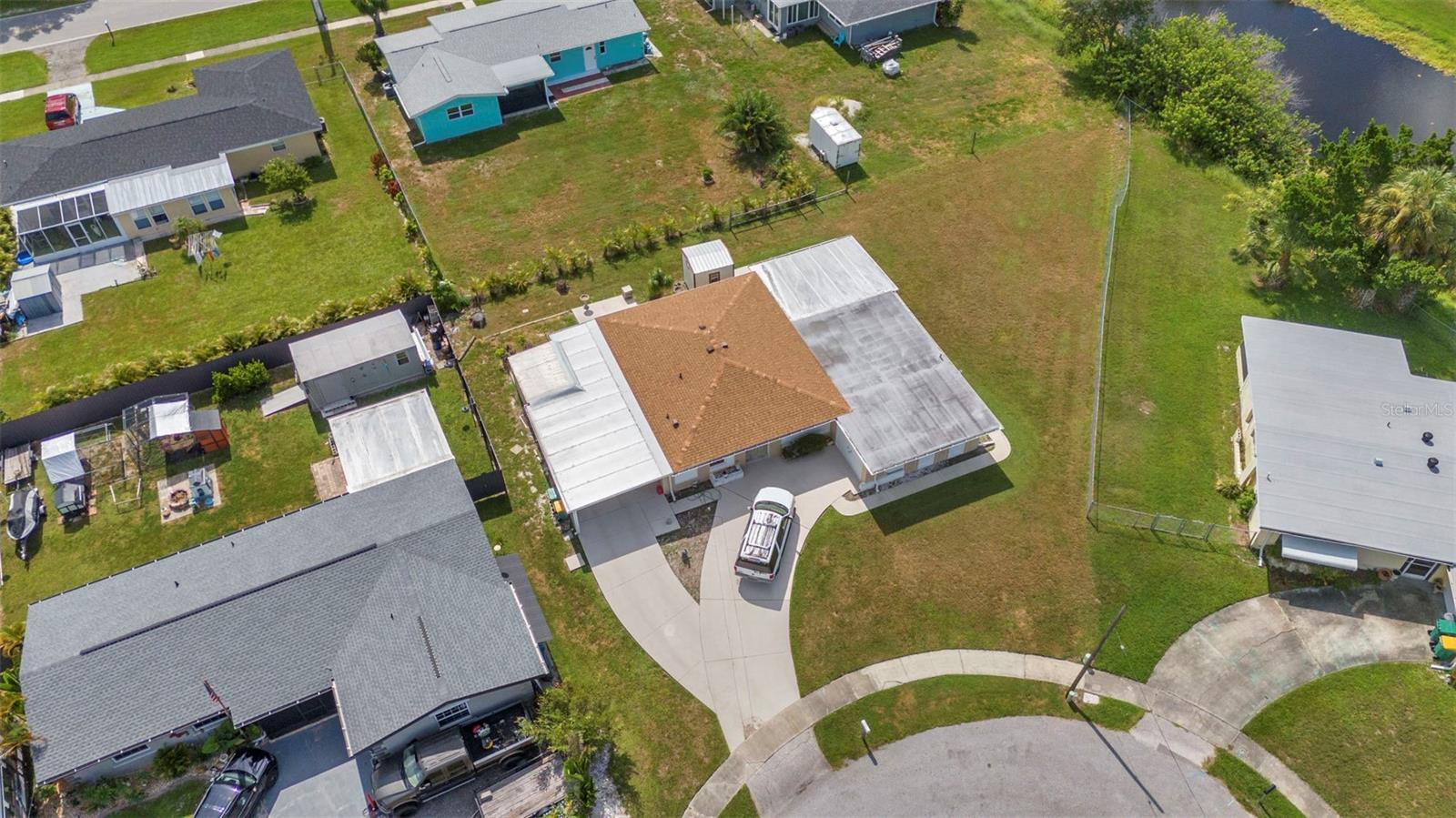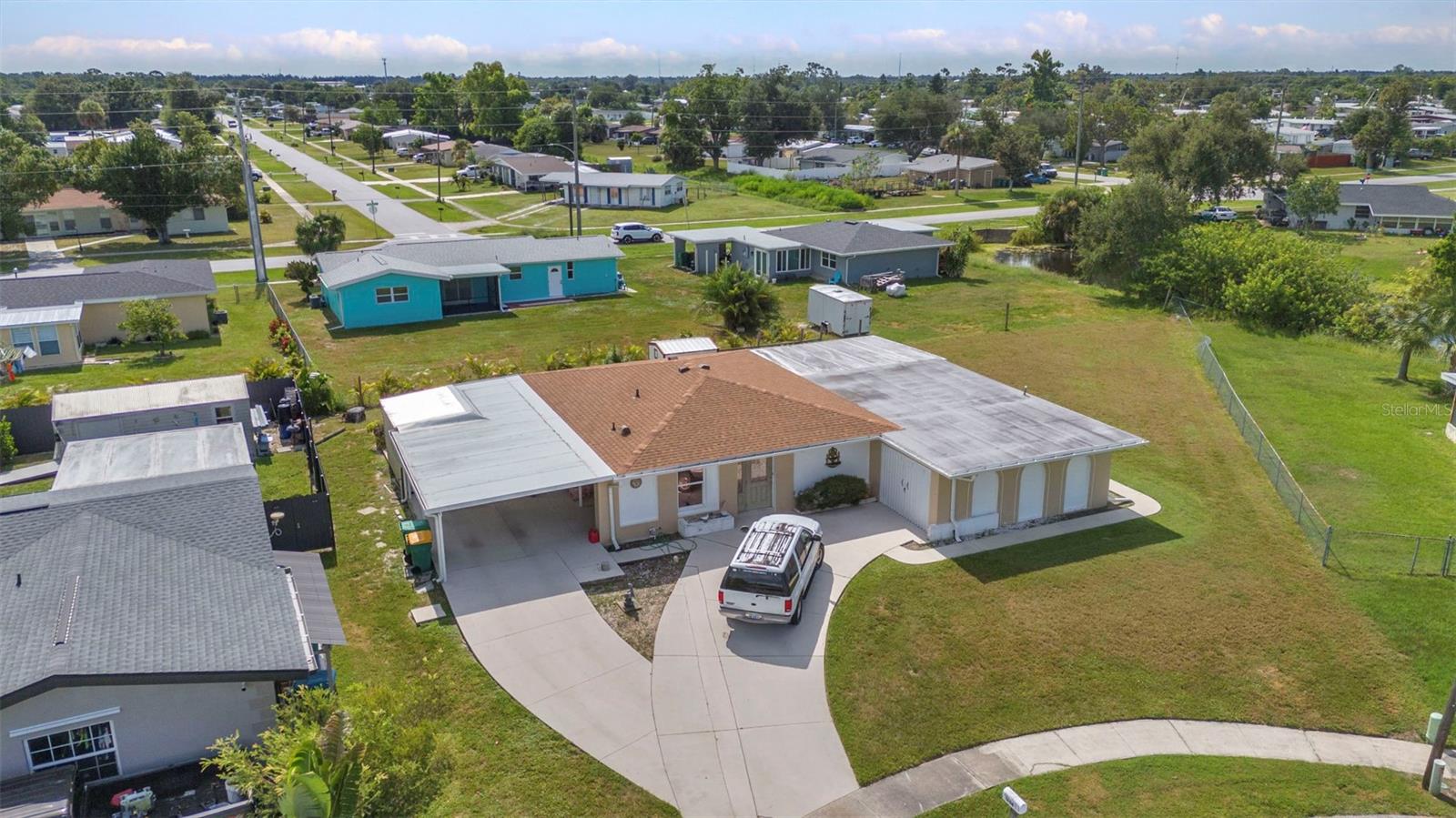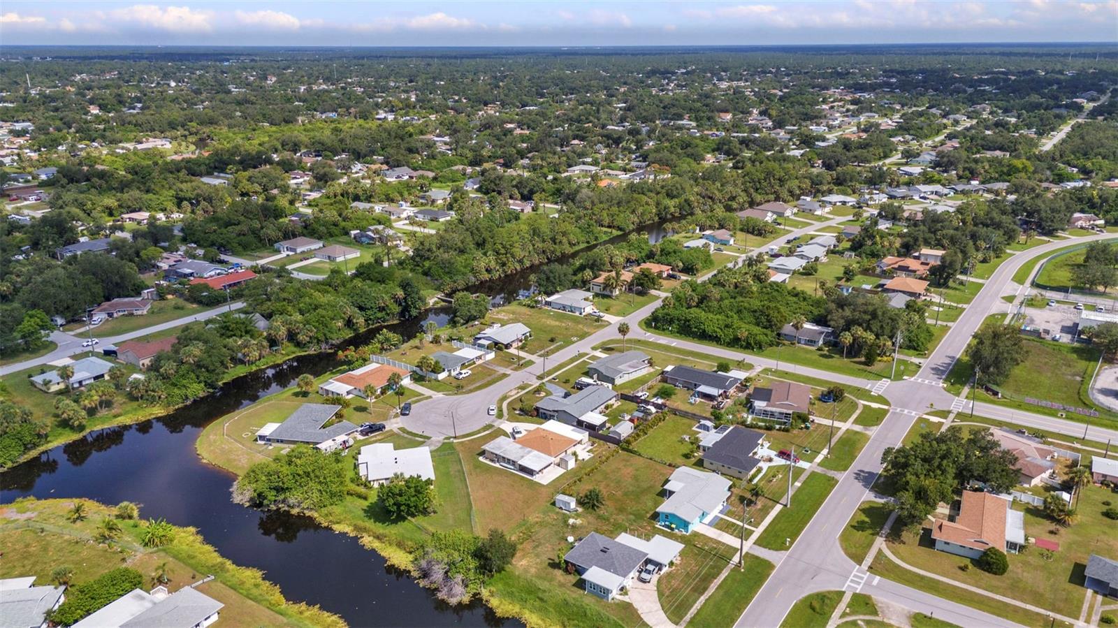 CHARMING MID-CENTURY HOME IN A QUIET CUL-DE-SAC WITH WATER VIEWS & NO FLOOD INSURANCE REQUIRED - CLOSE TO HOSPITALS, GOLFING, SHOPPING, DINING, AND MULTIPLE BOAT RAMPS!!! Welcome to a solid concrete block ranch in the heart of Port Charlotte, offering a fantastic blend of privacy and accessibility. Situated at the end of a cul-de-sac, this 2-bedroom home sits on an oversized lot and features tranquil views of the wide canal just beyond the backyard—adding a peaceful backdrop without requiring flood insurance. The floor plan includes over 1,300 sq ft of living space with a large screened lanai and a dedicated laundry area in the garage. Interior finishes include a mix of tile and laminate flooring, updated windows, and plenty of natural light. Whether you’re a year-round resident or a seasonal visitor, this property offers low-maintenance living in a highly desirable area. You're just minutes from HCA Florida Fawcett Hospital and less than 5 miles to several public boat ramps including Port Charlotte Beach Park and Edgewater Boat Ramp, offering easy access to Charlotte Harbor and the Gulf beyond. Tee off at nearby golf courses like Port Charlotte Golf Club or Maple Leaf Golf & Country Club. Enjoy a variety of local dining options, retail stores, and entertainment venues within a short drive—including the Port Charlotte Town Center and waterfront dining in Punta Gorda.
