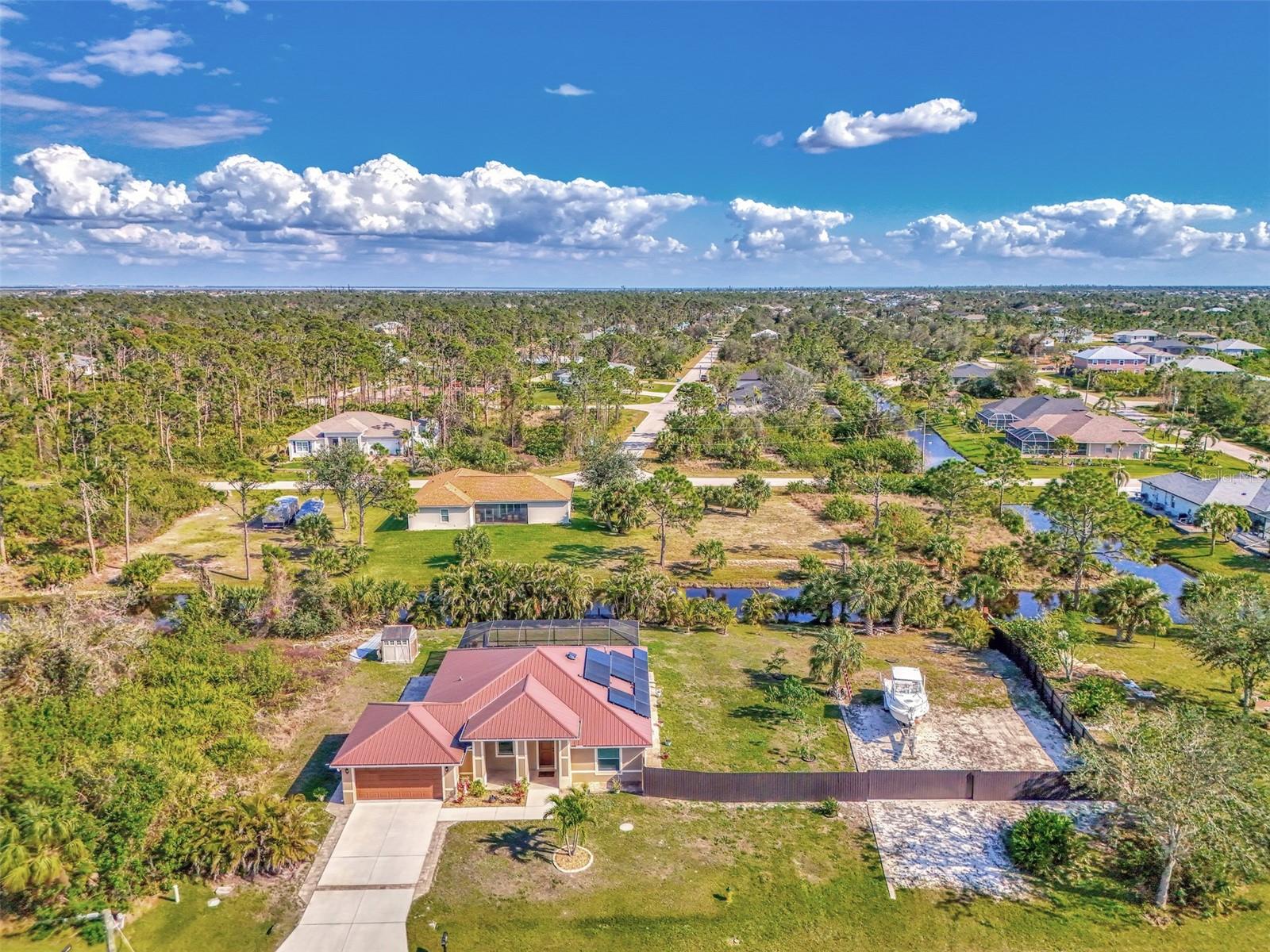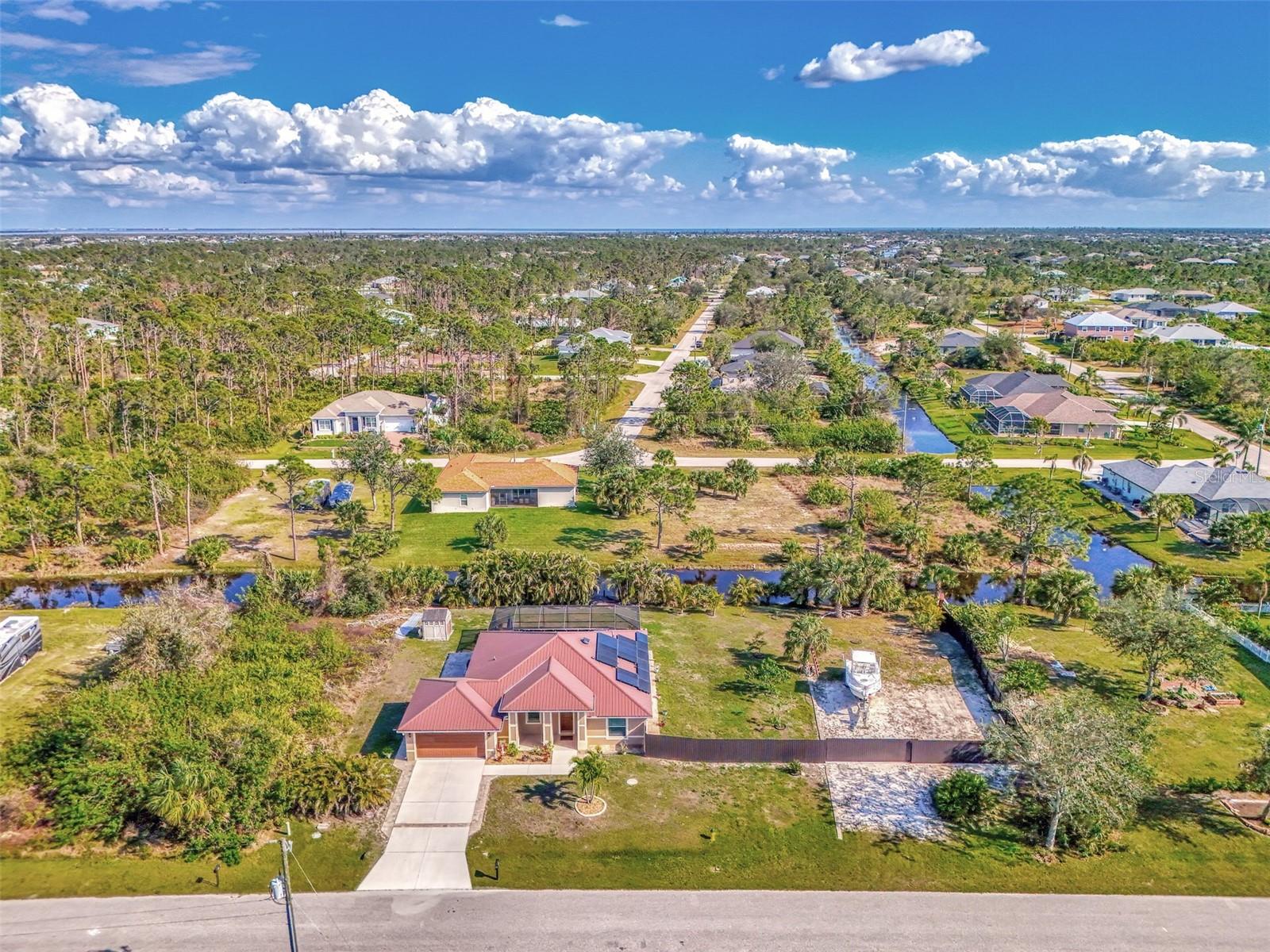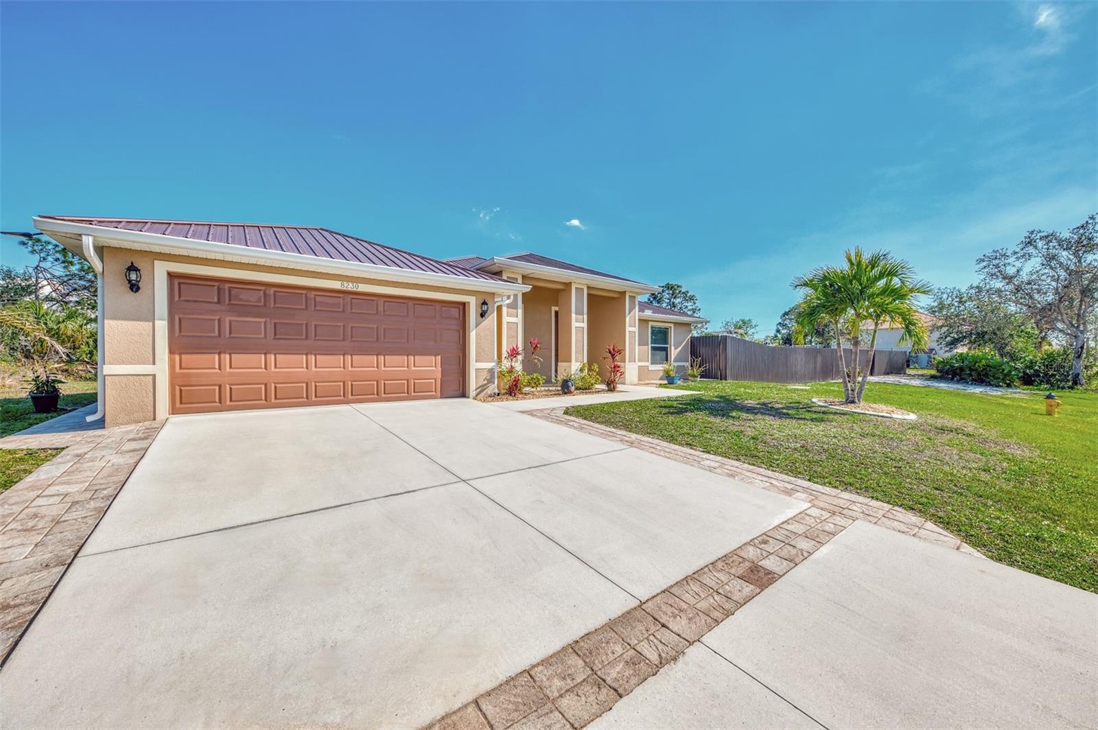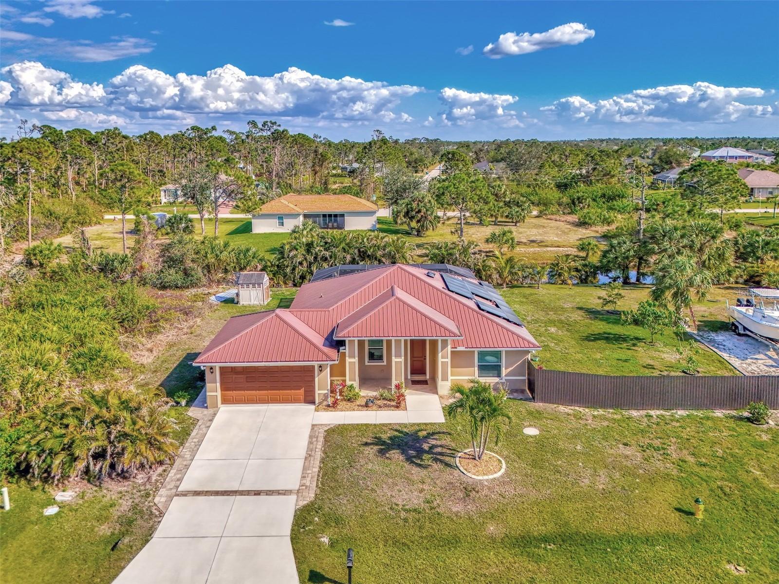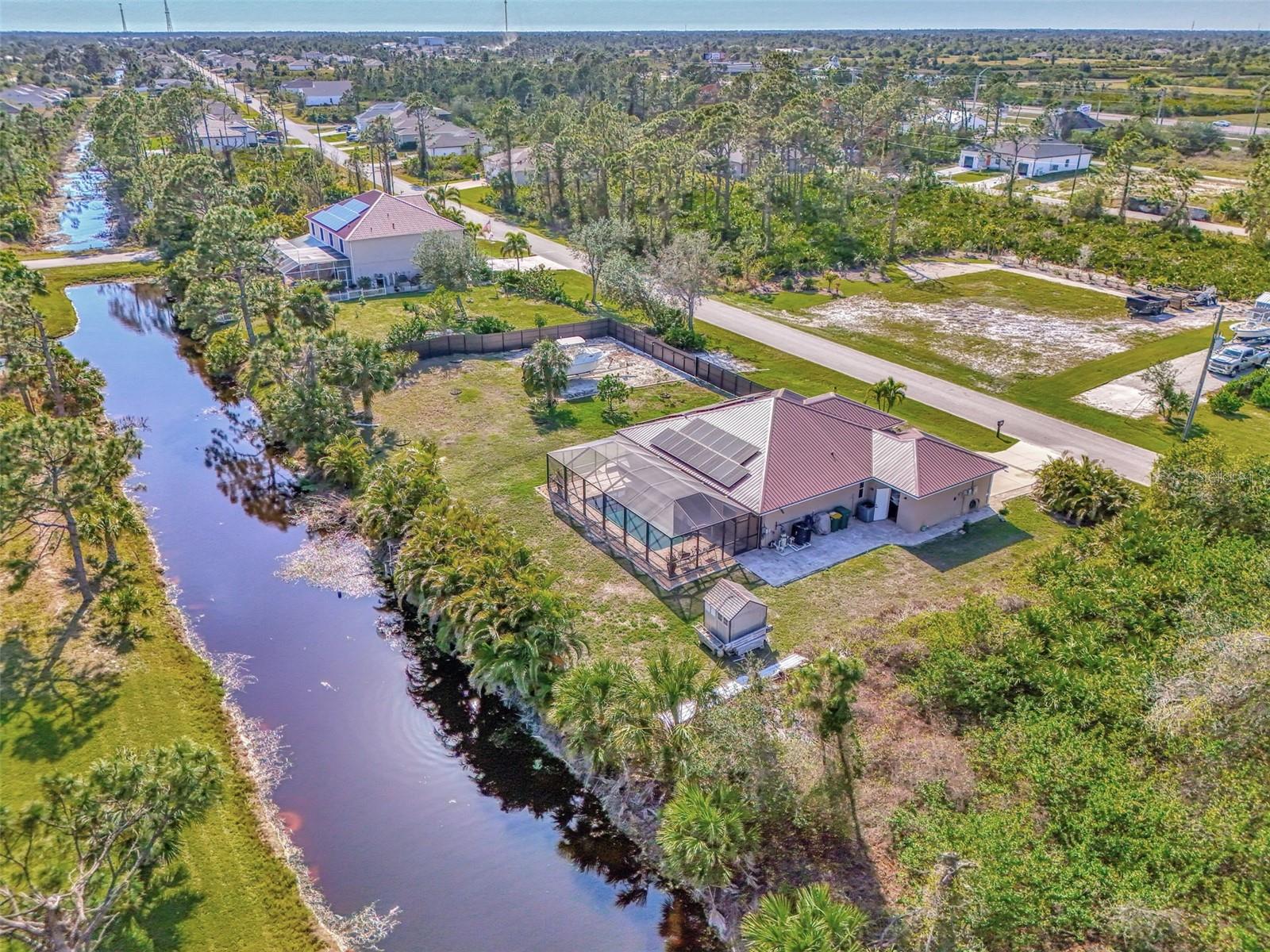 Charming 2018-Built waterfront Pool Home on a Double Lot in South Gulf Cove! this stunning home offers a perfect blend of modern luxury and energy efficiency, with 3-bedroom, 2-bathroom, solar Panels nestled in the sought-after South Gulf Cove community. Enjoy year-round comfort with a Solar panel heated pool and a beautifully paved deck, all set within a spacious water front double lot. The 1-year-old metal roof and solar panels provide durability and energy savings. Inside, the home features tile flooring throughout, an open-concept living space, and a stylish kitchen with soft-close cabinets, granite countertops, and stainless steel appliances. The spacious master bedroom comes with 2 walk-in closets, and dual sink with walk in shower in the master bathroom. Additional highlights include:Energy-efficient water heater, metal fence with gated entry for security, Irrigation system for easy lawn maintenance. Located in a boating-friendly community, this home is just minutes from stunning Gulf beaches, shopping, and dining. Don't miss this incredible opportunity—schedule your showing today!