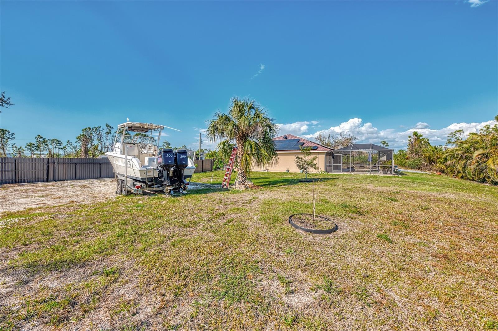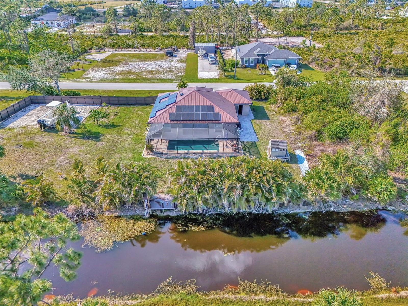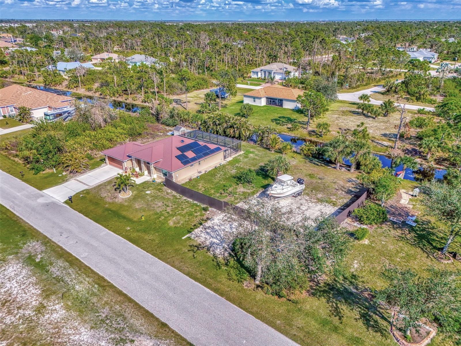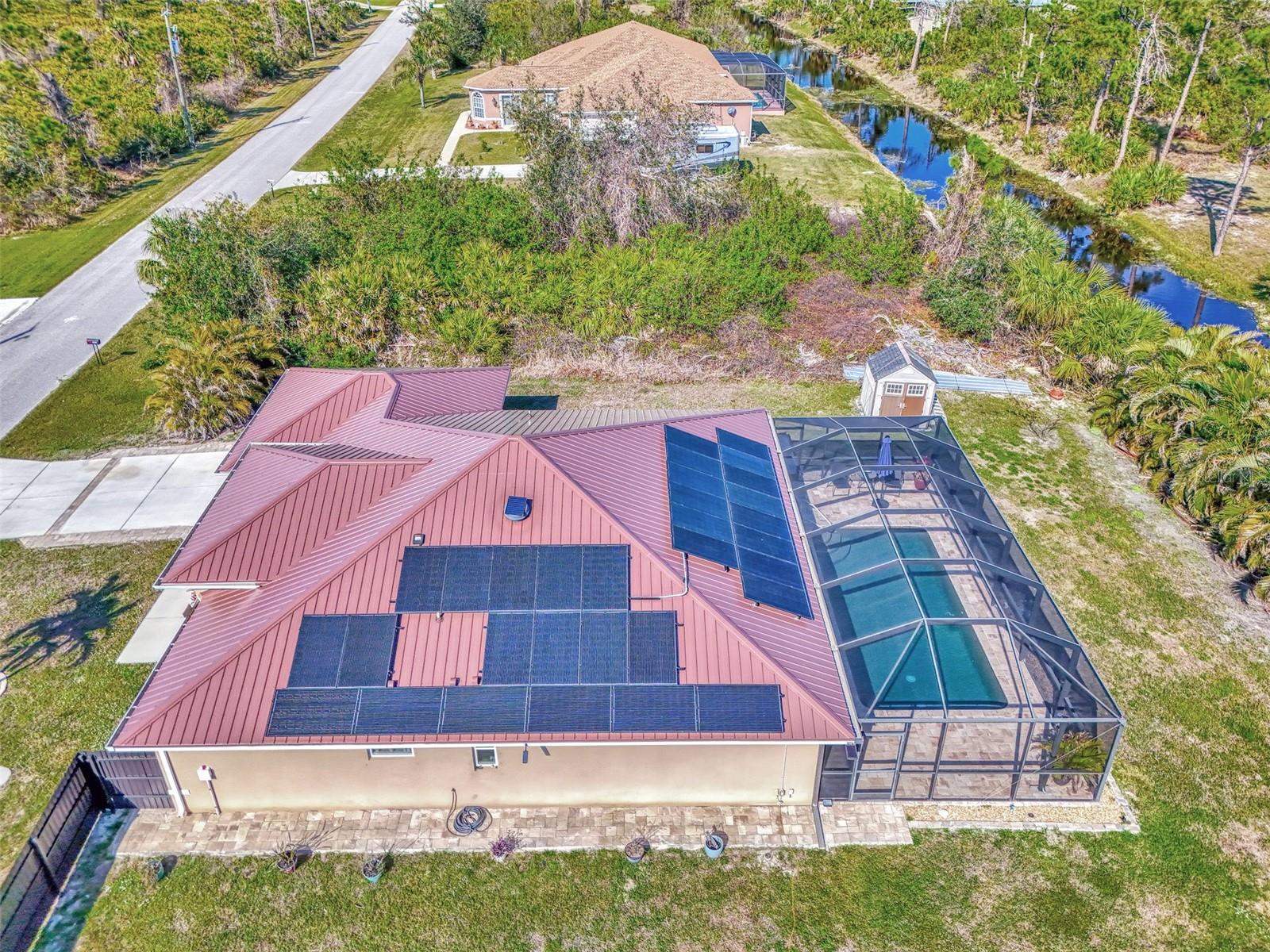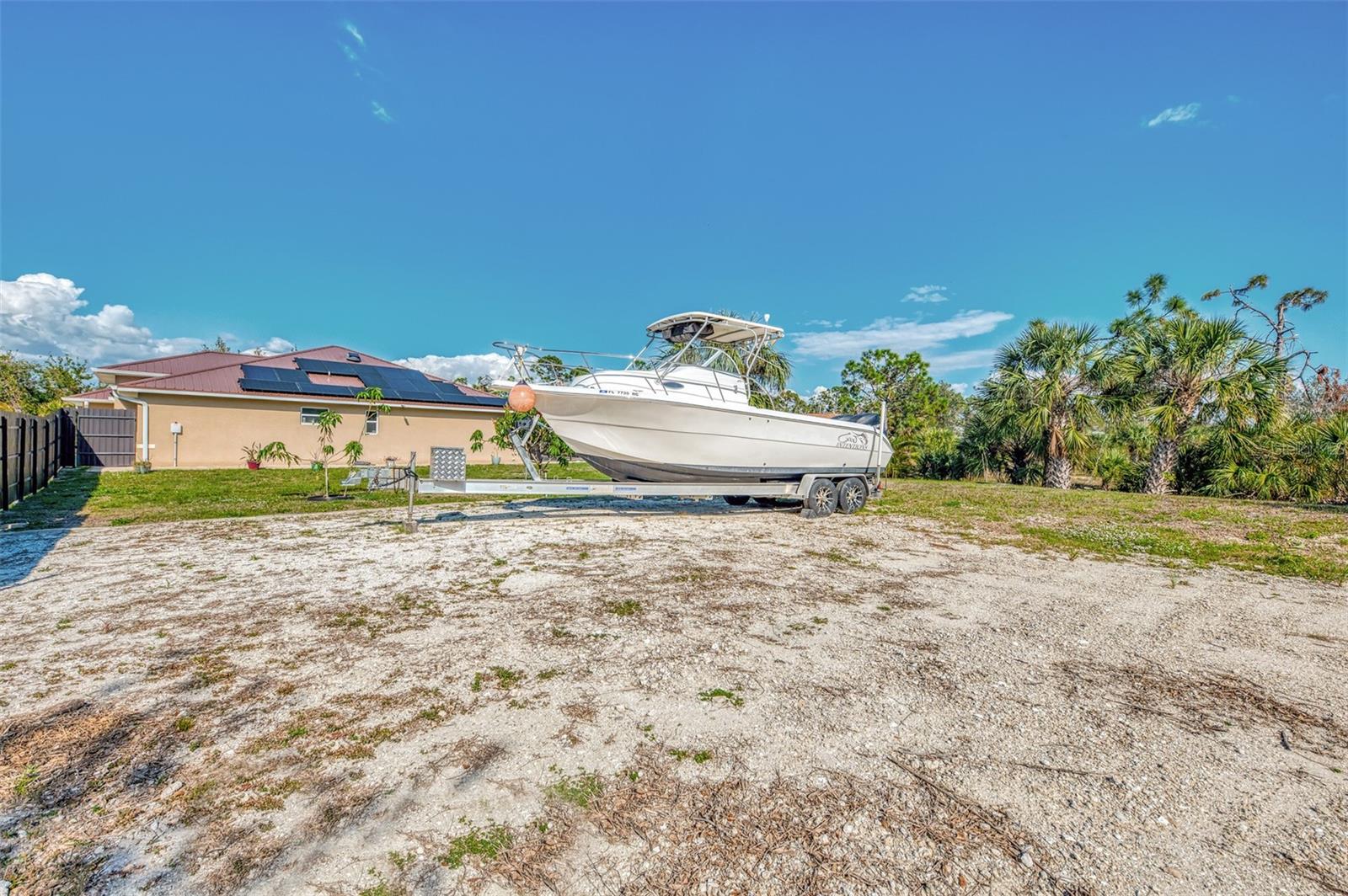 Charming 2018-Built waterfront Pool Home on a Double Lot in South Gulf Cove! this stunning home offers a perfect blend of modern luxury and energy efficiency, with 3-bedroom, 2-bathroom, solar Panels nestled in the sought-after South Gulf Cove community. Enjoy year-round comfort with a Solar panel heated pool and a beautifully paved deck, all set within a spacious water front double lot. The 1-year-old metal roof and solar panels provide durability and energy savings. Inside, the home features tile flooring throughout, an open-concept living space, and a stylish kitchen with soft-close cabinets, granite countertops, and stainless steel appliances. The spacious master bedroom comes with 2 walk-in closets, and dual sink with walk in shower in the master bathroom. Additional highlights include:Energy-efficient water heater, metal fence with gated entry for security, Irrigation system for easy lawn maintenance. Located in a boating-friendly community, this home is just minutes from stunning Gulf beaches, shopping, and dining. Don't miss this incredible opportunity—schedule your showing today!