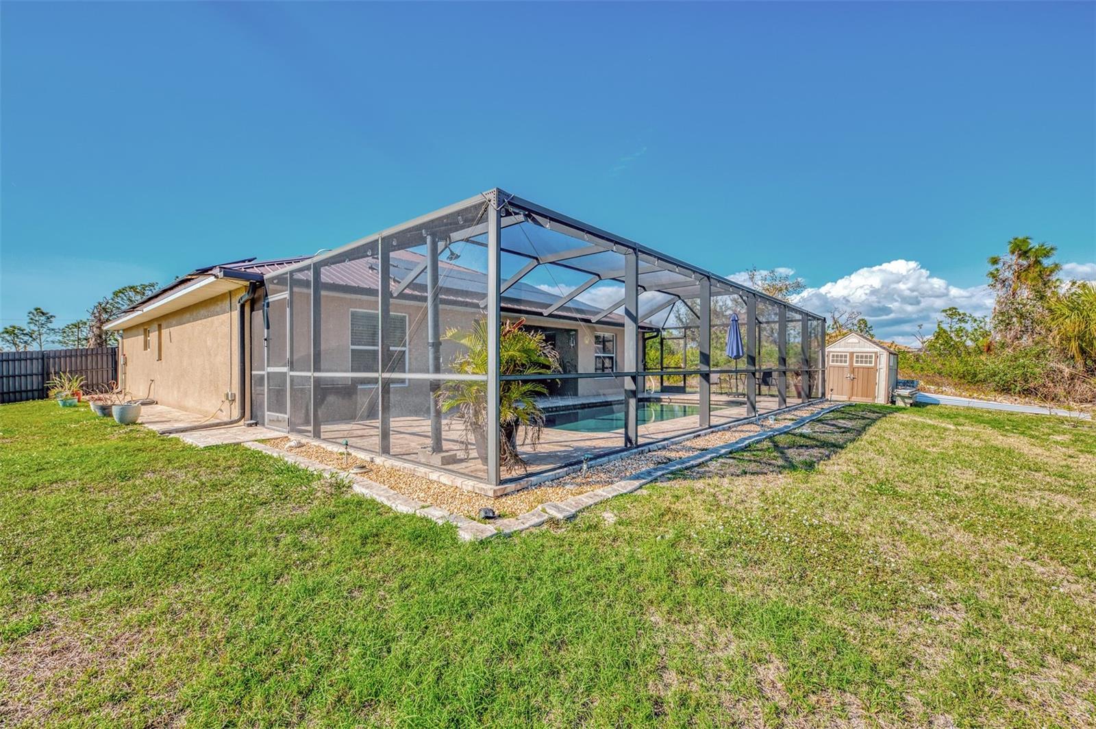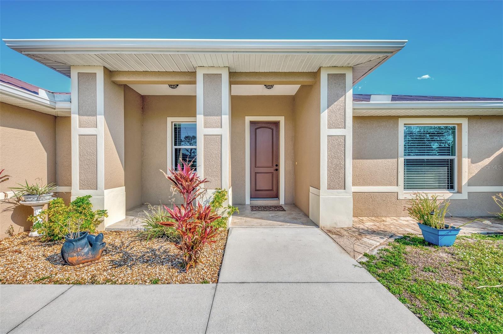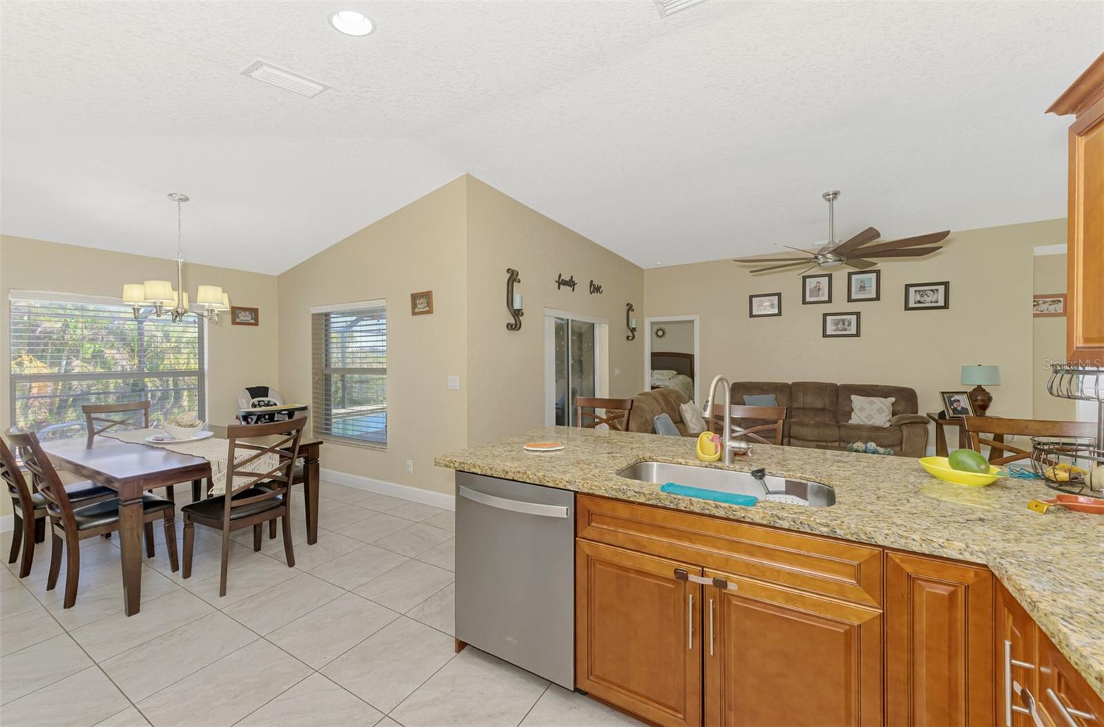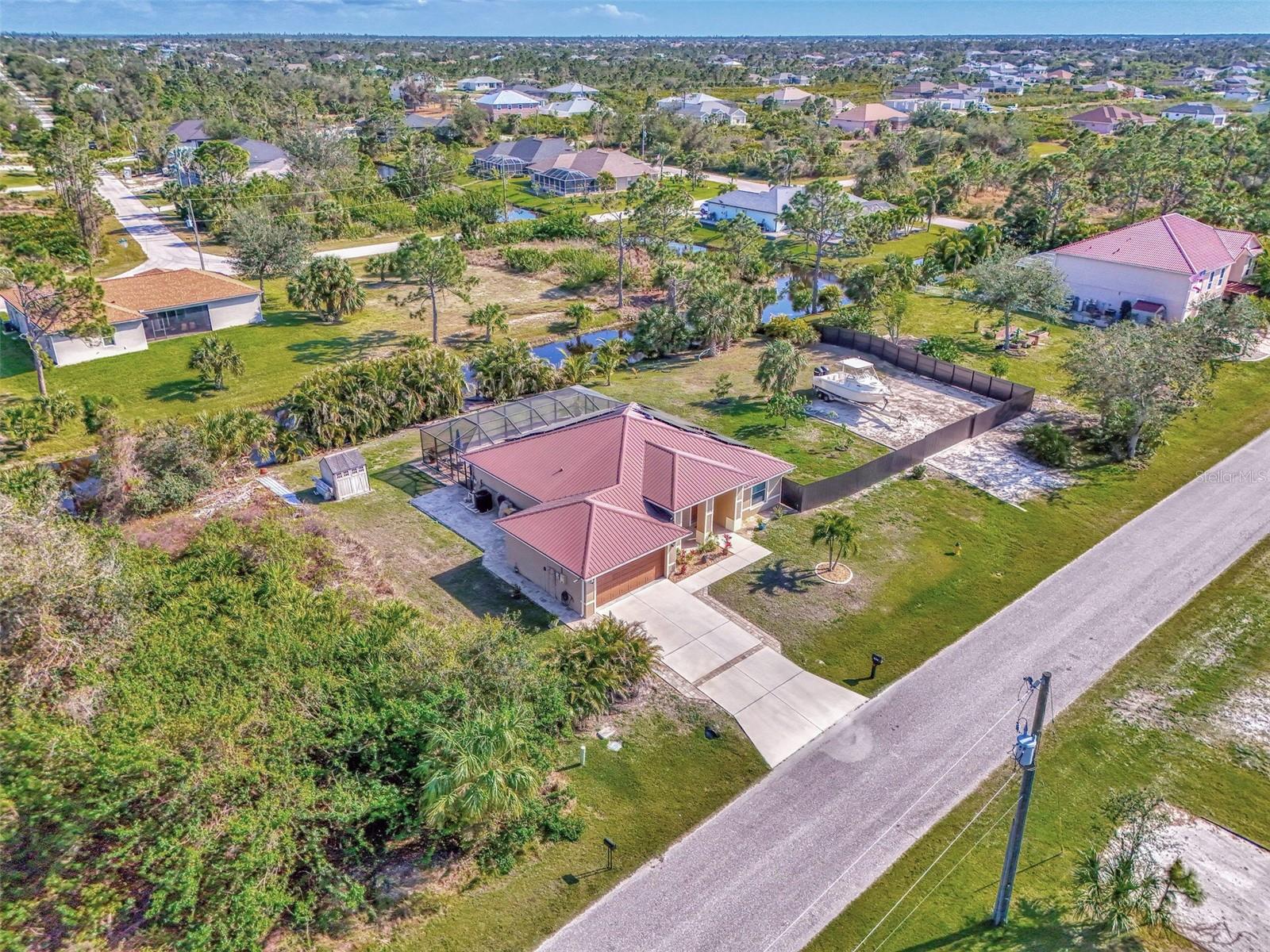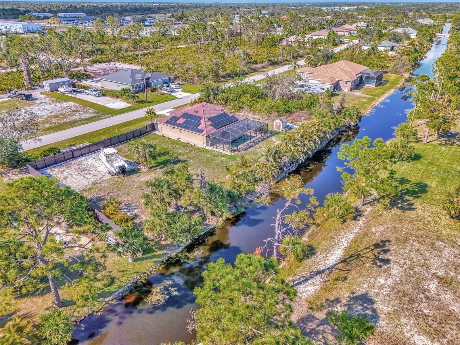 Charming 2018-Built waterfront Pool Home on a Double Lot in South Gulf Cove! this stunning home offers a perfect blend of modern luxury and energy efficiency, with 3-bedroom, 2-bathroom, solar Panels nestled in the sought-after South Gulf Cove community. Enjoy year-round comfort with a Solar panel heated pool and a beautifully paved deck, all set within a spacious water front double lot. The 1-year-old metal roof and solar panels provide durability and energy savings. Inside, the home features tile flooring throughout, an open-concept living space, and a stylish kitchen with soft-close cabinets, granite countertops, and stainless steel appliances. The spacious master bedroom comes with 2 walk-in closets, and dual sink with walk in shower in the master bathroom. Additional highlights include:Energy-efficient water heater, metal fence with gated entry for security, Irrigation system for easy lawn maintenance. Located in a boating-friendly community, this home is just minutes from stunning Gulf beaches, shopping, and dining. Don't miss this incredible opportunity—schedule your showing today!