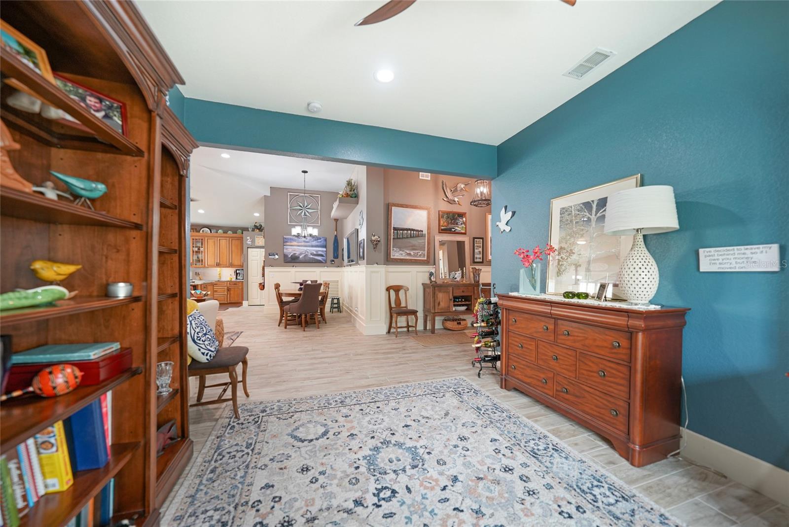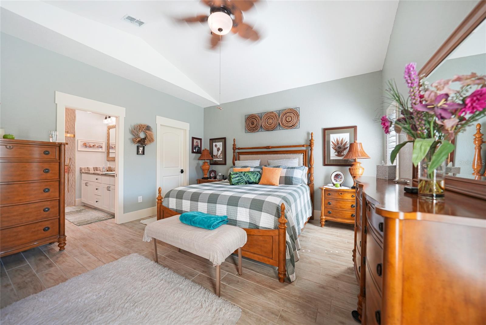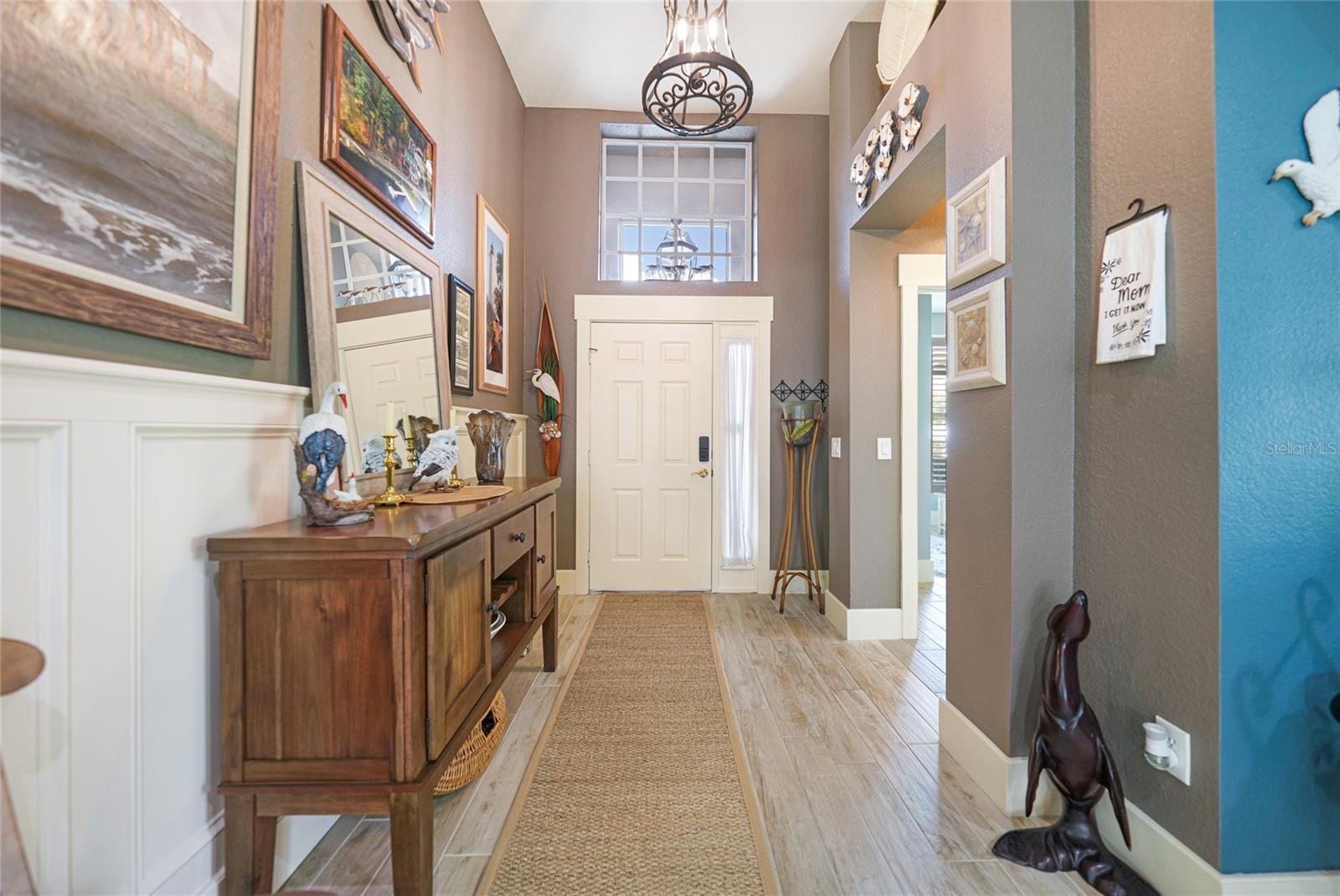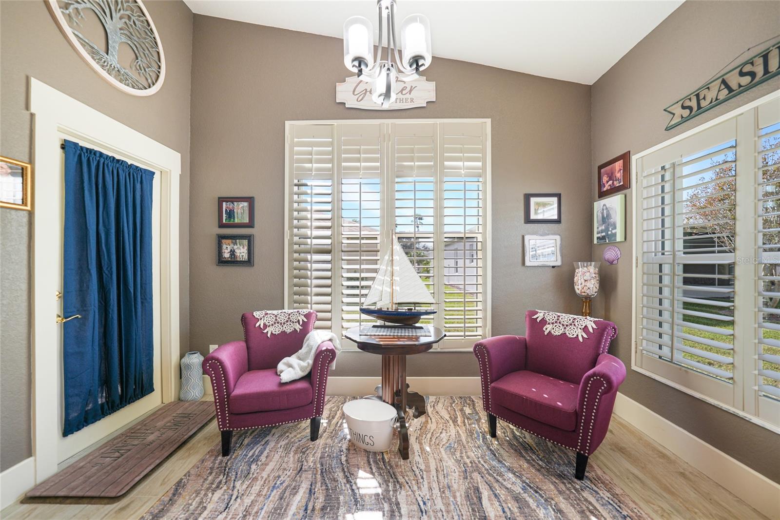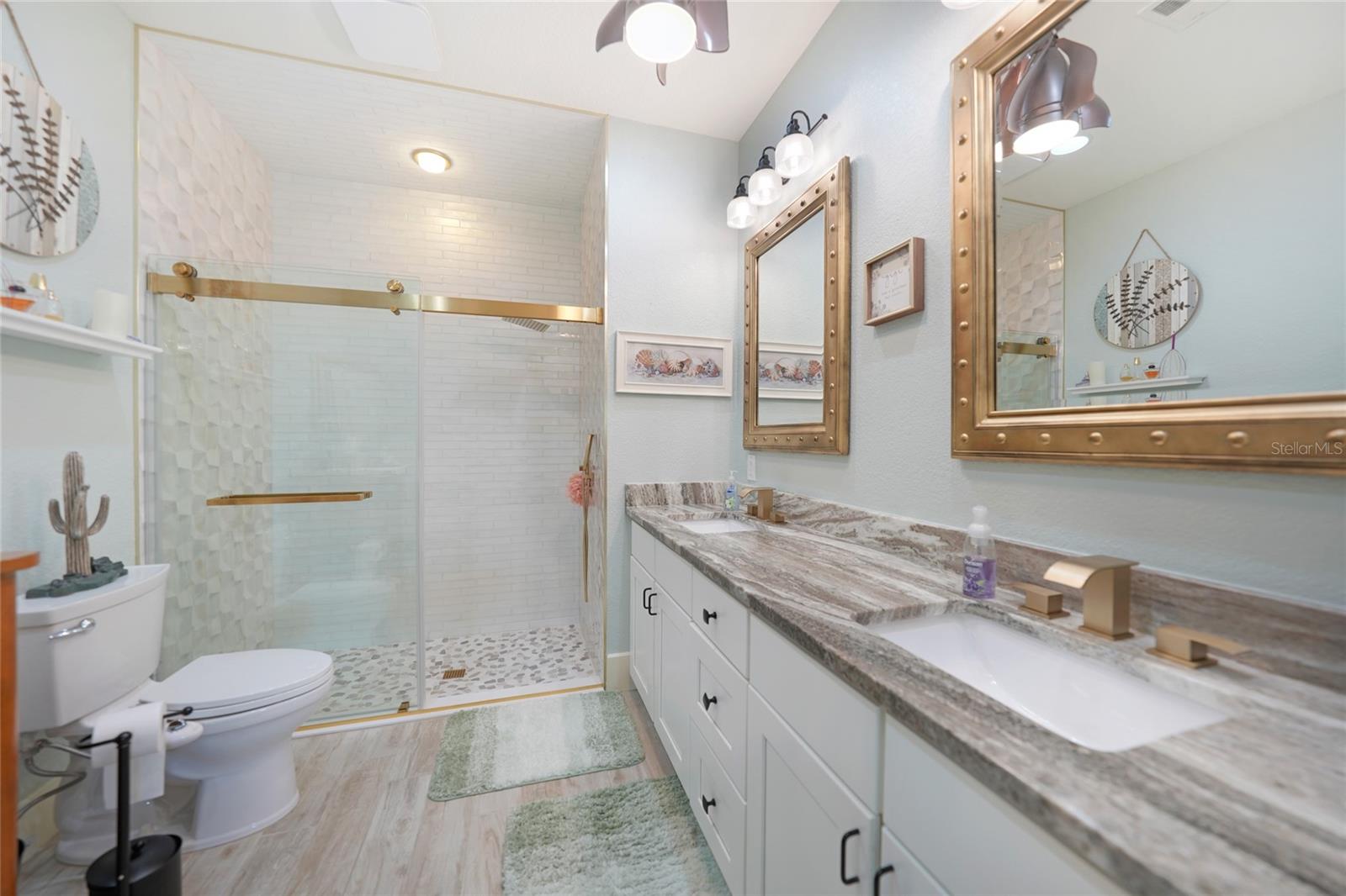Welcome to this exceptional Ashton model in the sought-after 55+ community of King’s Gate! One of a kind home. This lovely home was thoughtfully, remodeled and designed to take advantage of its size. Though it was designed for entertaining with its extra large island with seating, this home is comfortable for every day living. This home is one that looks like no others in this gated community. The interior design is warm and inviting And quite stunning! This home stands out with its open floor plan, soaring ceilings, and a host of elegant upgrades throughout. This property features a solar system that provides affordable electricity, designed to cover all your energy needs. As a result, the owner receives an annual credit. Beautiful wood-look tile flooring and plantation shutters provide timeless charm, while color accent walls, stylish light fixtures, recessed lighting, and plant shelves add designer touches. Both bathrooms have been tastefully updated, enhancing the home’s appeal. The kitchen is a chef’s dream, featuring a large island with breakfast bar, granite countertops, rich wood cabinetry with deep drawers and glass-front accents, and stainless steel appliances, including a four-door refrigerator. A spacious pantry and decorative plumbing fixtures complete the space, which opens seamlessly into the main living and dining areas—perfect for entertaining. The master suite has been extended by two feet for added space and boasts a walk-in closet and an updated en suite bath with dual sinks, elegant mirrors and fixtures, and a large glass-enclosed shower. The living and dining areas offer custom floating shelves to showcase your personal collections. Other highlights include a dedicated laundry room, additional fridge, and overhead cabinets for extra storage. The home also features accordion storm shutters, a new roof (2016), a new hot water heater (2019), a new garage screen door, fresh interior and exterior paint, updated door trim and baseboards, a water softener, and extra insulation. Relax in your private lanai with vinyl windows, ideal for enjoying both sunny days and cool evenings. The home boasts impressive curb appeal, with landscape curbing and a pillared, screened front entry. King’s Gate offers an active, gated 55+ community with amenities like a beautiful clubhouse, Olympic-sized pool, spa, fitness center, tennis courts, bocce, lawn bowling, shuffleboard, a computer room, and a full-time Activities Director. Plus, you’re just minutes from local beaches, dining, shopping, and golf courses, and have easy access to public parks, bike trails, boat ramps, Charlotte Harbor, and the Gulf of Mexico. Convenient access to I-75 makes this home a true gem for Florida living. Come seek and find this one of a kind gem for yourself.