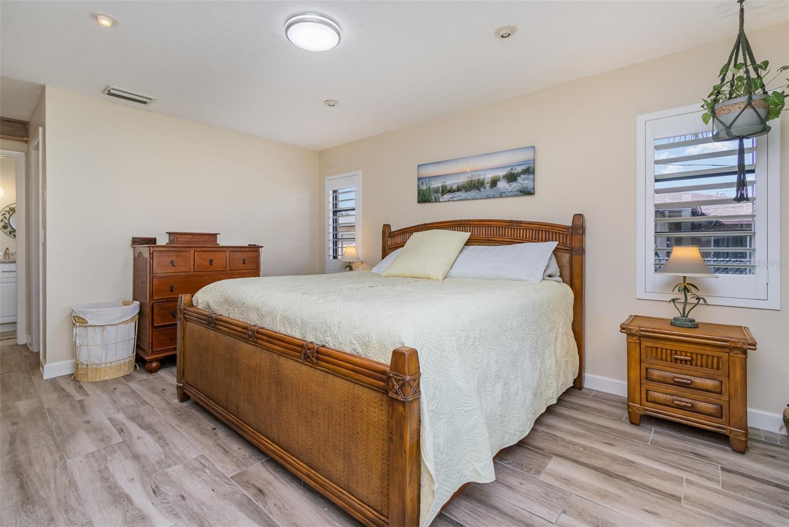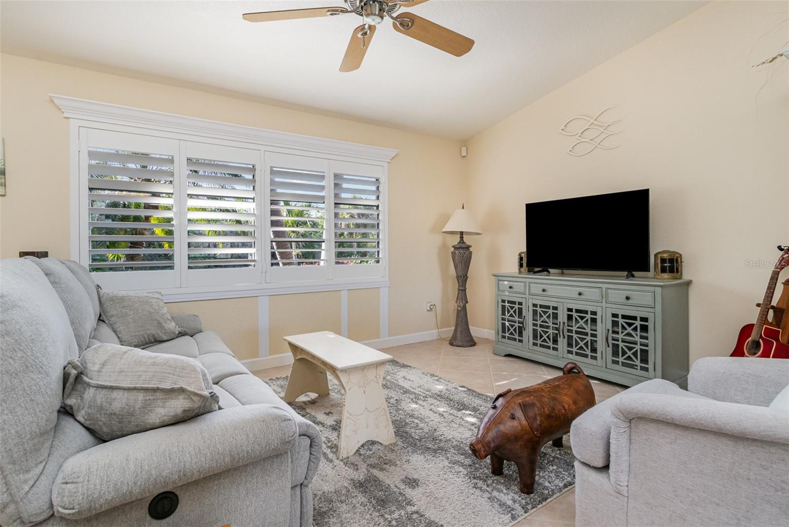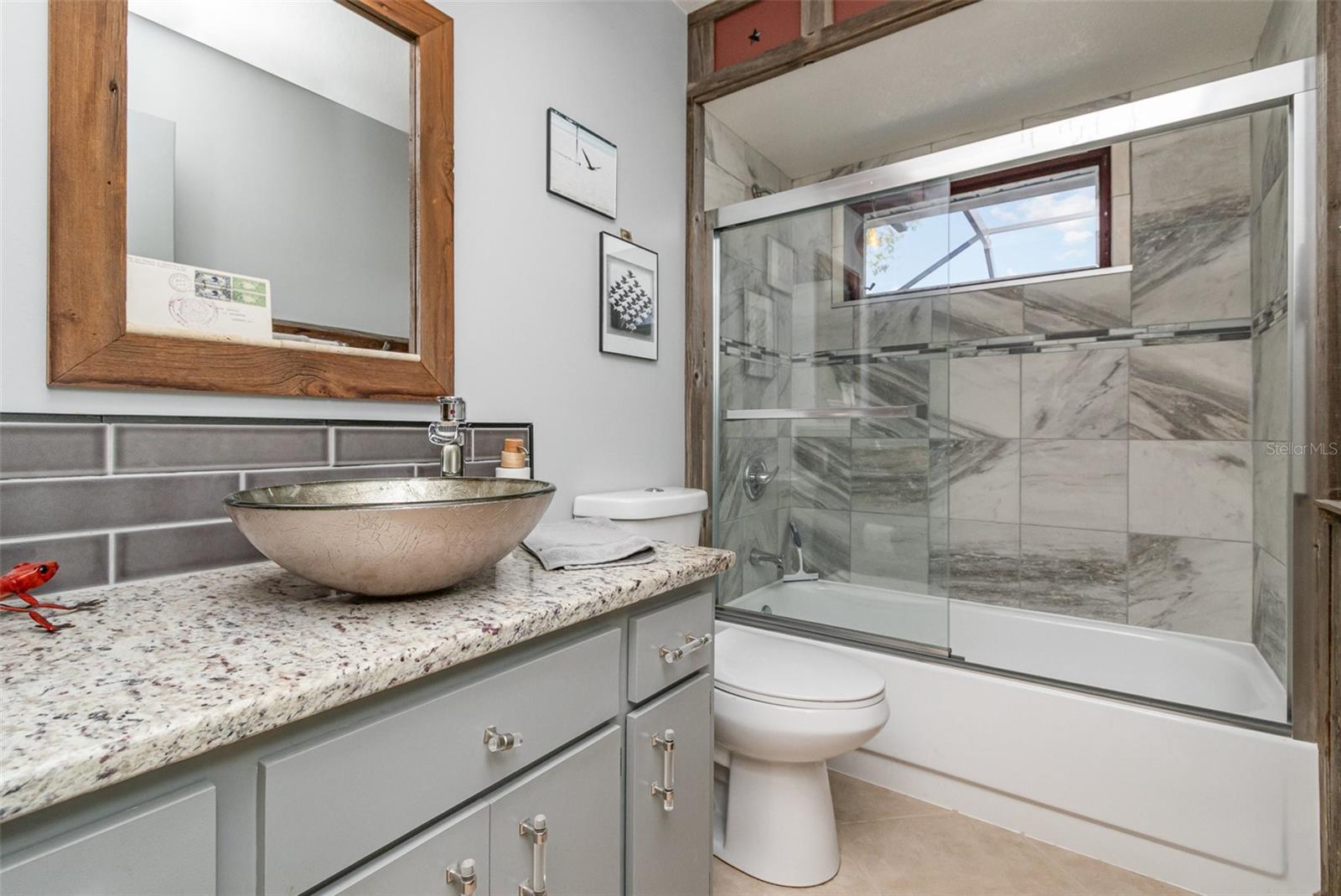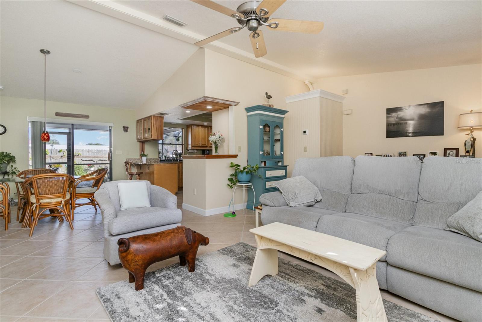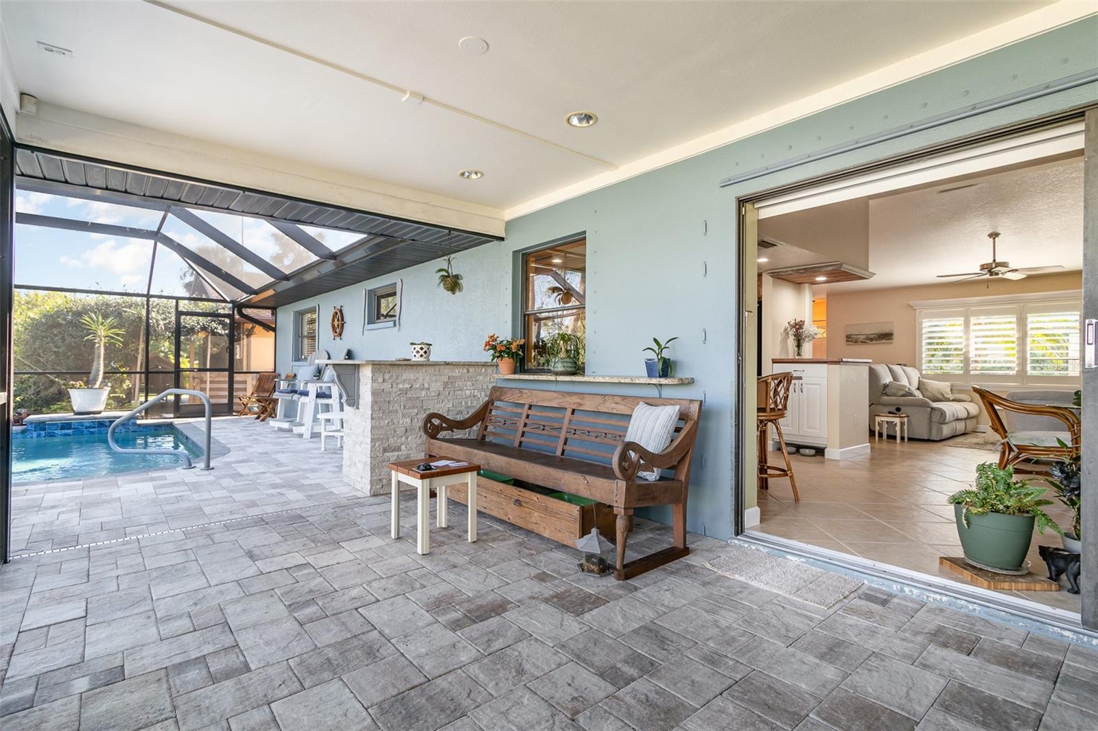 "Huge Price Improvement" Welcome to this stunning 2-bedroom, 2-bathroom with space for an office pool home, ideally located on two lots in a desirable area of Port Charlotte. Offering a split floorplan and a wealth of custom features, this home provides both comfort and style. The expansive master suite boasts French door entry, a large walk-in closet, and sliding door access to the back porch, where you can enjoy the tranquility of the private lanai. The en-suite bath features a spacious walk-in shower. On the opposite side of the home, you'll find a generously sized guest room (18x12') with a beautiful bathroom featuring a granite countertop and a vessel sink. The gourmet kitchen is a chef's dream with solid wood cabinets, granite countertops, stainless steel appliances, and a unique wood ceiling that adds a warm, inviting touch. For added convenience, the home includes an inside laundry room, offering the feel of a larger home. Step outside to the private lanai, complete with a paver deck (720sqft) and a large covered area perfect for entertaining. Relax in the hot tub, enjoy a cold drink at the standalone bar area, or take a dip in the refreshing saltwater, heated pool. Surrounded by mature landscaping and palm trees, this outdoor space feels like your own tropical oasis. Potential 16x30' dog run with minimal effort. The detached garage/workshop is a bonus, featuring a sink, air conditioning powered by a solar panel, and ample space for all your hobbies. The home is energy-efficient, thanks to the new metal roof installed before Hurricane Ian, and the custom-owned solar panels help keep electric bills around $80 a month. Other custom touches include plantation shutters, custom trim work, tile floors, and vaulted ceilings. “Bonus” the sewer assessment has already been paid in full! Located along the desirable Edgewater Corridor, you'll have easy access to everything Port Charlotte and Punta Gorda have to offer. This beautiful home truly has it all—don’t miss your chance to make it yours!