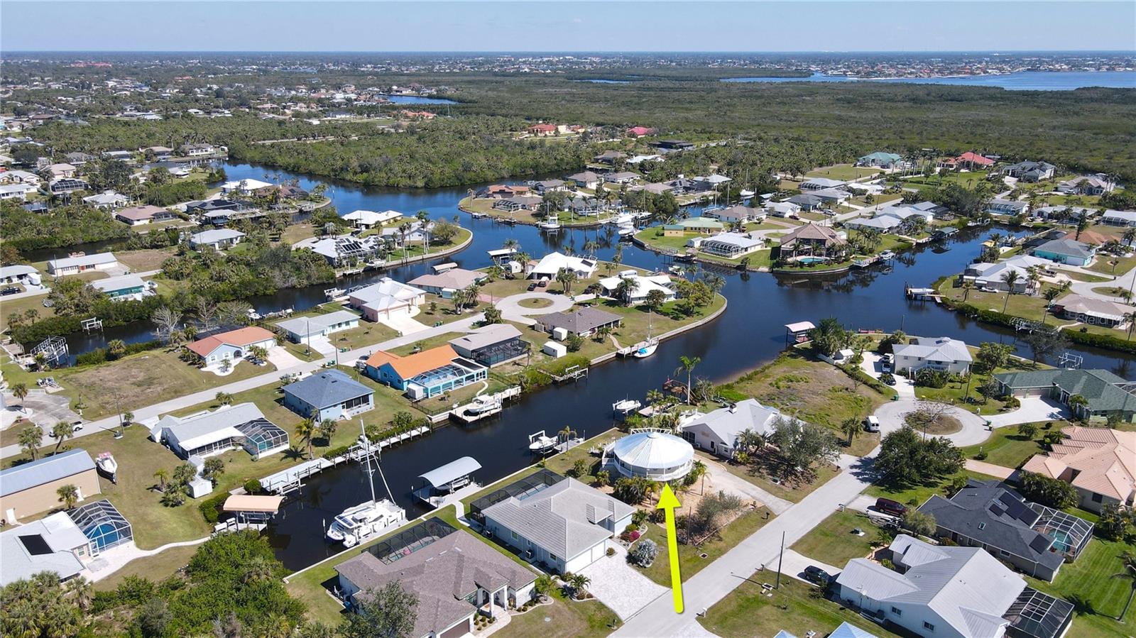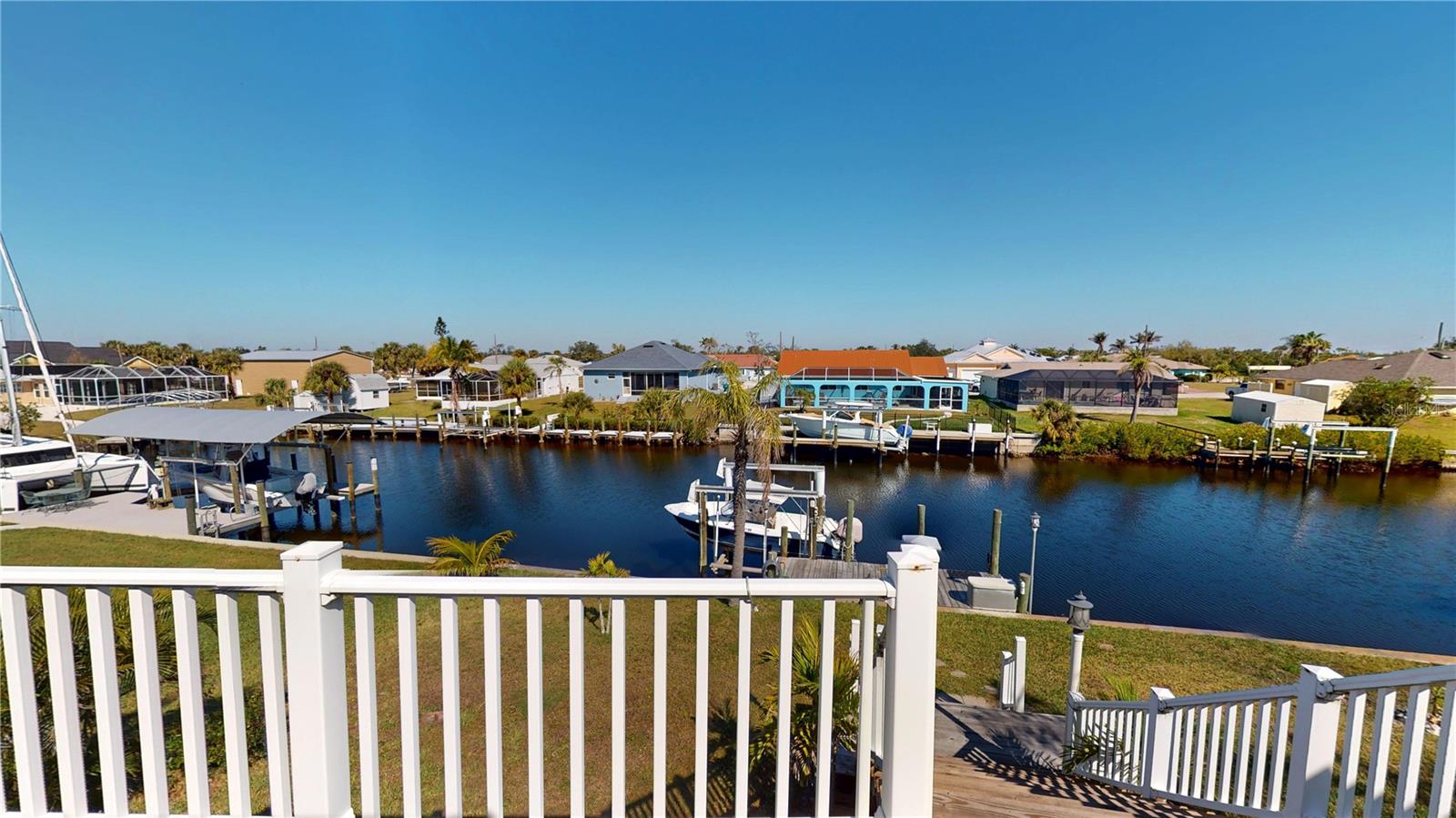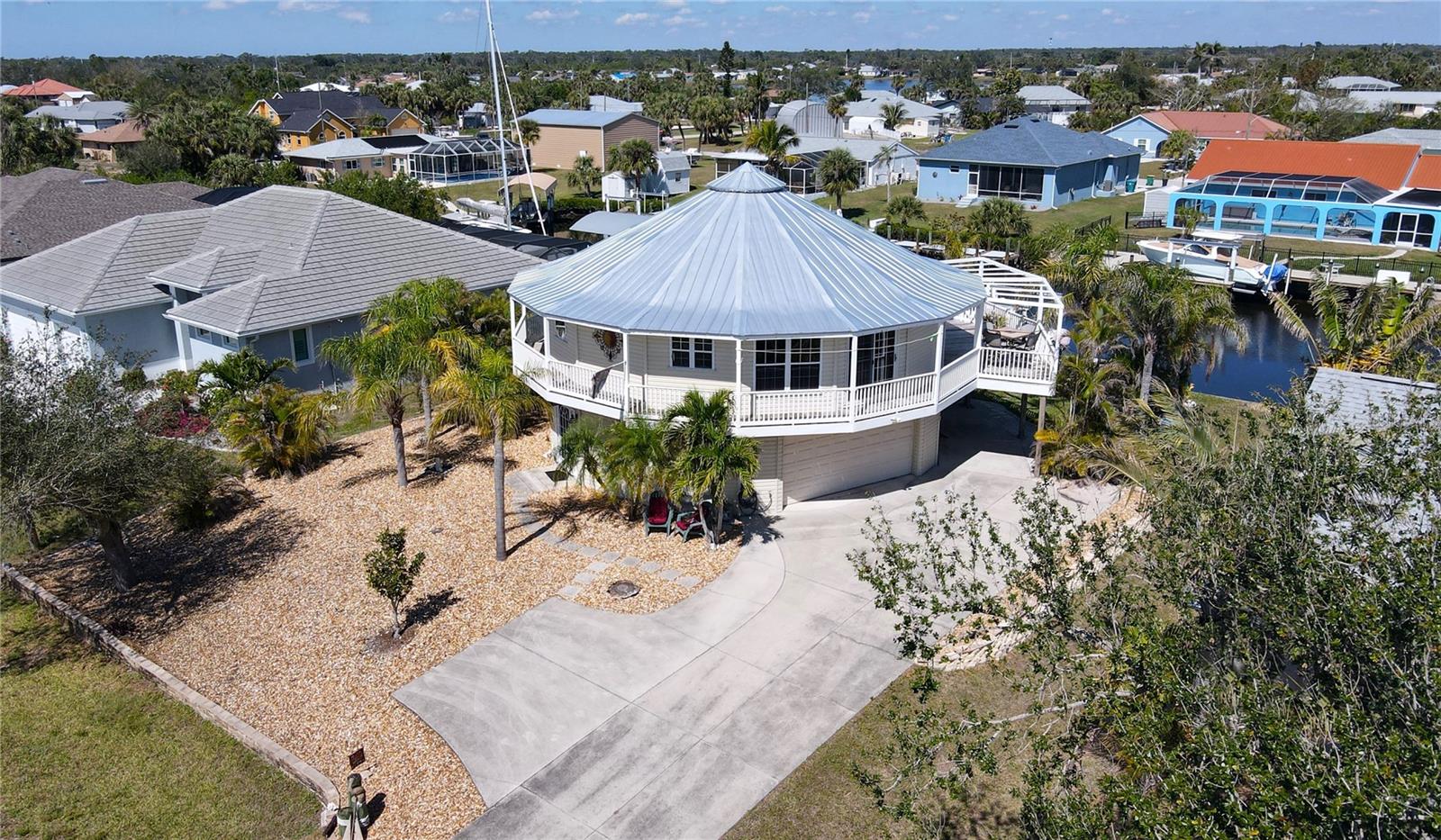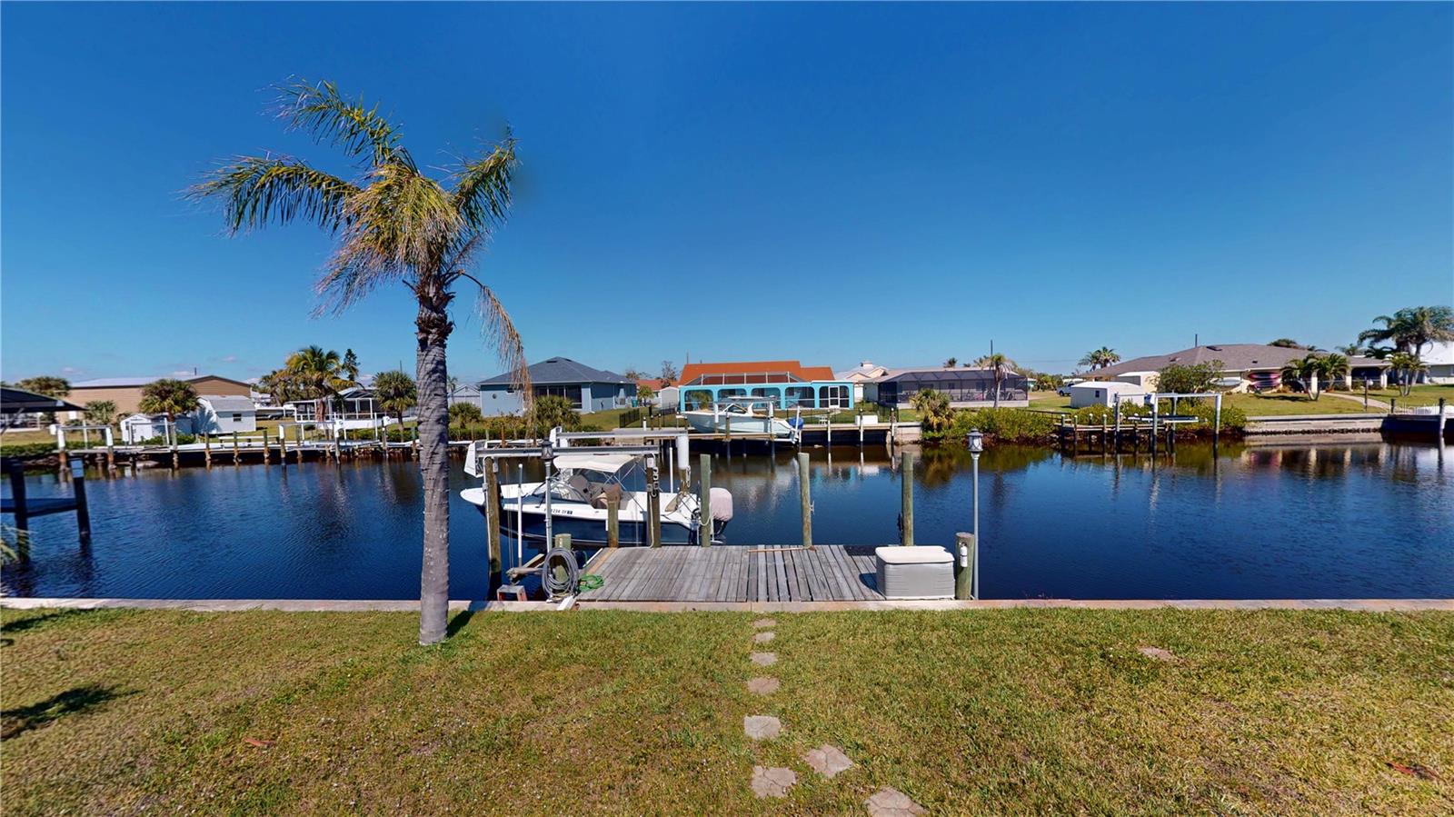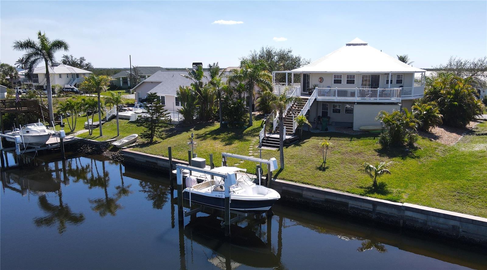 **PLEASE ENJOY THE 3D INTERACTIVE VIRTUAL TOUR ASSOCIATED WITH THIS LISTING** Looking for a "Storm Resistant" Home on Sailboat water? Look no further than this 2 Story, 3 Bedroom, 2 1/2 bath custom built Del-Tec Residence! This home has been through all the storms since being built in 2002 and sustained no damage from Hurricane Charley while the other properties on the same street/area had incurred damage. As you will see when you visit, it is at a higher street elevation with no flooding during or after Hurricane Milton. The Elevation Cert which is attached in the MLS shows first floor elevation at 10.1 ft. On the second floor, the large kitchen has Cherry wood cabinets with pull outs and Gibraltar solid top counters that overlooks the Great Room. There are multiple sliders leading out to the balcony that wraps around the entire structure providing beautiful views of Hog Island and glorious sunsets. The second floor Primary Bedroom has a large walk in closet and its own slider to the balcony with a sitting area. The laundry is on the second floor as well for ease of access. The first floor is the location of both guest bedrooms, den/office and full bath. This area leads out to an attached storage area (10 x10) and a path to the 10,000 lb. boat lift and dock with recently installed pilings. The sellers used to have a 35 foot sailboat that drew 4 1/2 feet if you are concerned about water depth. THERE IS PLENTY OF ROOM TO ADD A POOL, IF DESIRED. The nice sized garage fits two vehicles and has a workshop as well. There is a generator hook up on the electric panel. In the driveway, there is a 30 amp RV hook up as well. When building the home, the owners added extra insulation in the walls and installed Wolverine siding which is rated to 150 mph. They have never lost a piece of siding since the home was built in 2002. There is adequate room to add a passenger lift if so desired. The properties in this area recently had Fiber Optics installed and FPL placed power underground. The property is a short drive to downtown Punta Gorda. Visit the Builders site at https://deltechomes.com/hurricane to learn more about the Storm Resistance of these homes. Walk through now by clicking on the attached interactive 3D VIRTUAL TOUR!
