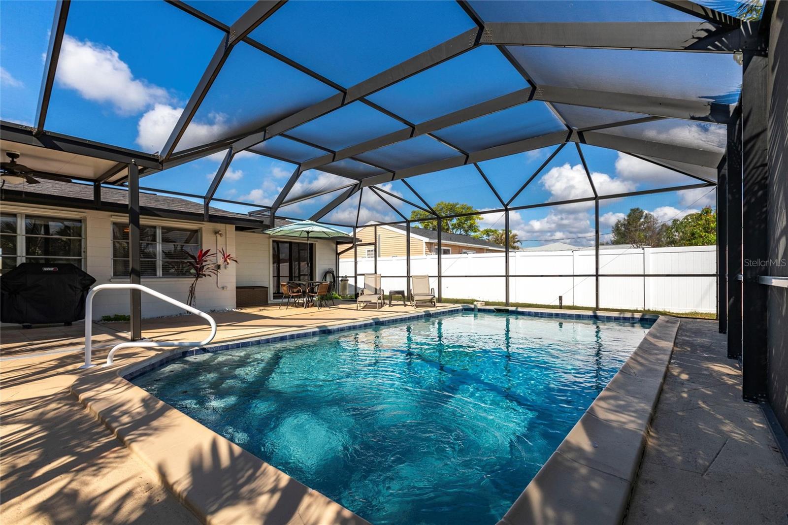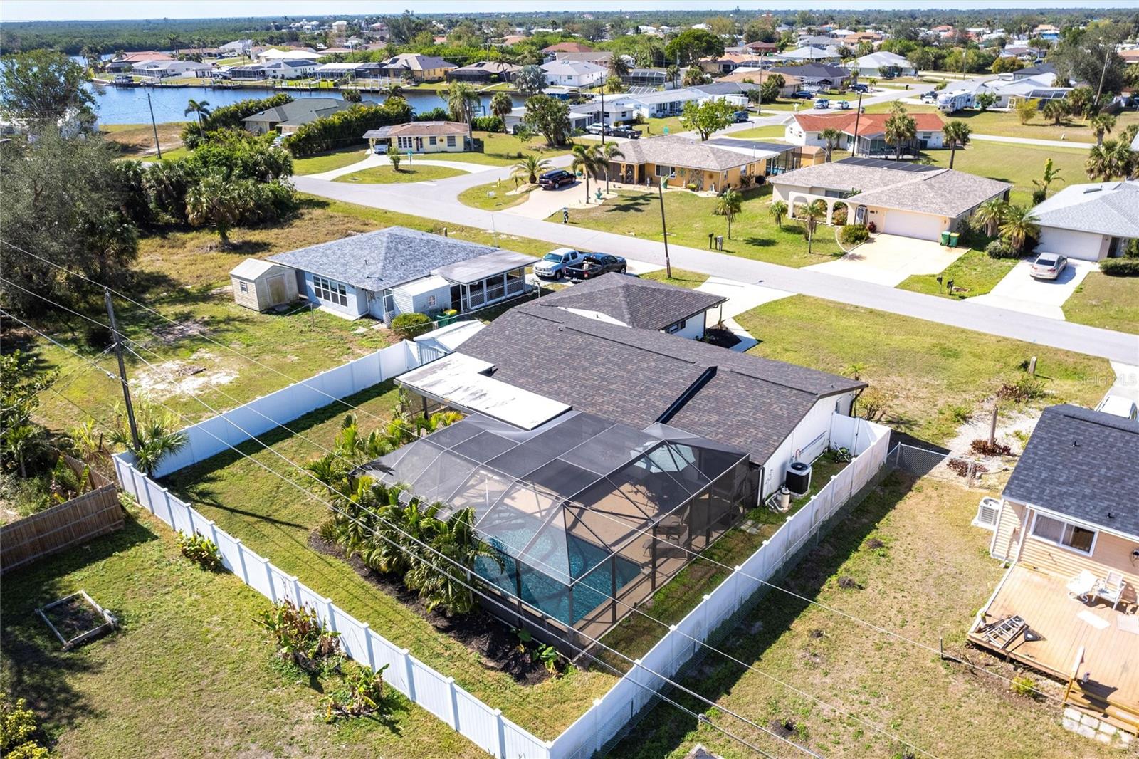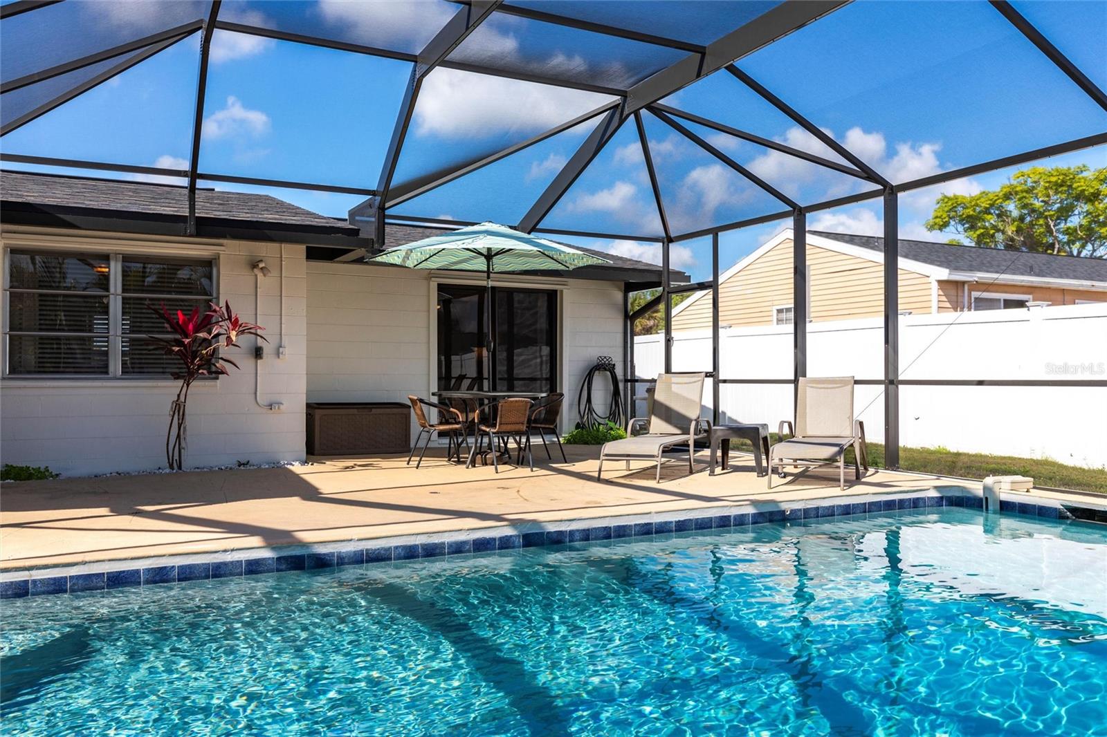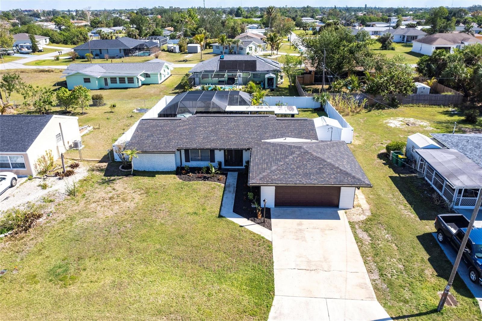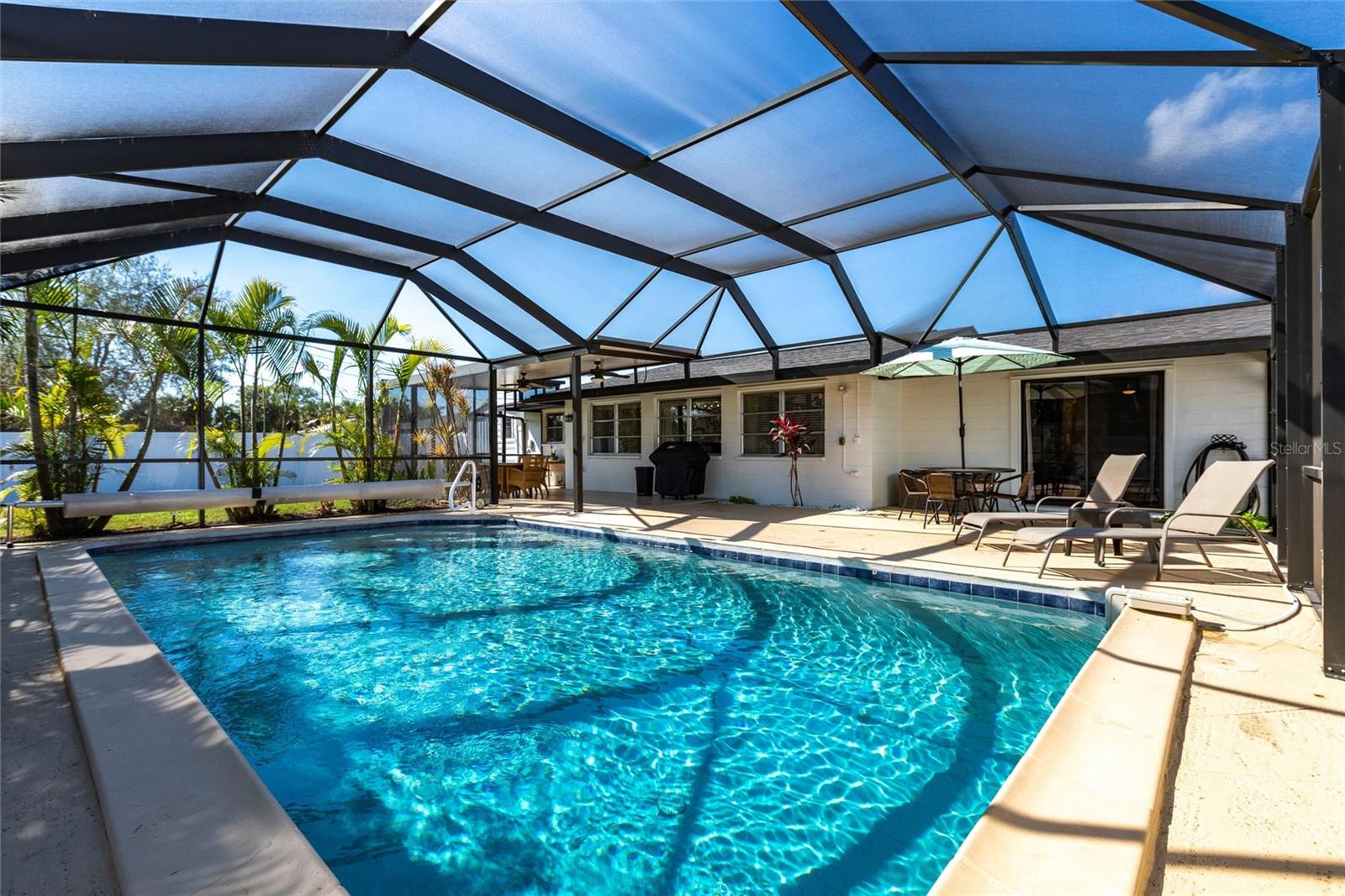 Welcome to this beautifully updated 3-bedroom, 2-bathroom pool home with a 2-car garage, located in the highly sought-after city of Port Charlotte. Offering over 1,548 square feet of living space, this home provides a spacious and welcoming atmosphere, perfect for you to make it your own. Upon entering, you'll be greeted by an open, split floor plan that ensures both privacy and functionality. The large living room seamlessly flows into the kitchen, featuring granite countertops with a stylish brick-style backsplash, a suite of stainless-steel appliances, ample storage space, and a breakfast bar that opens to the dining area—ideal for both everyday living and entertaining. The tiled flooring throughout this space ensures easy maintenance and lasting durability. The primary suite features private slider access to the pool and lanai area, along with wood tile flooring and a spacious walk-in closet. The updated attached bathroom offers a stunning corner walk-in shower with a frameless glass door and a granite-top vanity. The two additional guest bedrooms both include walk-in closets, with one featuring French doors. One room is currently being used as an office/den, offering versatile space for your needs. The guest bathroom has been updated and features a shower/tub combo, complementing the style of the primary bathroom. Step outside to a screened-in lanai featuring a sparkling heated pool, ideal for soaking up the beautiful Florida sunshine. Whether you're looking to take a refreshing swim or unwind on the pool deck, this outdoor space provides endless opportunities for relaxation and entertainment. Adjacent to the pool, you'll find a charming covered patio area, perfect for al fresco dining or simply enjoying a shady retreat. Whether you're savoring a meal outdoors or relaxing with a cool drink, this inviting space offers a comfortable spot to unwind and enjoy the Florida breeze. The backyard is fully fenced with new vinyl fencing, providing both privacy and security. Additionally, a 10x10 shed offers ample space for outdoor storage, making it perfect for keeping your tools, equipment, or other belongings organized. This home also boasts several recent upgrades, including a new garage door, a new A/C unit installed in 2022, and a re-roof completed in 2022. The pool cage was updated in 2022, pool heater was replaced in 2019 and pump in 2024 for added convenience. Additional features include fresh interior paint, hurricane storm shutters for peace of mind, public water and sewer, and a 2-car garage with a utility sink and dedicated laundry area. Centrally located to all major stores, eateries, schools, Gulf beaches, golf and more. Port Charlotte Beach Park and Boat Ramp is a 5-minute drive away. While there enjoy the public beach, picnic areas, playground, tennis courts, boat ramp and swimming pool. ****PLEASE ENJOY THE 3D INTERACTIVE VIRTUAL TOUR ASSOCITED WITH THIS LISTING.