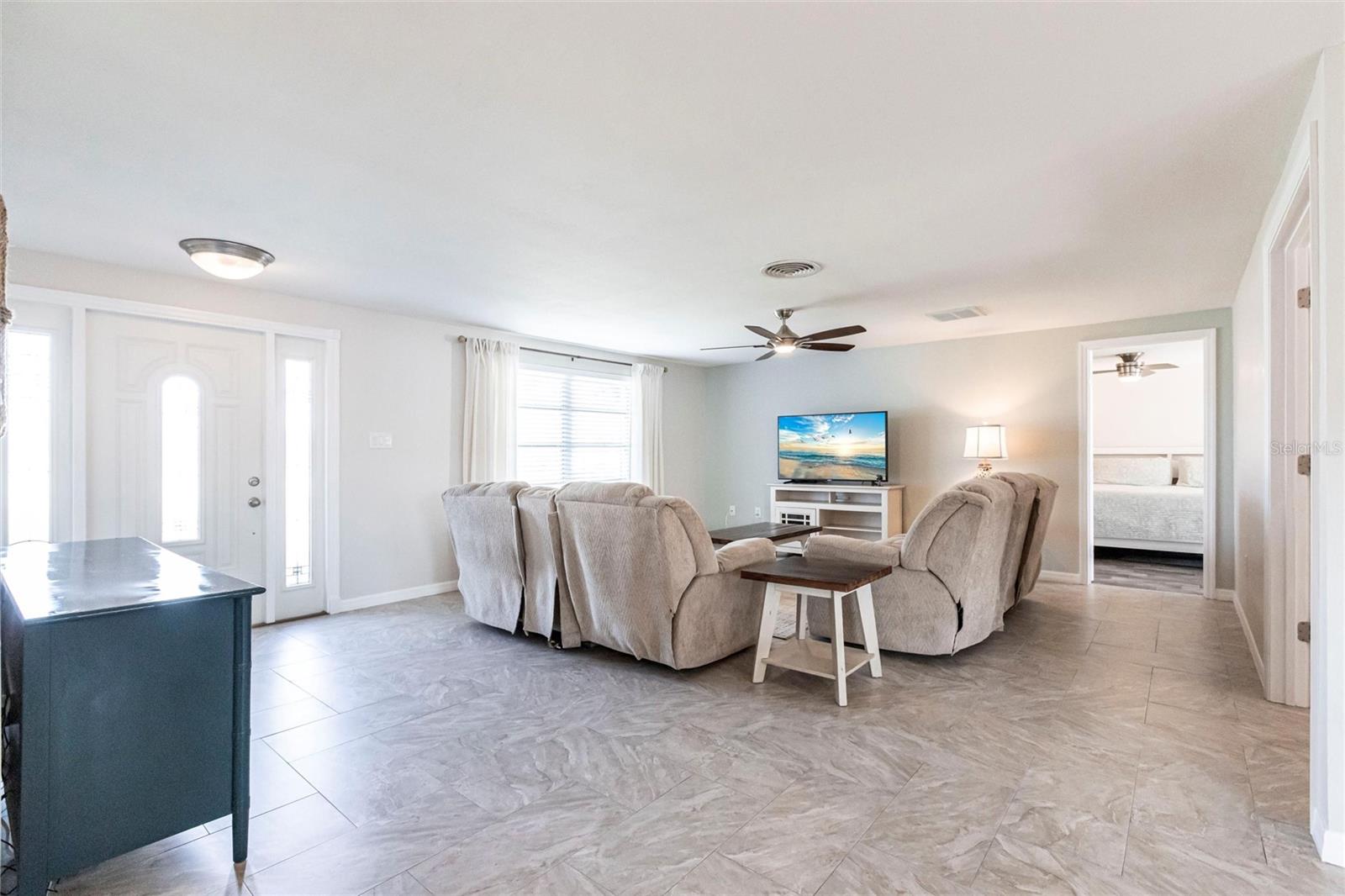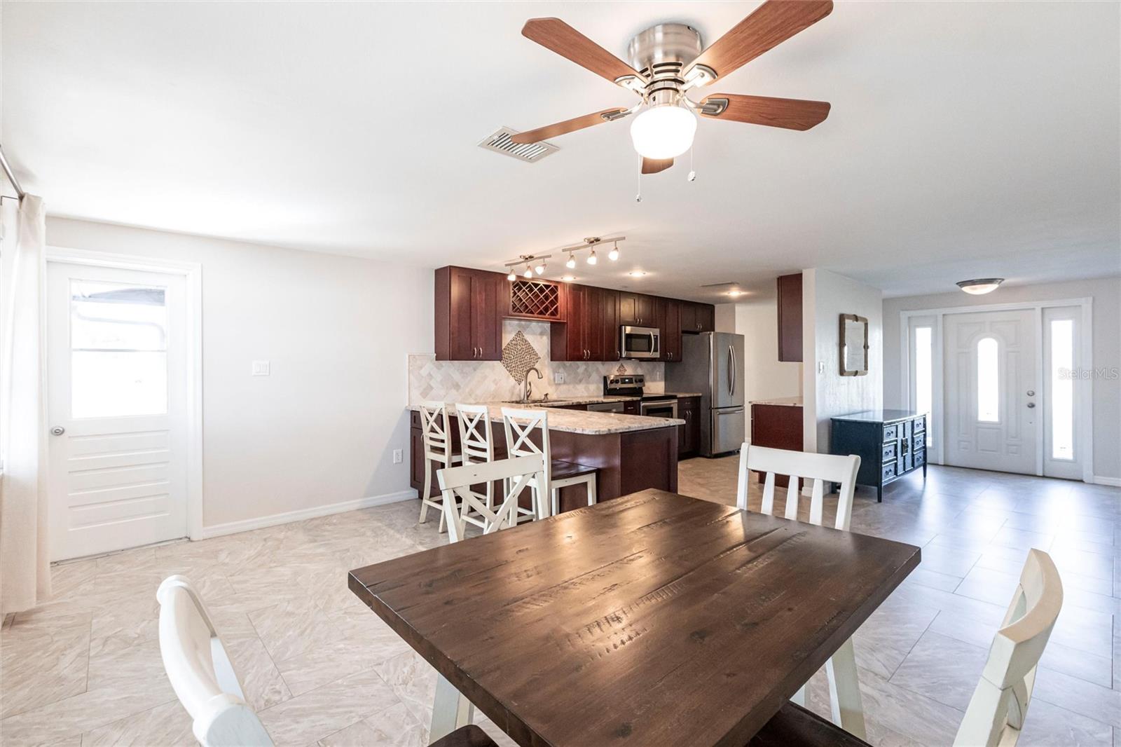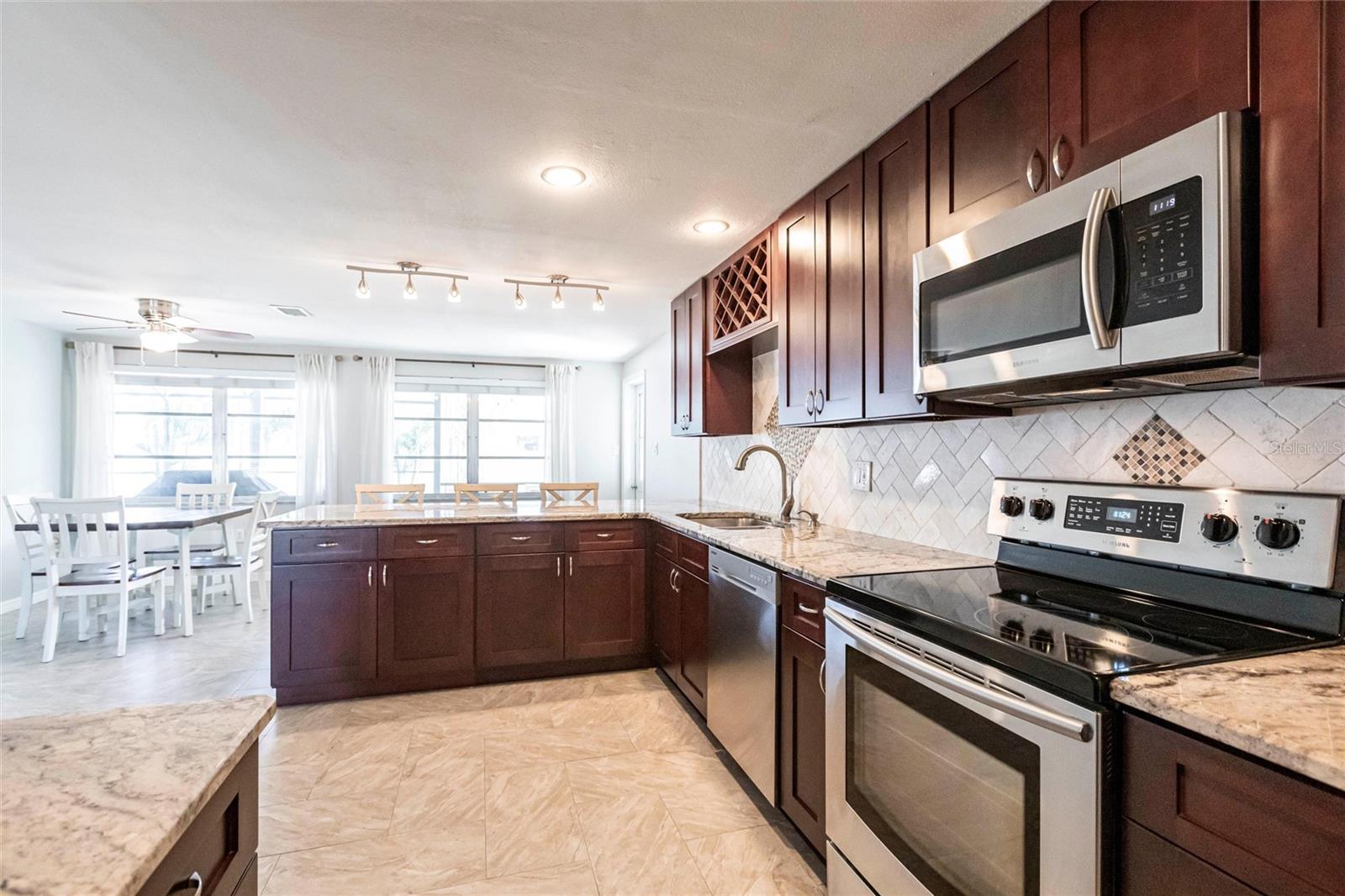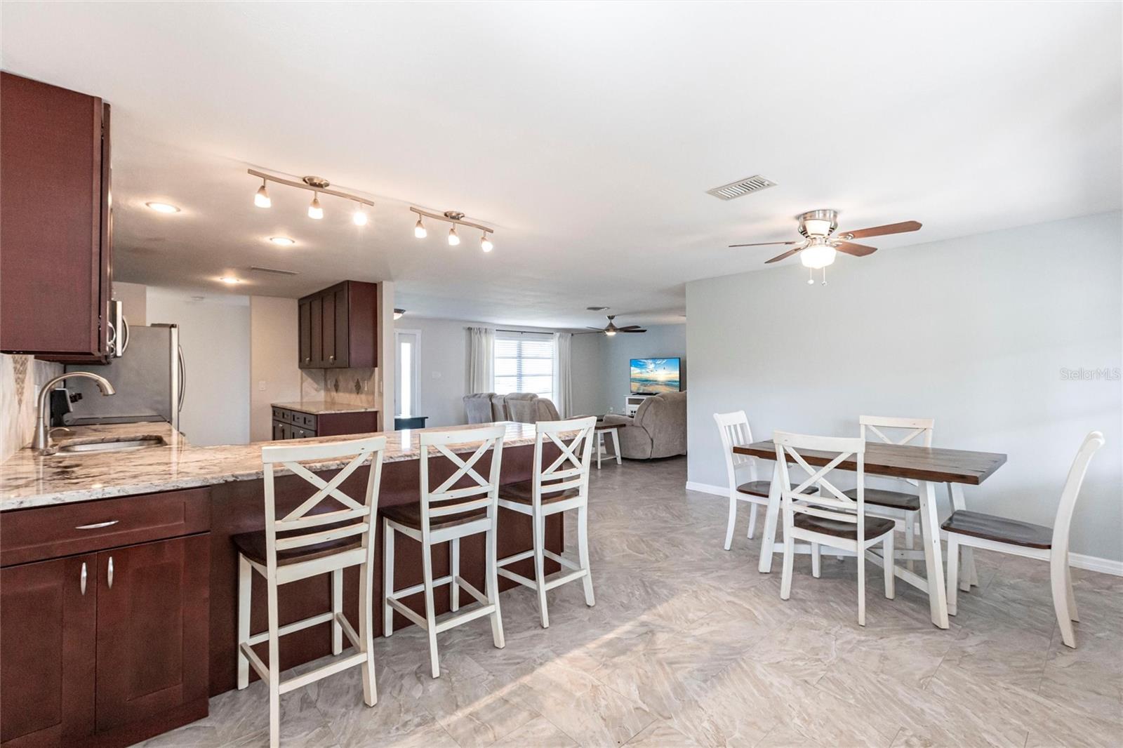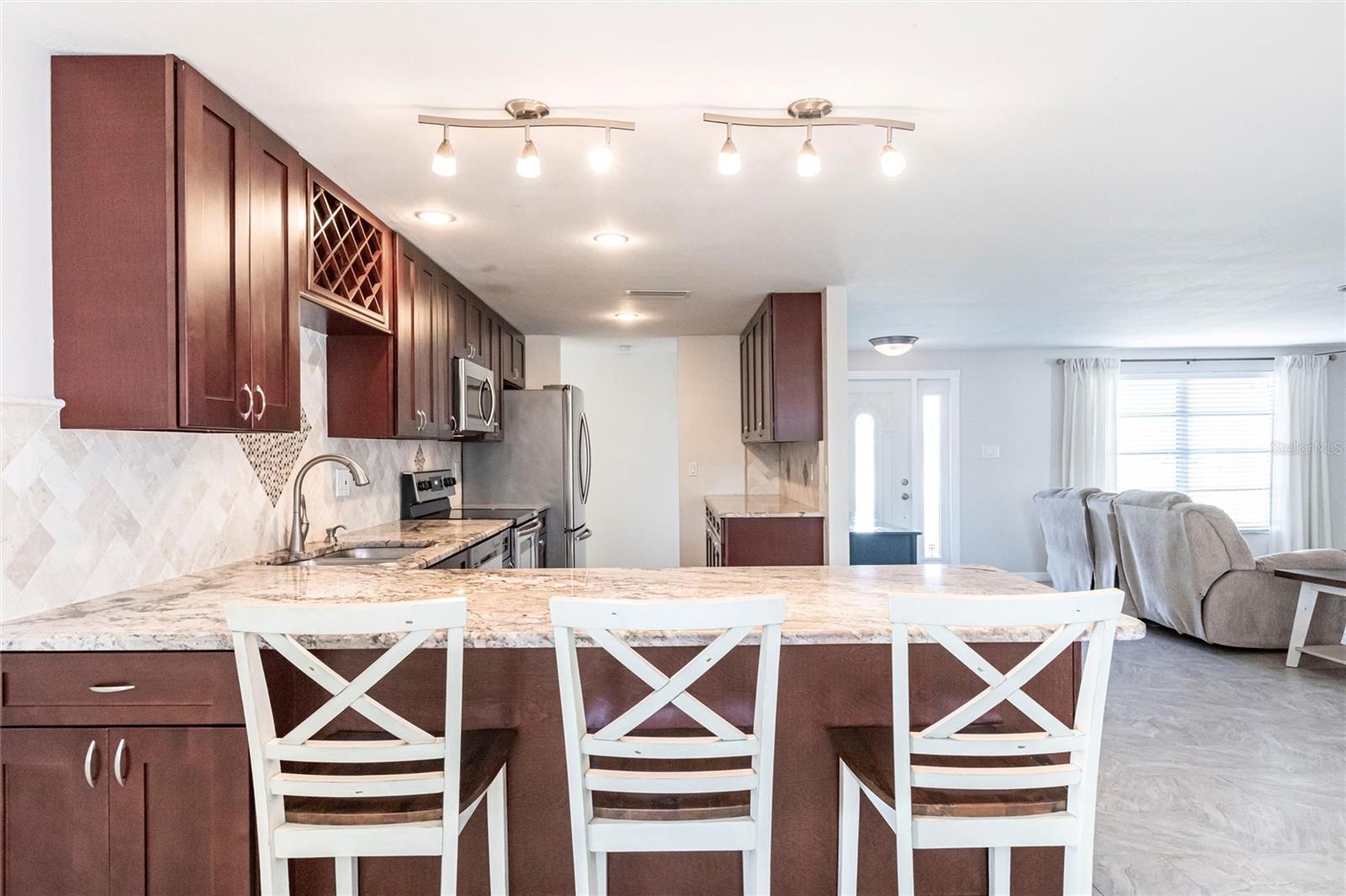 Welcome to this beautifully updated 3-bedroom, 2-bathroom pool home with a 2-car garage, located in the highly sought-after city of Port Charlotte. Offering over 1,548 square feet of living space, this home provides a spacious and welcoming atmosphere, perfect for you to make it your own. Upon entering, you'll be greeted by an open, split floor plan that ensures both privacy and functionality. The large living room seamlessly flows into the kitchen, featuring granite countertops with a stylish brick-style backsplash, a suite of stainless-steel appliances, ample storage space, and a breakfast bar that opens to the dining area—ideal for both everyday living and entertaining. The tiled flooring throughout this space ensures easy maintenance and lasting durability. The primary suite features private slider access to the pool and lanai area, along with wood tile flooring and a spacious walk-in closet. The updated attached bathroom offers a stunning corner walk-in shower with a frameless glass door and a granite-top vanity. The two additional guest bedrooms both include walk-in closets, with one featuring French doors. One room is currently being used as an office/den, offering versatile space for your needs. The guest bathroom has been updated and features a shower/tub combo, complementing the style of the primary bathroom. Step outside to a screened-in lanai featuring a sparkling heated pool, ideal for soaking up the beautiful Florida sunshine. Whether you're looking to take a refreshing swim or unwind on the pool deck, this outdoor space provides endless opportunities for relaxation and entertainment. Adjacent to the pool, you'll find a charming covered patio area, perfect for al fresco dining or simply enjoying a shady retreat. Whether you're savoring a meal outdoors or relaxing with a cool drink, this inviting space offers a comfortable spot to unwind and enjoy the Florida breeze. The backyard is fully fenced with new vinyl fencing, providing both privacy and security. Additionally, a 10x10 shed offers ample space for outdoor storage, making it perfect for keeping your tools, equipment, or other belongings organized. This home also boasts several recent upgrades, including a new garage door, a new A/C unit installed in 2022, and a re-roof completed in 2022. The pool cage was updated in 2022, pool heater was replaced in 2019 and pump in 2024 for added convenience. Additional features include fresh interior paint, hurricane storm shutters for peace of mind, public water and sewer, and a 2-car garage with a utility sink and dedicated laundry area. Centrally located to all major stores, eateries, schools, Gulf beaches, golf and more. Port Charlotte Beach Park and Boat Ramp is a 5-minute drive away. While there enjoy the public beach, picnic areas, playground, tennis courts, boat ramp and swimming pool. ****PLEASE ENJOY THE 3D INTERACTIVE VIRTUAL TOUR ASSOCITED WITH THIS LISTING.