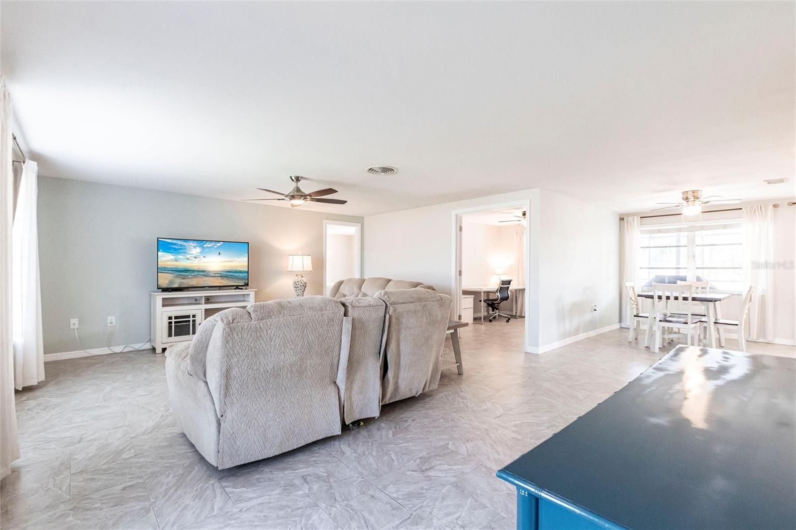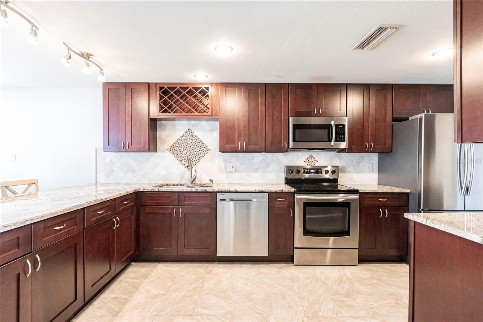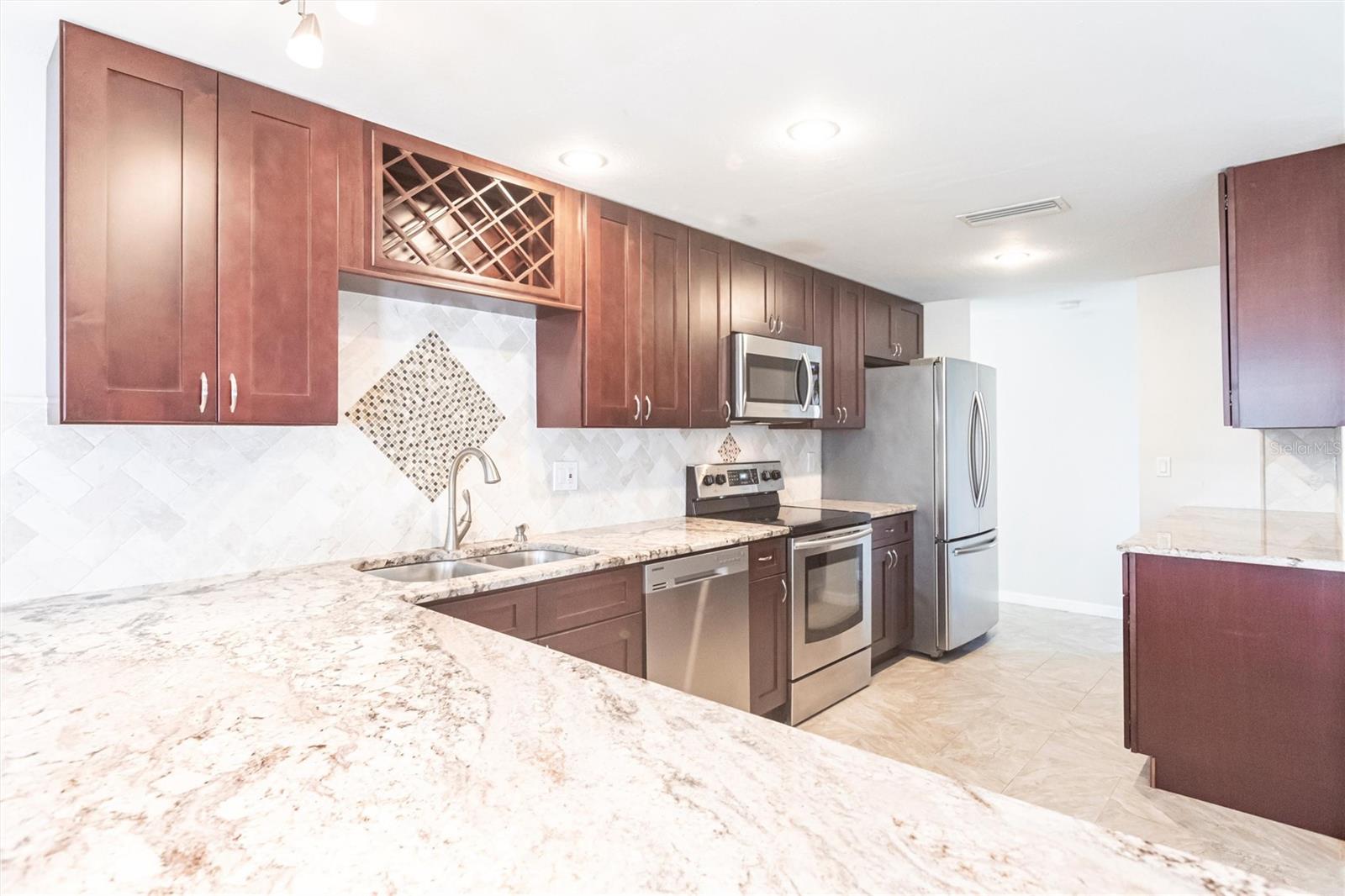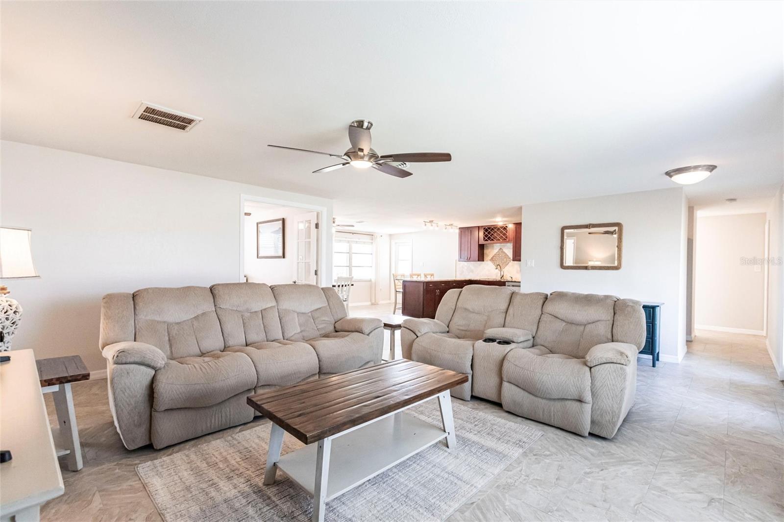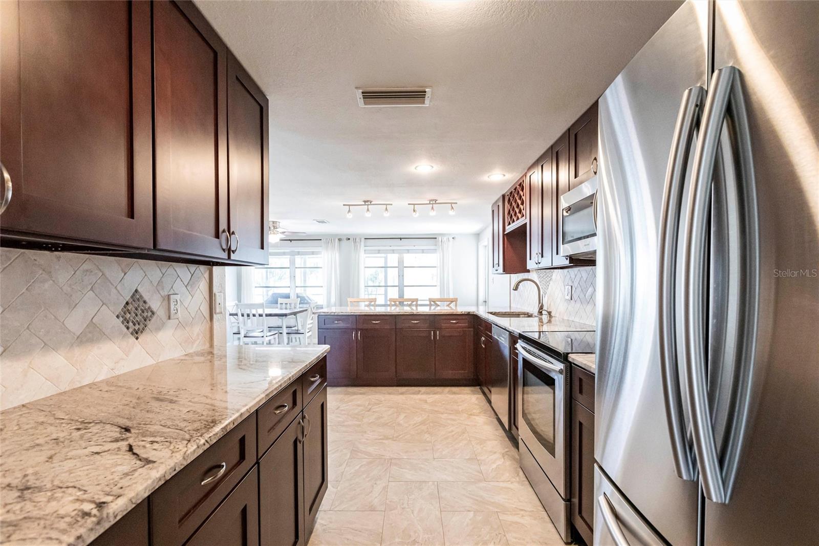 Welcome to this beautifully updated 3-bedroom, 2-bathroom pool home with a 2-car garage, located in the highly sought-after city of Port Charlotte. Offering over 1,548 square feet of living space, this home provides a spacious and welcoming atmosphere, perfect for you to make it your own. Upon entering, you'll be greeted by an open, split floor plan that ensures both privacy and functionality. The large living room seamlessly flows into the kitchen, featuring granite countertops with a stylish brick-style backsplash, a suite of stainless-steel appliances, ample storage space, and a breakfast bar that opens to the dining area—ideal for both everyday living and entertaining. The tiled flooring throughout this space ensures easy maintenance and lasting durability. The primary suite features private slider access to the pool and lanai area, along with wood tile flooring and a spacious walk-in closet. The updated attached bathroom offers a stunning corner walk-in shower with a frameless glass door and a granite-top vanity. The two additional guest bedrooms both include walk-in closets, with one featuring French doors. One room is currently being used as an office/den, offering versatile space for your needs. The guest bathroom has been updated and features a shower/tub combo, complementing the style of the primary bathroom. Step outside to a screened-in lanai featuring a sparkling heated pool, ideal for soaking up the beautiful Florida sunshine. Whether you're looking to take a refreshing swim or unwind on the pool deck, this outdoor space provides endless opportunities for relaxation and entertainment. Adjacent to the pool, you'll find a charming covered patio area, perfect for al fresco dining or simply enjoying a shady retreat. Whether you're savoring a meal outdoors or relaxing with a cool drink, this inviting space offers a comfortable spot to unwind and enjoy the Florida breeze. The backyard is fully fenced with new vinyl fencing, providing both privacy and security. Additionally, a 10x10 shed offers ample space for outdoor storage, making it perfect for keeping your tools, equipment, or other belongings organized. This home also boasts several recent upgrades, including a new garage door, a new A/C unit installed in 2022, and a re-roof completed in 2022. The pool cage was updated in 2022, pool heater was replaced in 2019 and pump in 2024 for added convenience. Additional features include fresh interior paint, hurricane storm shutters for peace of mind, public water and sewer, and a 2-car garage with a utility sink and dedicated laundry area. Centrally located to all major stores, eateries, schools, Gulf beaches, golf and more. Port Charlotte Beach Park and Boat Ramp is a 5-minute drive away. While there enjoy the public beach, picnic areas, playground, tennis courts, boat ramp and swimming pool. ****PLEASE ENJOY THE 3D INTERACTIVE VIRTUAL TOUR ASSOCITED WITH THIS LISTING.