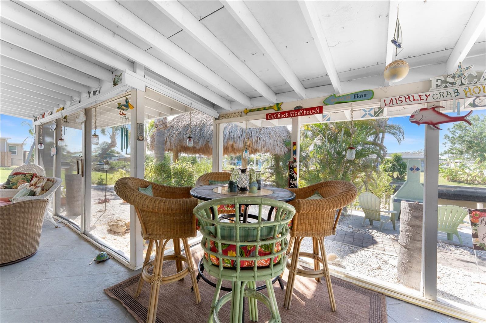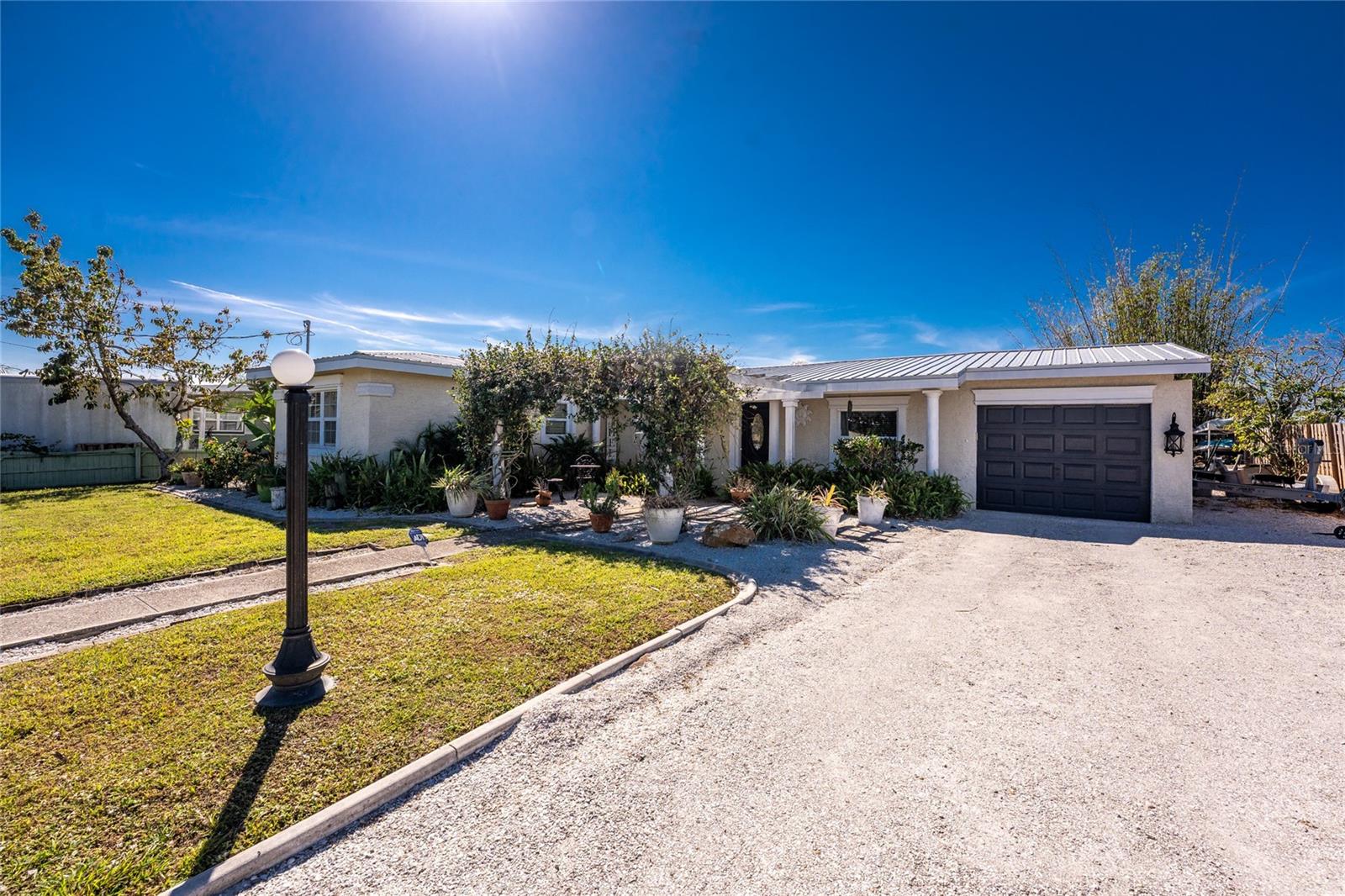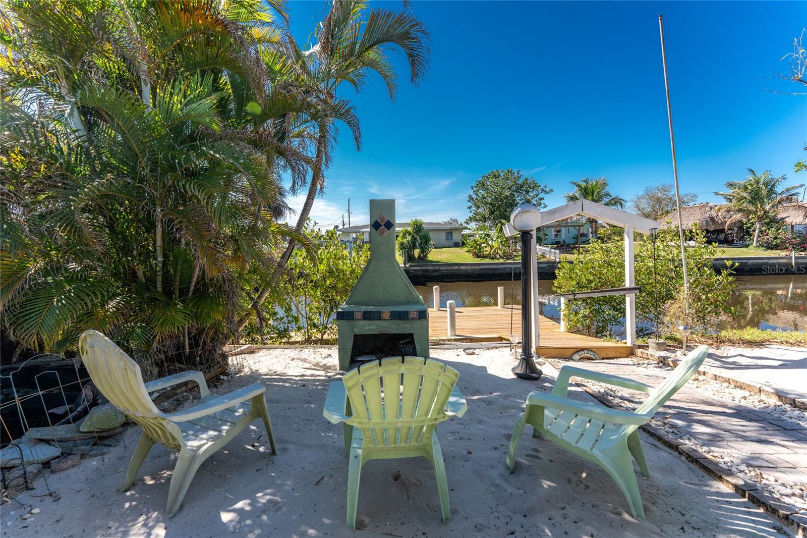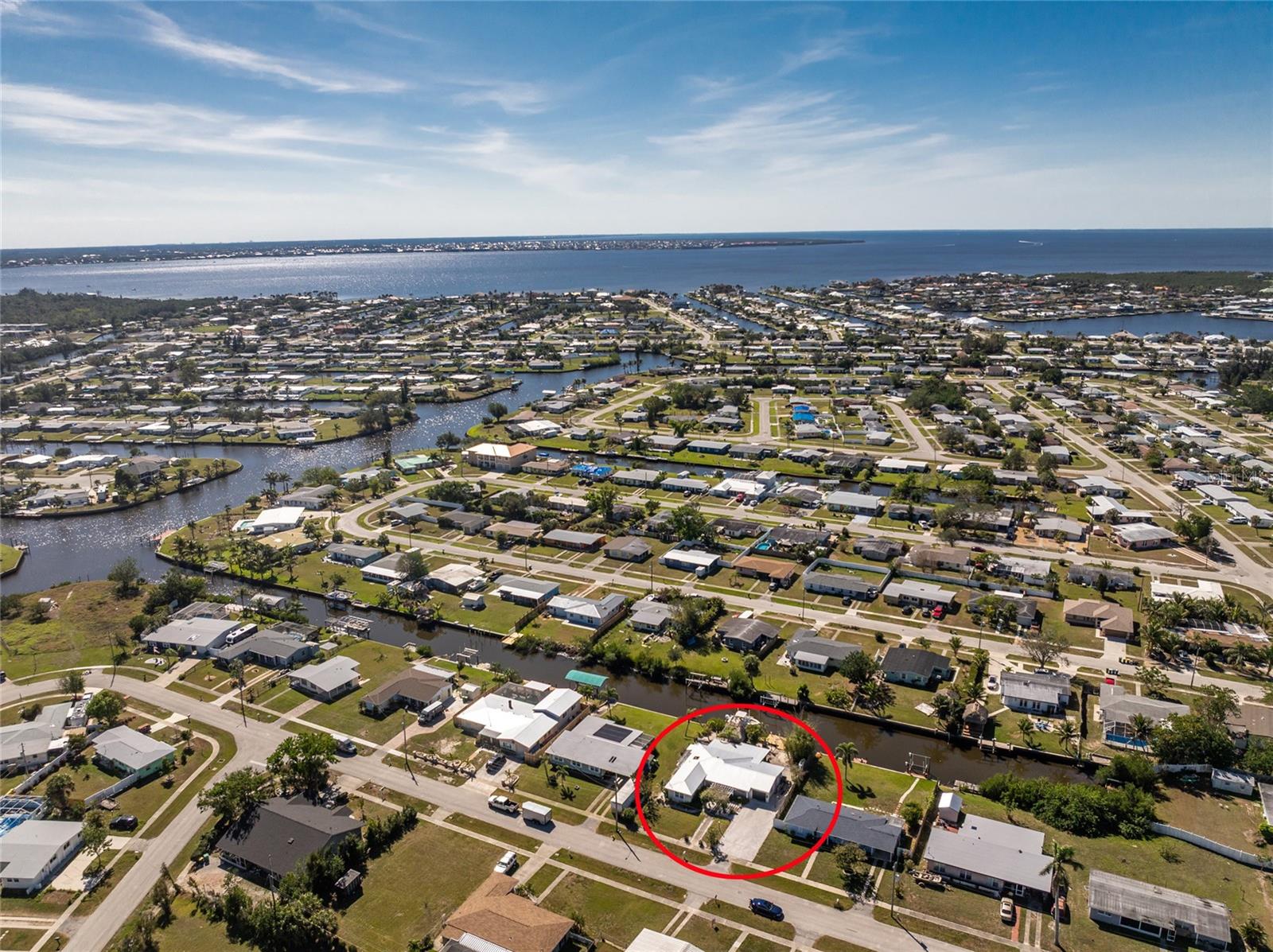 Your slice of paradise awaits! Check out this charming 3-bedroom, 2-bath GULF ACCESS home! Walking up, you'll be welcomed by a stunning courtyard adorned with a jasmine-lined trellis, creating a serene and inviting entrance. Step into the bright living room, where the open layout seamlessly connects to the dining area and the beautifully appointed kitchen. The kitchen is complete with granite countertops, a stylish tile backsplash, pantry, and an eat-in island—perfect for casual meals or entertaining. The split floor plan offers privacy, with the guest bedrooms to the left and the master suite to the right. You'll likely spend most of your time on the expansive screened-in patio—ideal for enjoying Florida’s beautiful weather. If you're looking for more ways to relax, head over to the Tiki bar for a refreshing drink or enjoy your morning coffee by the sanded fire pit. Other notable features include METAL ROOF(2023), ELECTRIC PANEL (2021), and HURRICANE SHUTTERS. Located just MINUTES from OPEN WATER. Close proximity to medical facilities, shopping, amenities, and vibrant DOWNTOWN Punta Gorda. Don’t miss out on this Florida retreat—schedule your showing today!
