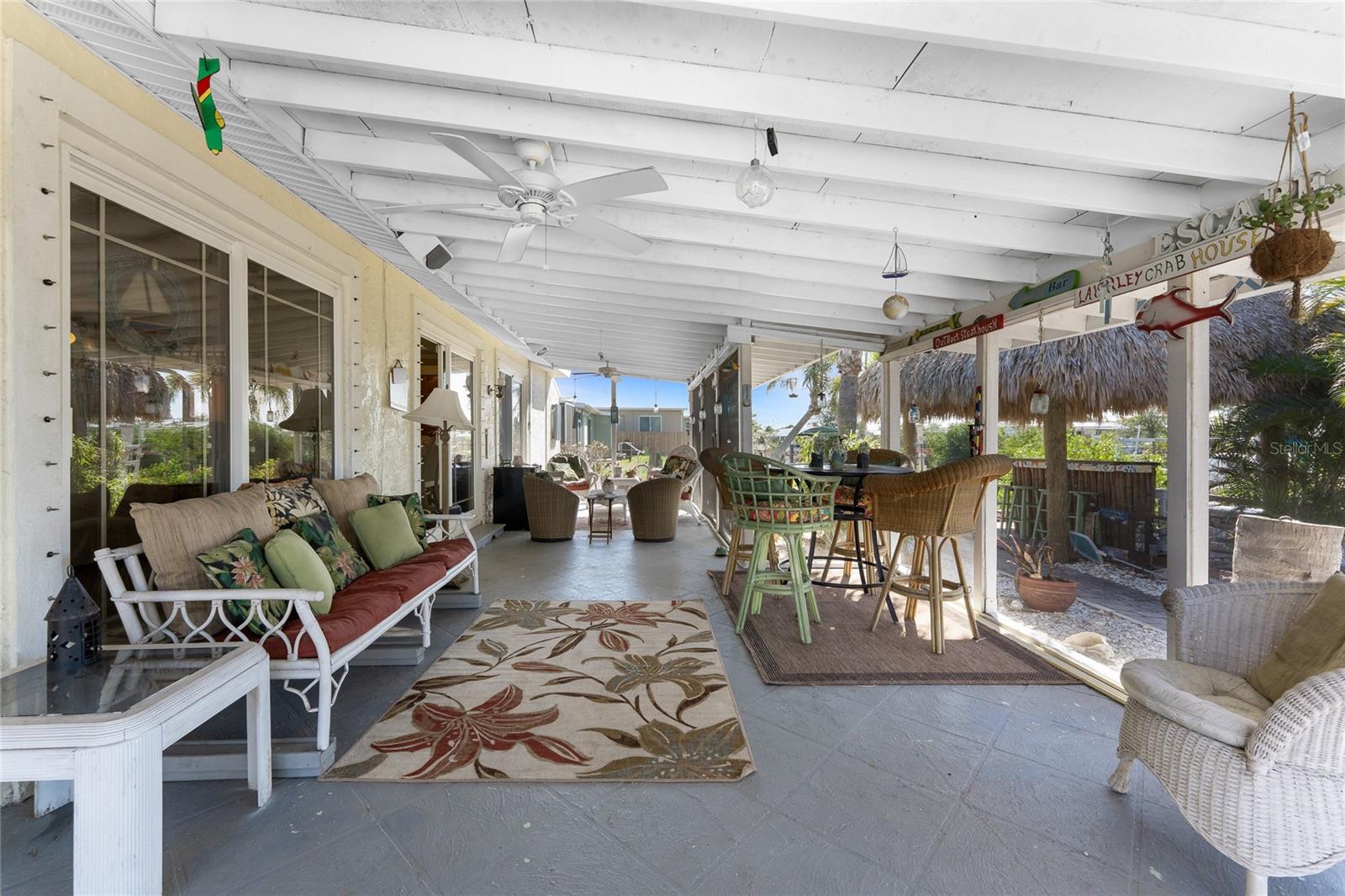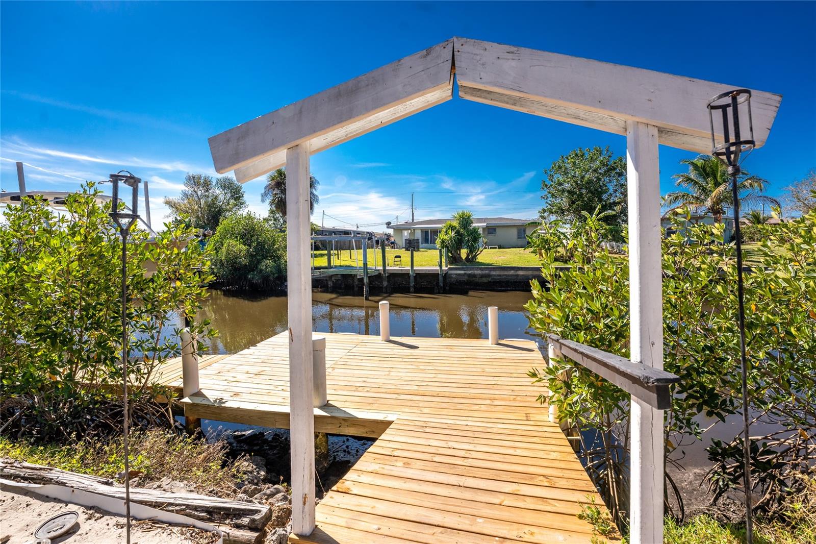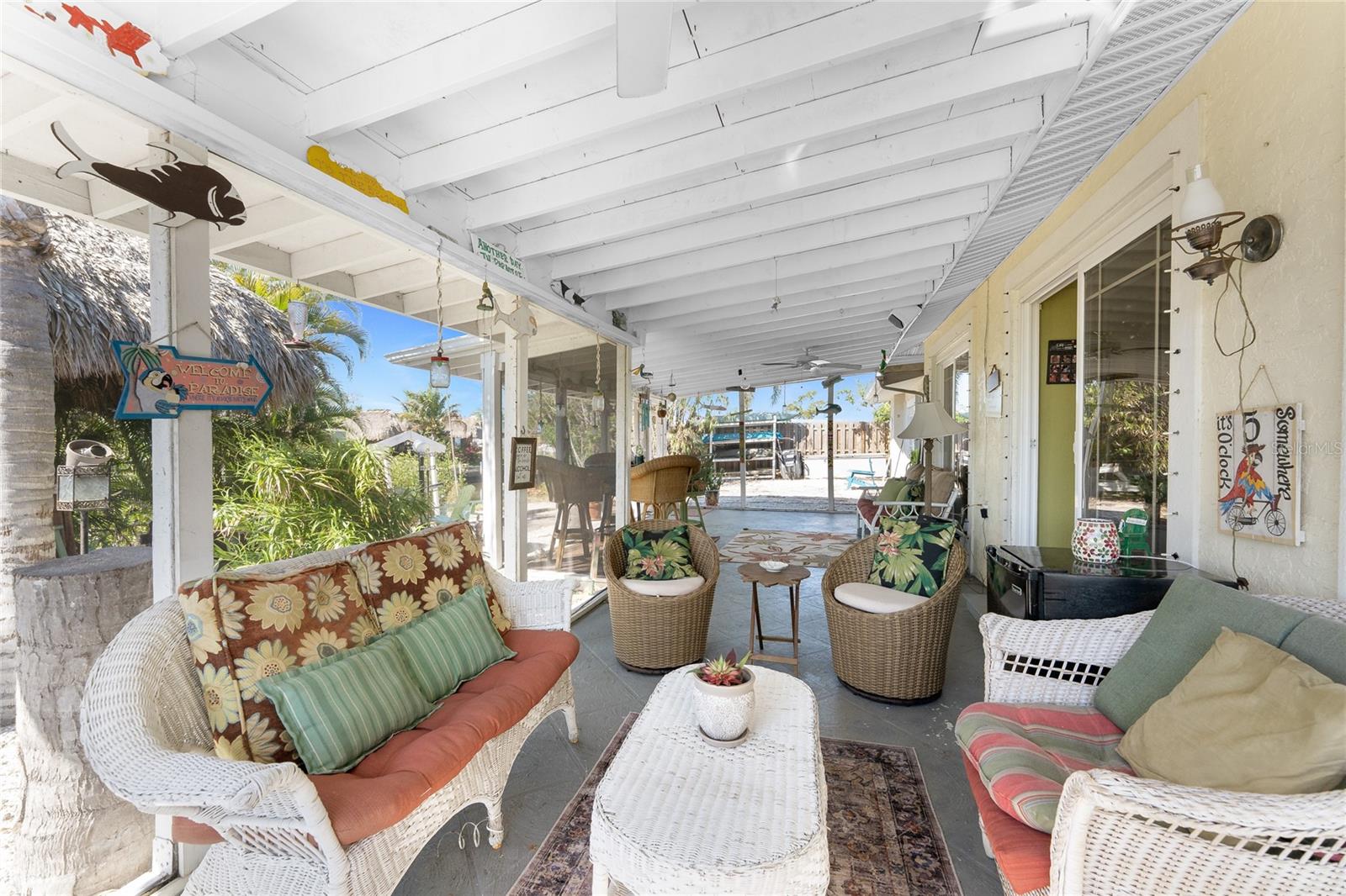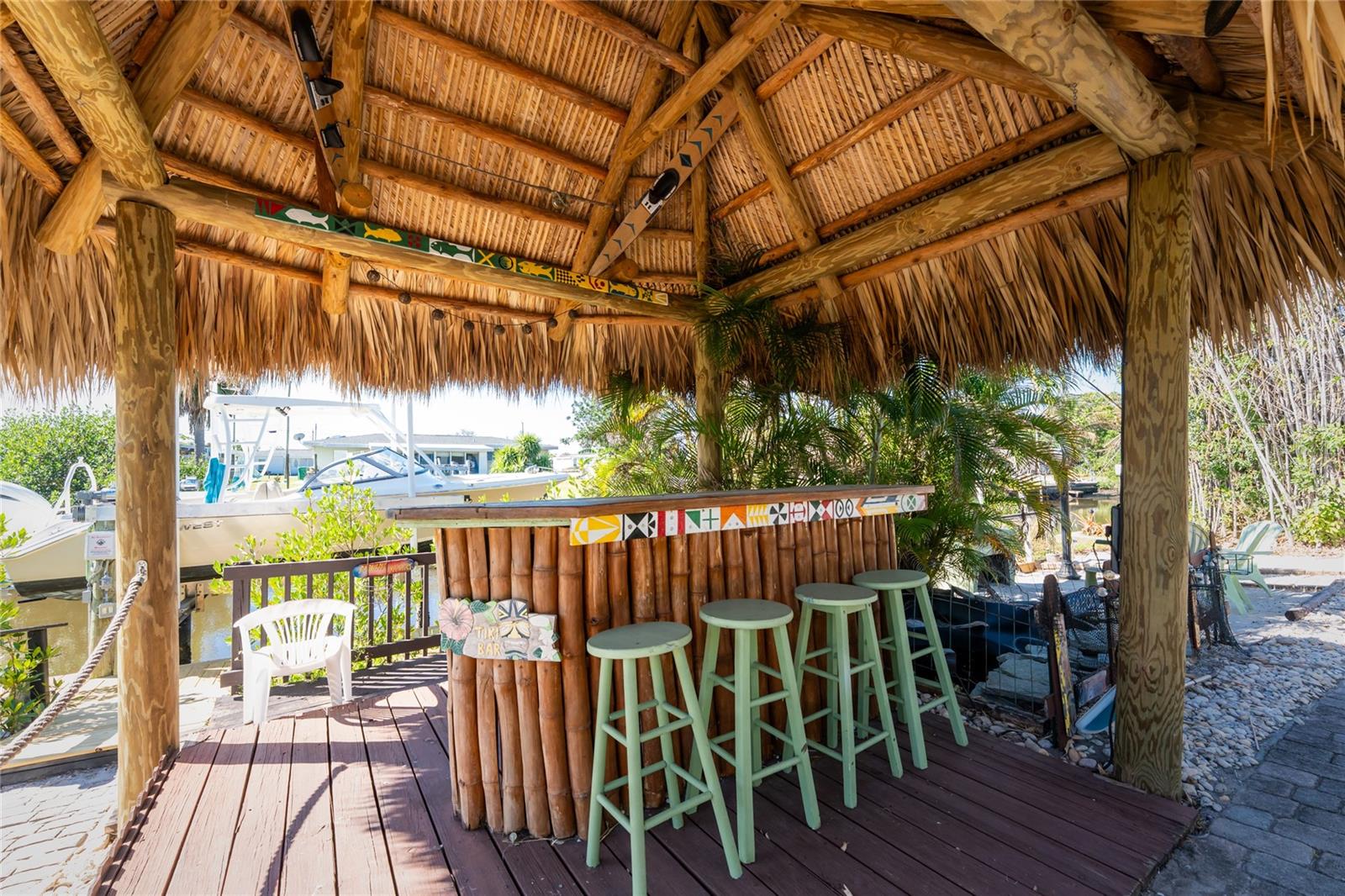 Your slice of paradise awaits! Check out this charming 3-bedroom, 2-bath GULF ACCESS home! Walking up, you'll be welcomed by a stunning courtyard adorned with a jasmine-lined trellis, creating a serene and inviting entrance. Step into the bright living room, where the open layout seamlessly connects to the dining area and the beautifully appointed kitchen. The kitchen is complete with granite countertops, a stylish tile backsplash, pantry, and an eat-in island—perfect for casual meals or entertaining. The split floor plan offers privacy, with the guest bedrooms to the left and the master suite to the right. You'll likely spend most of your time on the expansive screened-in patio—ideal for enjoying Florida’s beautiful weather. If you're looking for more ways to relax, head over to the Tiki bar for a refreshing drink or enjoy your morning coffee by the sanded fire pit. Other notable features include METAL ROOF(2023), ELECTRIC PANEL (2021), and HURRICANE SHUTTERS. Located just MINUTES from OPEN WATER. Close proximity to medical facilities, shopping, amenities, and vibrant DOWNTOWN Punta Gorda. Don’t miss out on this Florida retreat—schedule your showing today!