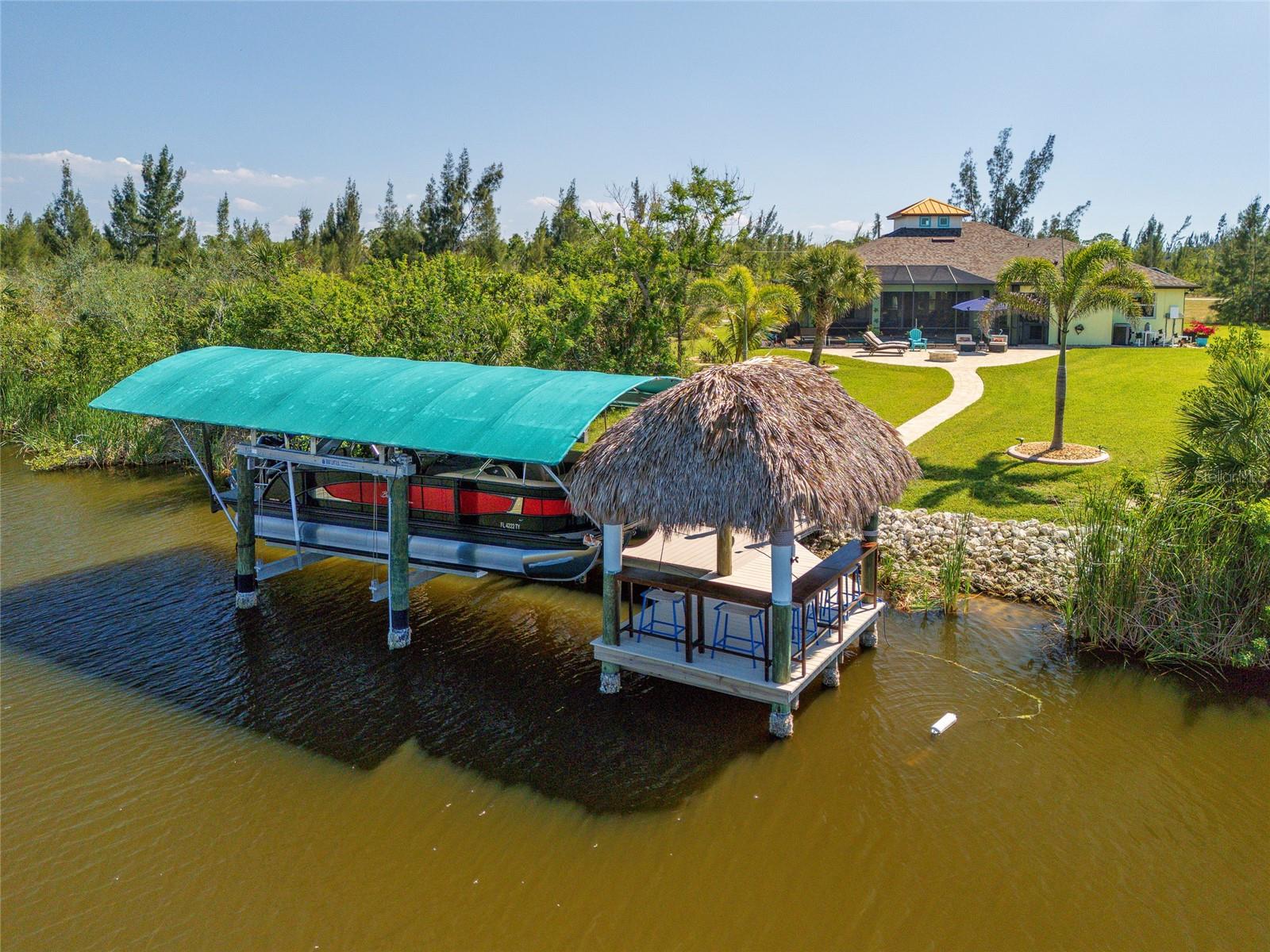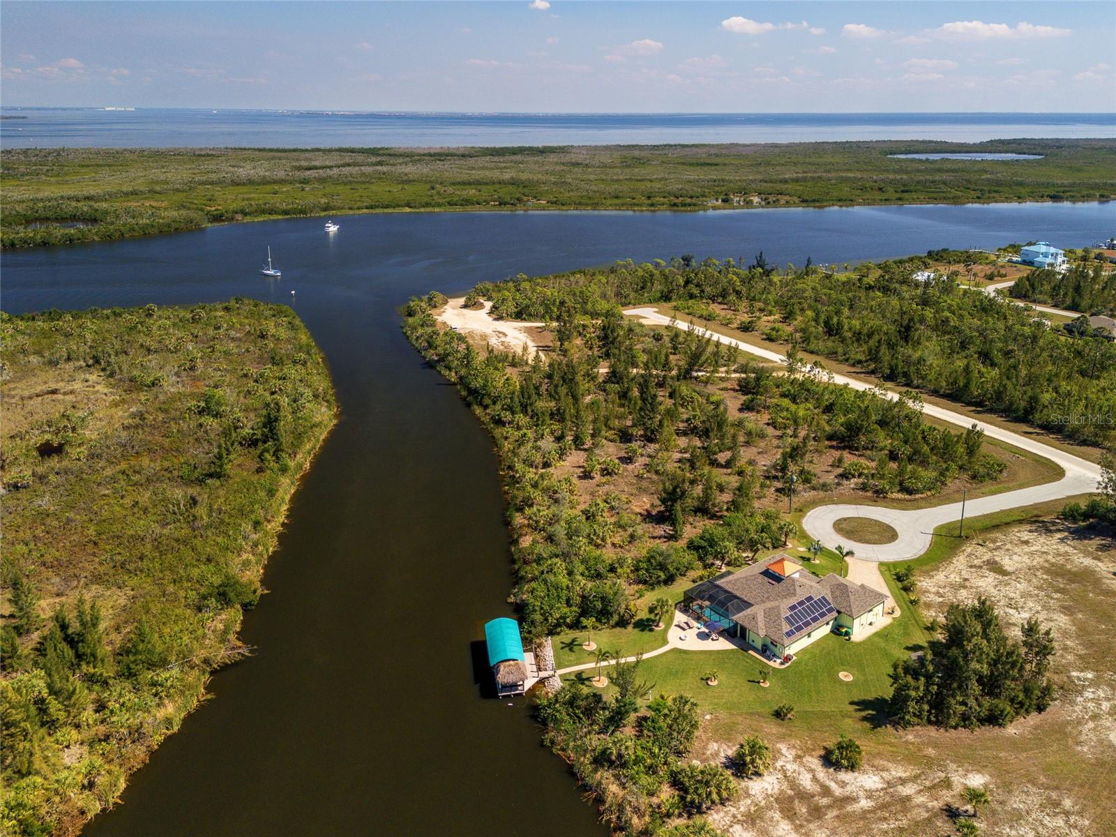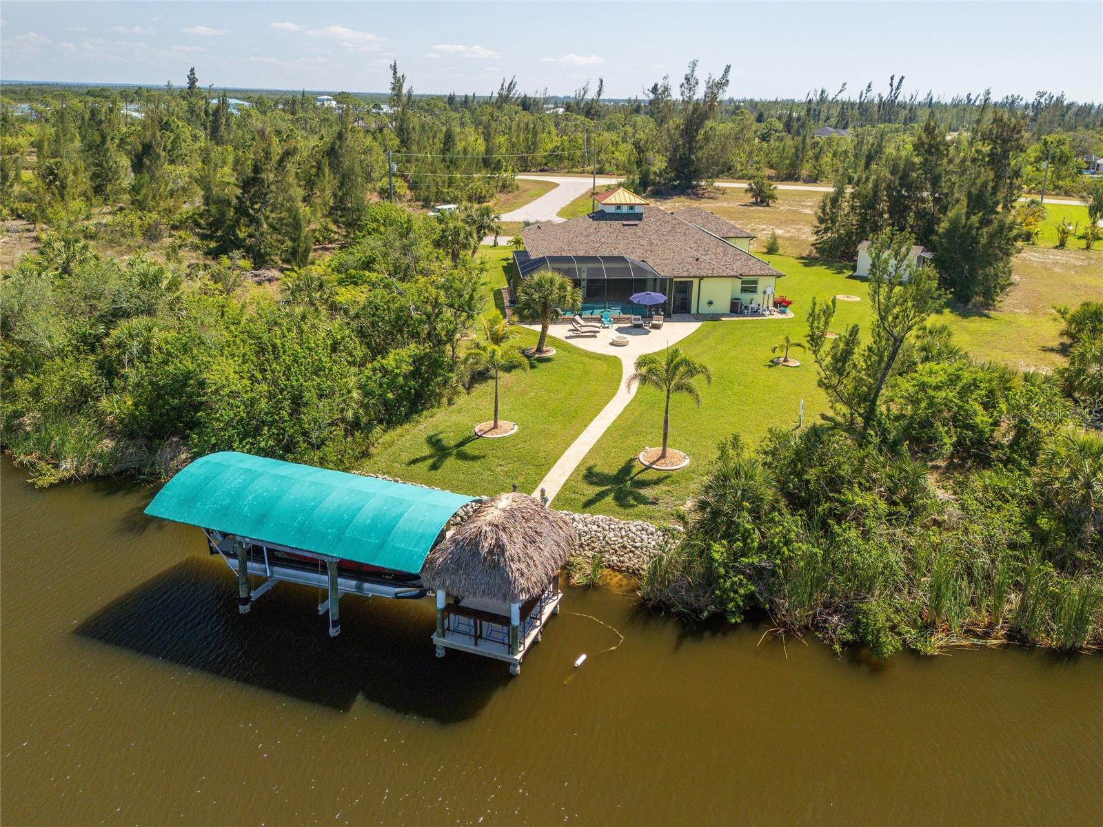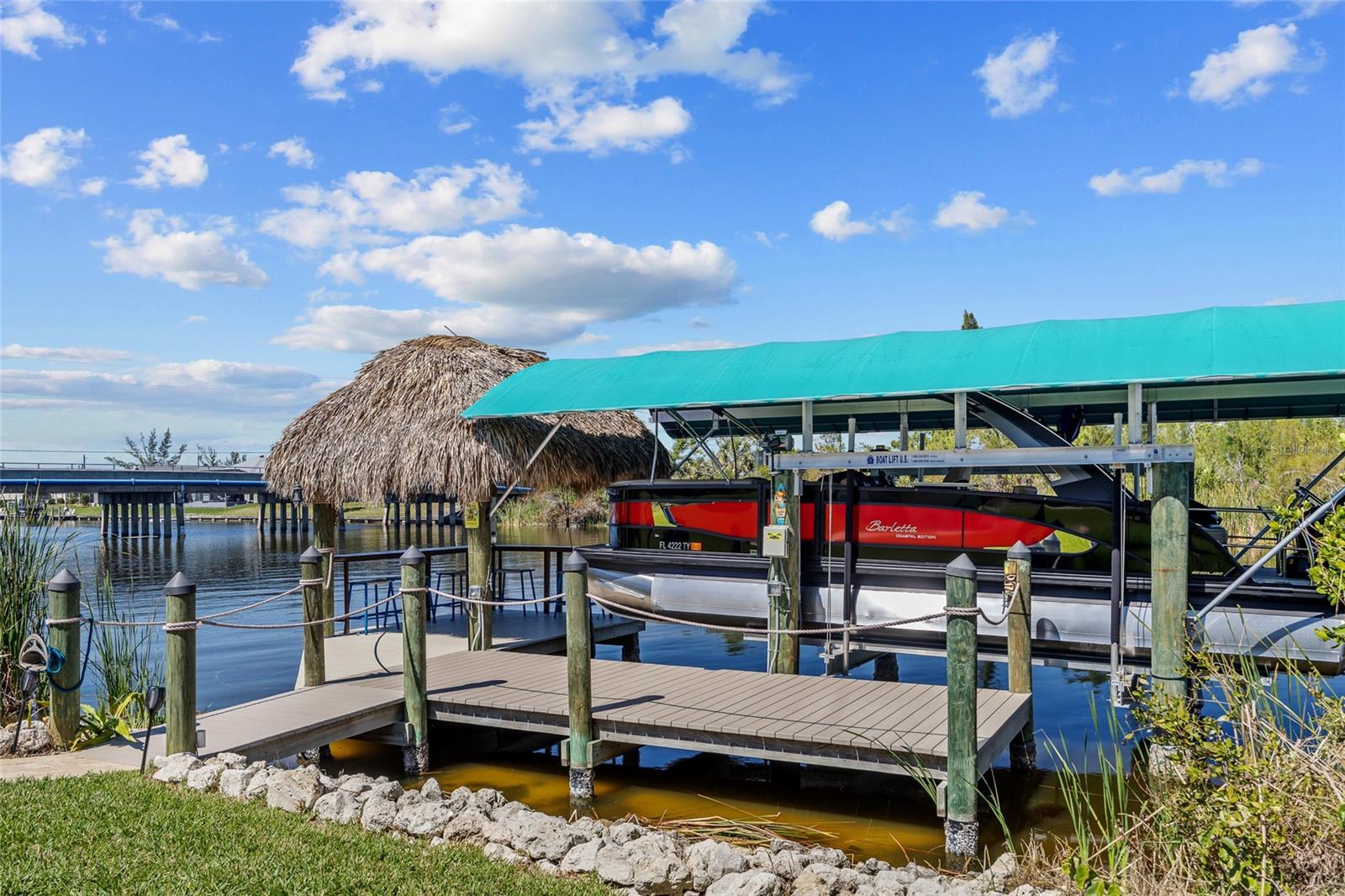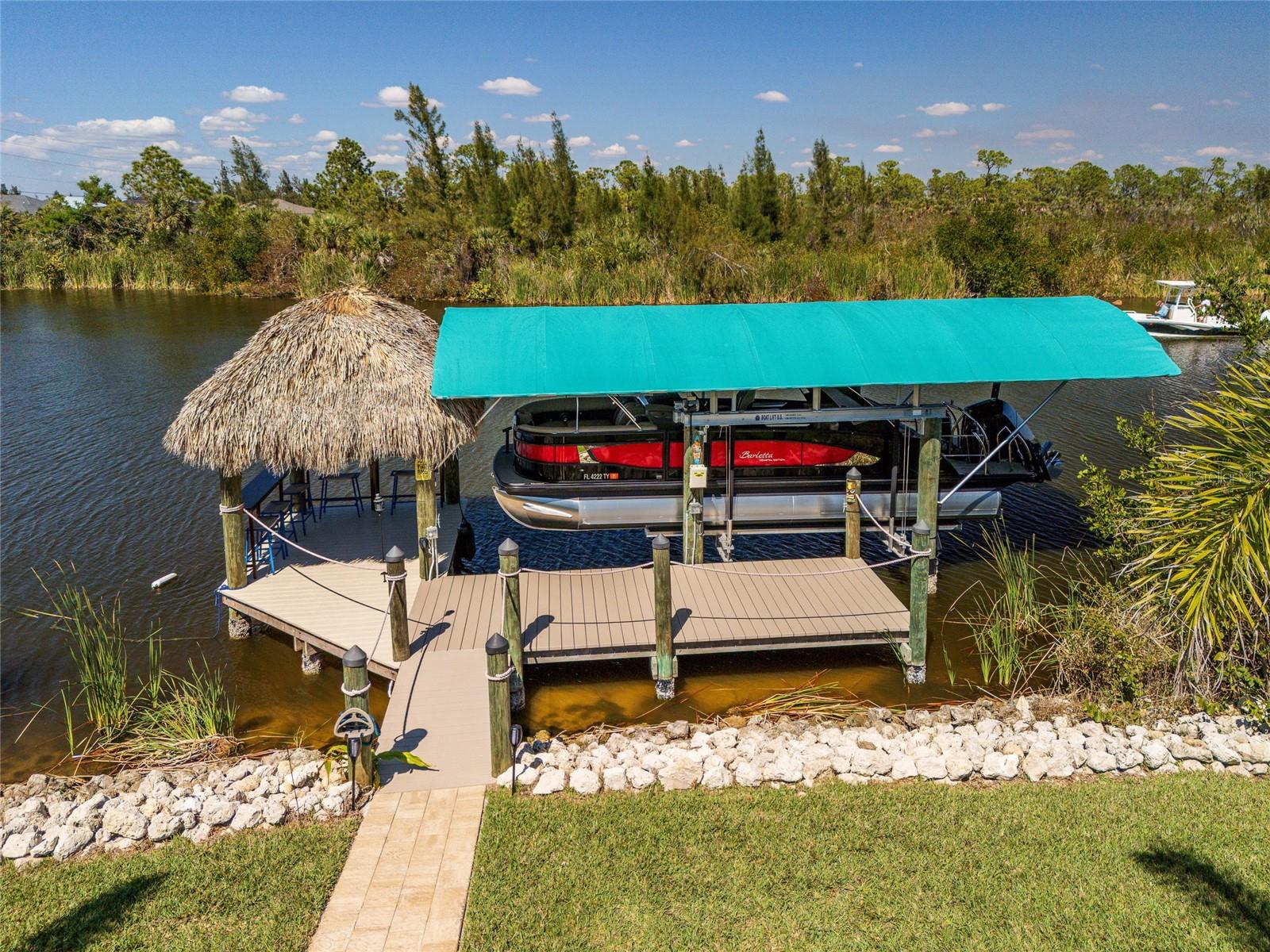 BOATER’S DREAM IN SOUTH GULF COVE! STUNNING LUXURY 3 BEDROOM, 2.5 BATH, 3-CAR GARAGE WATERFRONT POOL HOME WITH SAILBOAT ACCESS TO THE MYAKKA RIVER LEADING TO THE GULF OF MEXICO! Oversized lot on private cul-de-sac street with preserve views offers 84’ of waterfrontage, dock with electric and water, new Waterways 33’ canopy covered 10,000 lb. boat lift with remote plus tiki hut to enjoy the tranquil water views. Solar photovoltaic system provides energy efficiency and month savings on electric. This impressive home built in 2019 features high-end details throughout including open floor plan, high ceilings, contemporary LED lighting, one of a kind feature wall in living room with electric fireplace, zero-corner slider to lanai plus new blinds and tile flooring throughout. The chef’s kitchen features upgraded granite counters, subway tile backsplash, wood cabinetry with deep pull-out drawers, stainless appliances including gas range and large center island with breakfast bar. Generous primary suite offers access to lanai, his and hers walk-in closets with barn doors, and luxurious private bath with dual vanities, under cabinet lighting and custom tiled shower. Split floor plan provides ultimate privacy for guests. Step outside to enjoy a beautiful, covered lanai with new teak ceilings and newly sealed patio, outdoor kitchen with built-in propane stove, convenient pool bath and outdoor shower, screened heated saltwater pool and spa plus outdoor patio to soak up the sun. This home is truly amazing and offers many seller upgrades including widened driveway and sidewalk, 30amp/50 amp quick transfer generator hook up, 250lb buried propane tank, new Tuff Shed 10’x16’ with solar panel and solar lighting, new Diakin mini split A/C and heat in garage, new total AC/heat system- compressor and air handler for house in late 2023, new roof in 2023, newer landscape including palm trees, sod, bushes rock and curbing, newer irrigation plus new pump with easy change filter system and remote control, new lanai screens, new front porch screen system with extra wide door, extra propane connection for grill or fire feature in pool area and RV garage with 4 post 8,000 lb. service lift. HOA offers a voice in the community and social events to meet your neighbors. Great location close to restaurants, shopping, schools, numerous golf courses, boating, fishing and just a short drive to Don Pedro Island, Boca Grande and Manasota Key. Don’t miss this opportunity to make this dream estate your new Florida home!