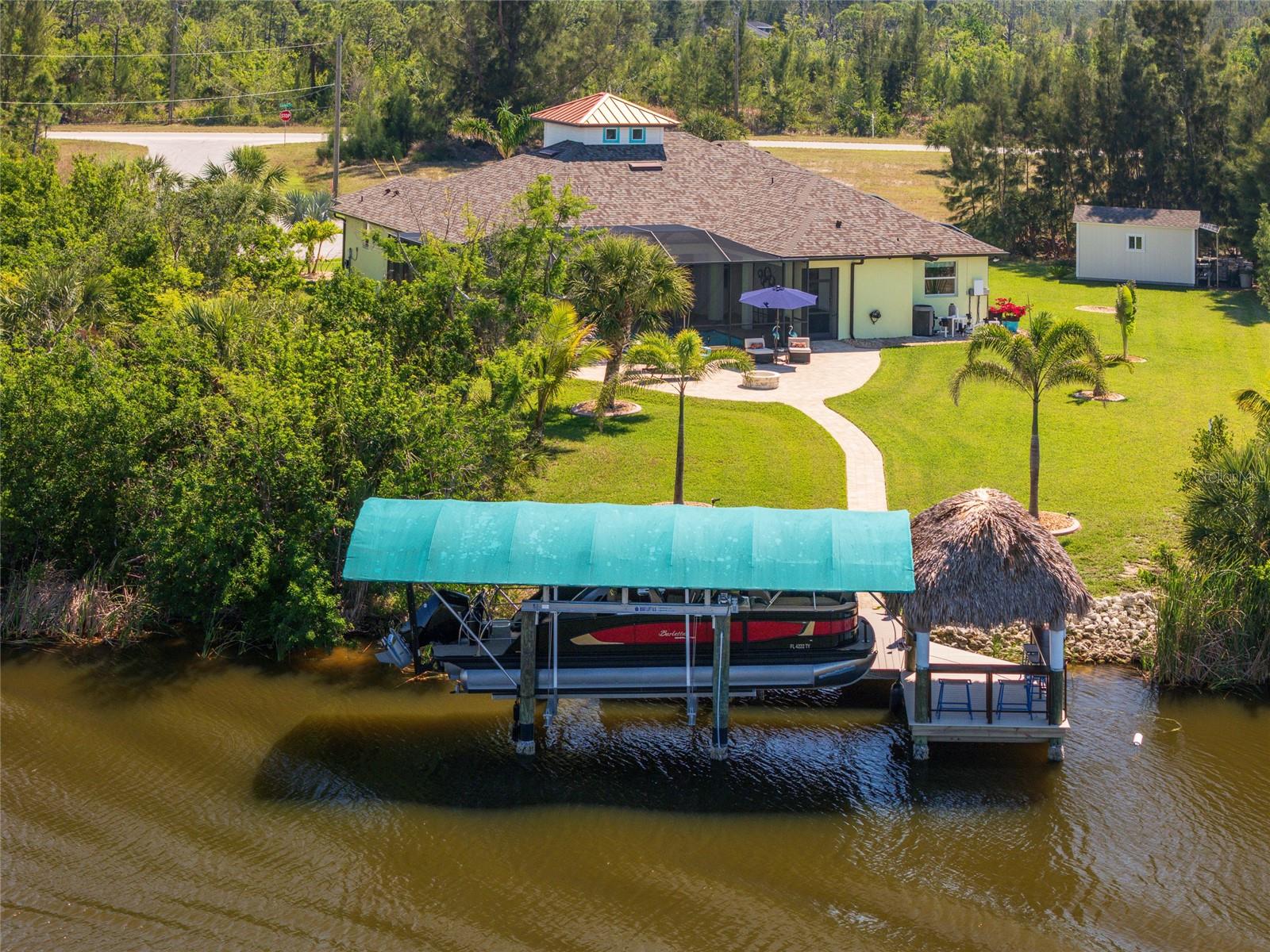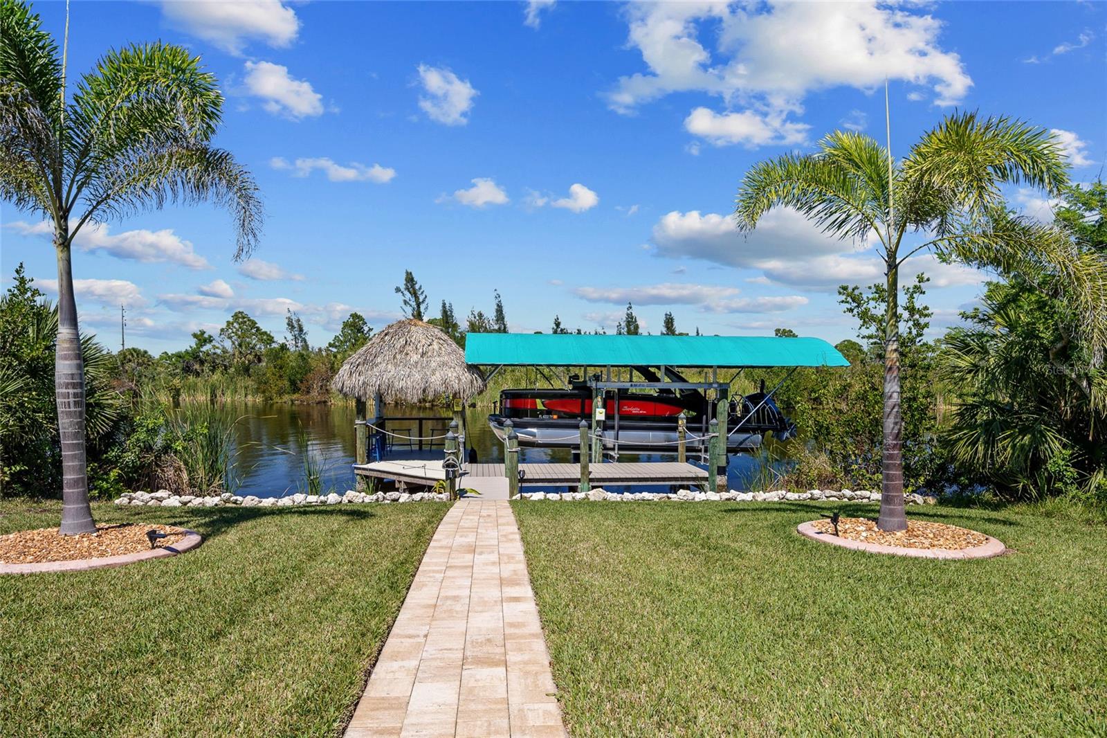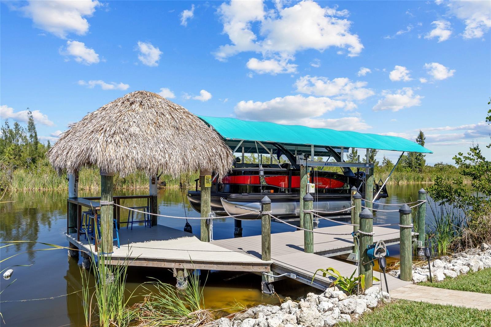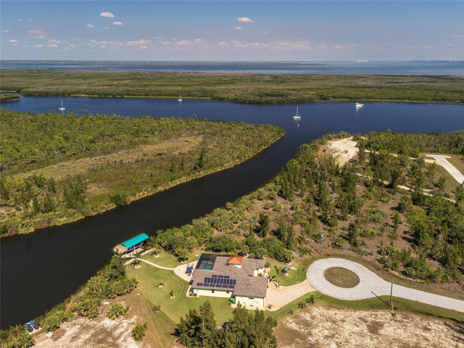 BOATER’S DREAM IN SOUTH GULF COVE! STUNNING LUXURY 3 BEDROOM, 2.5 BATH, 3-CAR GARAGE WATERFRONT POOL HOME WITH SAILBOAT ACCESS TO THE MYAKKA RIVER LEADING TO THE GULF OF MEXICO! Oversized lot on private cul-de-sac street with preserve views offers 84’ of waterfrontage, dock with electric and water, new Waterways 33’ canopy covered 10,000 lb. boat lift with remote plus tiki hut to enjoy the tranquil water views. Solar photovoltaic system provides energy efficiency and month savings on electric. This impressive home built in 2019 features high-end details throughout including open floor plan, high ceilings, contemporary LED lighting, one of a kind feature wall in living room with electric fireplace, zero-corner slider to lanai plus new blinds and tile flooring throughout. The chef’s kitchen features upgraded granite counters, subway tile backsplash, wood cabinetry with deep pull-out drawers, stainless appliances including gas range and large center island with breakfast bar. Generous primary suite offers access to lanai, his and hers walk-in closets with barn doors, and luxurious private bath with dual vanities, under cabinet lighting and custom tiled shower. Split floor plan provides ultimate privacy for guests. Step outside to enjoy a beautiful, covered lanai with new teak ceilings and newly sealed patio, outdoor kitchen with built-in propane stove, convenient pool bath and outdoor shower, screened heated saltwater pool and spa plus outdoor patio to soak up the sun. This home is truly amazing and offers many seller upgrades including widened driveway and sidewalk, 30amp/50 amp quick transfer generator hook up, 250lb buried propane tank, new Tuff Shed 10’x16’ with solar panel and solar lighting, new Diakin mini split A/C and heat in garage, new total AC/heat system- compressor and air handler for house in late 2023, new roof in 2023, newer landscape including palm trees, sod, bushes rock and curbing, newer irrigation plus new pump with easy change filter system and remote control, new lanai screens, new front porch screen system with extra wide door, extra propane connection for grill or fire feature in pool area and RV garage with 4 post 8,000 lb. service lift. HOA offers a voice in the community and social events to meet your neighbors. Great location close to restaurants, shopping, schools, numerous golf courses, boating, fishing and just a short drive to Don Pedro Island, Boca Grande and Manasota Key. Don’t miss this opportunity to make this dream estate your new Florida home!