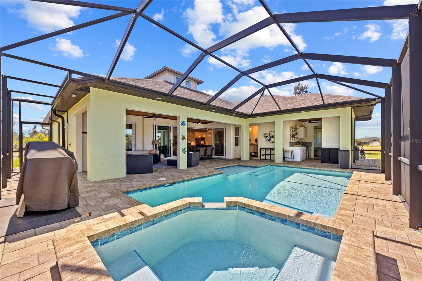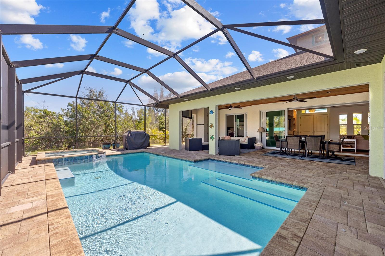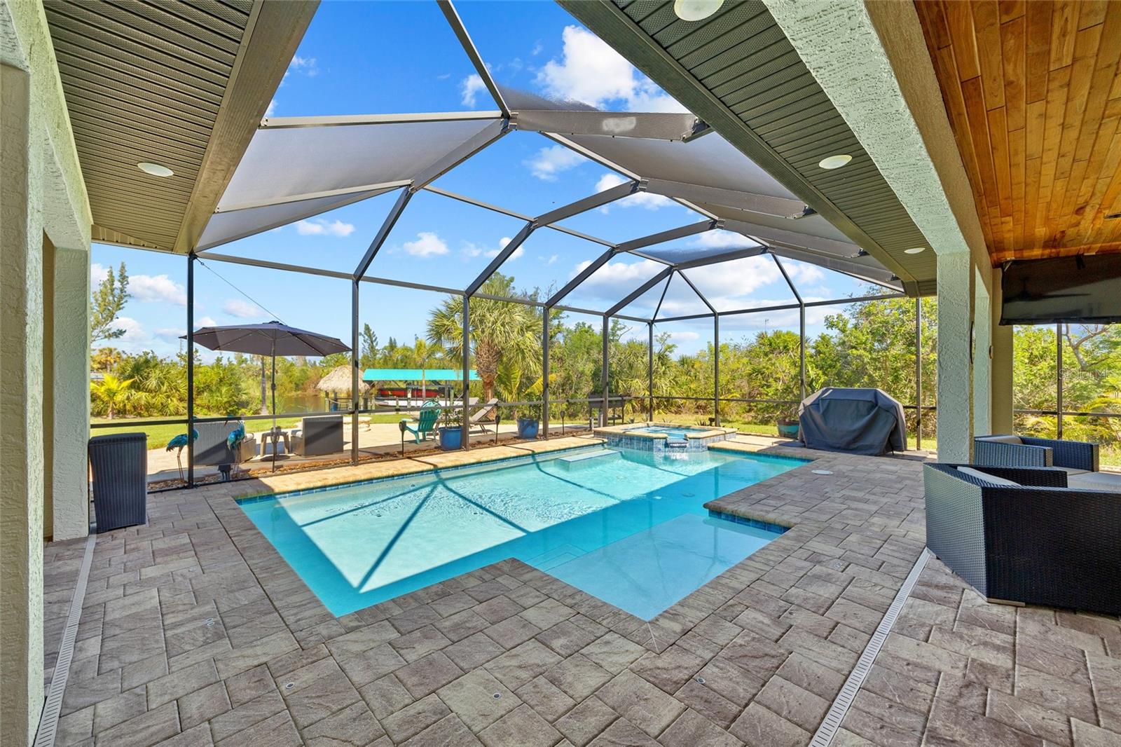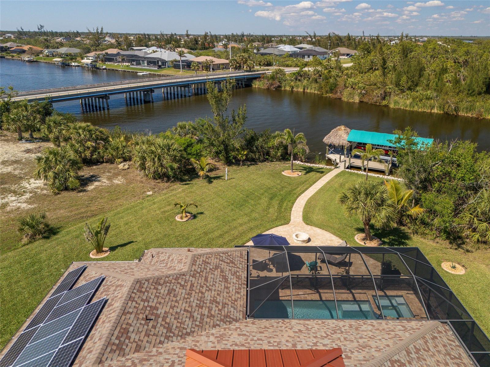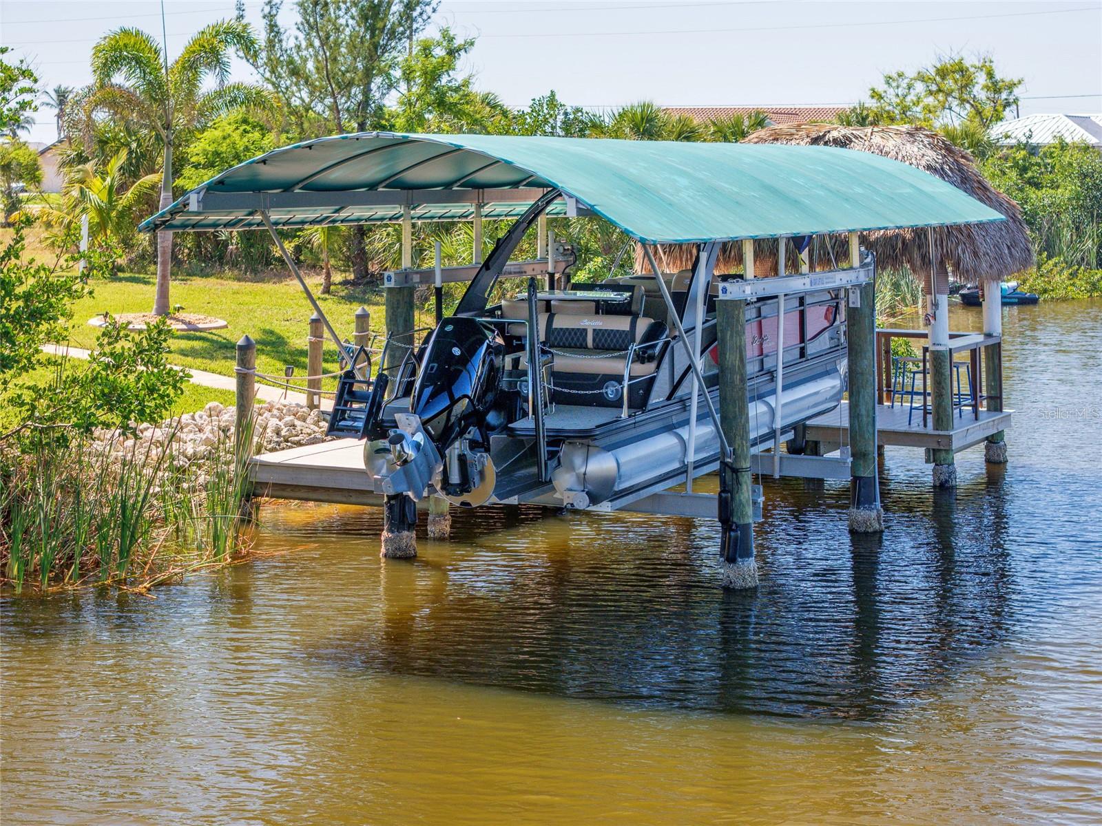 BOATER’S DREAM IN SOUTH GULF COVE! STUNNING LUXURY 3 BEDROOM, 2.5 BATH, 3-CAR GARAGE WATERFRONT POOL HOME WITH SAILBOAT ACCESS TO THE MYAKKA RIVER LEADING TO THE GULF OF MEXICO! Oversized lot on private cul-de-sac street with preserve views offers 84’ of waterfrontage, dock with electric and water, new Waterways 33’ canopy covered 10,000 lb. boat lift with remote plus tiki hut to enjoy the tranquil water views. Solar photovoltaic system provides energy efficiency and month savings on electric. This impressive home built in 2019 features high-end details throughout including open floor plan, high ceilings, contemporary LED lighting, one of a kind feature wall in living room with electric fireplace, zero-corner slider to lanai plus new blinds and tile flooring throughout. The chef’s kitchen features upgraded granite counters, subway tile backsplash, wood cabinetry with deep pull-out drawers, stainless appliances including gas range and large center island with breakfast bar. Generous primary suite offers access to lanai, his and hers walk-in closets with barn doors, and luxurious private bath with dual vanities, under cabinet lighting and custom tiled shower. Split floor plan provides ultimate privacy for guests. Step outside to enjoy a beautiful, covered lanai with new teak ceilings and newly sealed patio, outdoor kitchen with built-in propane stove, convenient pool bath and outdoor shower, screened heated saltwater pool and spa plus outdoor patio to soak up the sun. This home is truly amazing and offers many seller upgrades including widened driveway and sidewalk, 30amp/50 amp quick transfer generator hook up, 250lb buried propane tank, new Tuff Shed 10’x16’ with solar panel and solar lighting, new Diakin mini split A/C and heat in garage, new total AC/heat system- compressor and air handler for house in late 2023, new roof in 2023, newer landscape including palm trees, sod, bushes rock and curbing, newer irrigation plus new pump with easy change filter system and remote control, new lanai screens, new front porch screen system with extra wide door, extra propane connection for grill or fire feature in pool area and RV garage with 4 post 8,000 lb. service lift. HOA offers a voice in the community and social events to meet your neighbors. Great location close to restaurants, shopping, schools, numerous golf courses, boating, fishing and just a short drive to Don Pedro Island, Boca Grande and Manasota Key. Don’t miss this opportunity to make this dream estate your new Florida home!