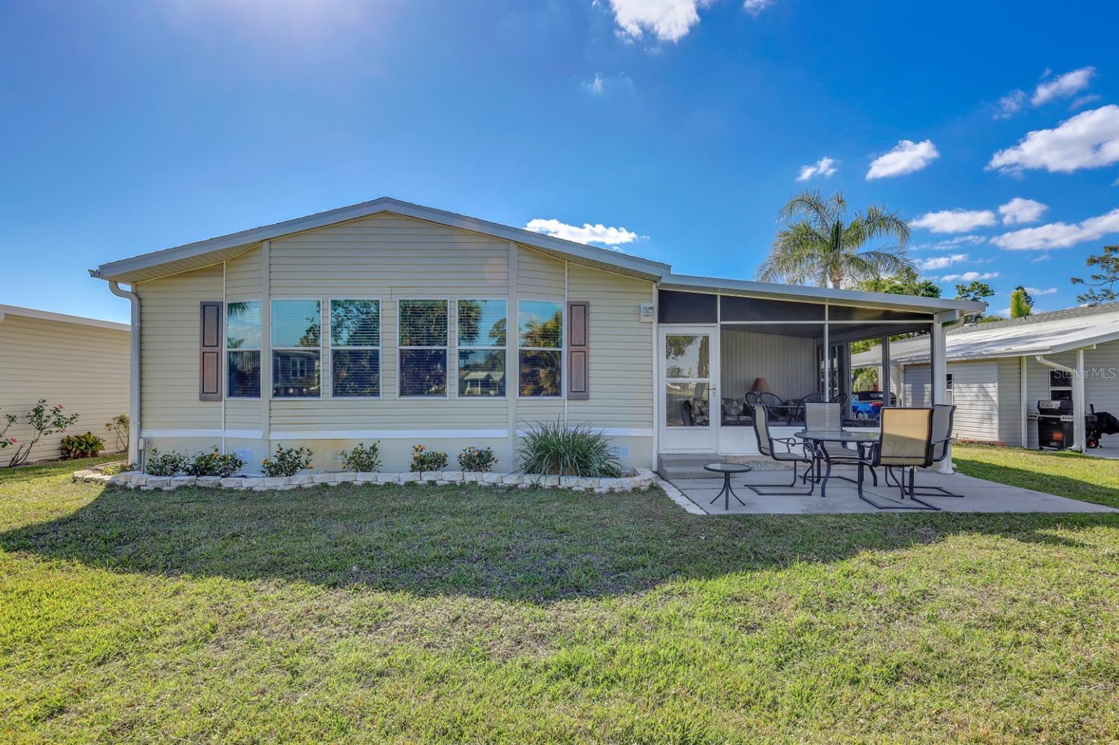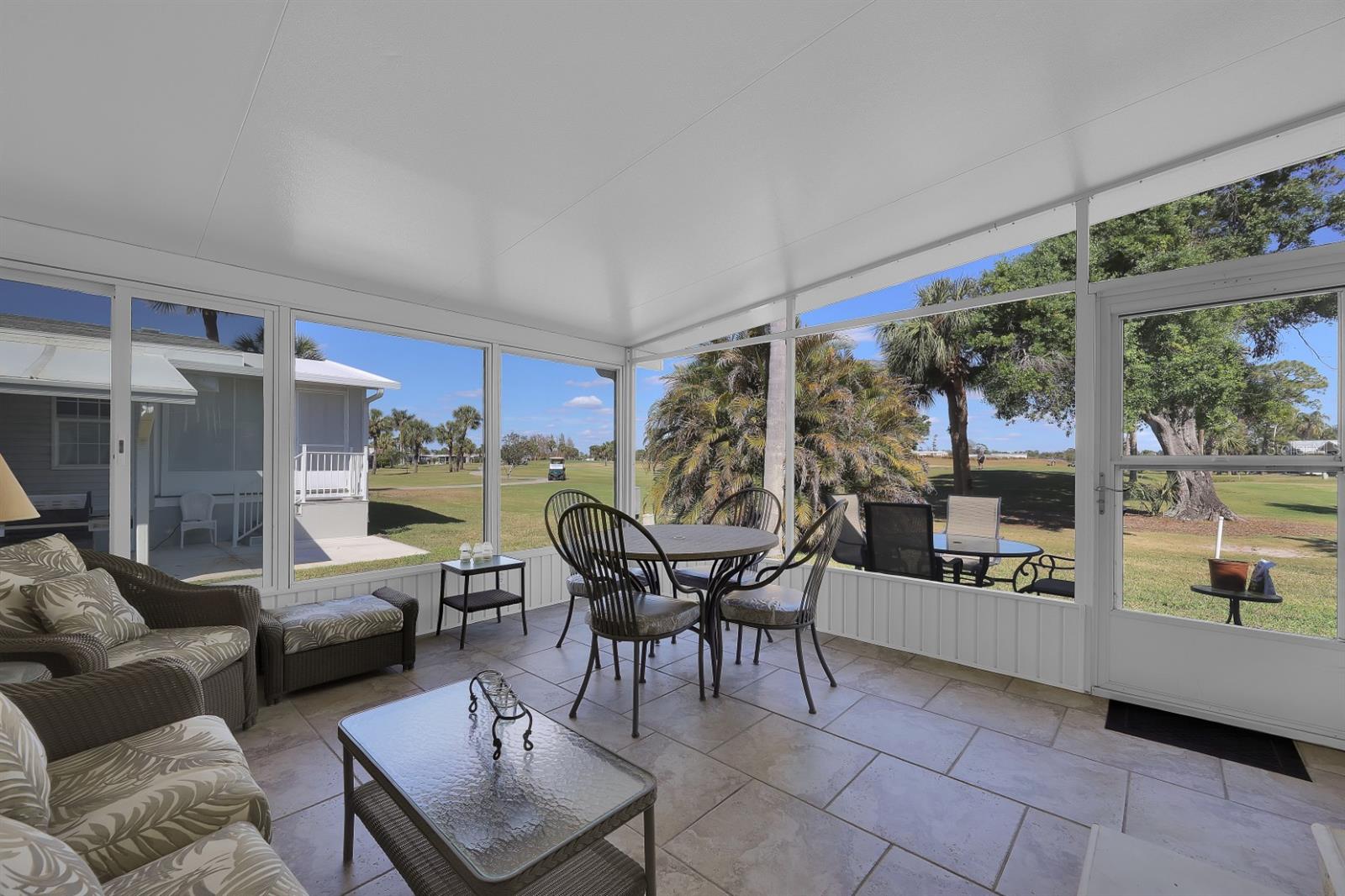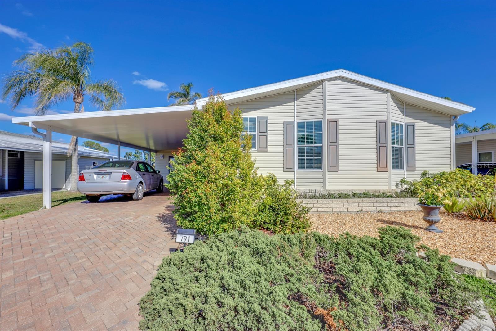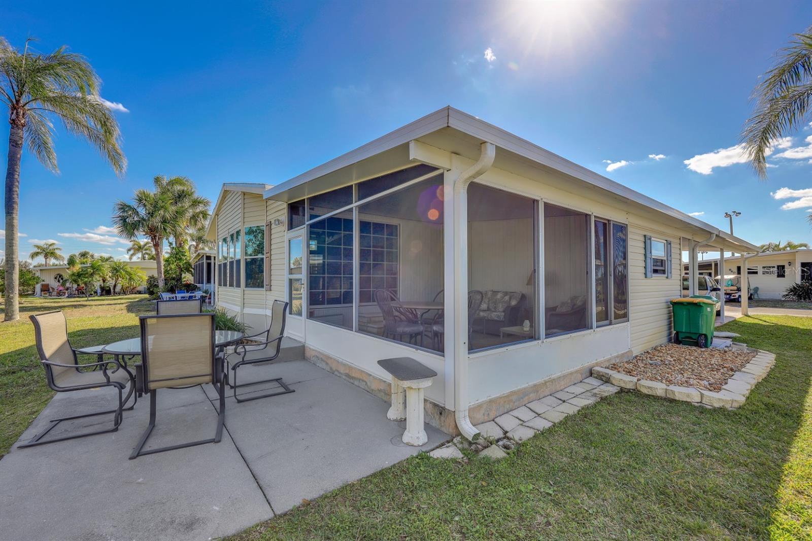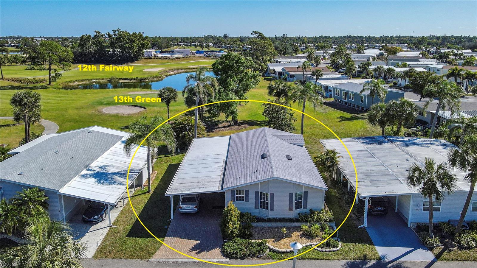 Welcome to golf course living on the 13th green in Maple Leaf Golf & Country Club! This beautifully maintained Jacobsen built home has golf course views and a long list of extras! It feels so much like home when you walk in that you may never want to leave. The curb appeal will catch your eye with decorative brick paver driveway and carport. High ceilings and numerous windows flood the open floor plan of his home with natural light. The nicely appointed renovated/updated kitchen has a cooktop range in the island and a built in microwave and oven. Plenty of soft close cabinets provide the storage you need. The primary bedroom has a large en-suite bathroom with dual sinks, vanity counter, upgraded linen storage and spacious walk shower. The guest bedroom features it's own en-suite bathroom with a tub shower combination. Your guest will enjoy the privacy of their own en-suite bathroom. The laundry room with front load washer and dryer features storage cabinets and a counter area for folding. A covered and screened porch behind the shed off the dining room sliding glass doors, faces the golf course, perfect spot for morning relaxation and watching your friends golf before heading off to enjoy all that Maple Leaf has to offer. There is also a large open air concrete patio off rear lanai. 120sq foot shed off the carport offers plenty of additional storage for tools, golf clubs, pool and beach supplies. Home is being sold furnished. Golf cart is negotiable outside of contract. Other recent improvements include: Insulated carport and lanai roof, shingled roof replaced, AC replaced in 2022. Call today to schedule your private showing of this beauty on the award winning Maple Leaf Golf and Country Club Golf Course. **Be sure to check out the 3-D virtual tour and walk through video links** Located in award winning Maple Leaf Golf & Country Club, a popular 55+ gated golf course community with an active resort lifestyle. Features a Par 62, 18 hole golf course, 5 tennis courts, bocce ball, lawn bowling, 2 shuffleboard courts, 4 heated swimming pools, 2 hot tubs, fitness facility, woodworking facility, 75+ clubs/activities, 4 pickleball courts, restaurant with full service bar, tiki hut/bar and more. Don't miss out on this opportunity to live in a thriving community where every day feels like a vacation. It's true what they say, it's all about the lifestyle.