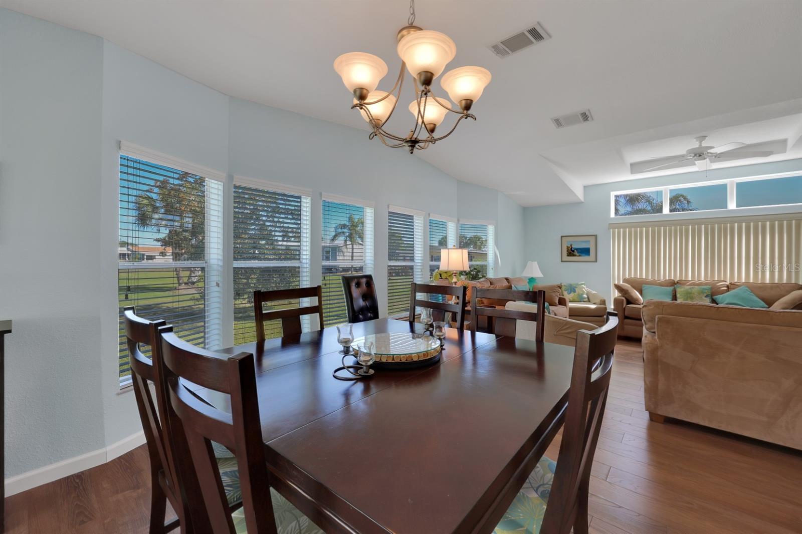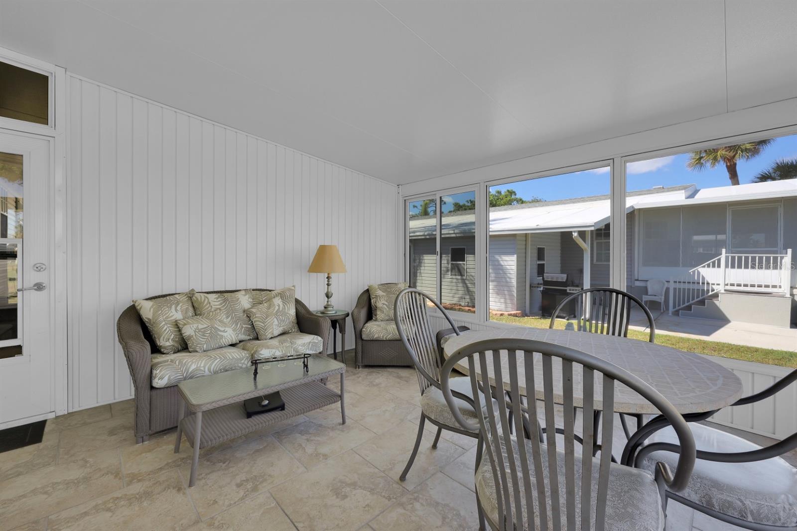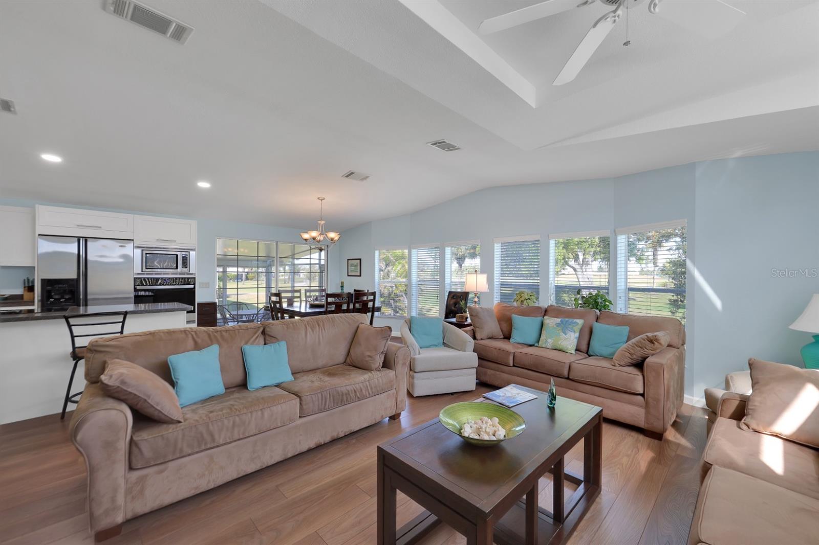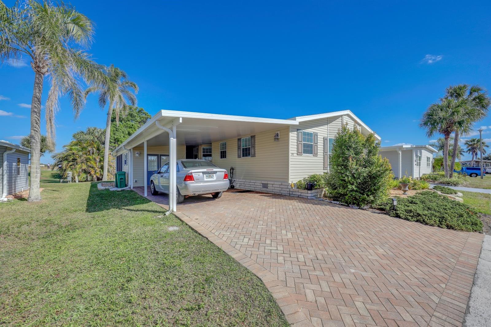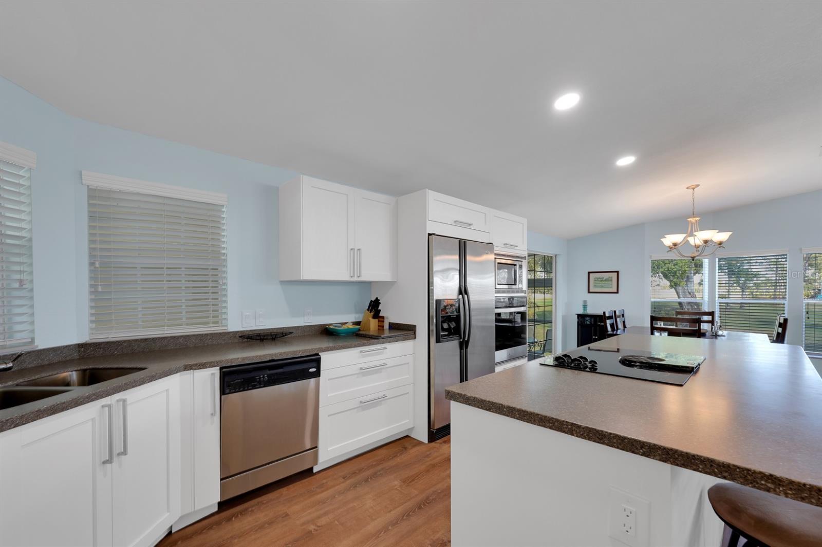Welcome to golf course living on the 13th green in Maple Leaf Golf & Country Club! This beautifully maintained Jacobsen built home has golf course views and a long list of extras! It feels so much like home when you walk in that you may never want to leave. The curb appeal will catch your eye with decorative brick paver driveway and carport. High ceilings and numerous windows flood the open floor plan of his home with natural light. The nicely appointed renovated/updated kitchen has a cooktop range in the island and a built in microwave and oven. Plenty of soft close cabinets provide the storage you need. The primary bedroom has a large en-suite bathroom with dual sinks, vanity counter, upgraded linen storage and spacious walk shower. The guest bedroom features it's own en-suite bathroom with a tub shower combination. Your guest will enjoy the privacy of their own en-suite bathroom. The laundry room with front load washer and dryer features storage cabinets and a counter area for folding. A covered and screened porch behind the shed off the dining room sliding glass doors, faces the golf course, perfect spot for morning relaxation and watching your friends golf before heading off to enjoy all that Maple Leaf has to offer. There is also a large open air concrete patio off rear lanai. 120sq foot shed off the carport offers plenty of additional storage for tools, golf clubs, pool and beach supplies. Home is being sold furnished. Golf cart is negotiable outside of contract. Other recent improvements include: Insulated carport and lanai roof, shingled roof replaced, AC replaced in 2022. Call today to schedule your private showing of this beauty on the award winning Maple Leaf Golf and Country Club Golf Course. **Be sure to check out the 3-D virtual tour and walk through video links** Located in award winning Maple Leaf Golf & Country Club, a popular 55+ gated golf course community with an active resort lifestyle. Features a Par 62, 18 hole golf course, 5 tennis courts, bocce ball, lawn bowling, 2 shuffleboard courts, 4 heated swimming pools, 2 hot tubs, fitness facility, woodworking facility, 75+ clubs/activities, 4 pickleball courts, restaurant with full service bar, tiki hut/bar and more. Don't miss out on this opportunity to live in a thriving community where every day feels like a vacation. It's true what they say, it's all about the lifestyle.