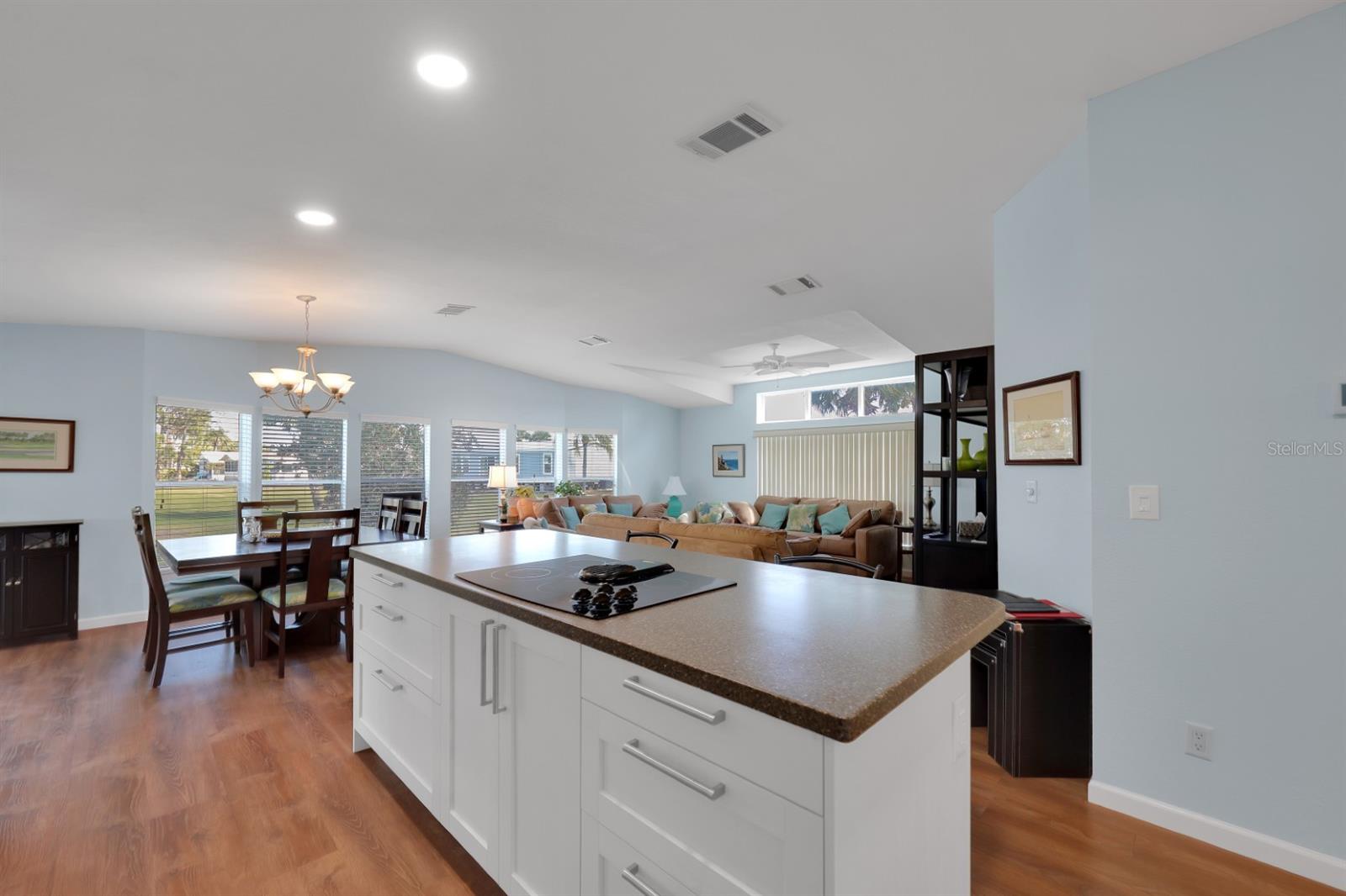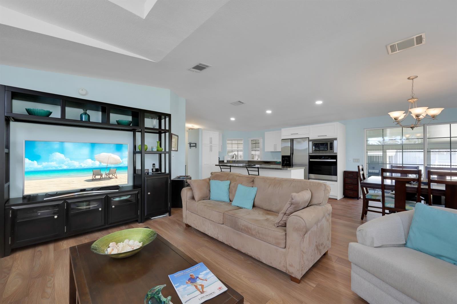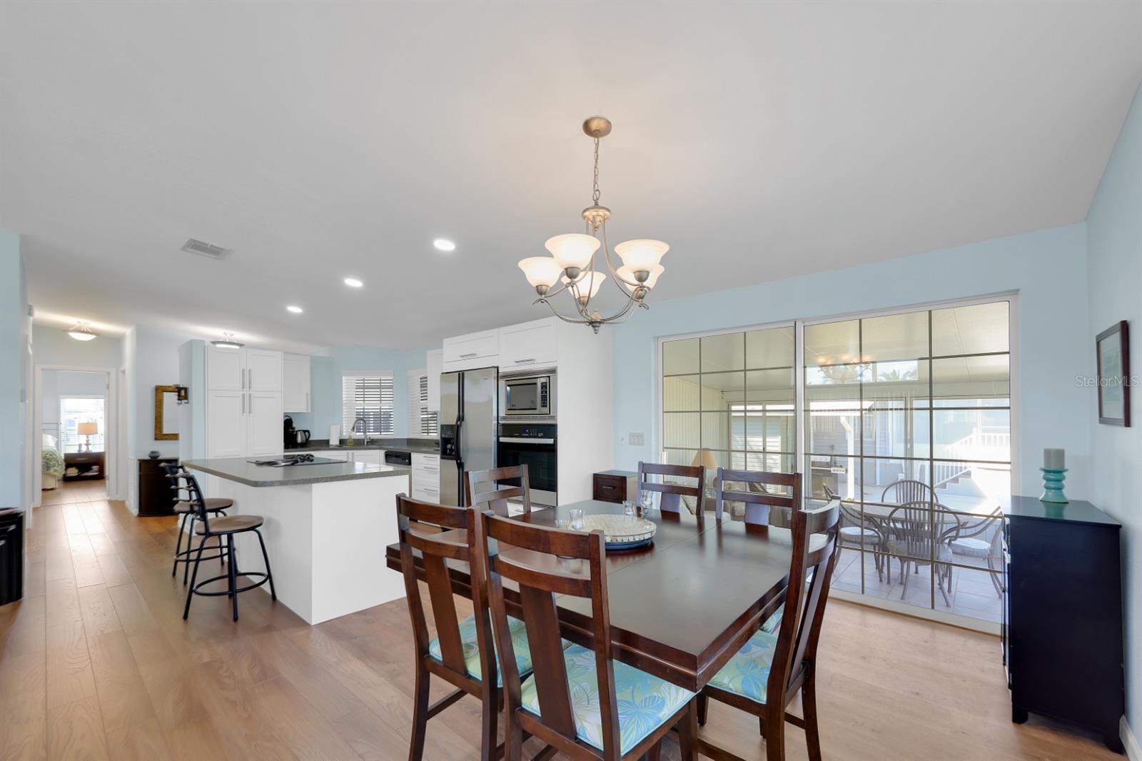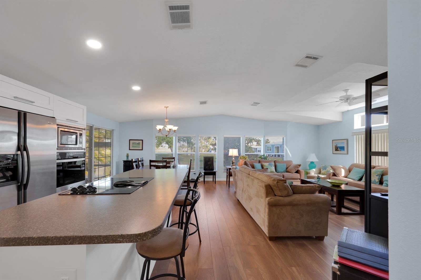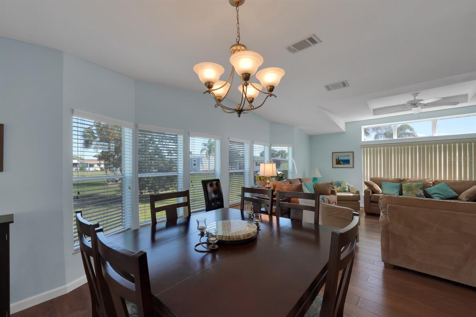 Welcome to golf course living on the 13th green in Maple Leaf Golf & Country Club! This beautifully maintained Jacobsen built home has golf course views and a long list of extras! It feels so much like home when you walk in that you may never want to leave. The curb appeal will catch your eye with decorative brick paver driveway and carport. High ceilings and numerous windows flood the open floor plan of his home with natural light. The nicely appointed renovated/updated kitchen has a cooktop range in the island and a built in microwave and oven. Plenty of soft close cabinets provide the storage you need. The primary bedroom has a large en-suite bathroom with dual sinks, vanity counter, upgraded linen storage and spacious walk shower. The guest bedroom features it's own en-suite bathroom with a tub shower combination. Your guest will enjoy the privacy of their own en-suite bathroom. The laundry room with front load washer and dryer features storage cabinets and a counter area for folding. A covered and screened porch behind the shed off the dining room sliding glass doors, faces the golf course, perfect spot for morning relaxation and watching your friends golf before heading off to enjoy all that Maple Leaf has to offer. There is also a large open air concrete patio off rear lanai. 120sq foot shed off the carport offers plenty of additional storage for tools, golf clubs, pool and beach supplies. Home is being sold furnished. Golf cart is negotiable outside of contract. Other recent improvements include: Insulated carport and lanai roof, shingled roof replaced, AC replaced in 2022. Call today to schedule your private showing of this beauty on the award winning Maple Leaf Golf and Country Club Golf Course. **Be sure to check out the 3-D virtual tour and walk through video links** Located in award winning Maple Leaf Golf & Country Club, a popular 55+ gated golf course community with an active resort lifestyle. Features a Par 62, 18 hole golf course, 5 tennis courts, bocce ball, lawn bowling, 2 shuffleboard courts, 4 heated swimming pools, 2 hot tubs, fitness facility, woodworking facility, 75+ clubs/activities, 4 pickleball courts, restaurant with full service bar, tiki hut/bar and more. Don't miss out on this opportunity to live in a thriving community where every day feels like a vacation. It's true what they say, it's all about the lifestyle.
