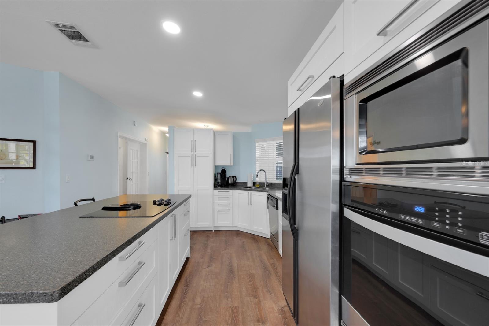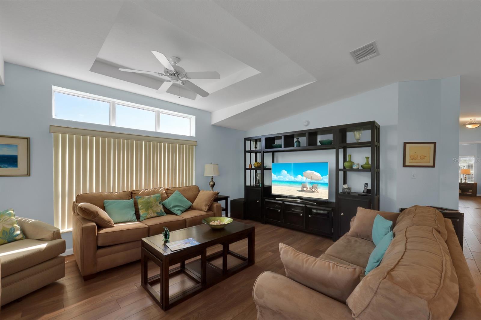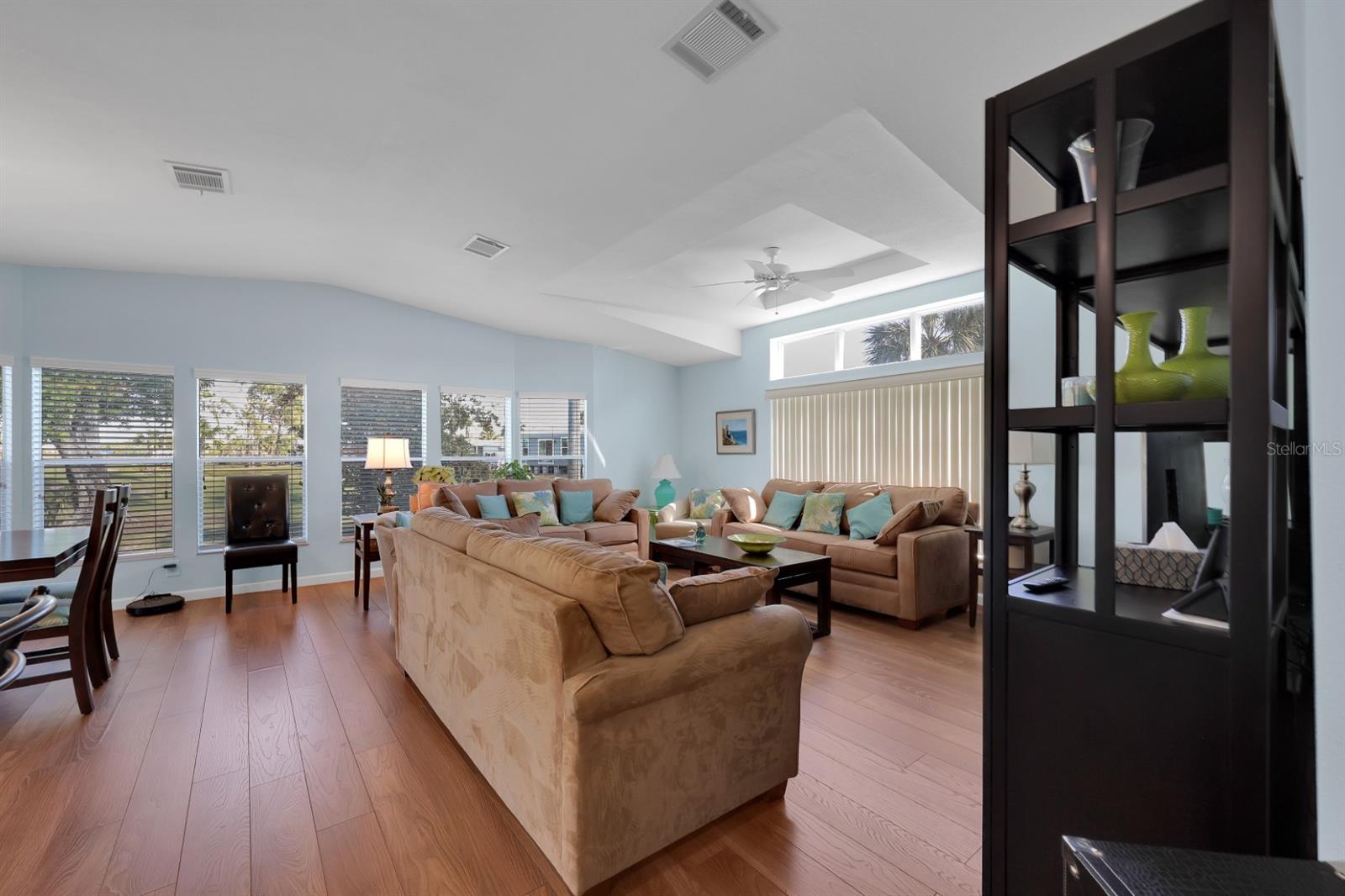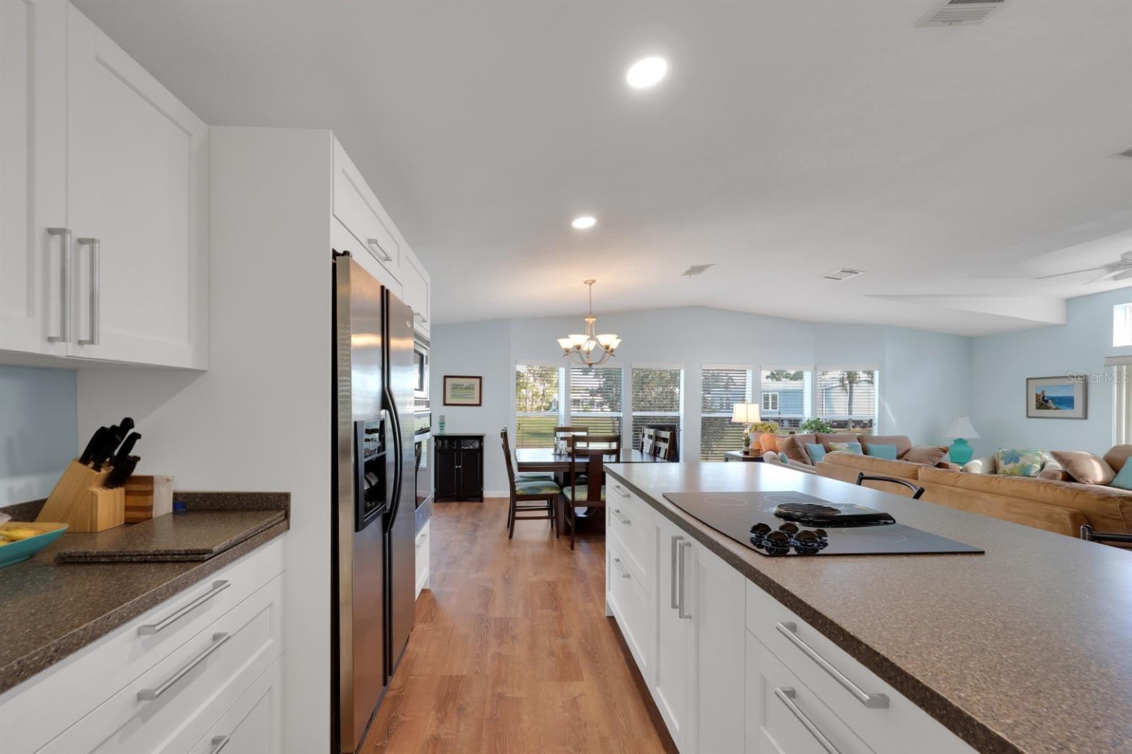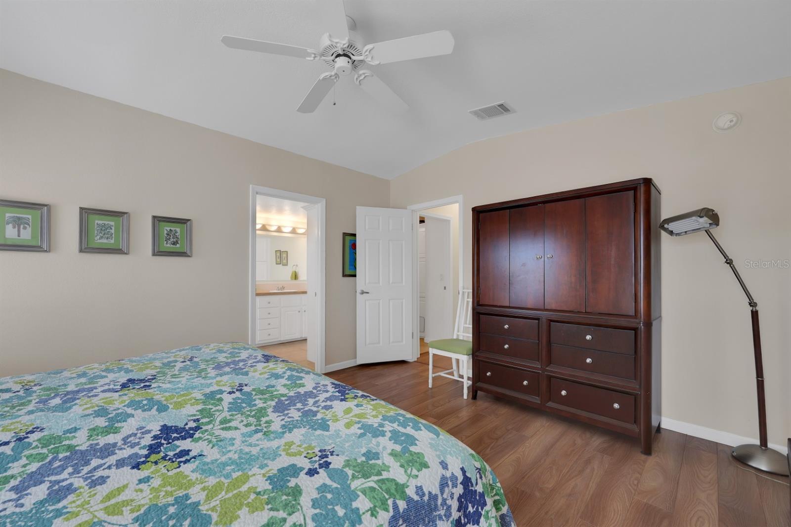 Welcome to golf course living on the 13th green in Maple Leaf Golf & Country Club! This beautifully maintained Jacobsen built home has golf course views and a long list of extras! It feels so much like home when you walk in that you may never want to leave. The curb appeal will catch your eye with decorative brick paver driveway and carport. High ceilings and numerous windows flood the open floor plan of his home with natural light. The nicely appointed renovated/updated kitchen has a cooktop range in the island and a built in microwave and oven. Plenty of soft close cabinets provide the storage you need. The primary bedroom has a large en-suite bathroom with dual sinks, vanity counter, upgraded linen storage and spacious walk shower. The guest bedroom features it's own en-suite bathroom with a tub shower combination. Your guest will enjoy the privacy of their own en-suite bathroom. The laundry room with front load washer and dryer features storage cabinets and a counter area for folding. A covered and screened porch behind the shed off the dining room sliding glass doors, faces the golf course, perfect spot for morning relaxation and watching your friends golf before heading off to enjoy all that Maple Leaf has to offer. There is also a large open air concrete patio off rear lanai. 120sq foot shed off the carport offers plenty of additional storage for tools, golf clubs, pool and beach supplies. Home is being sold furnished. Golf cart is negotiable outside of contract. Other recent improvements include: Insulated carport and lanai roof, shingled roof replaced, AC replaced in 2022. Call today to schedule your private showing of this beauty on the award winning Maple Leaf Golf and Country Club Golf Course. **Be sure to check out the 3-D virtual tour and walk through video links** Located in award winning Maple Leaf Golf & Country Club, a popular 55+ gated golf course community with an active resort lifestyle. Features a Par 62, 18 hole golf course, 5 tennis courts, bocce ball, lawn bowling, 2 shuffleboard courts, 4 heated swimming pools, 2 hot tubs, fitness facility, woodworking facility, 75+ clubs/activities, 4 pickleball courts, restaurant with full service bar, tiki hut/bar and more. Don't miss out on this opportunity to live in a thriving community where every day feels like a vacation. It's true what they say, it's all about the lifestyle.