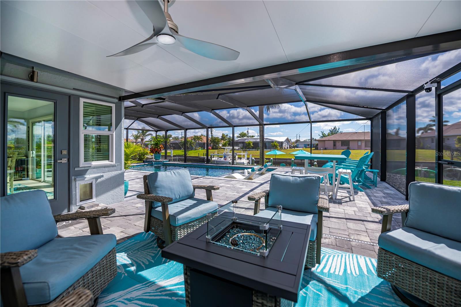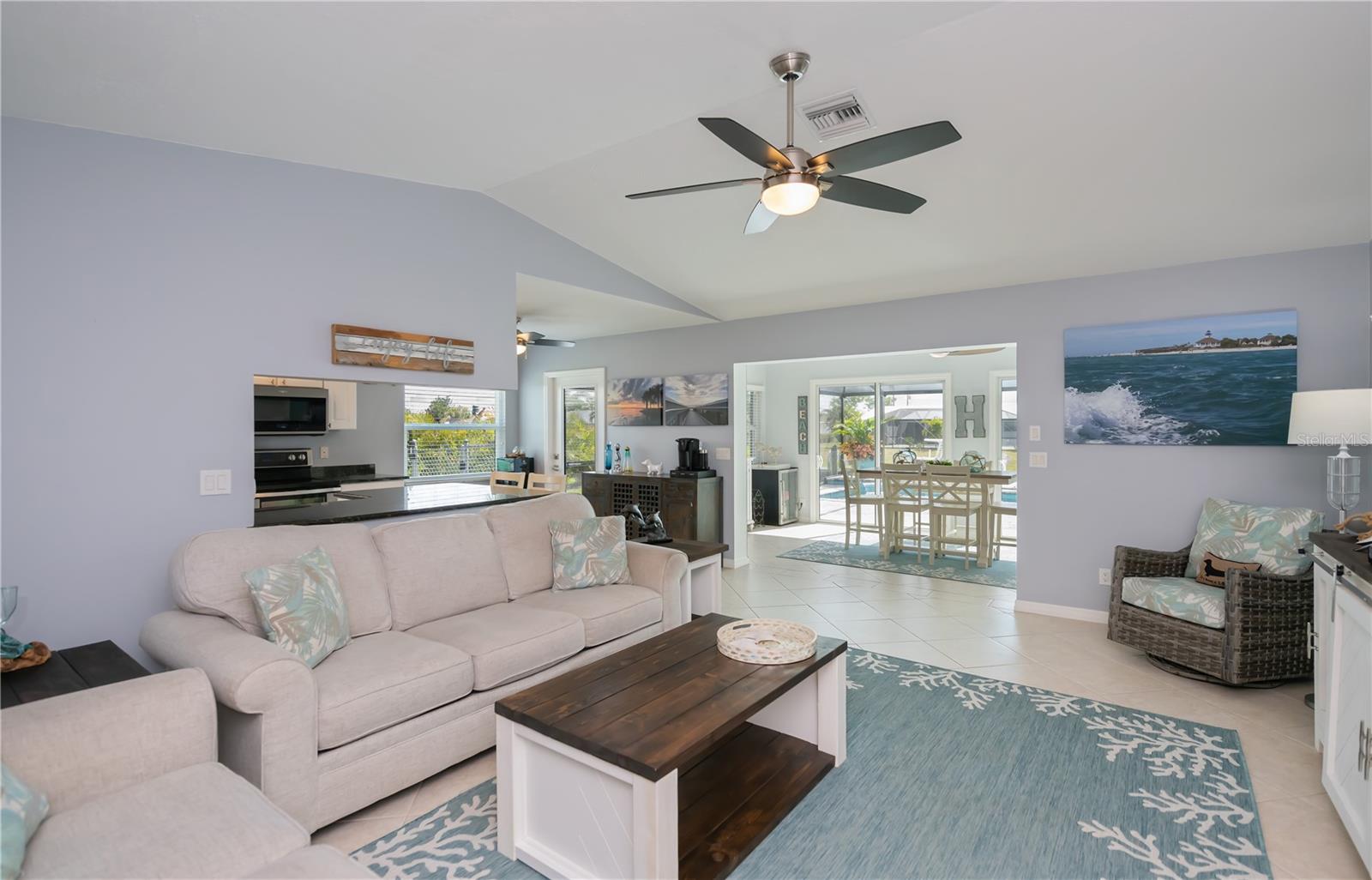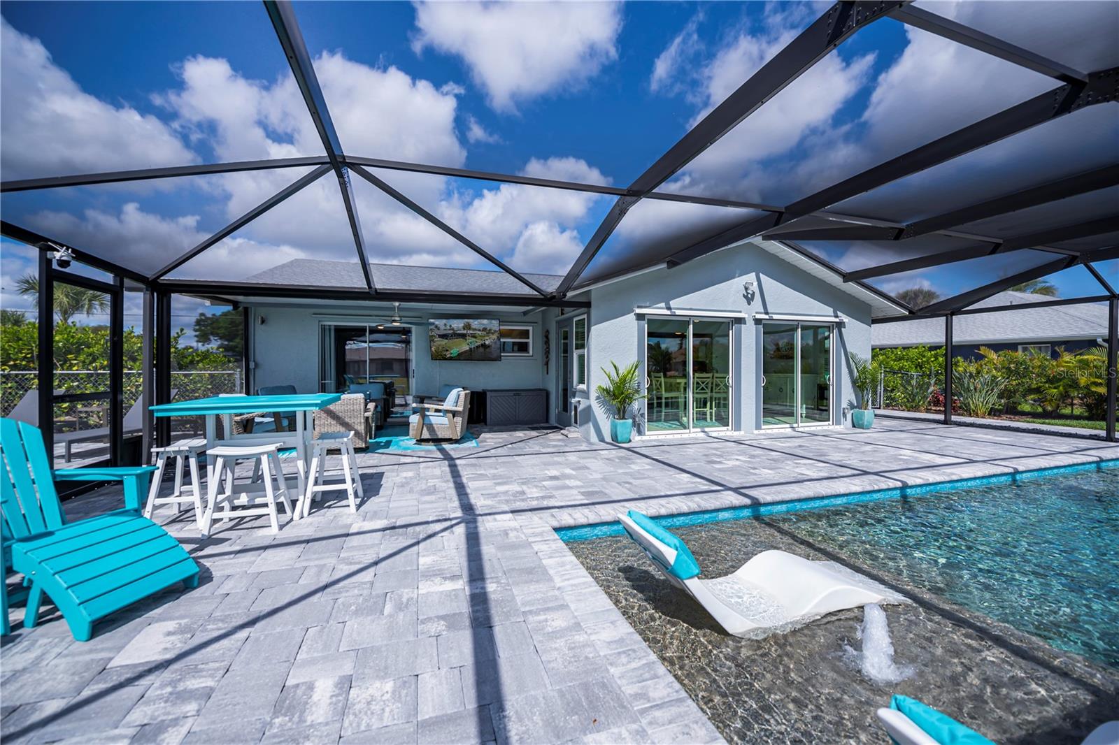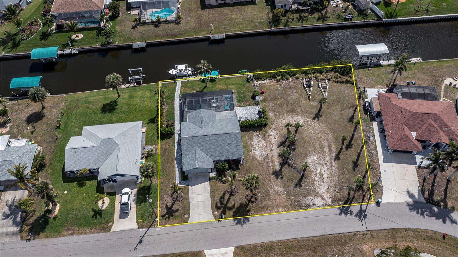 Here is a spectacular SALTWATER LOT BEAUTY on 90 ft of premium waterfront boasting quick gulf access and a stunningly spacious 3 bedroom, 2 bath with 2 car garage plus brand new HEATED SALTWATER POOL, and very low cost flood zone, higher elevation!! OPTION TO PURCHASE ADDITIONAL LOT NEXT DOOR! Instantly welcoming, enjoy the mature/ manicured landscaping, TASTEFULLY FURNISHED w/ OPTION TO PURCHASE, NO HOA, extra long driveway, city water and sewer, and a nicely fenced backyard adding even more to the all the longer list of upgrades this home provides. Experience gentle harbor breezes and abundant natural light, the foyer opens up to vaulted ceilings, gentle coastal colors, tall sliding glass doors and expansive waterfront/pool views! A chef worthy kitchen awaits, this home is designed for entertaining... rich shaker style cabinetry, stainless appliances including a double oven, granite countertops, and convenient breakfast bar with door to the big separate dining area adjacent to the family room all with designer lighting/fans,truly a wonderful open concept layout! The master bedroom is serene so relax in complete comfort with its own pool/screened lanai access, big walk- in closet, ensuite upgraded master bath complete with dual sinks and spa like rain head shower. Guests will have two premium bedrooms to choose from offering spacious closets, luxury vinyl flooring, one with a suspended tv and both share an exceptionally stylish bathroom with the rest of the main house. Inside laundry has matching samsung washer and dryer too. Enjoy picturesque sunsets every night and swim year round, BRAND NEW saltwater POOL is HEATED, superior screening and paver lined decking add to both the sunbathers or covered entertaining area. The magical sounds of the waterfall ledge relaxes and tantalizes your senses night or day while the baja shelf allows you to lounge lavishly and soak up the sun with toes gently cooling at the edge the pool. Outside enthusiasts will appreciate the open air paver patio deck, while boaters and fishing enjoy the ease of all from a very long 28 x 5 trex dock. With water and power, the boat lift will hold the largest power boats to be out in the harbor in merely minutes, its only a few bike-ride blocks away to the Port Charlotte Beach ! Kayak racks are also in place so your options to enjoy this dreamy florida lifestyle all MOVE IN READY (furniture includes list attached mls) are limitless. Port Charlotte Beach is a favorite biking area, with boat ramp, heated pool, both bocce ball and horseshoe pits, tennis courts, volleyball, playground, boardwalk, fishing pier, pavilions, picnic areas and recreation center, dog friendly and INCREDIBLE SUNSETS! Close to historic downtown Punta Gorda, sunseeeker resort, dining, farmers markets, festivals, PG Airport, shopping and more. Don't let this great DOUBLE SALTWATERFRONT opportunity disappear, a must see so hurry to schedule your showing TODAY!