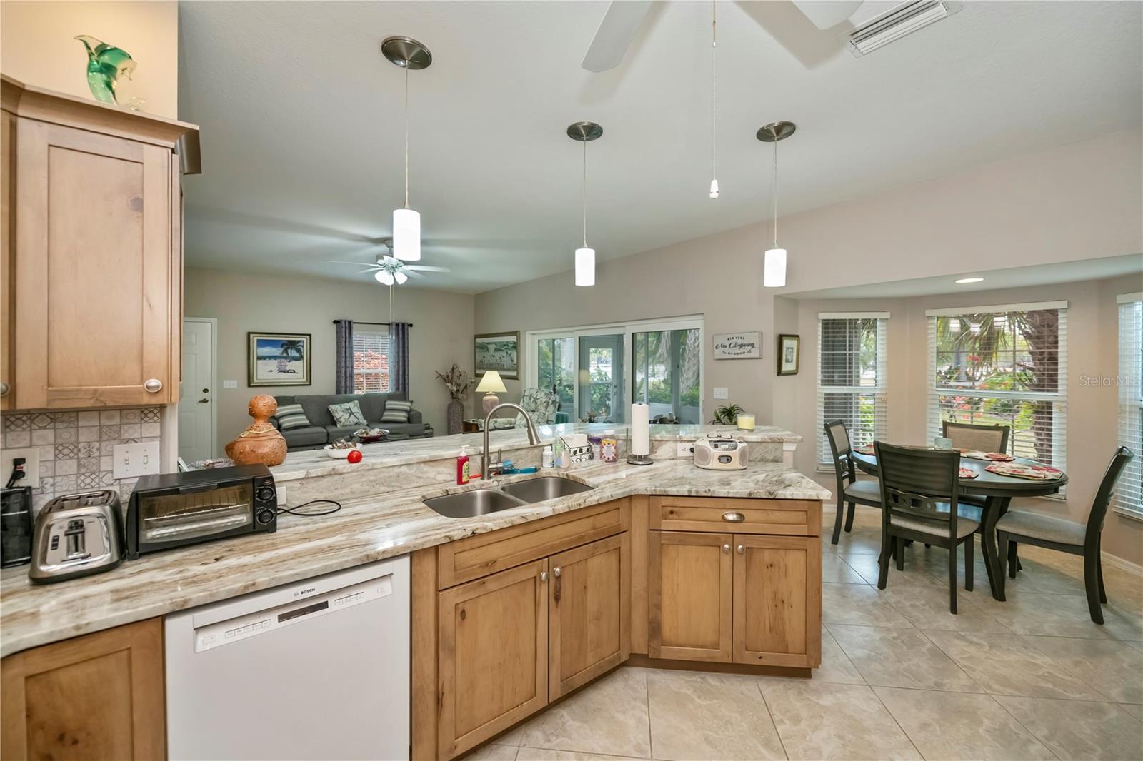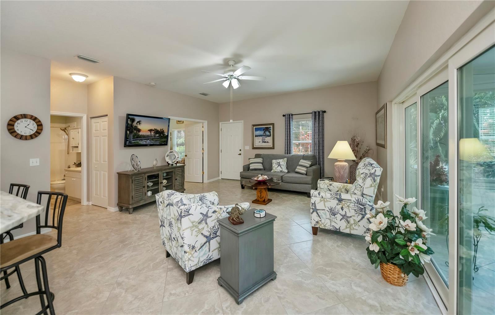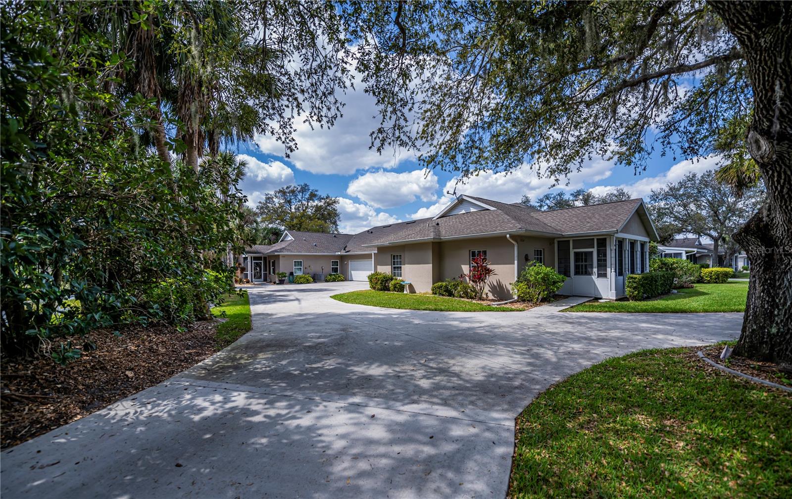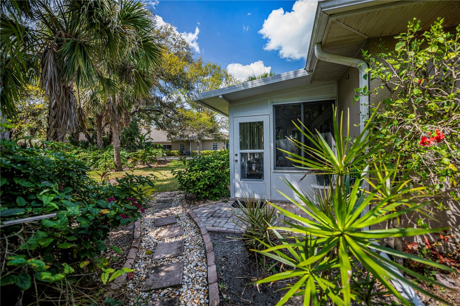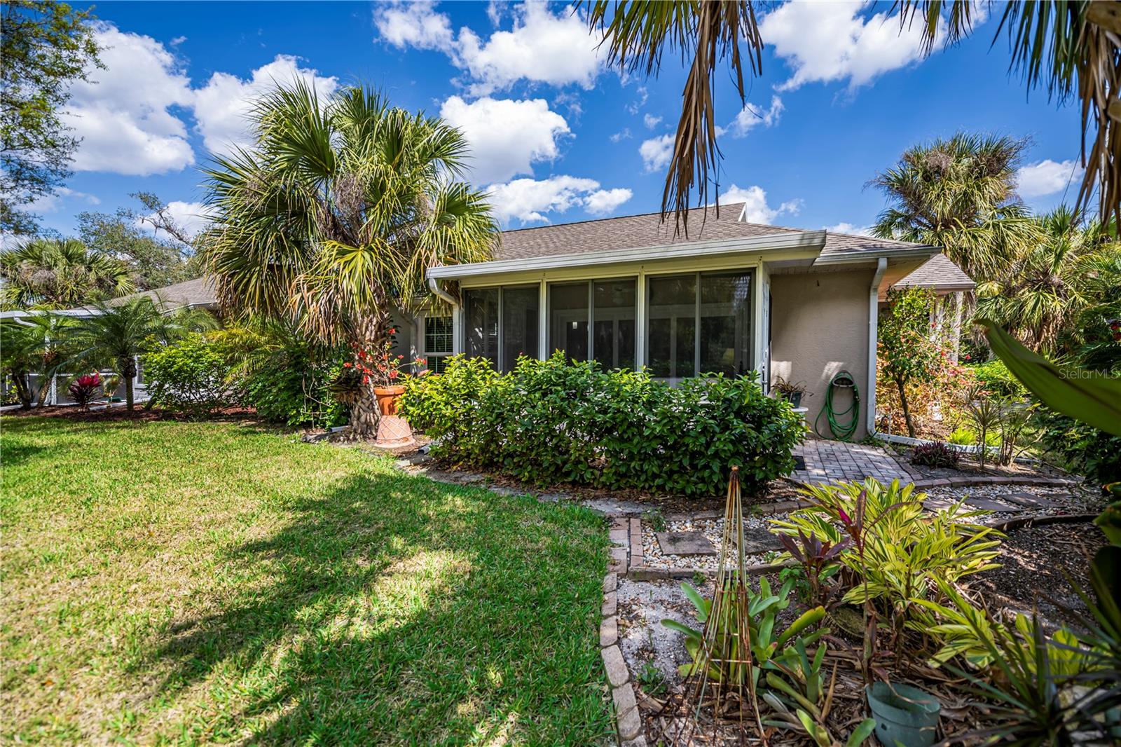 Pride of ownership shows in this immaculate upgraded beautifully TURNKEY FURNISHED villa. This is an absolute must see gem. As you enter thru the screened tiled front porch you are greeted with a bright & light great room opening to the gorgeous cook's kitchen w/wood cabinets, crown molding, soft close drawers, pull out drawers in bottom cabinets, granite counters w/undercounter sink, & includes top-of-the-line appliances, inc. Bosch dishwasher, Samsung French door refrigerator, & GE smooth top drop in range. Tile floors on the diagonal are everywhere which makes the rooms all flow together. Third bedroom/den is off the great room & has French doors, built in full murphy bed w/cabinets w/closet/storage space. Good sized master bedroom w/2 walk-in closets & ensuite master bath w/high vanity w/dual sinks, & walk-in shower w/handicap bar. Split bedroom floorplan to give guests privacy. Second bedroom has built-in queen murphy w/storage. Interior laundry closet w/full size LG top load washer & dryer. & shelving for storage. Bay of sliders in the great room opens to the enclosed Florida room that is tiled & can be used year-round. Garage has coated floor, newer hurricane garage door, pull down staircase, drop down storage, storage shelves, & laundry tub. All of that plus IMPACT WINDOWS & DOOR, freshy painted interior within last 4 years, new A/C Heat in 2019, Water heater in 2018, & new roof in 2018. Located in sought after Heritage Oak Park-a gated active community with a full-time activity's director on staff planning many activities for your enjoyment. Other amenities include a large clubhouse, heated pool, fitness room, billiards room, lending library, bocce ball, shuffleboard, tennis, pickleball, & walking path around the lake. Community was built around all the old native oak trees which gives you the feeling that you are in the country yet conveniently located to shopping & restaurants.