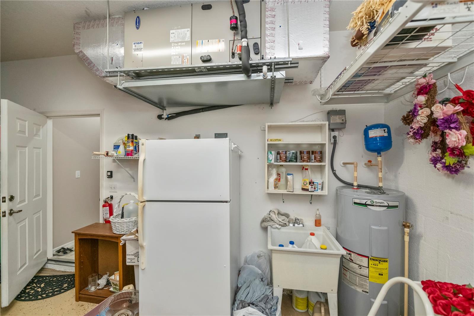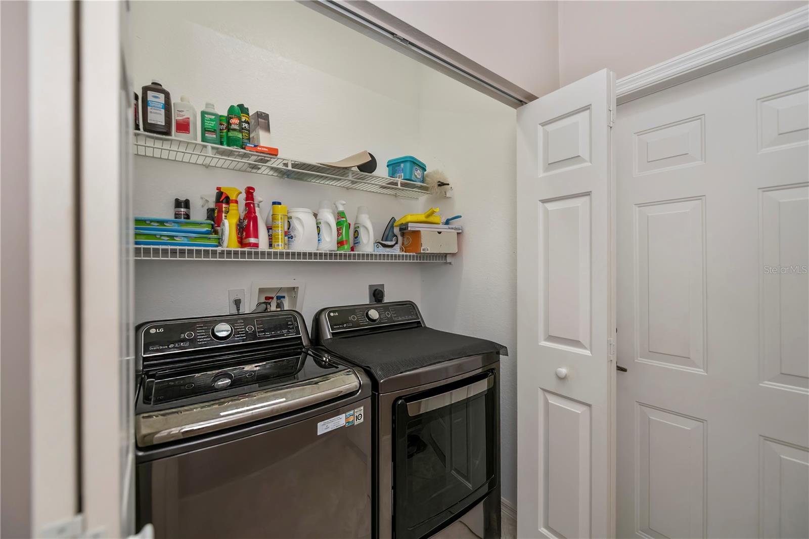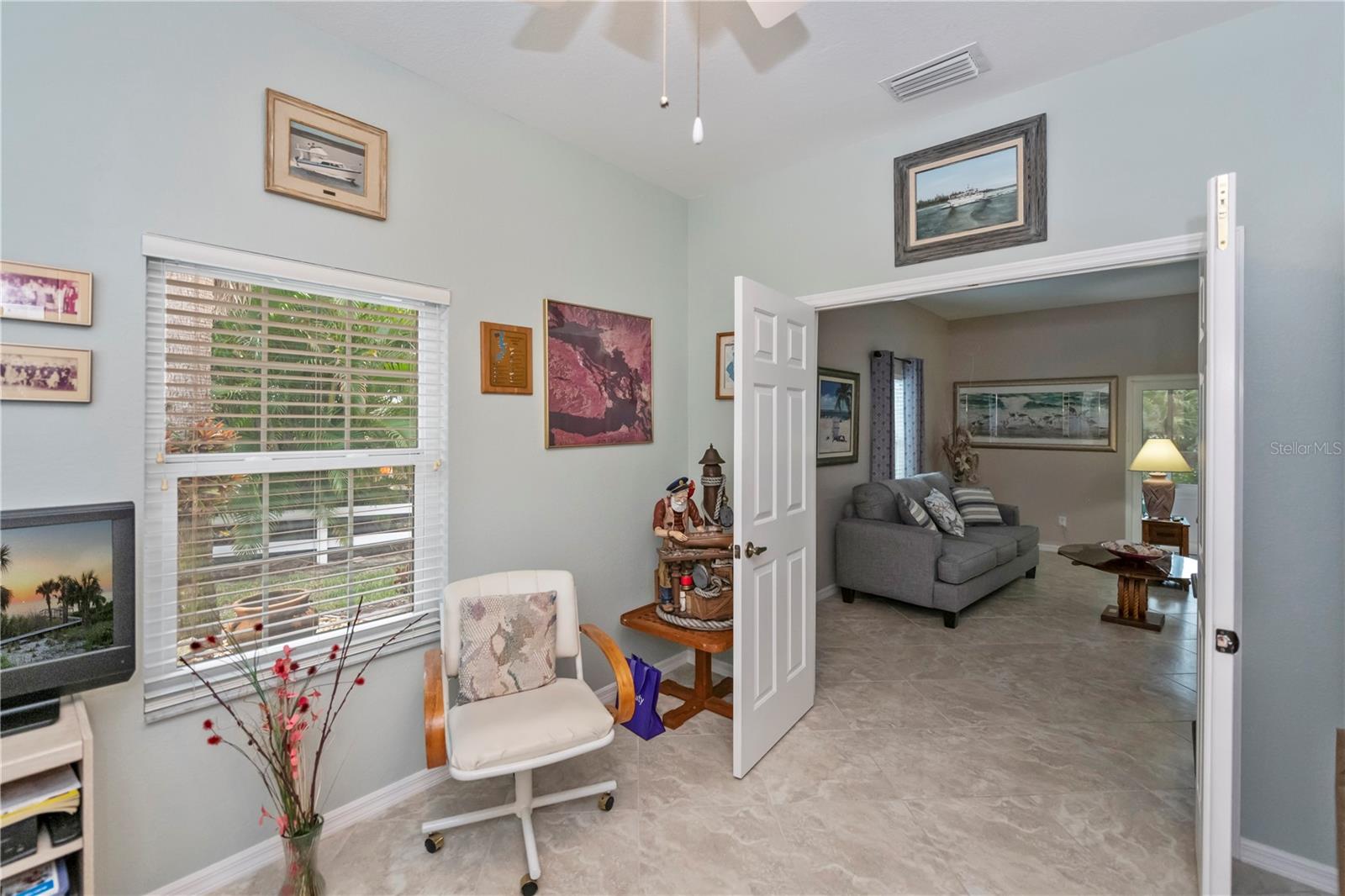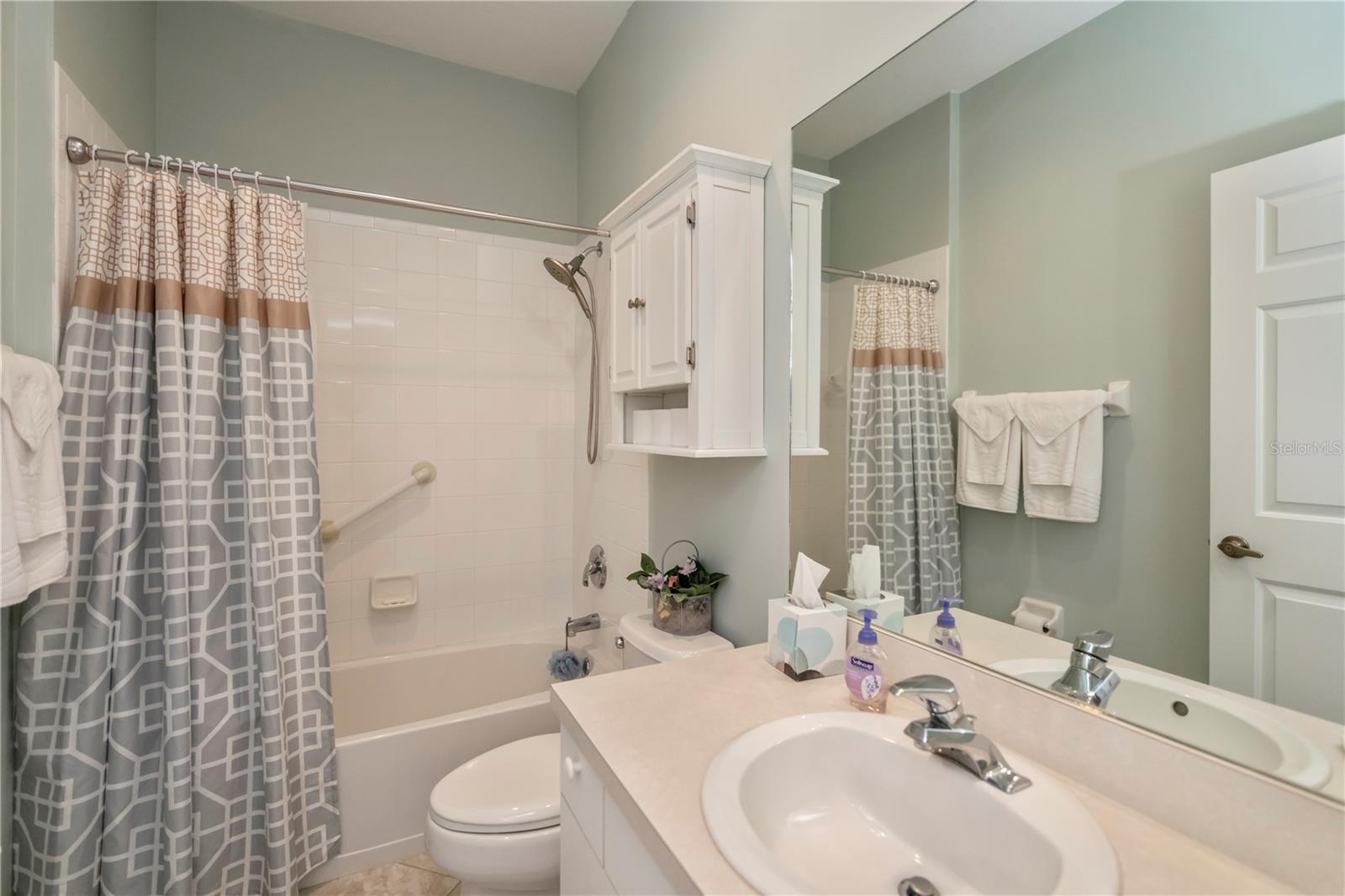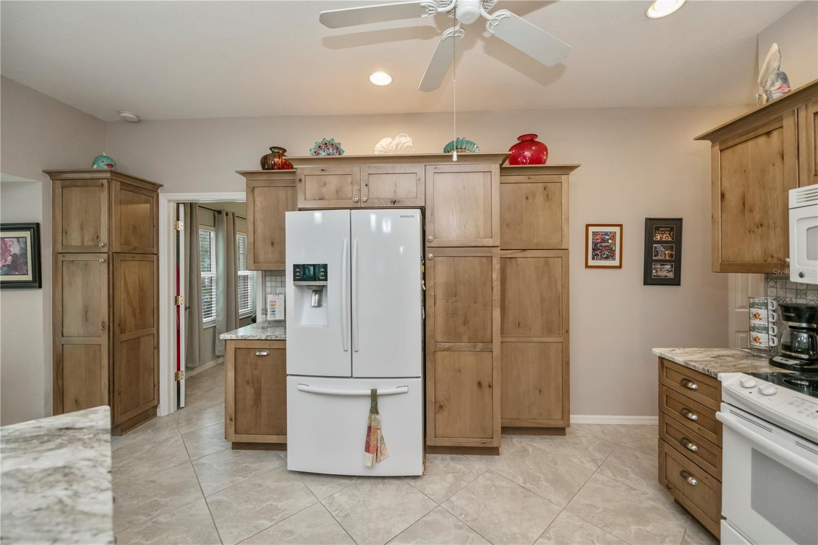 Pride of ownership shows in this immaculate upgraded beautifully TURNKEY FURNISHED villa. This is an absolute must see gem. As you enter thru the screened tiled front porch you are greeted with a bright & light great room opening to the gorgeous cook's kitchen w/wood cabinets, crown molding, soft close drawers, pull out drawers in bottom cabinets, granite counters w/undercounter sink, & includes top-of-the-line appliances, inc. Bosch dishwasher, Samsung French door refrigerator, & GE smooth top drop in range. Tile floors on the diagonal are everywhere which makes the rooms all flow together. Third bedroom/den is off the great room & has French doors, built in full murphy bed w/cabinets w/closet/storage space. Good sized master bedroom w/2 walk-in closets & ensuite master bath w/high vanity w/dual sinks, & walk-in shower w/handicap bar. Split bedroom floorplan to give guests privacy. Second bedroom has built-in queen murphy w/storage. Interior laundry closet w/full size LG top load washer & dryer. & shelving for storage. Bay of sliders in the great room opens to the enclosed Florida room that is tiled & can be used year-round. Garage has coated floor, newer hurricane garage door, pull down staircase, drop down storage, storage shelves, & laundry tub. All of that plus IMPACT WINDOWS & DOOR, freshy painted interior within last 4 years, new A/C Heat in 2019, Water heater in 2018, & new roof in 2018. Located in sought after Heritage Oak Park-a gated active community with a full-time activity's director on staff planning many activities for your enjoyment. Other amenities include a large clubhouse, heated pool, fitness room, billiards room, lending library, bocce ball, shuffleboard, tennis, pickleball, & walking path around the lake. Community was built around all the old native oak trees which gives you the feeling that you are in the country yet conveniently located to shopping & restaurants.
