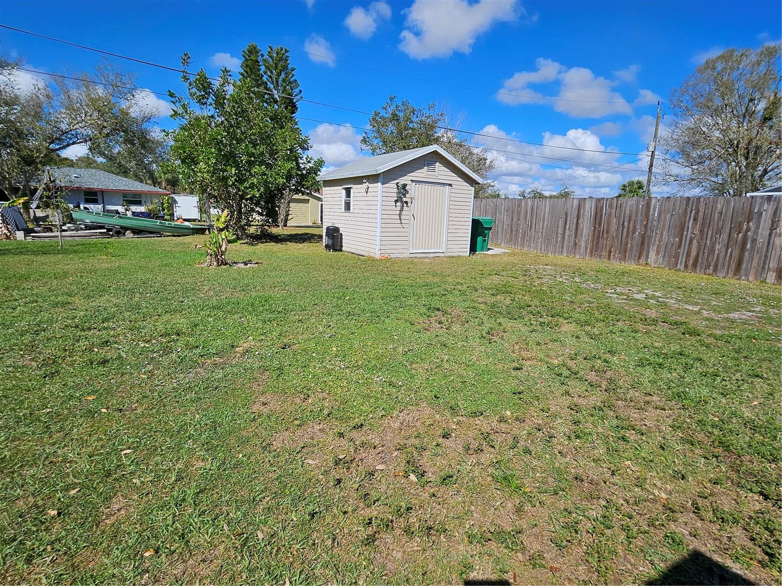 Welcome to this charming 2-bedroom, 1-bathroom single-family home in the heart of sunny Port Charlotte, Florida! With over 1,100 total square footage of living space, this home offers a Newer Roof and some Hurricane Impact Windows for peace of mind along with a brand new electrical panel in (2025). The spacious Primary Suite includes a large walk-in closet, providing ample storage. Situated on an oversized lot with No HOA restrictions, you have the freedom to park your RV, boat, or extra vehicles with ease. The two electric powered storage sheds provide additional space for tools, hobby/art studio, or a workshop setup. Love to garden? You’ll appreciate the fruit trees on the property and the ample space to create your own lush garden oasis! The house faces a wooded lot across the street for extra privacy, and is connected to sparkling City Water. Located just minutes from Charlotte Sports Park, the Sunseeker Resort, shopping, dining, and boating/fishing on Peace River and Charlotte Harbor, this home is perfect as a primary residence, Rental, or Airbnb investment! NOT in a Flood Zone- No flood insurance required! Don’t miss this opportunity to live in this fast-growing neighborhood—schedule your showing today!