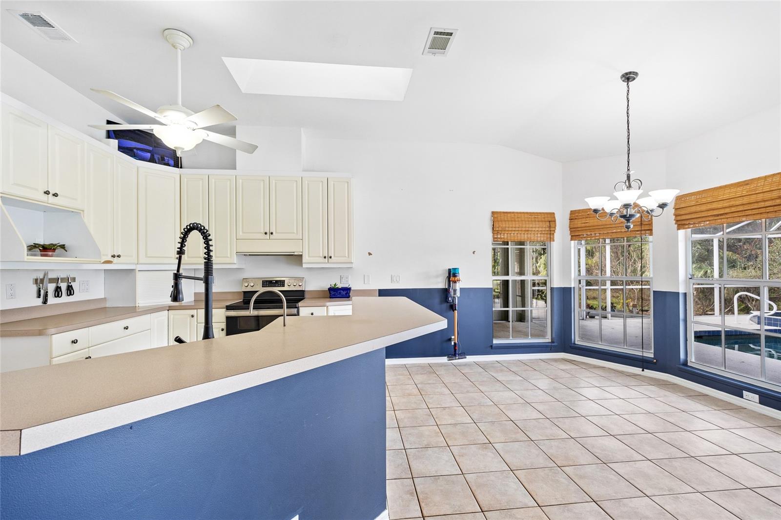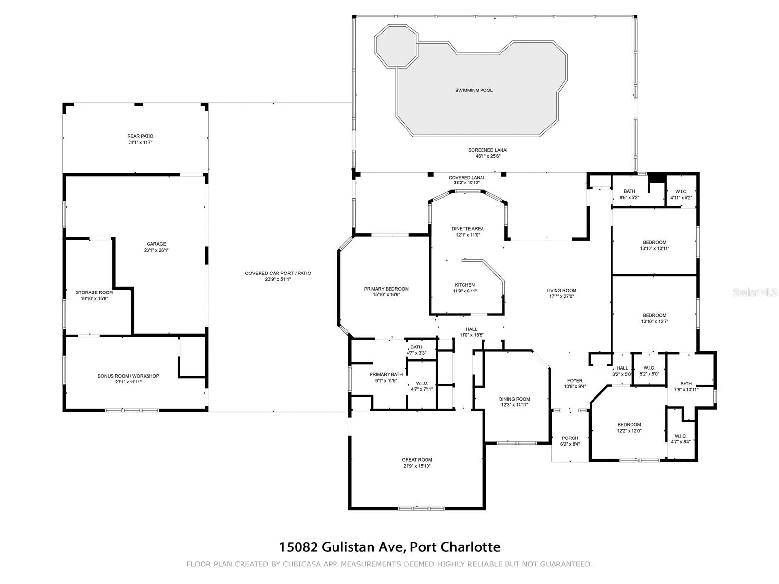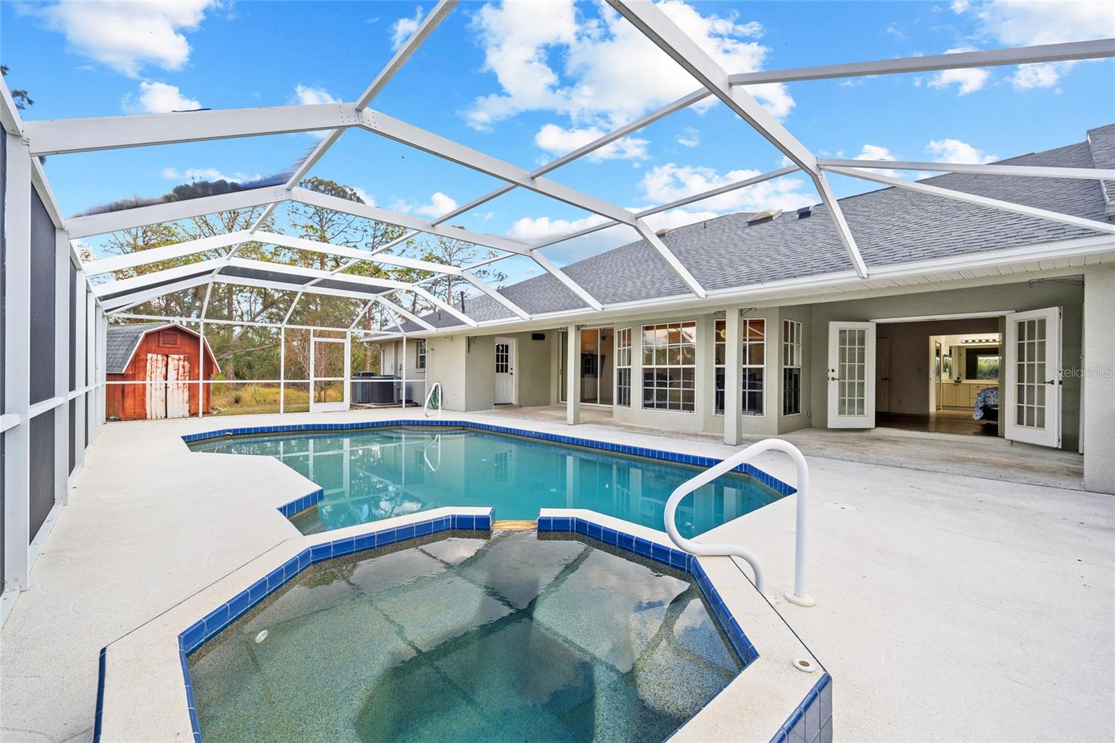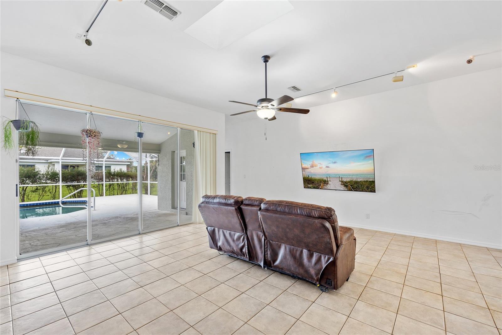 TRIPLE LOT! POWERFUL WHOLE HOME SOLAR FOR ENERGY INDEPENDENCE! Spacious 4 bedroom + bonus room, 3 bath, pool home nestled in a peaceful, beautiful neighborhood, where all essential stores can be accessed without ever having to navigate busy main roads. Inviting open floor plan features high ceilings, skylights, tile flooring, large slider to lanai in living and lots of windows for an abundance of light. Split floor plan provides privacy for all including walk-in closets and bath access from every bedroom. Expansive outdoor living space offers 5,000 sq. ft. of concrete boasting a massive four-car breezeway, an extra-long driveway, and two spacious back porches. One porch features a fully screened PebbleTec pool with in-floor cleaning jets, offering a relaxing and low-maintenance oasis. The property features a large solar system that generates an impressive 40 MWh per year—that’s enough energy to power about 3–4 average U.S. homes annually! Combined with propane-heated hot water and a dedicated gas line behind the stove, the home is highly energy-efficient. Living in Southwest Florida, adding batteries would make it fully off-grid and self-sustaining. SOLAR LOAN TO BE ASSUMED BY BUYER. The oversized garage features large storage room and a versatile fully insulated and air-conditioned 220 sq. ft. shop providing endless possibilities—whether for multigenerational living, a home office, a gym, or a yoga studio. With ample storage space, it’s a perfect retreat for work or hobbies. Additional features include new roof in 2022, hurricane protection and security system. It's the perfect blend of tranquility and convenience. The property is surrounded by abundant nature and thriving plants featuring a variety of lush plants, including a majestic heritage oak, food-producing plants, and pollinator-friendly flora. It has bananas, hog plums, moringa, red hibiscus, dragon fruit, prickly pear, and aloe—creating a self-sustaining, vibrant ecosystem. Great location close to Murdock restaurant and shopping district and Cocoplum Plaza, Centennial Park, schools, golf and a short drive fishing, boating and Venice beaches. Don’t miss this opportunity! Schedule your private showing today! -OWNER OCCUPIED- CAMERAS ON PROPERTY.